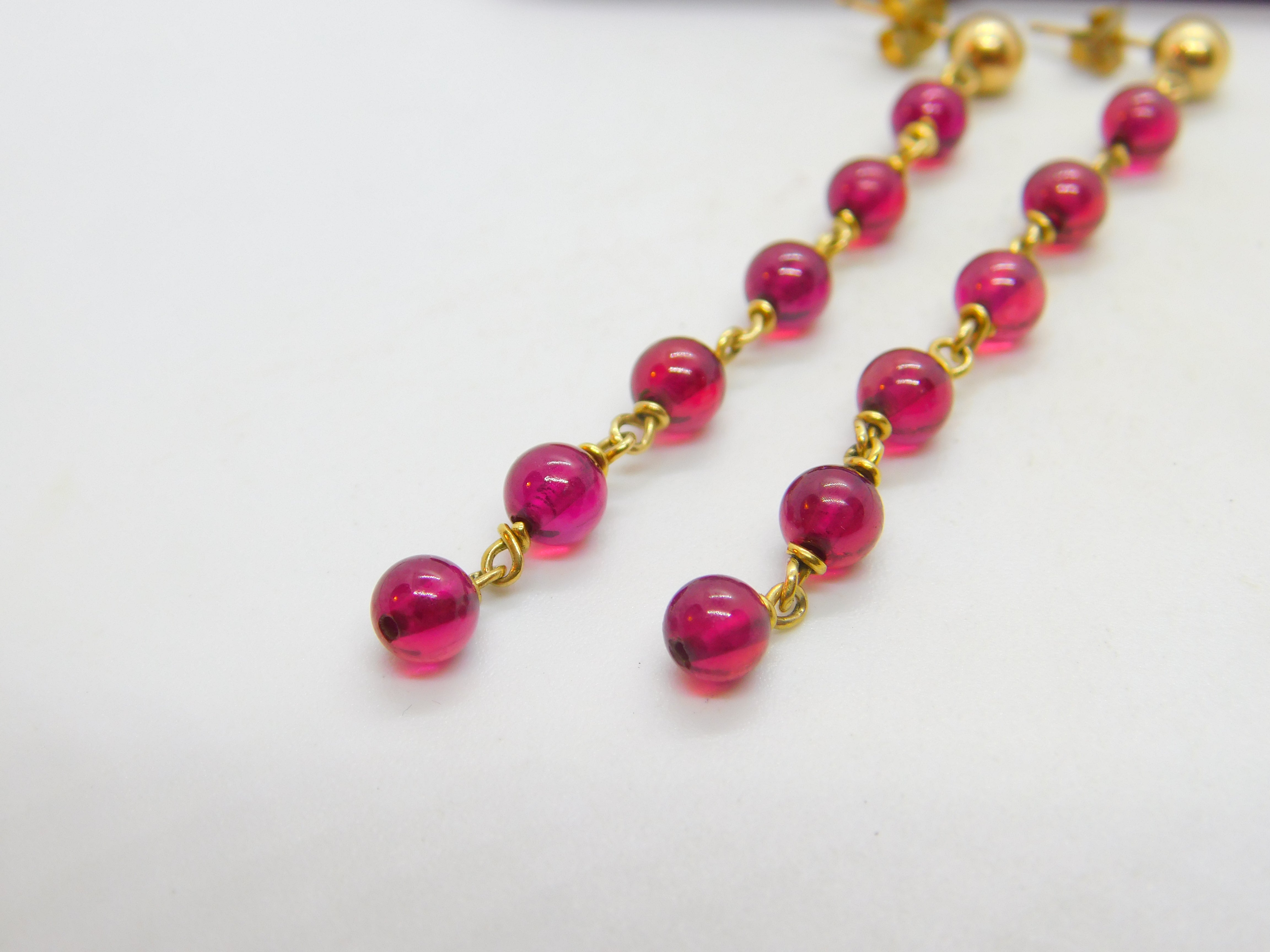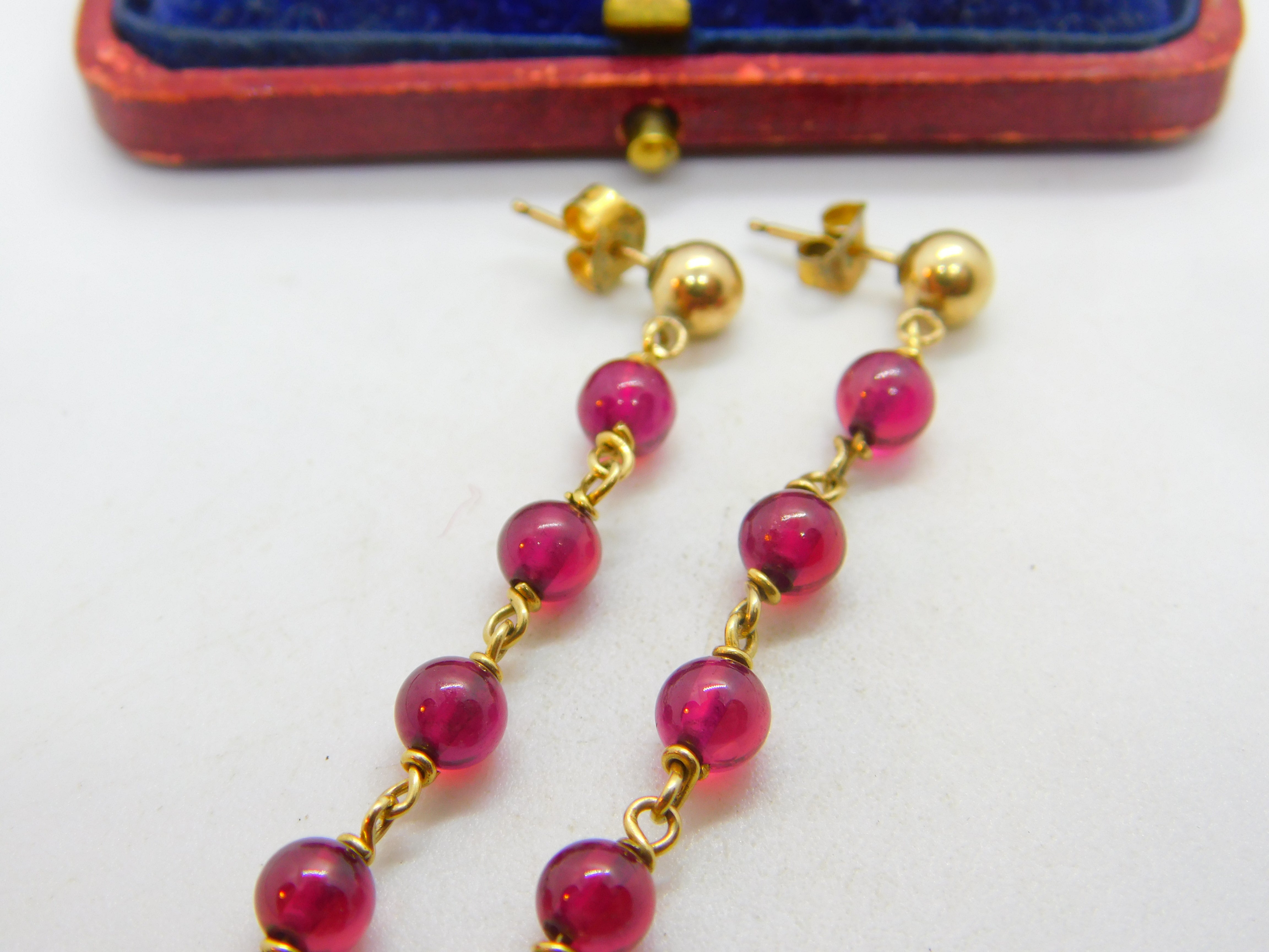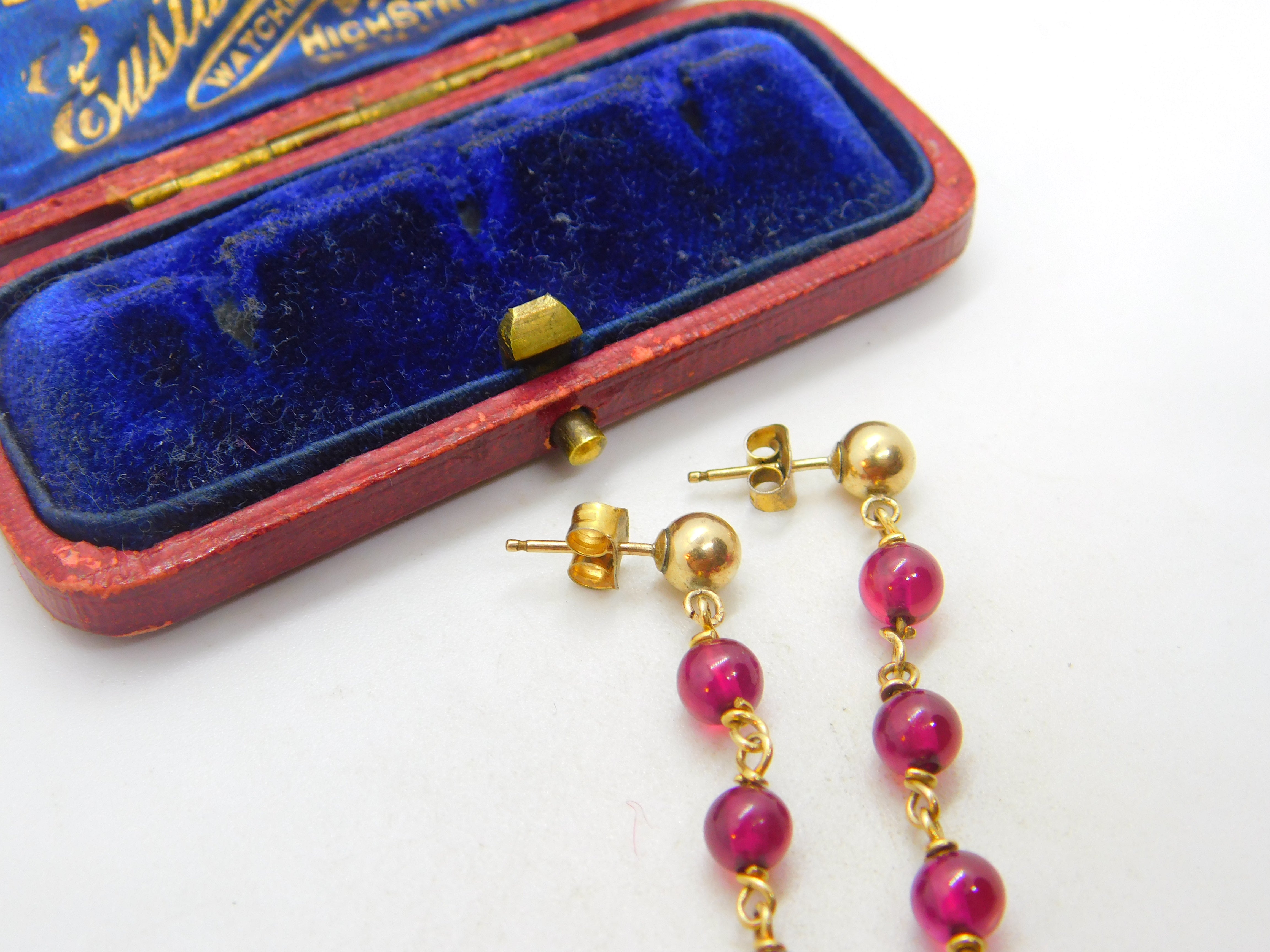 14ct Yellow Gold Filled Beaded Garnet Drop Stud Earrings Vintage c1970