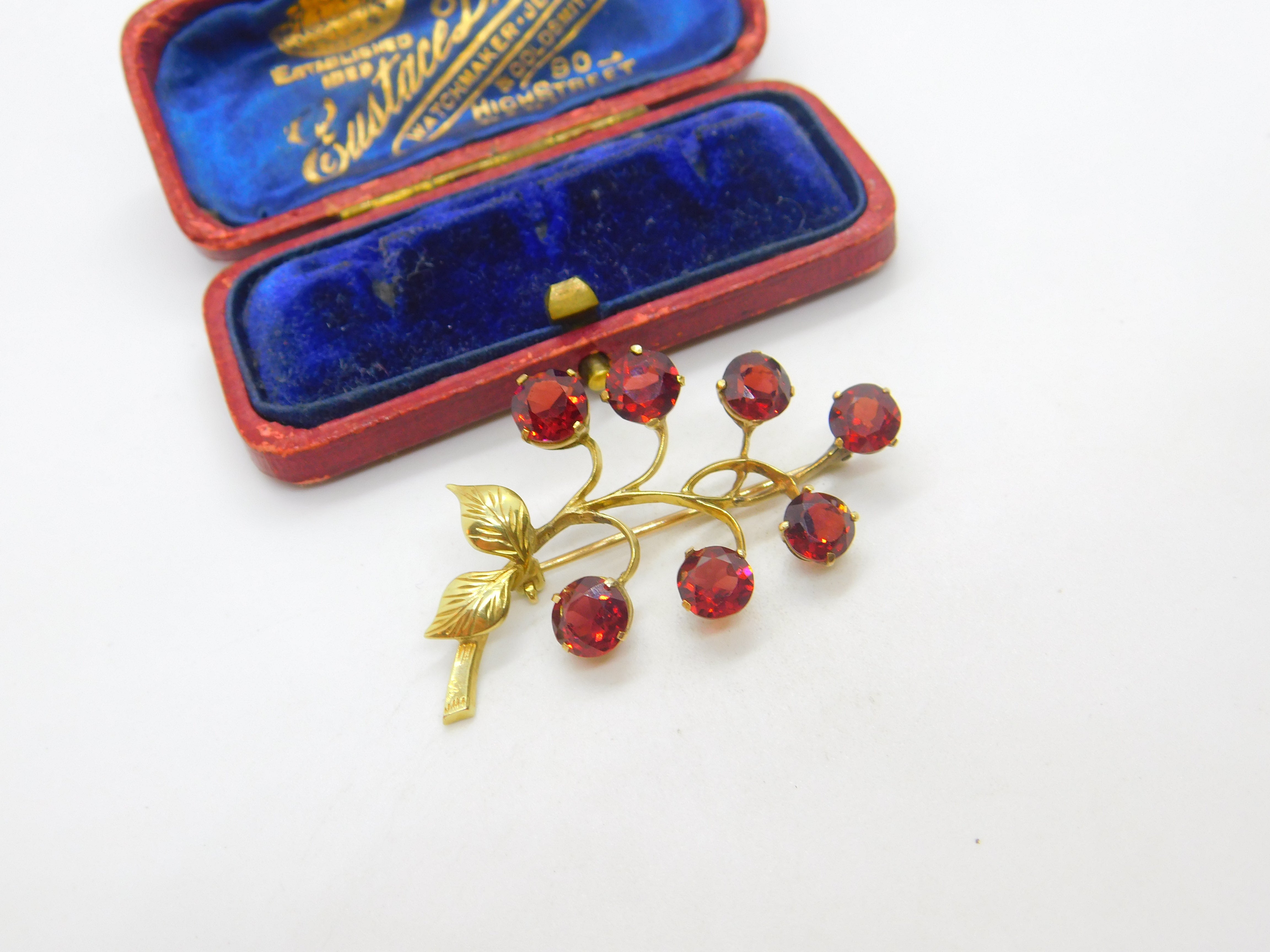 Details: A fantastic and wonderfully designed antique art deco 14ct yellow gold garnet set floral sprig brooch pin c1930 - the gold has been XRF tested. This is a wonderful item that would make a perfect gift or addition to any collection. The BOX pictured is for PRESENTATION ONLY and is NOT included in the listings but used to frame the pictures unless specifically stated otherwise.