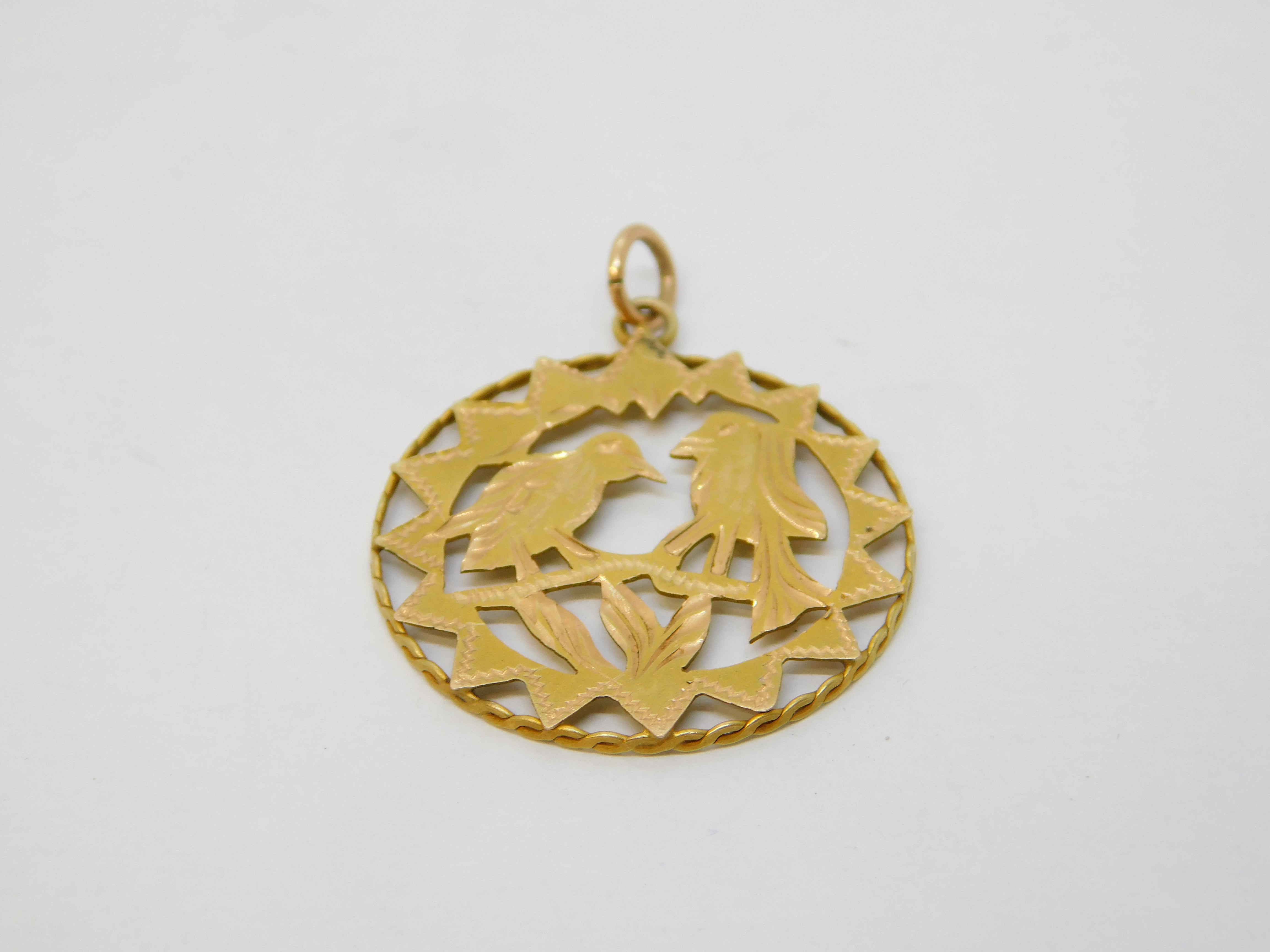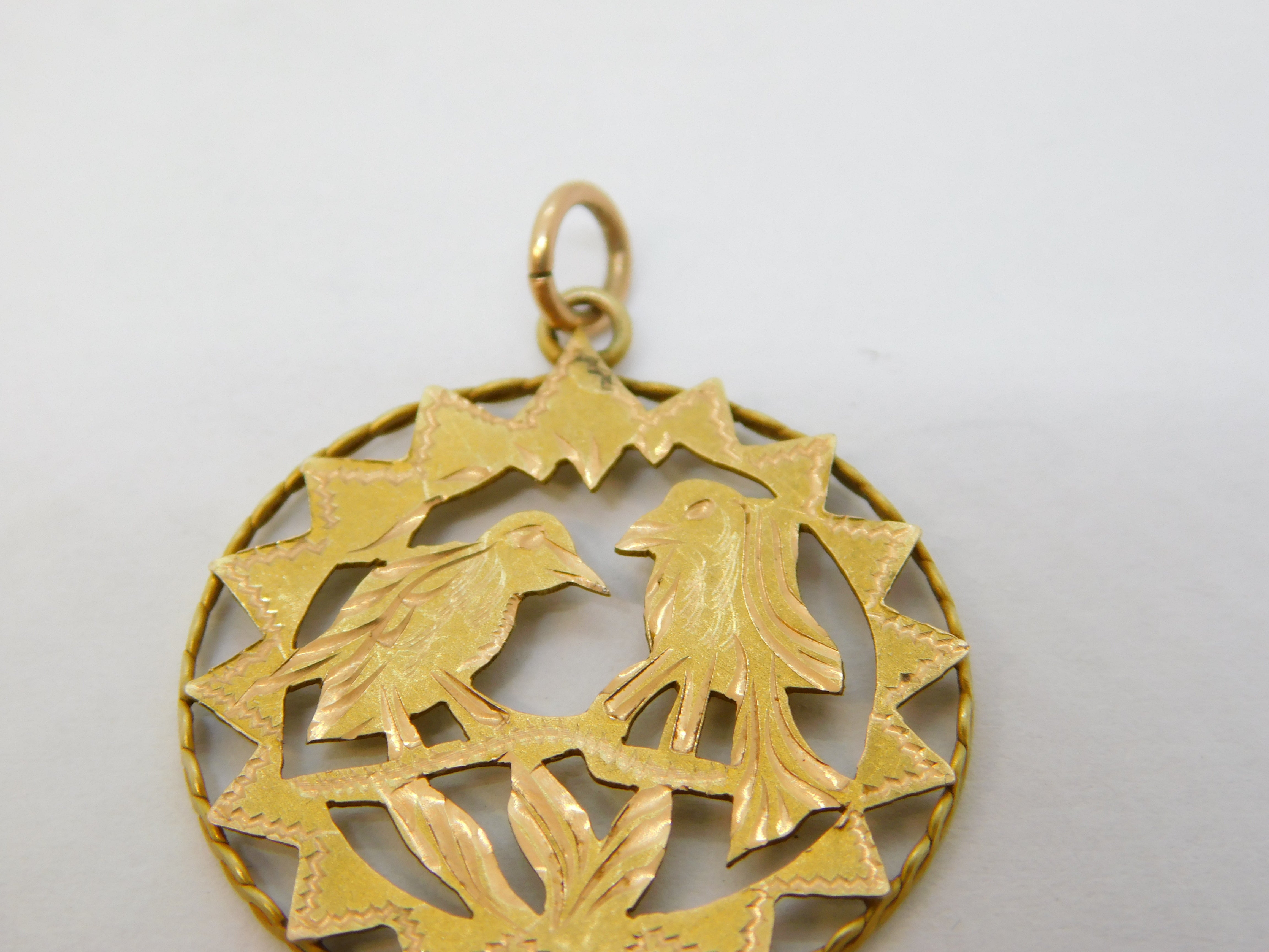 Details: A fantastic and wonderfully designed antique art deco 14ct yellow gold ornate pendant depicting a pair of love birds hallmarked to the reverse c1940. This is a wonderful item that would make a perfect gift or addition to any collection.
