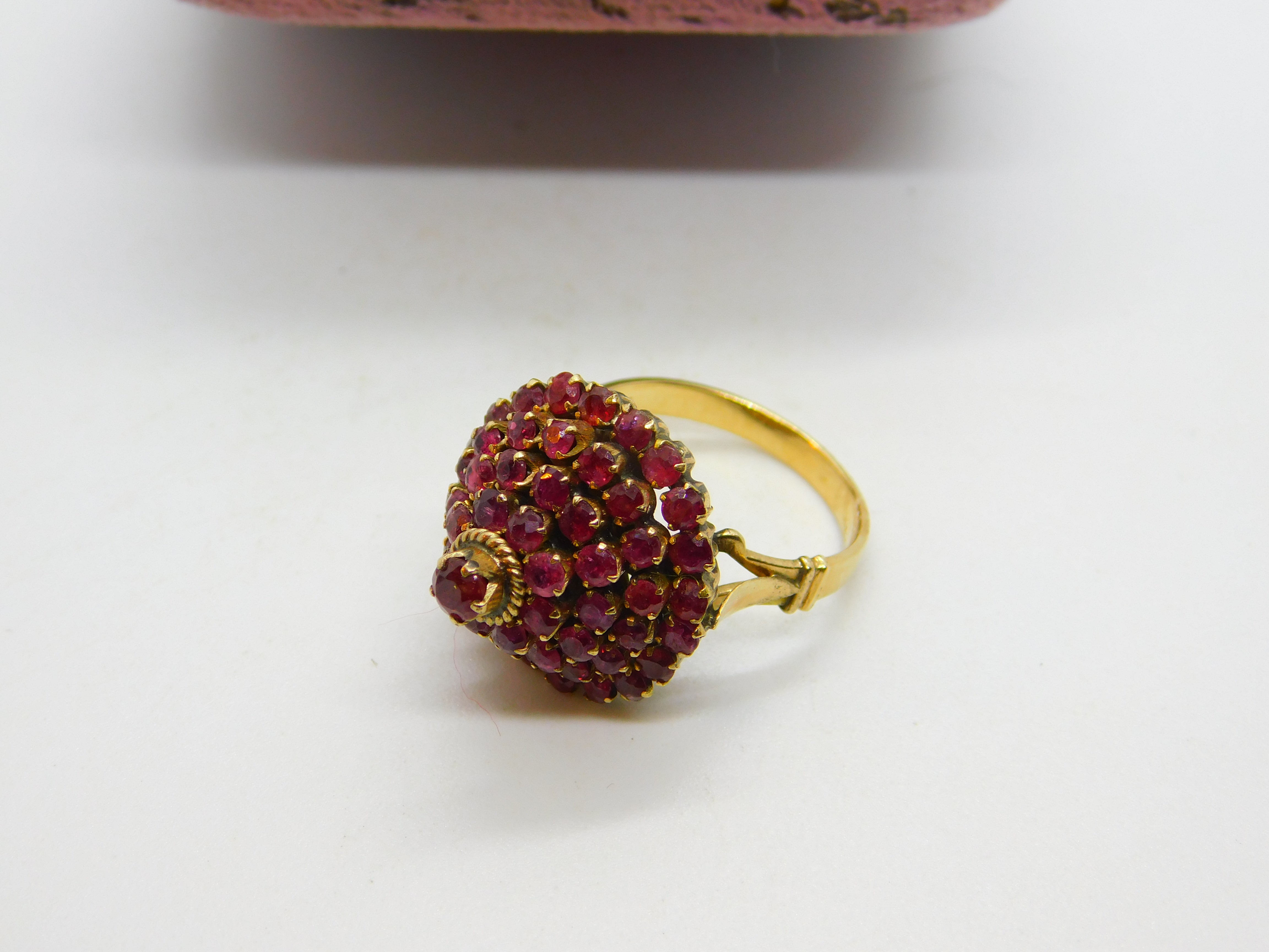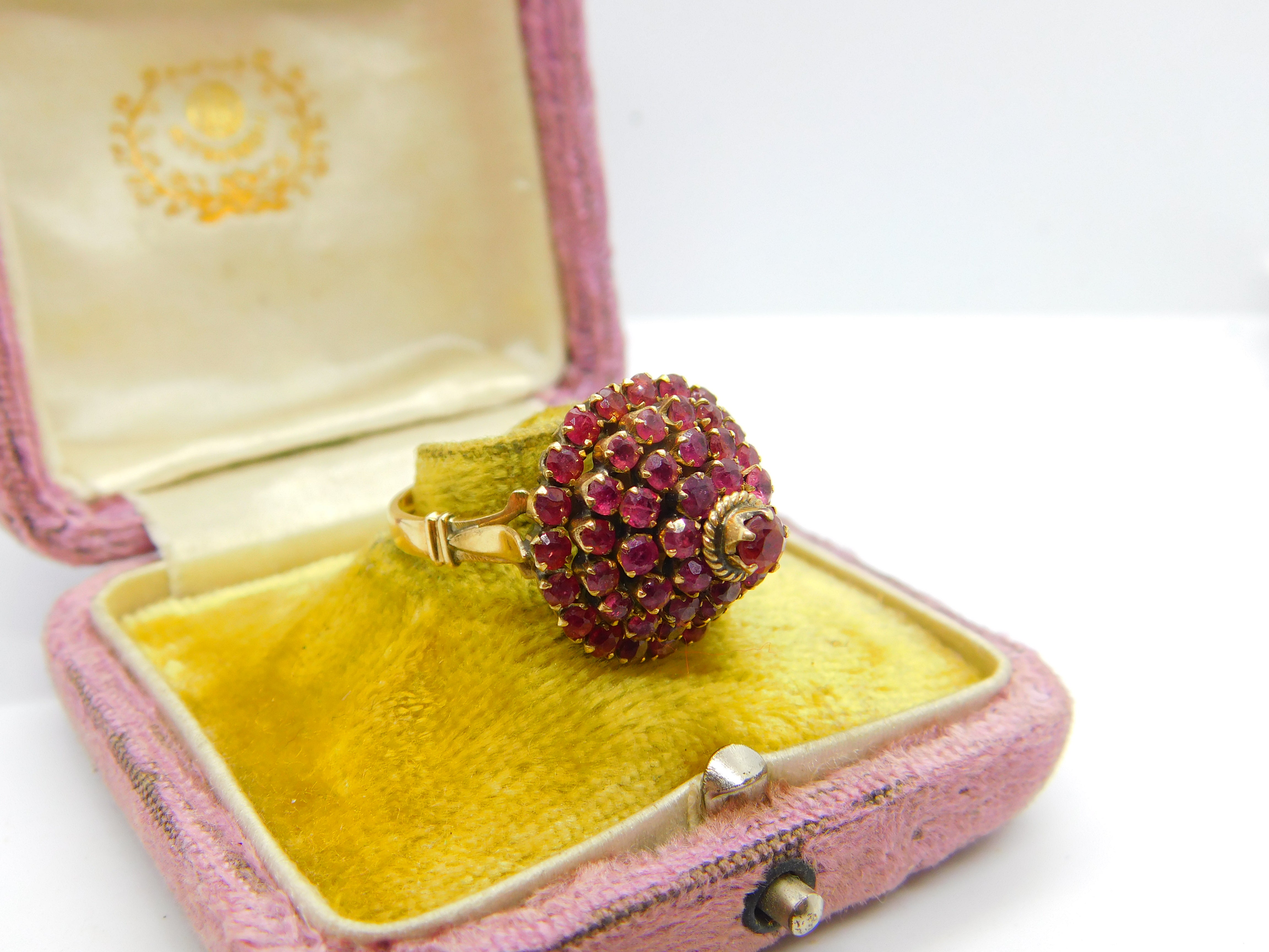 14ct Yellow Gold Ruby Set Pagoda Floral Cluster Ring Antique c1930 Art Deco