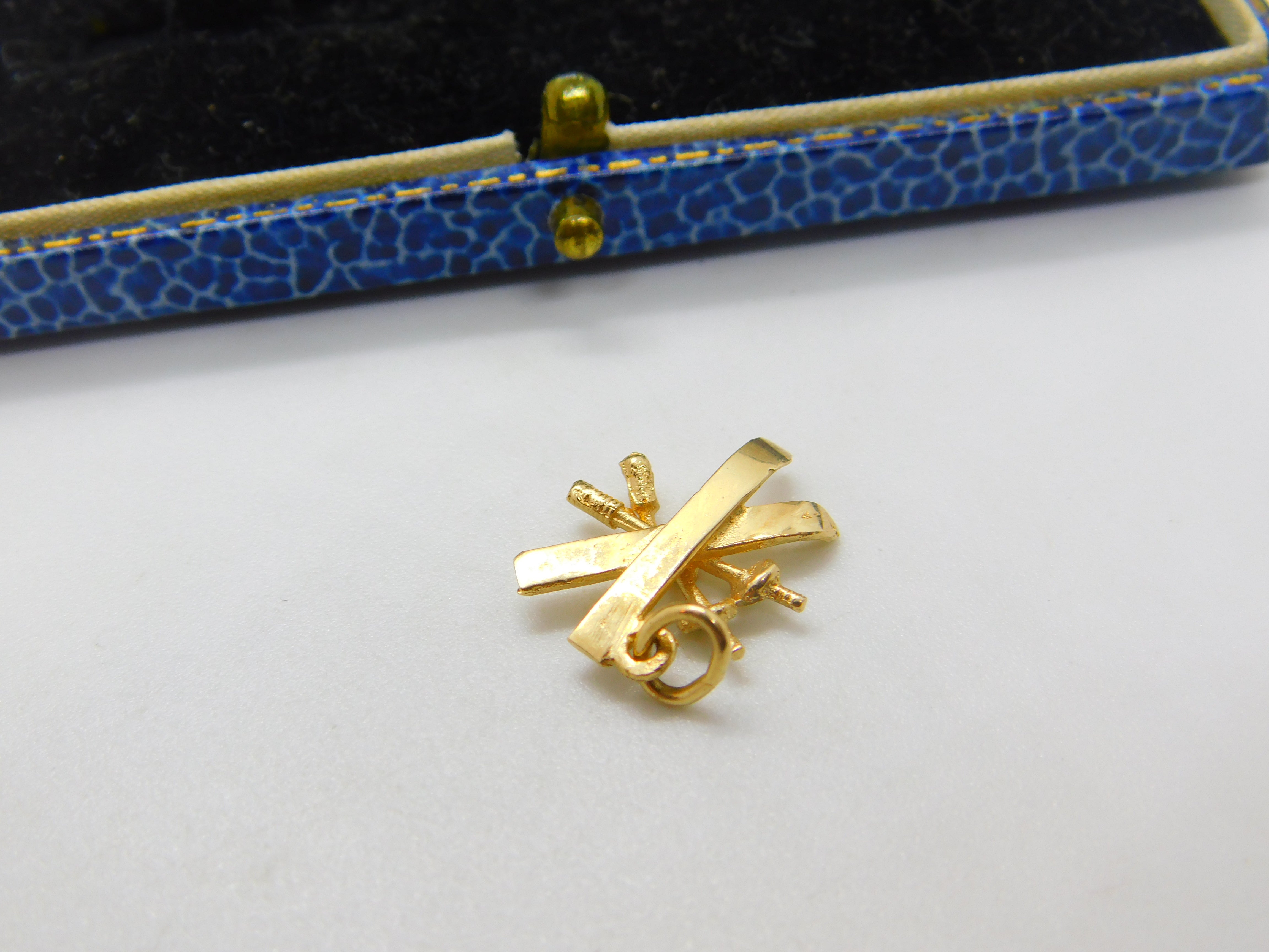 14ct Yellow Gold Skiing Skis & Poles Charm Pendant Vintage c1970