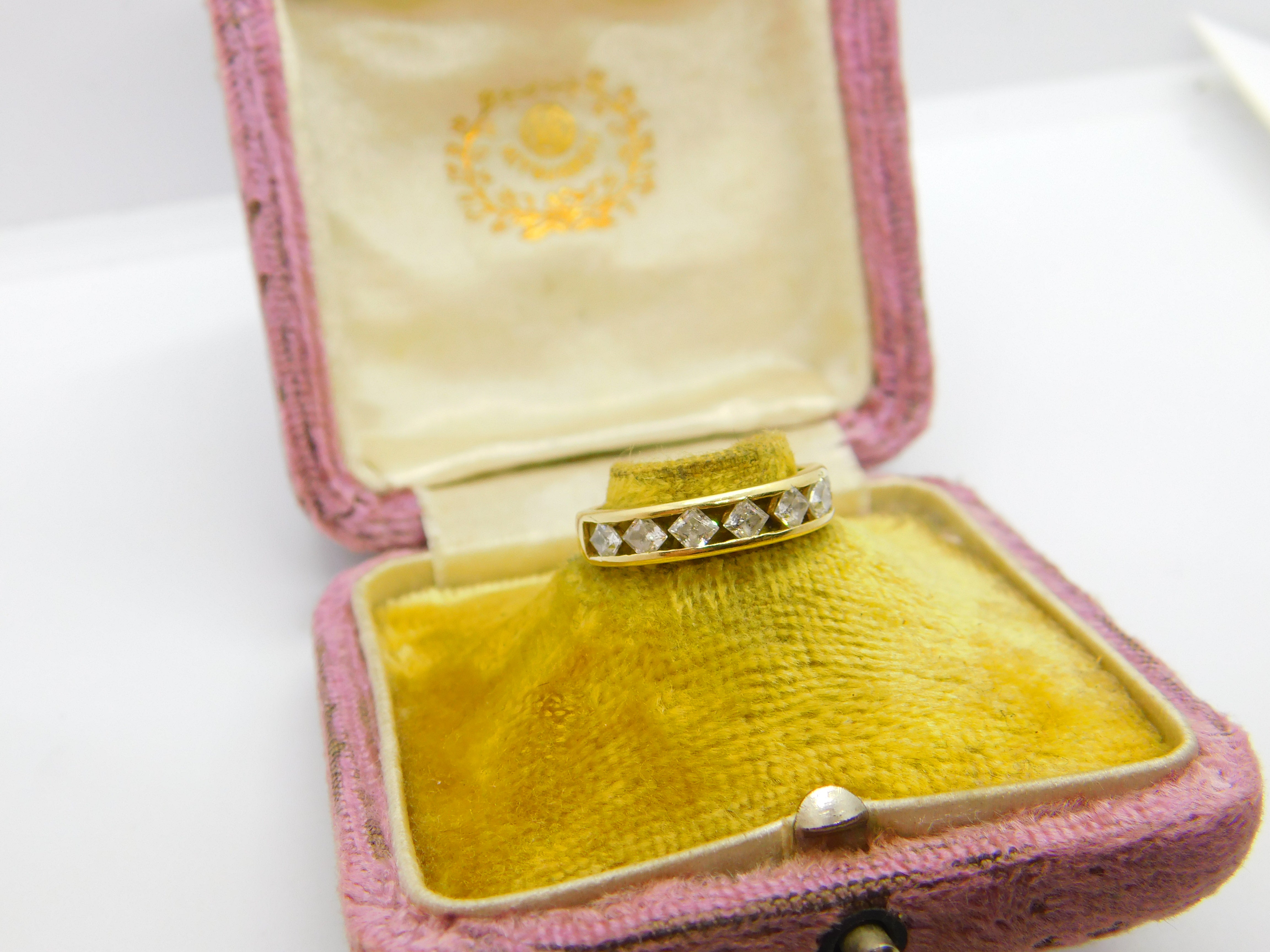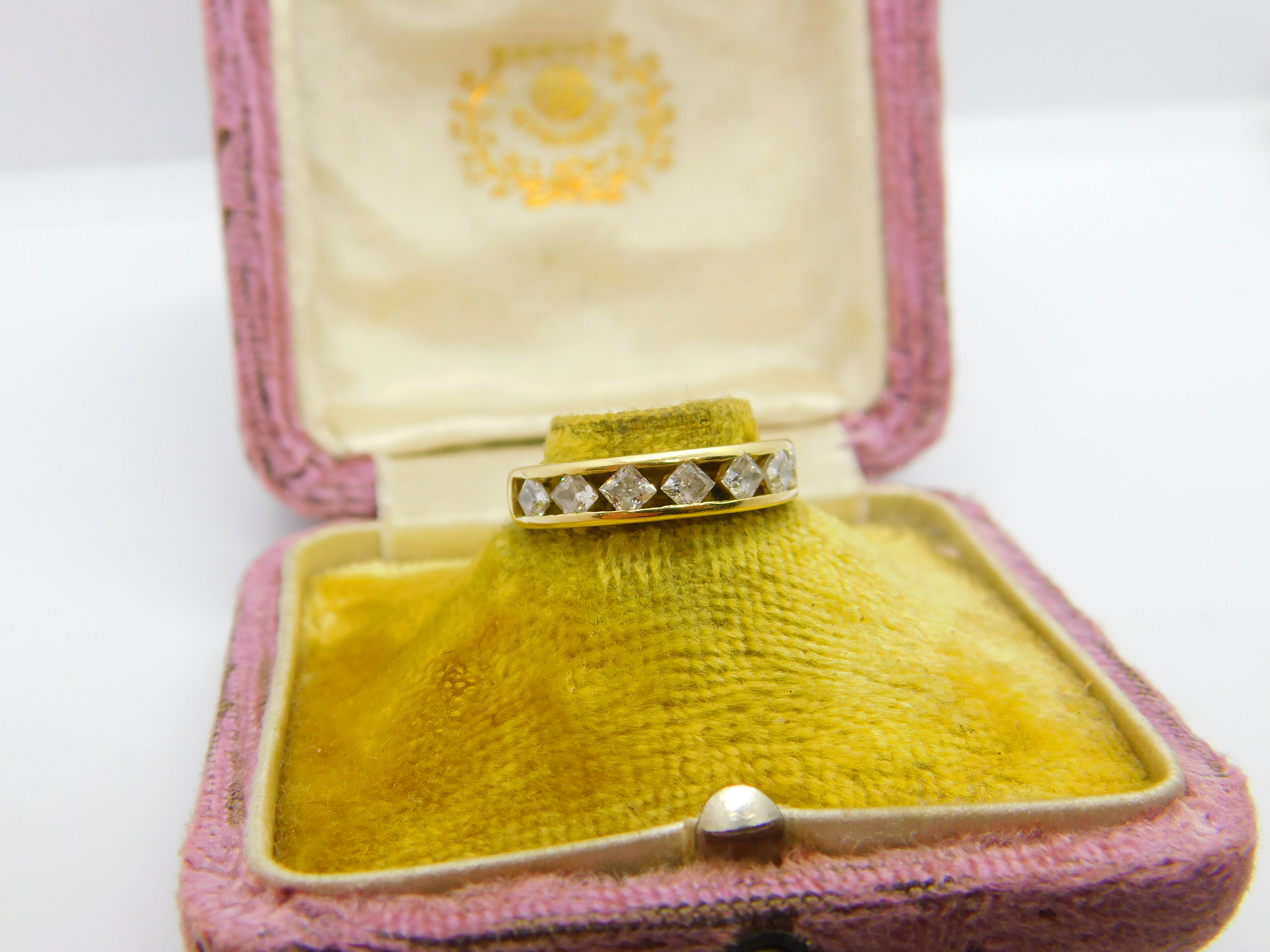 Details: A fantastic and wonderfully designed vintage 14ct yellow gold half eternity ring set with white topaz stones hallmarked Birmingham 2002 to the interior band. This is a wonderful item that would make a perfect gift or addition to any collection. The BOX pictured is for PRESENTATION ONLY and is NOT included in the listings but used to frame the pictures unless specifically stated otherwise.