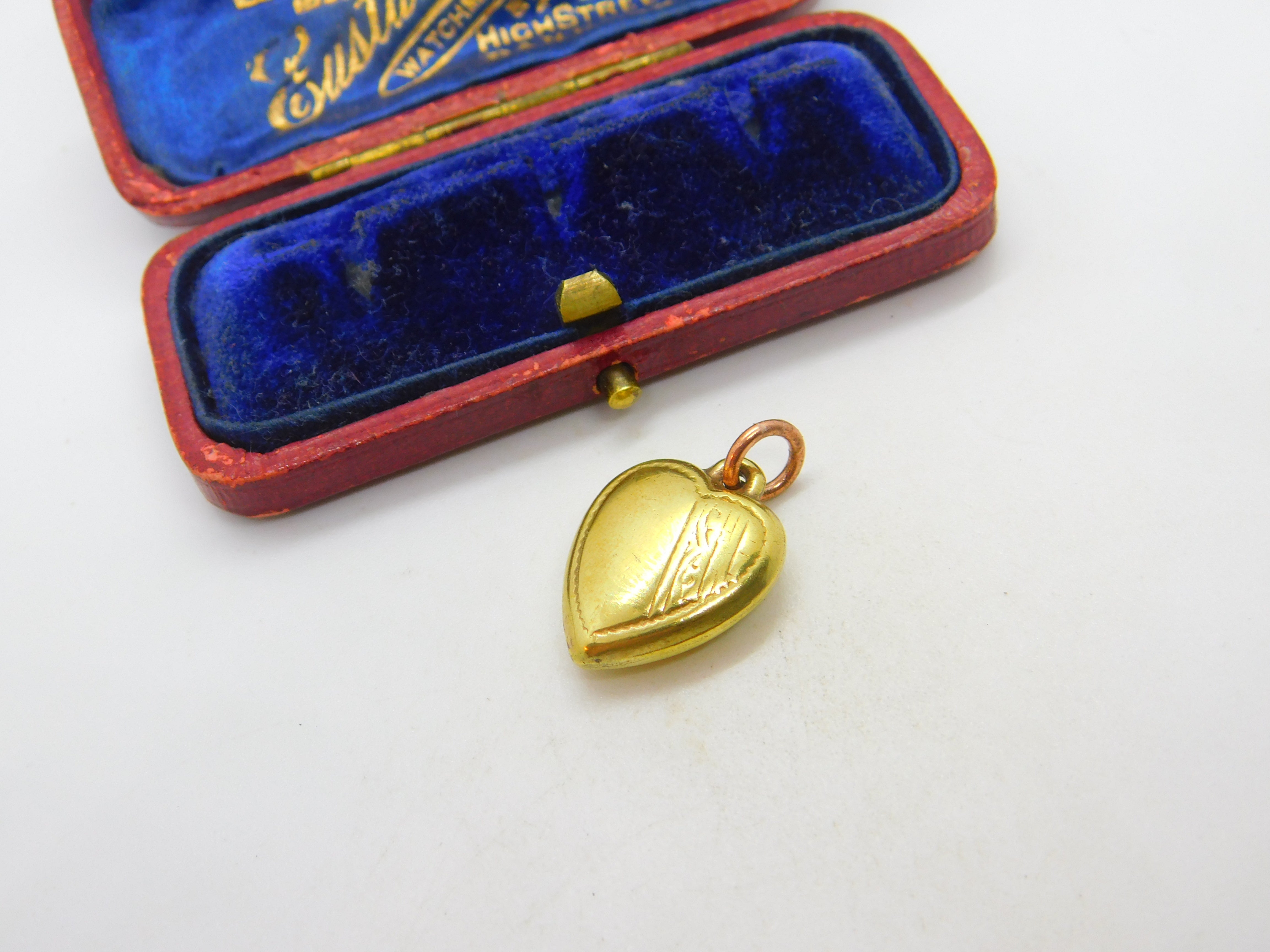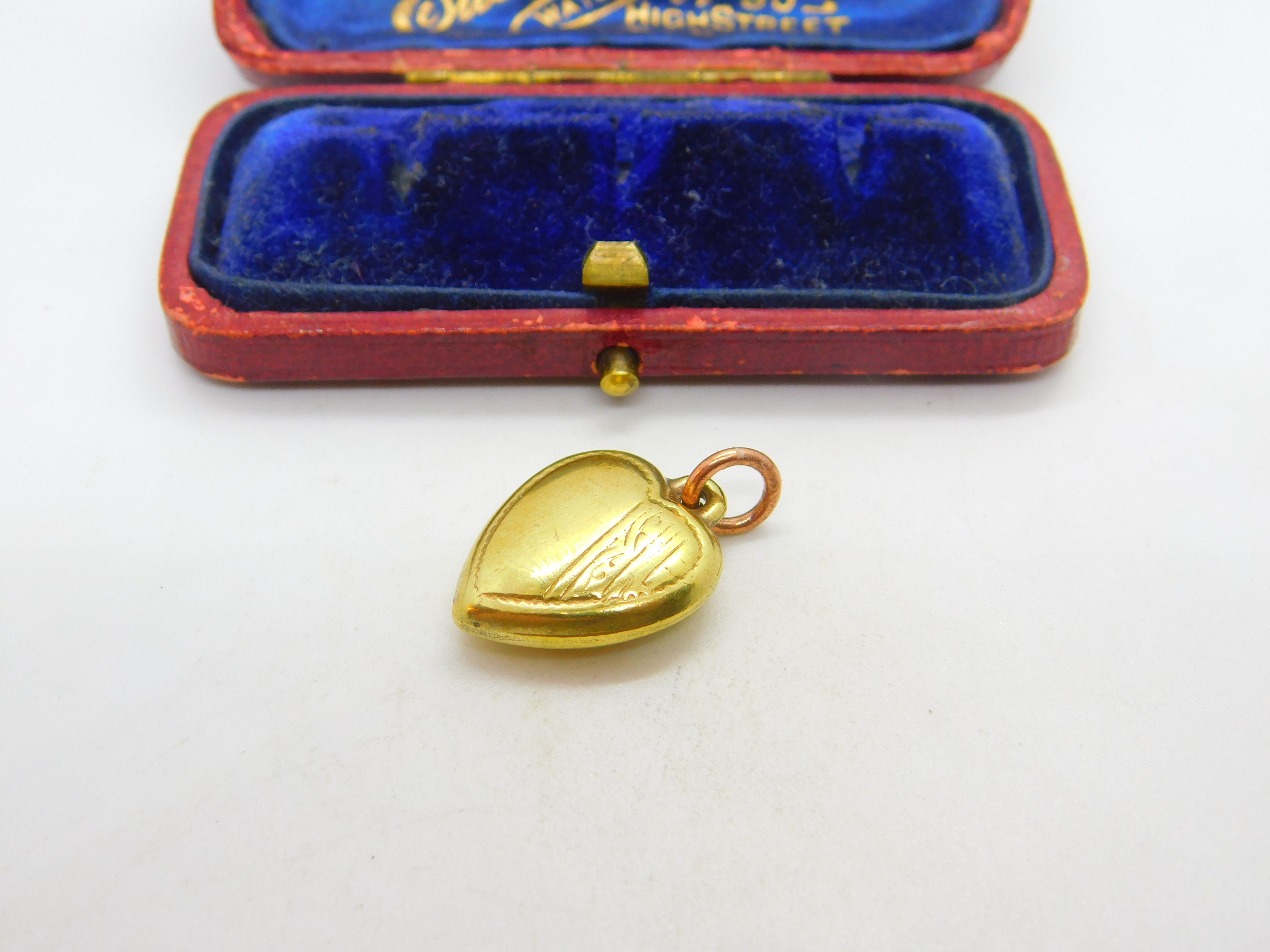 15ct Yellow Gold Cased Puffy Heart Charm or Pendant Antique c1930 Art Deco