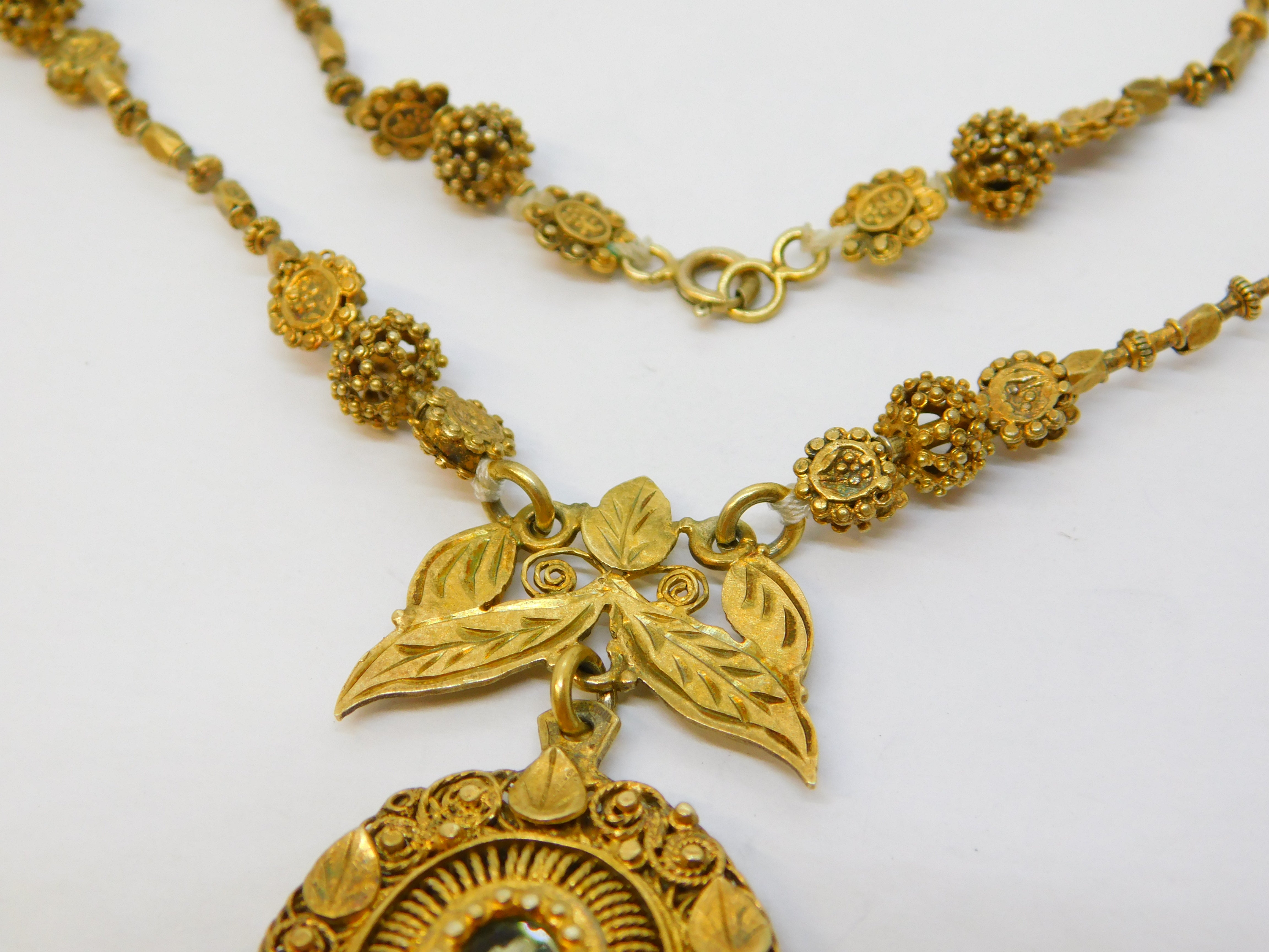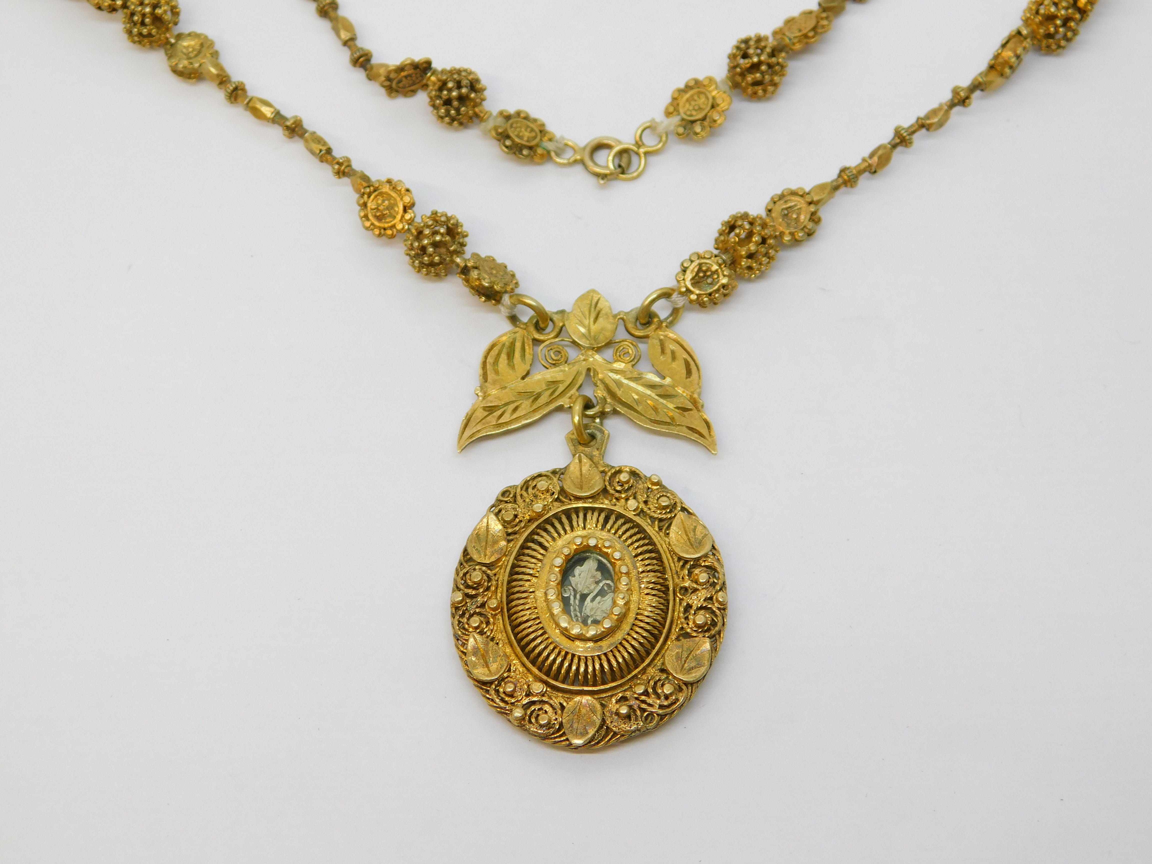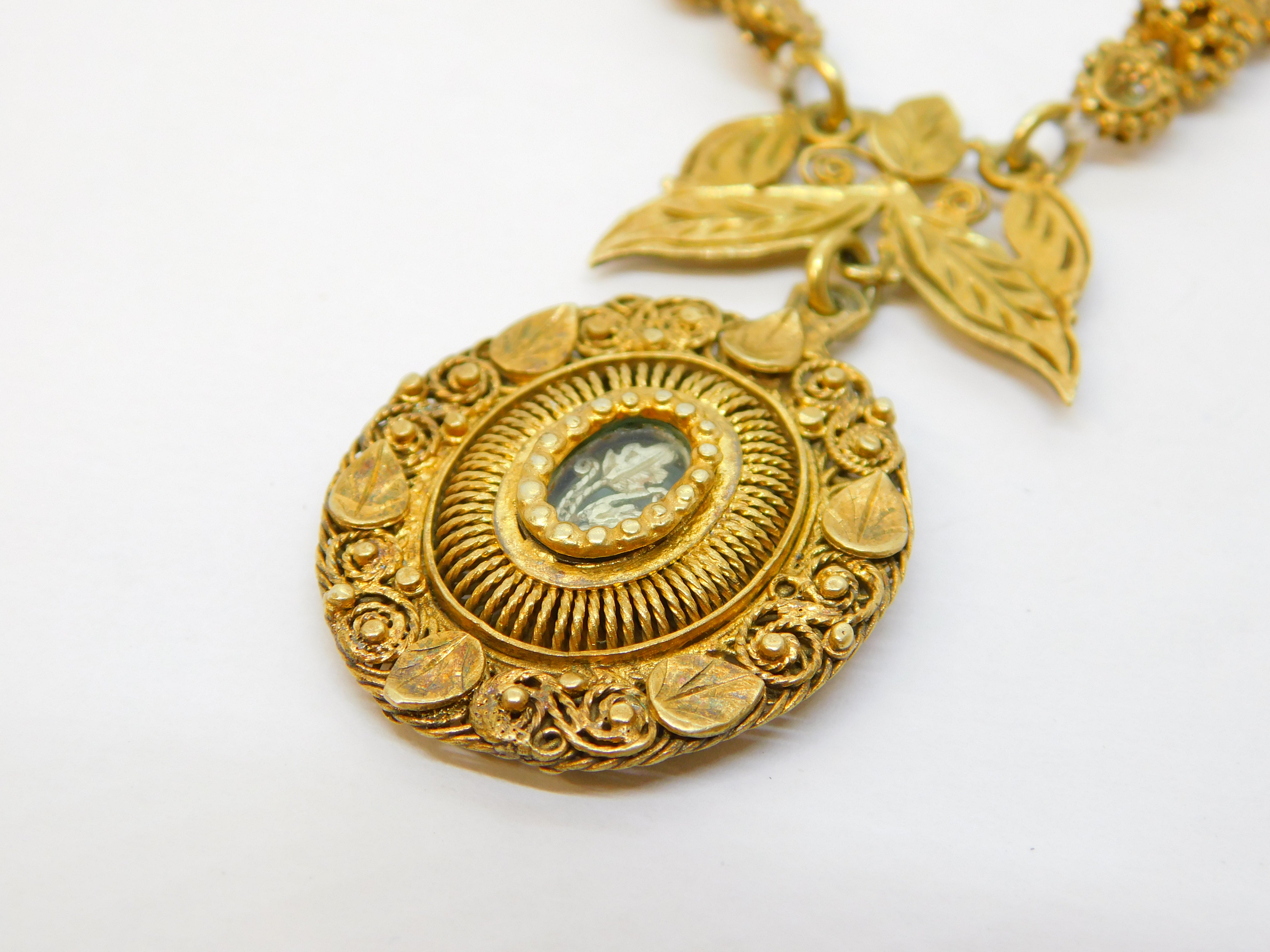 17th Century Spanish Colonial Silver Gilt Cannetille Reliquary Floral Necklace Antique