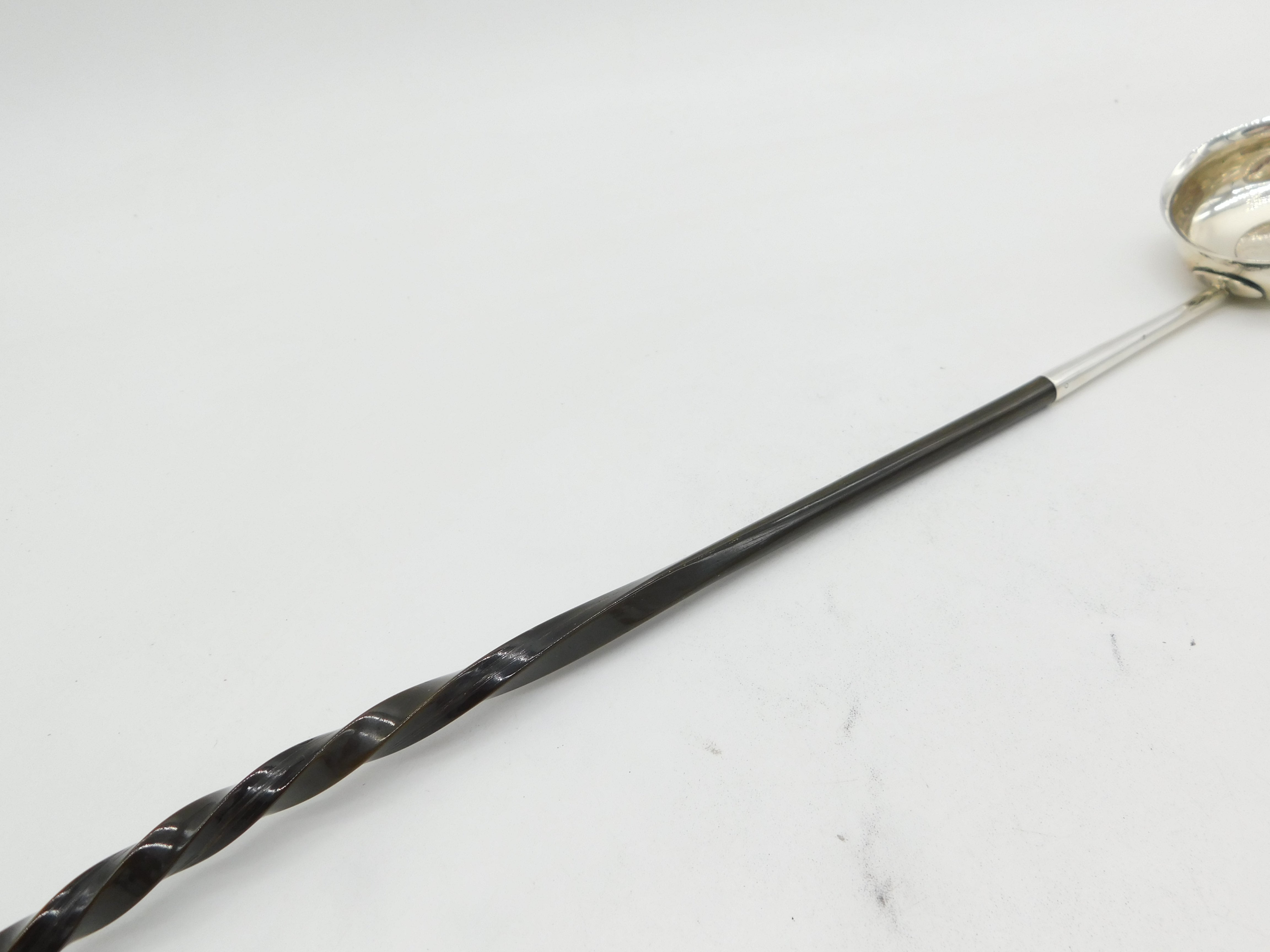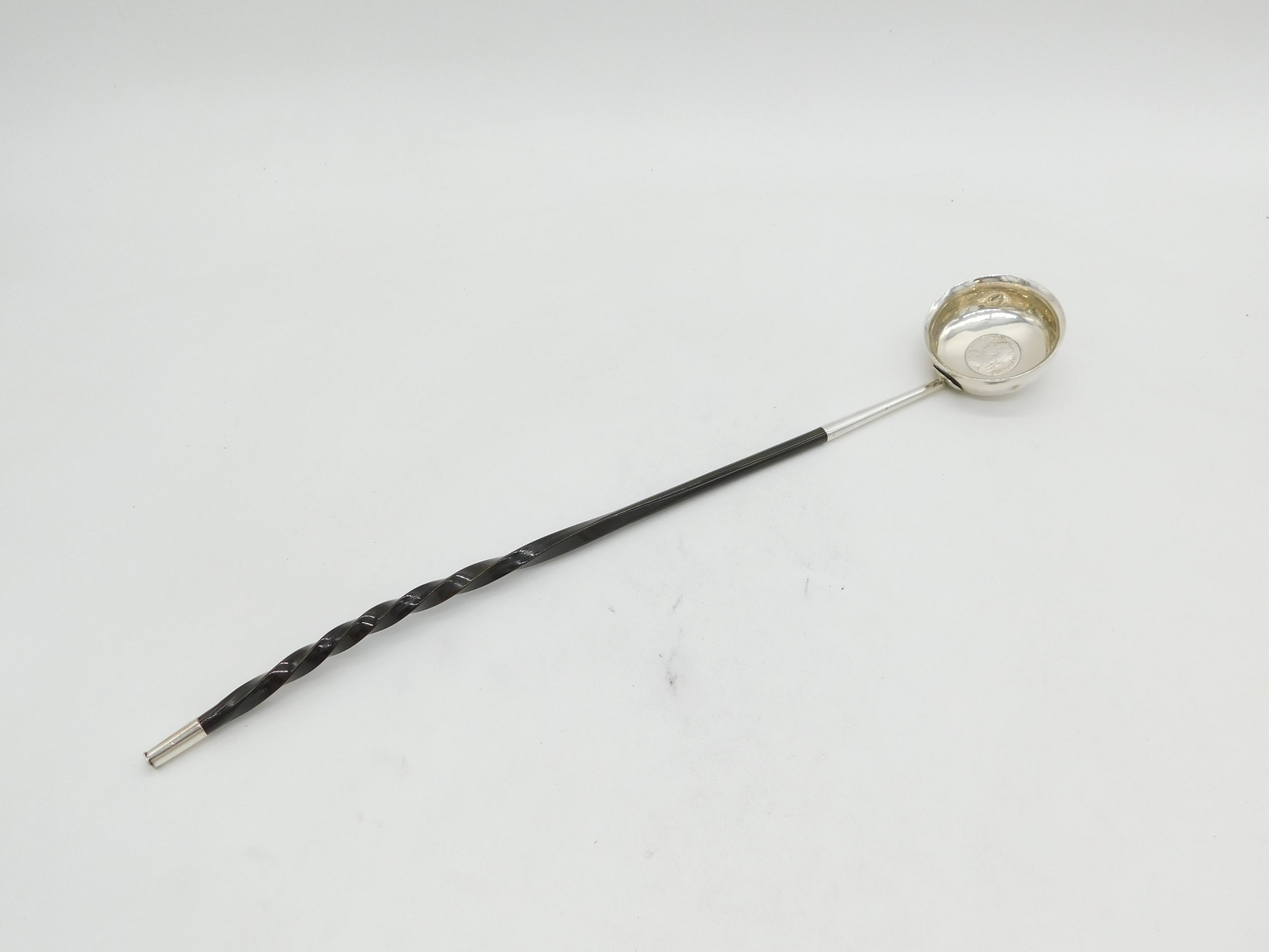 Details: A fantastic and wonderfully designed antique 17th century sterling silver long handled toddy ladle set with a King Charles II shilling coin dated 1681. This is a wonderful item that would make a perfect gift or addition to any collection.