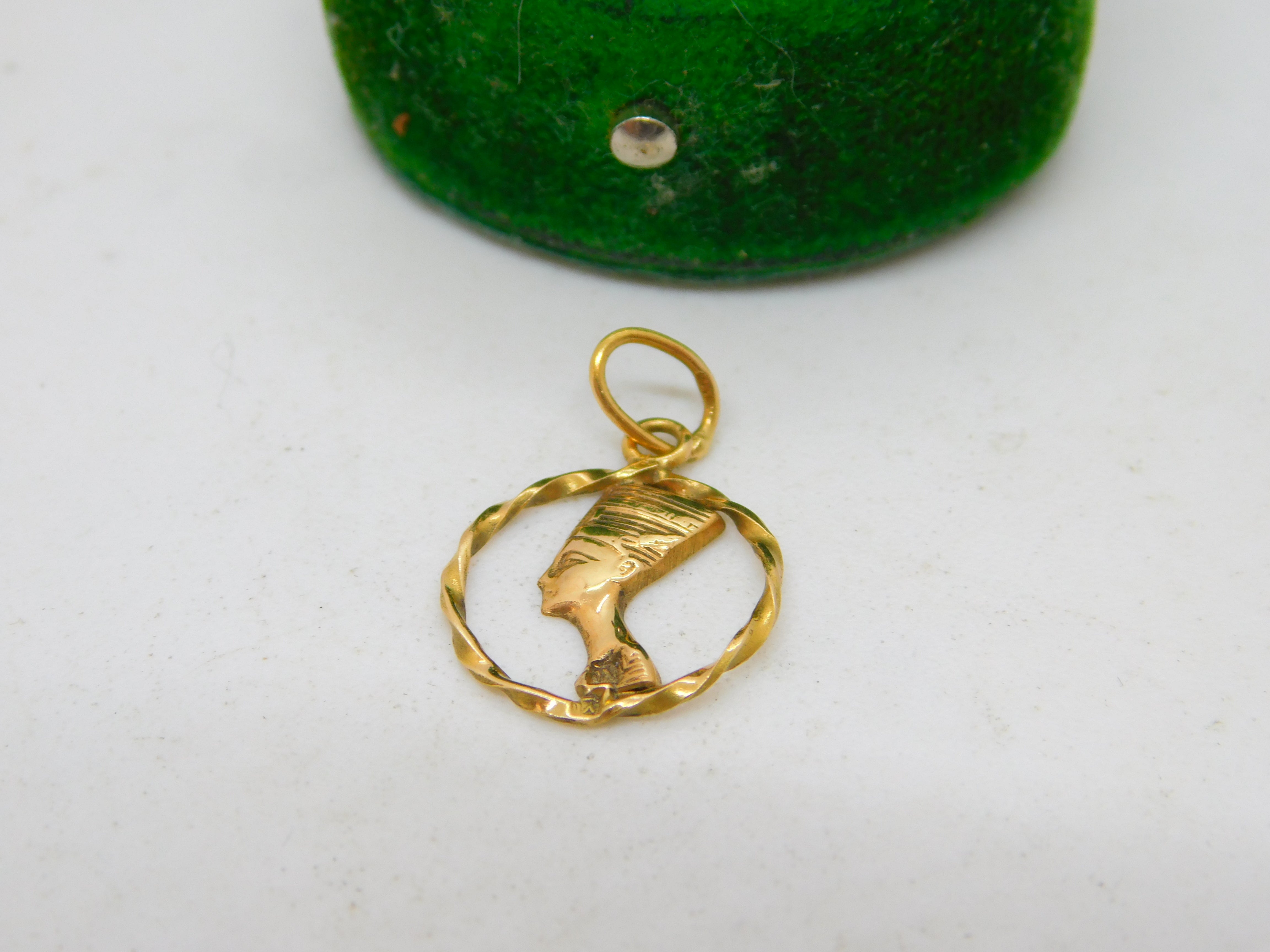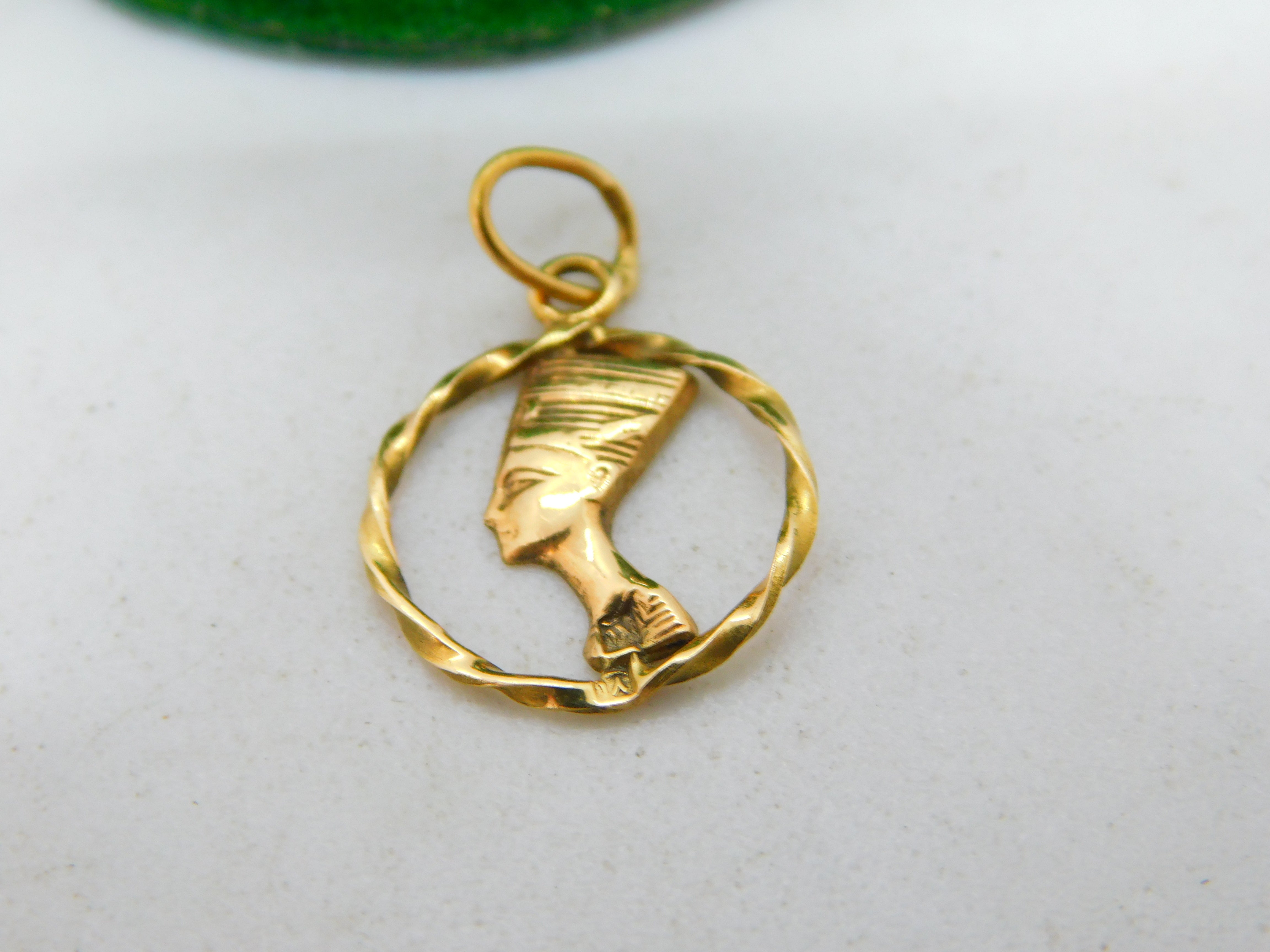 18ct Egyptian Yellow Gold Nefertiti Pharaoh Charm Pendant Vintage c1960