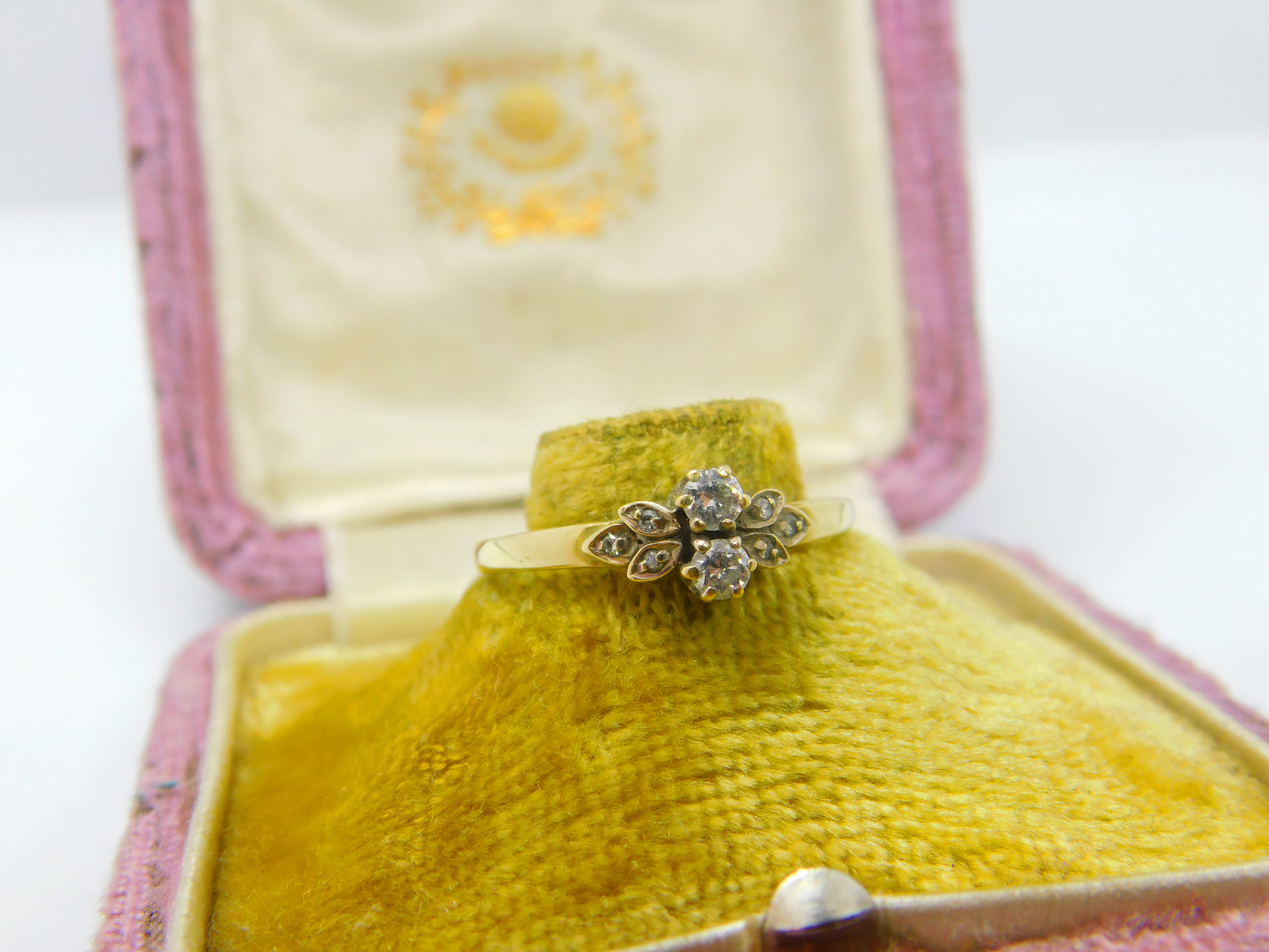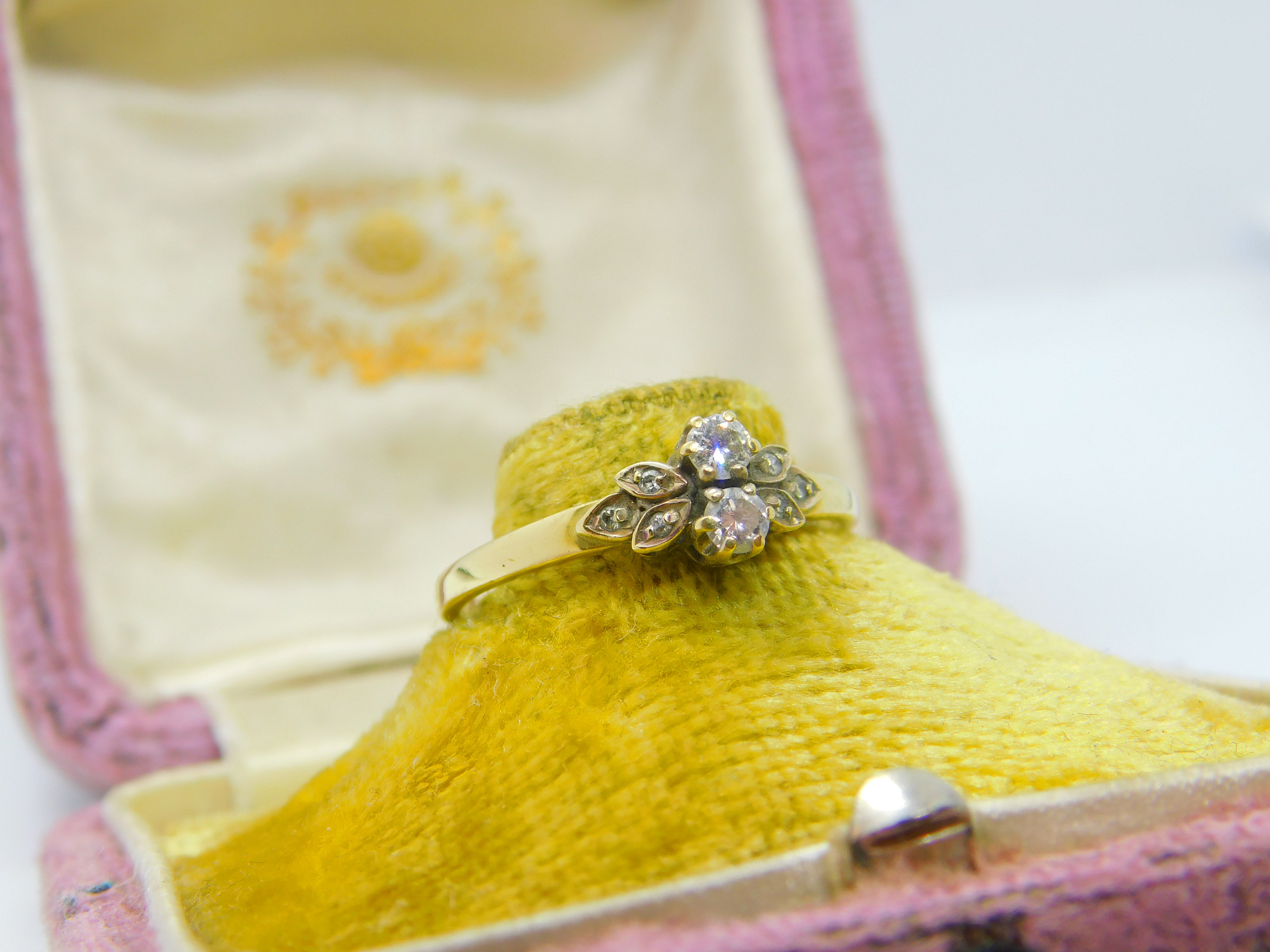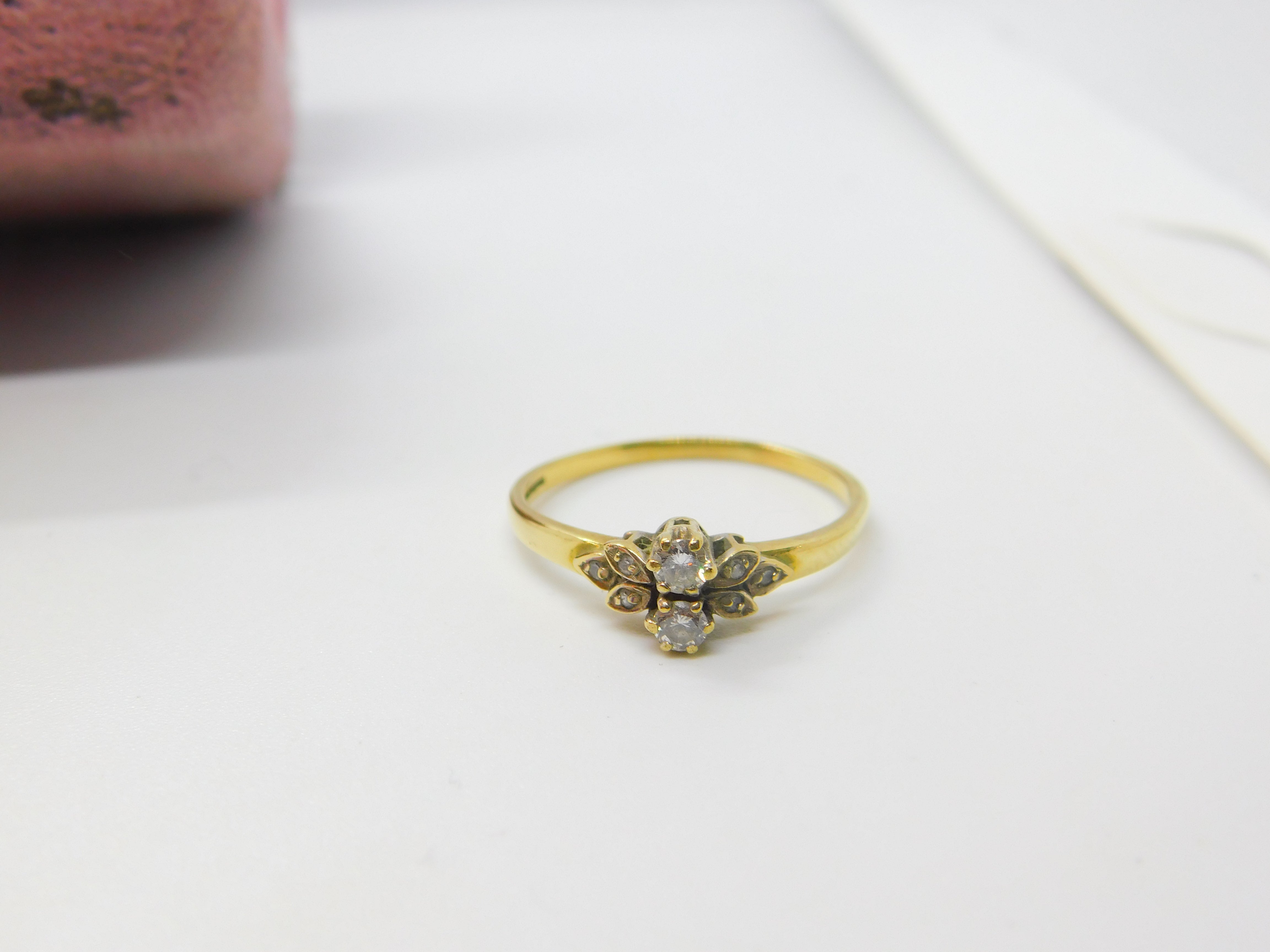 18ct Gold & 0.2ct Diamond Daisy Flower Band Ring Vintage 1969 London