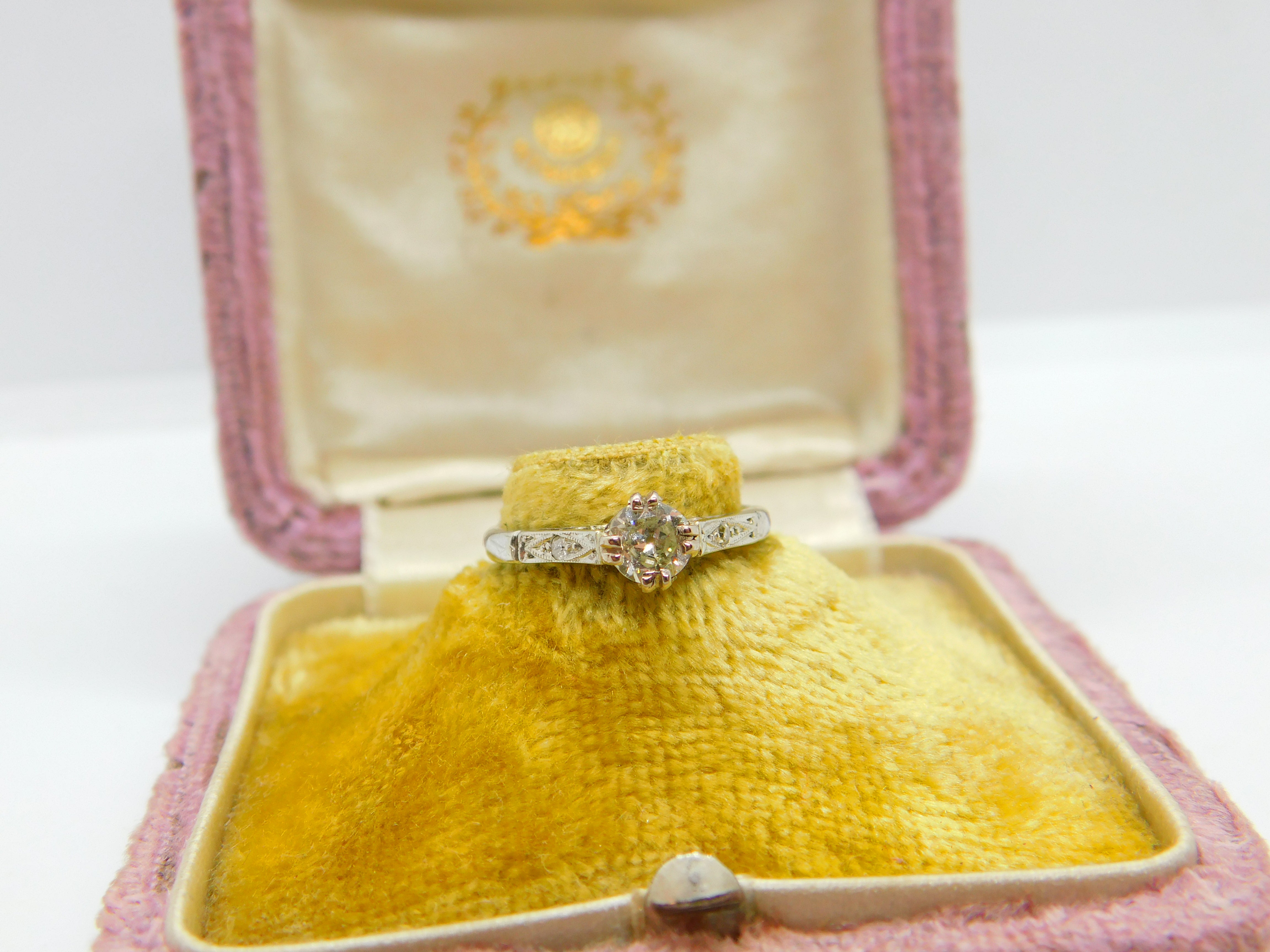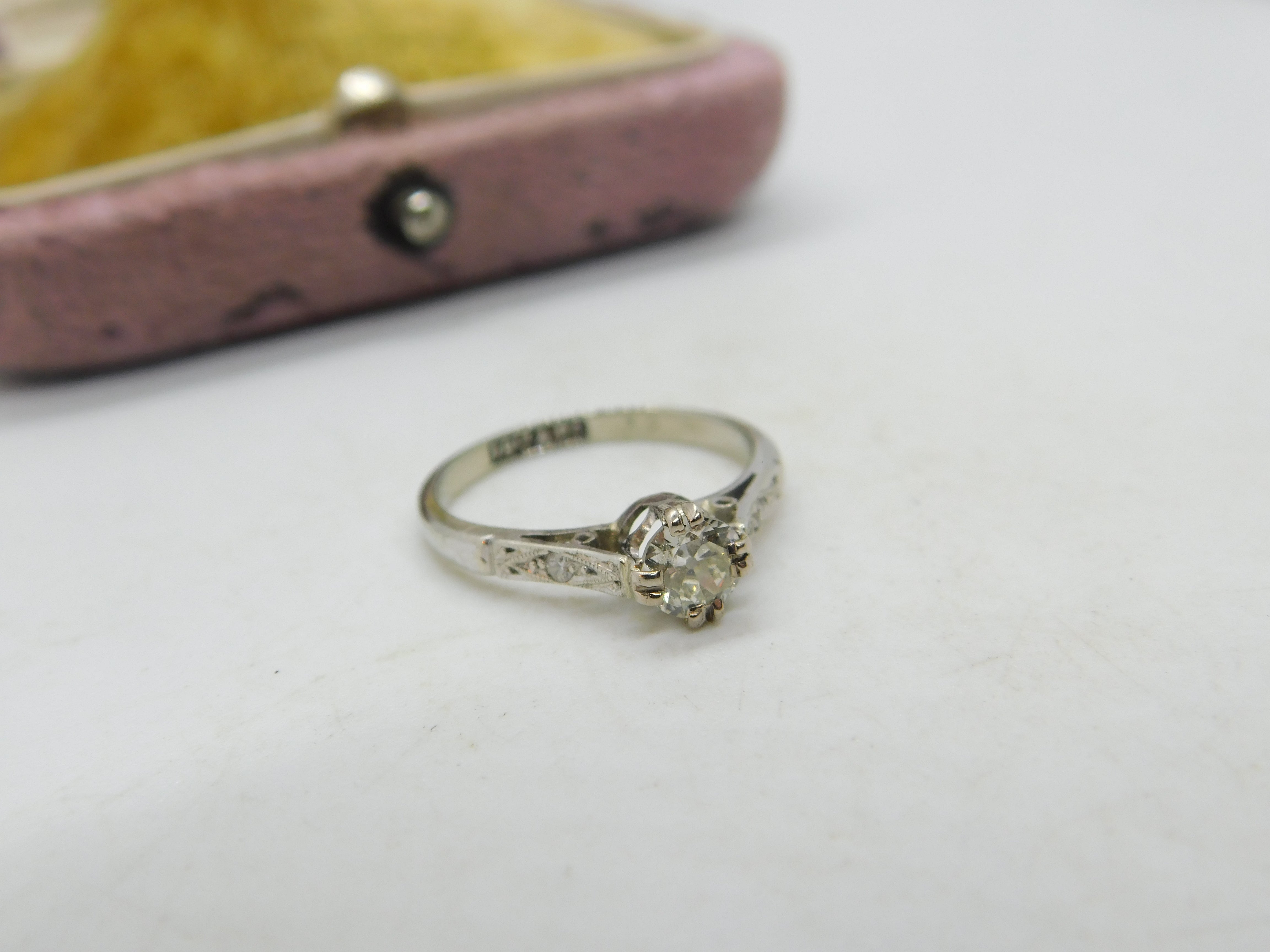 18ct Gold & Platinum Set 0.25ct Diamond Solitaire Ring Antique c1920 Art Deco