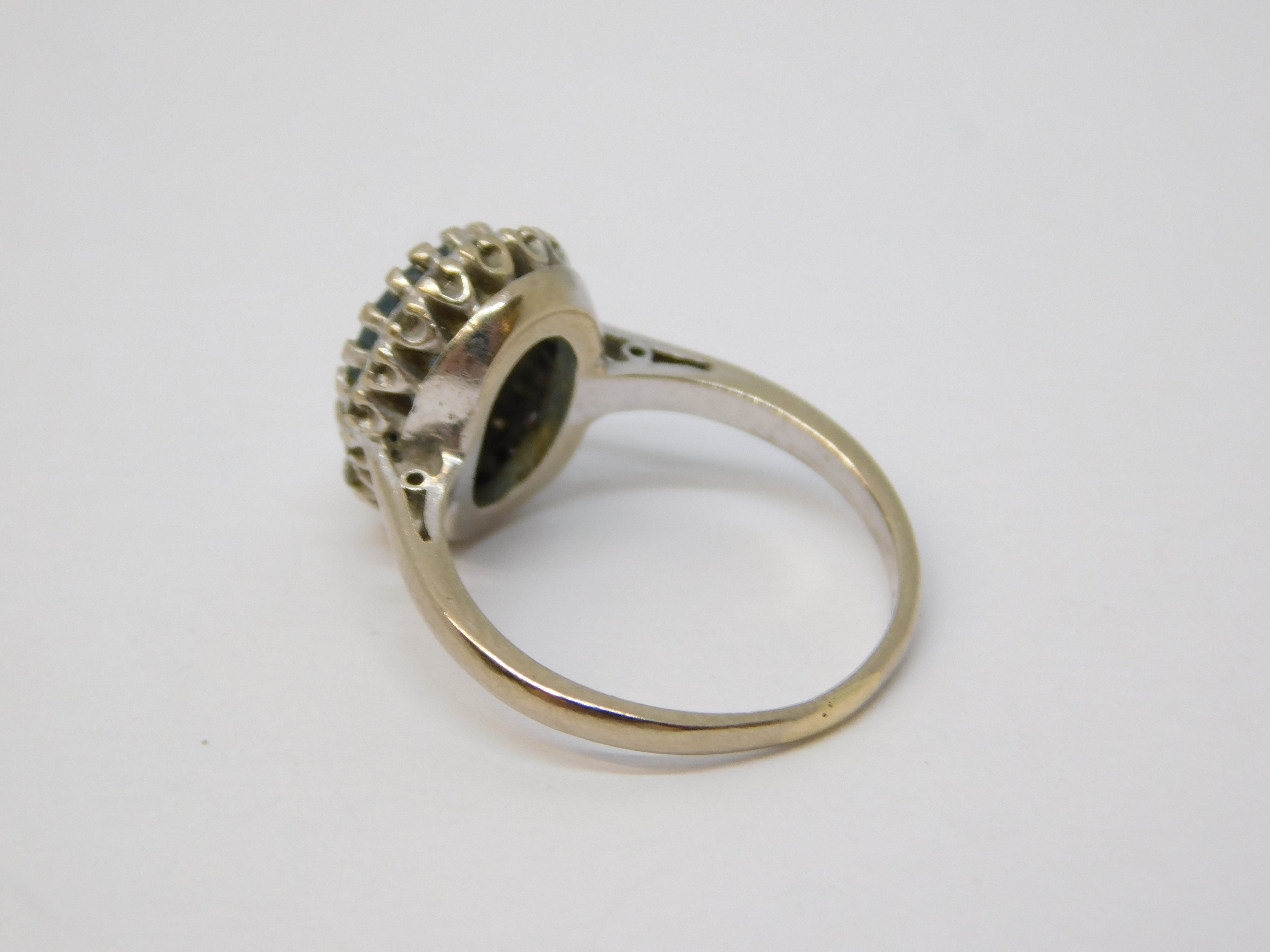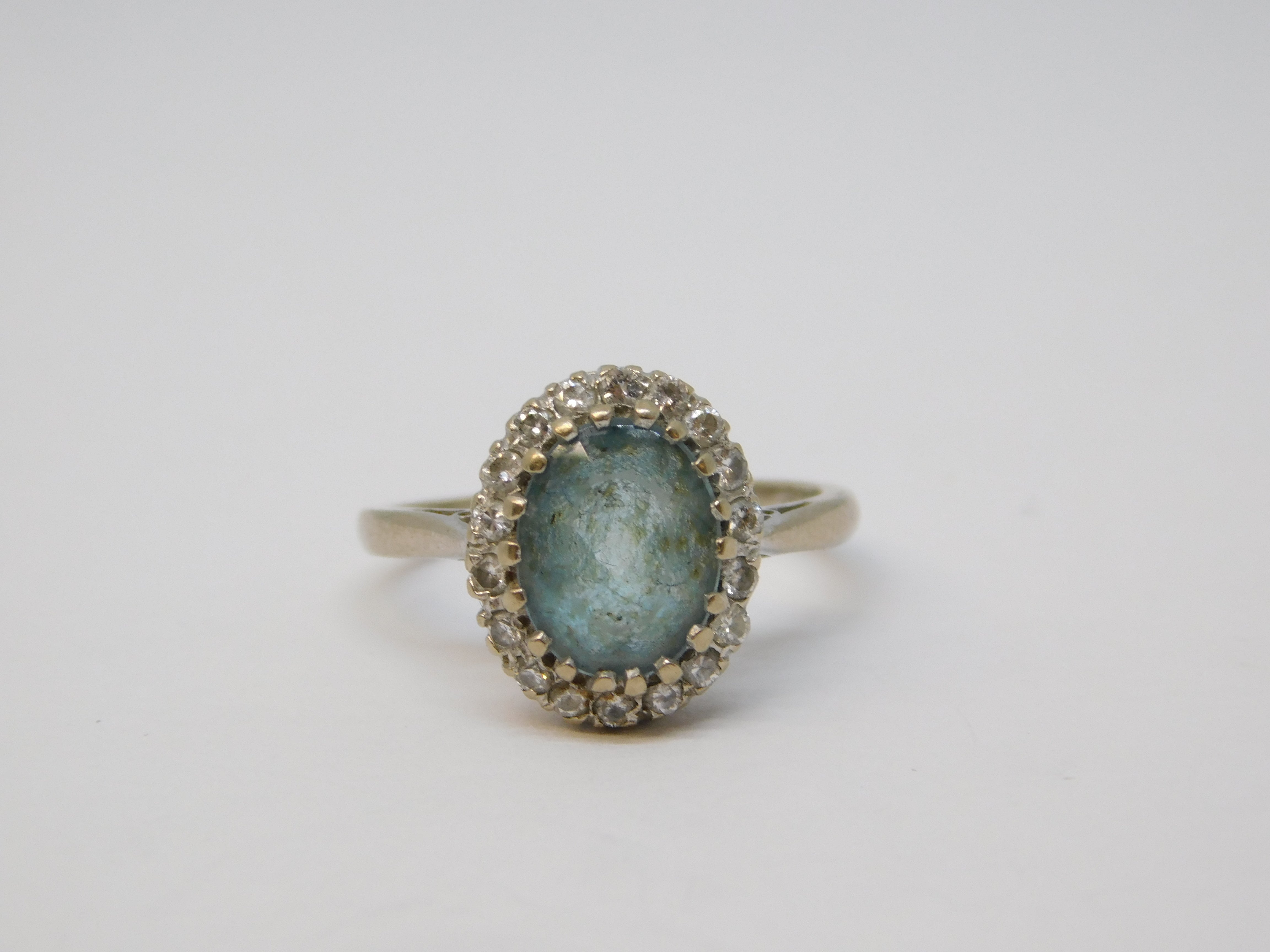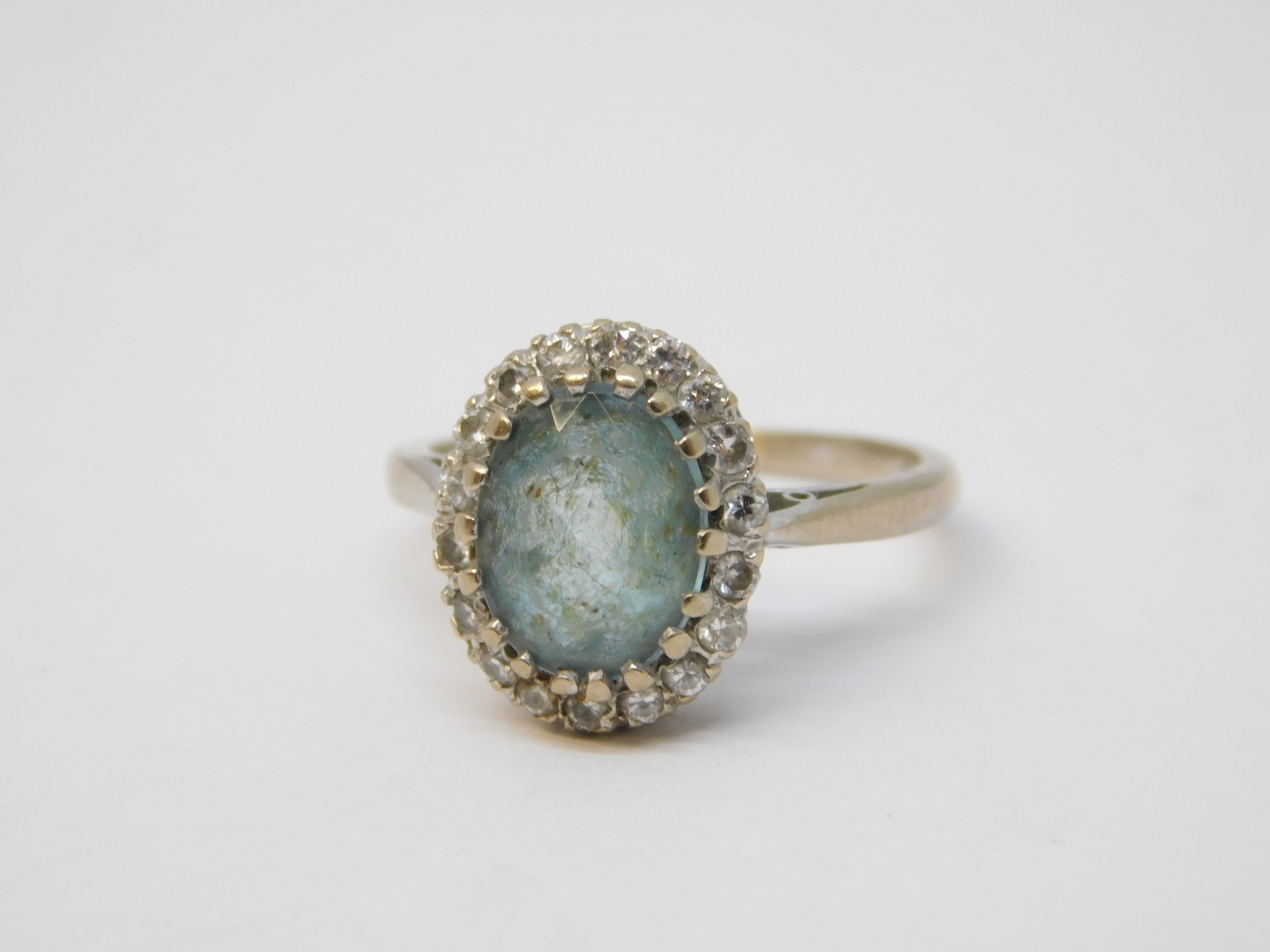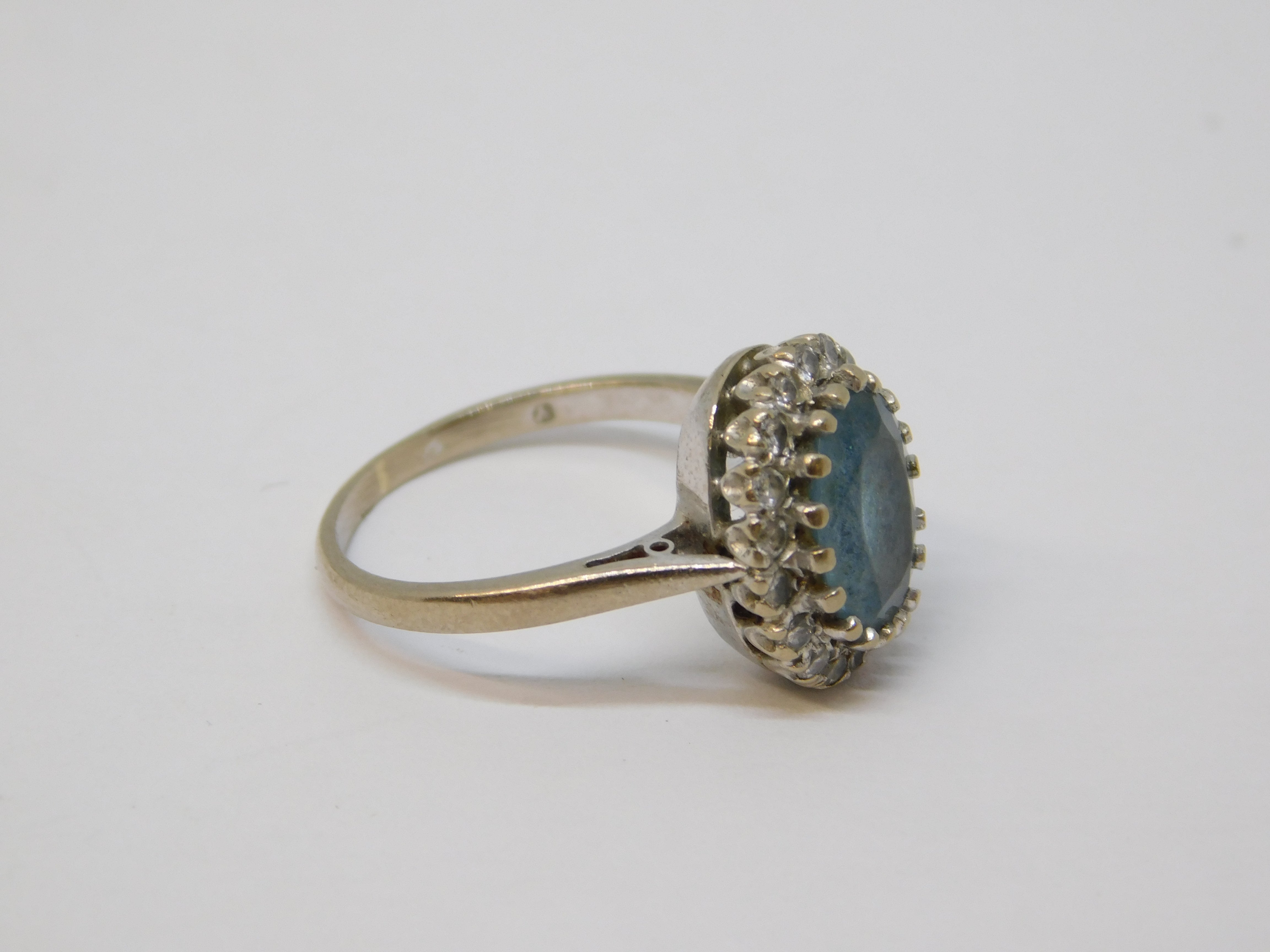 18ct White Gold, Blue Aquamarine & Diamond Cluster Ring Vintage 1962 London