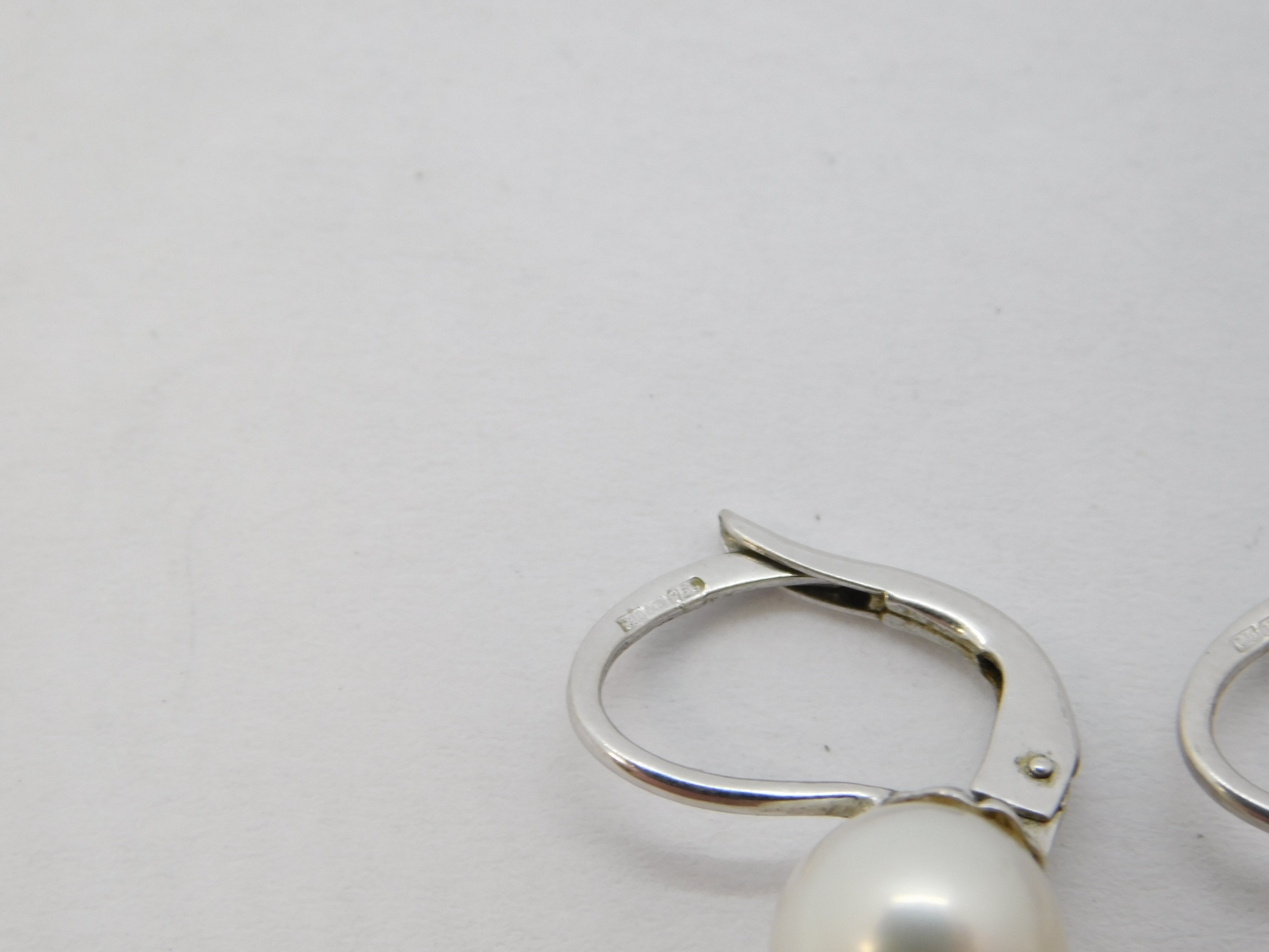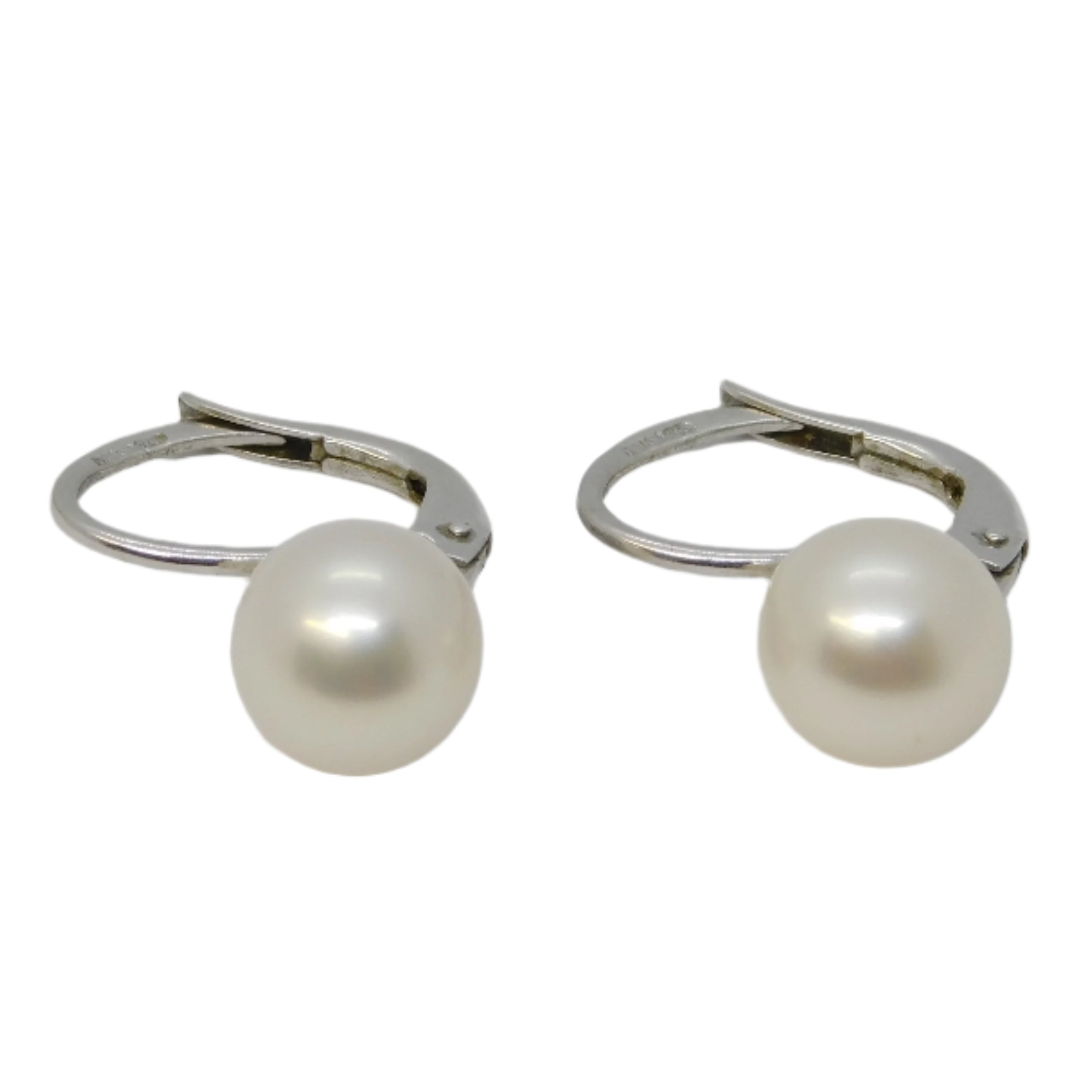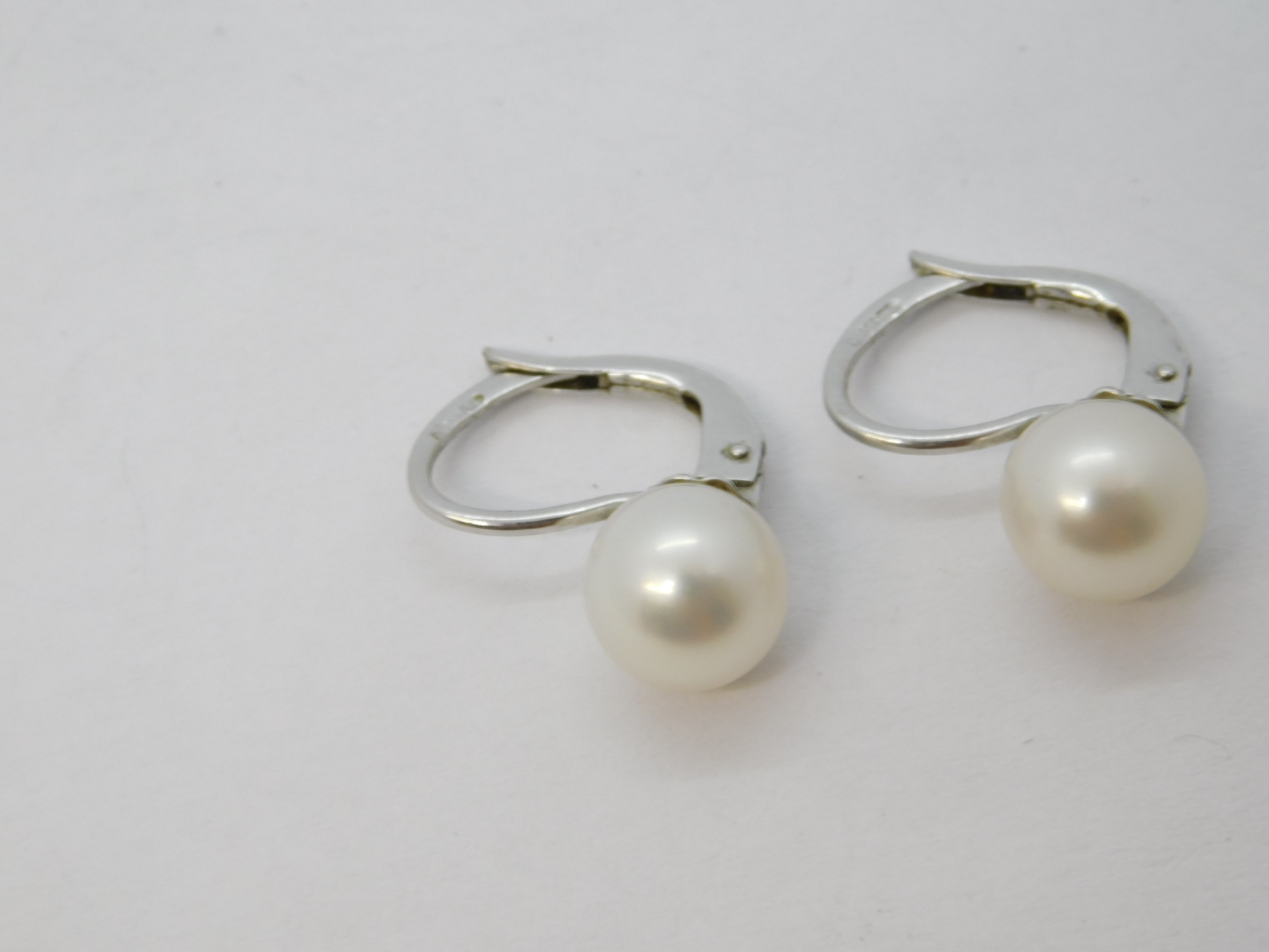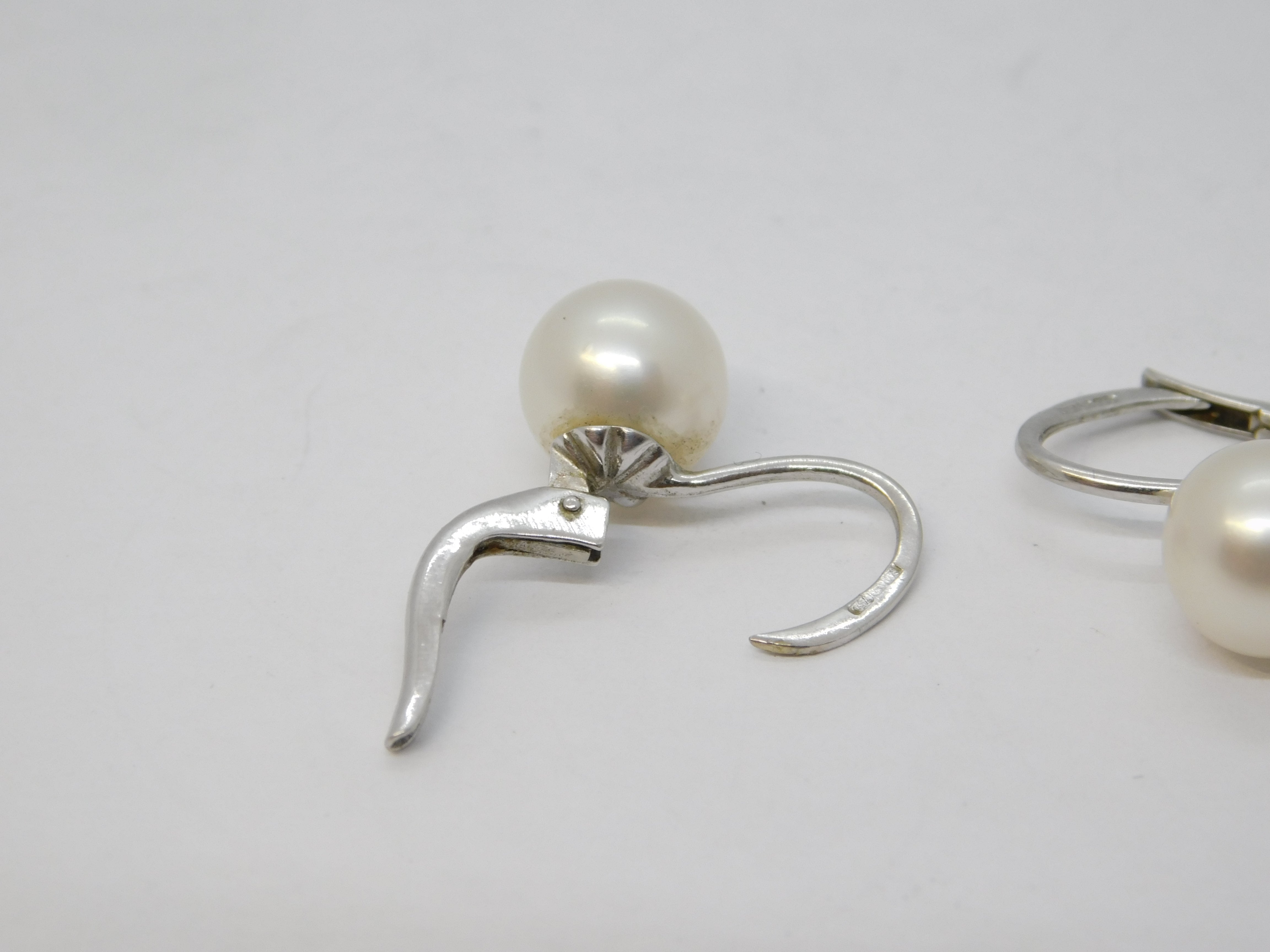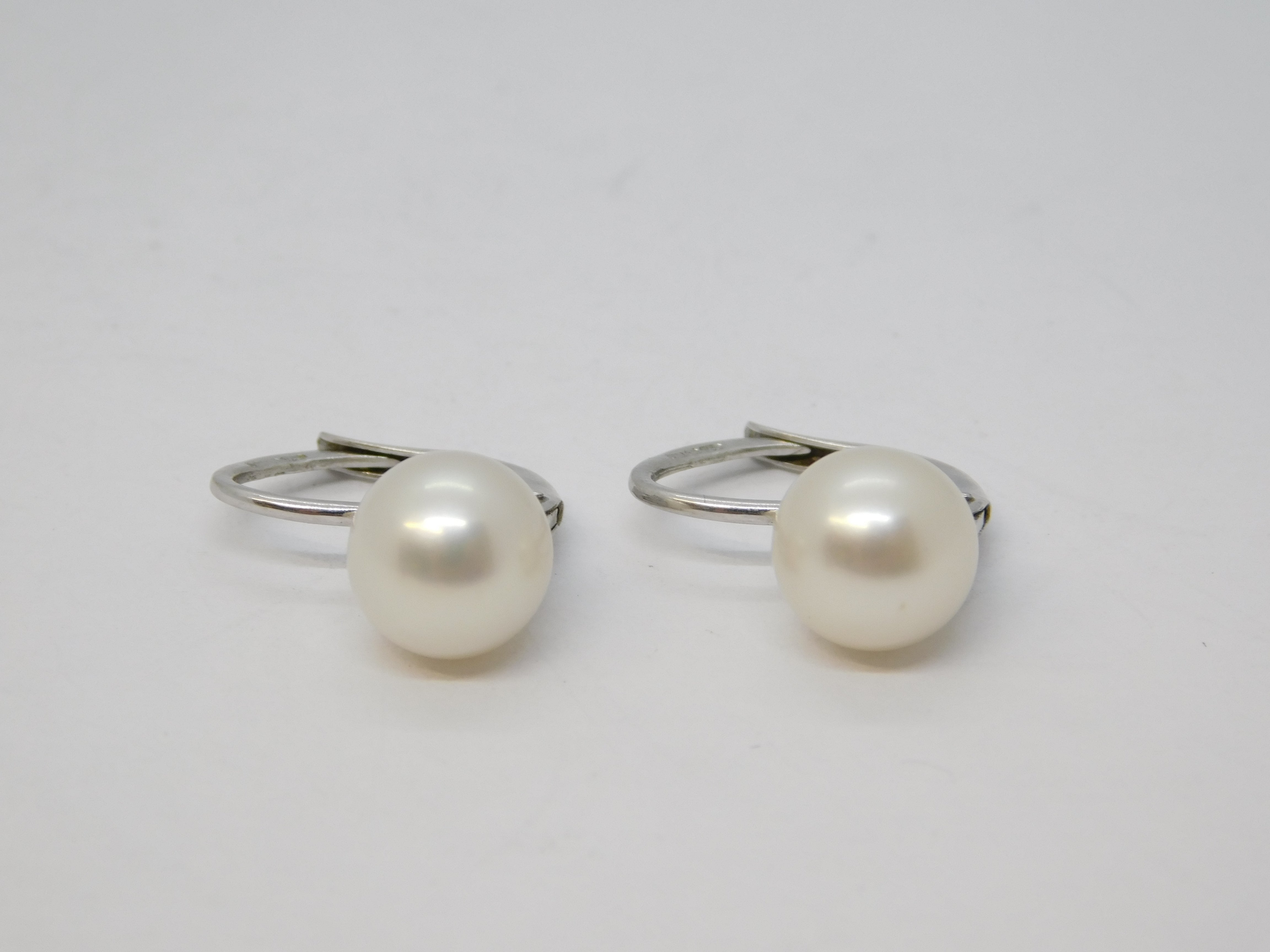 18ct White Gold, Cultured Pearl Hook Huggie Earrings Vintage c1990