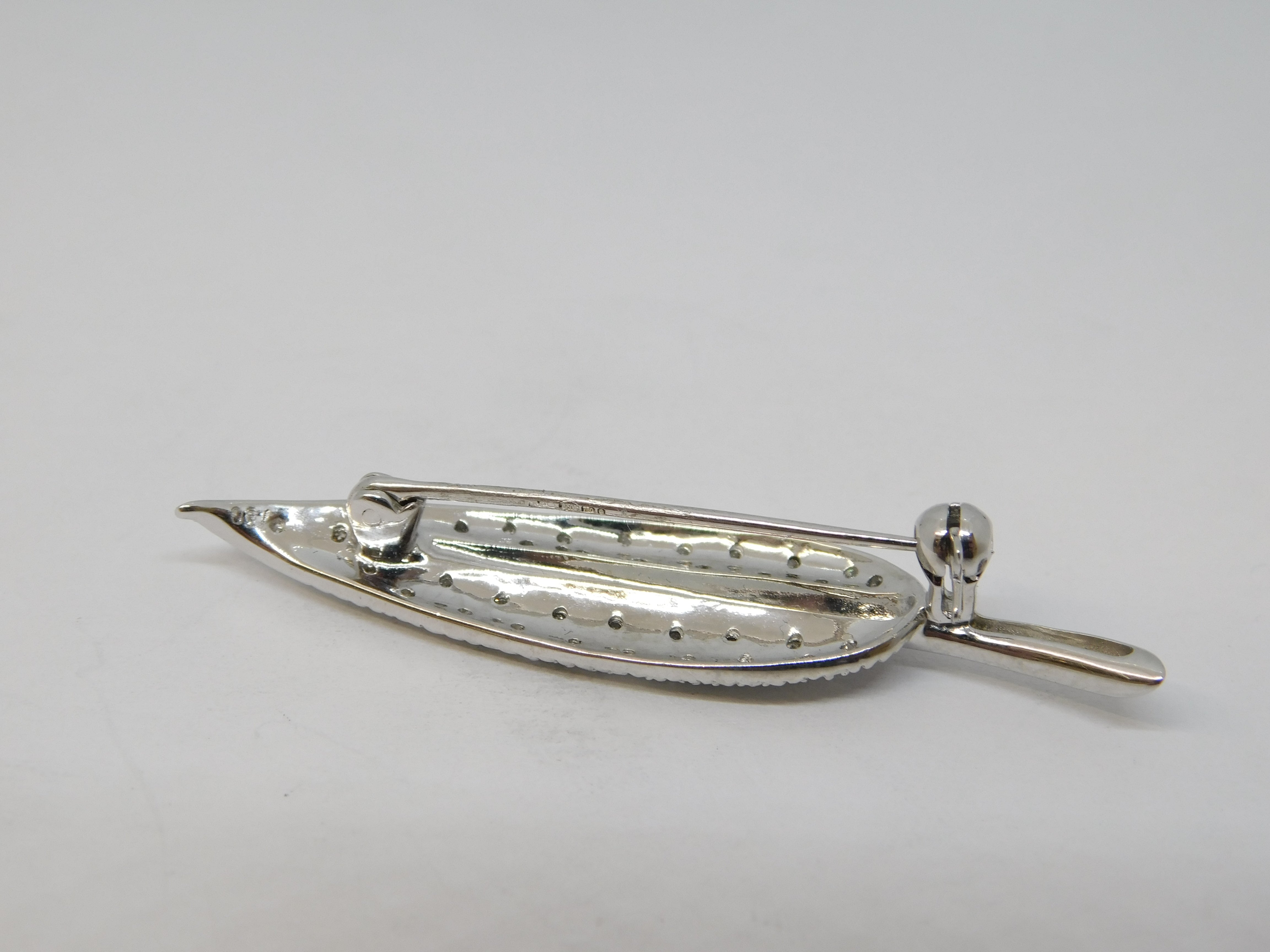 18ct White Gold & Diamond Set Feather Dress Brooch Vintage c1990 Sheffield