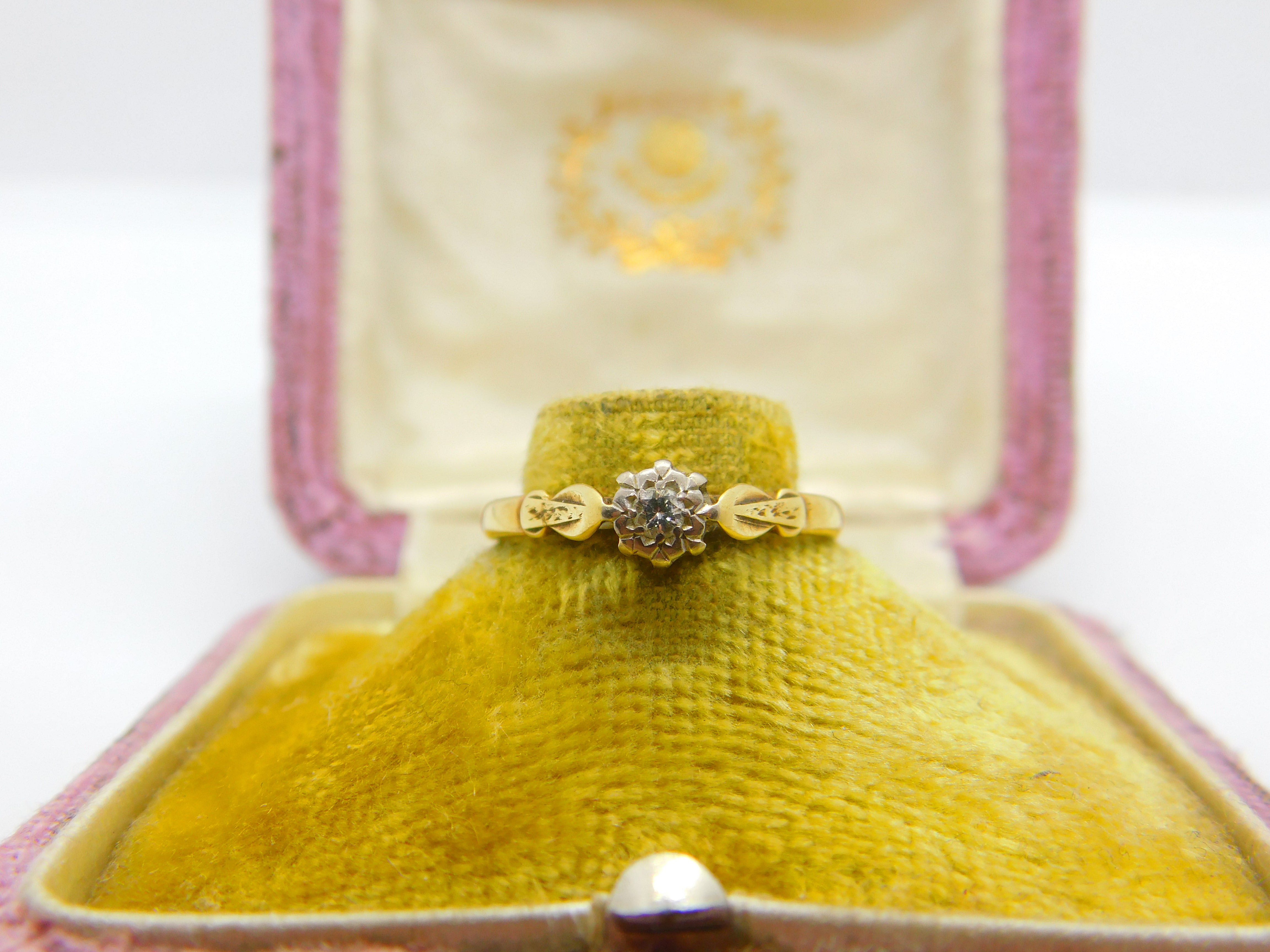 Details: A fantastic and wonderfully designed vintage 18ct yellow gold & 0.1ct diamond set solitaire ring hallmarked Birmingham 1950 to the interior band and the diamond has been tested. This is a wonderful item that would make a perfect gift or addition to any collection. The BOX pictured is for PRESENTATION ONLY and is NOT included in the listings but used to frame the pictures unless specifically stated otherwise.
