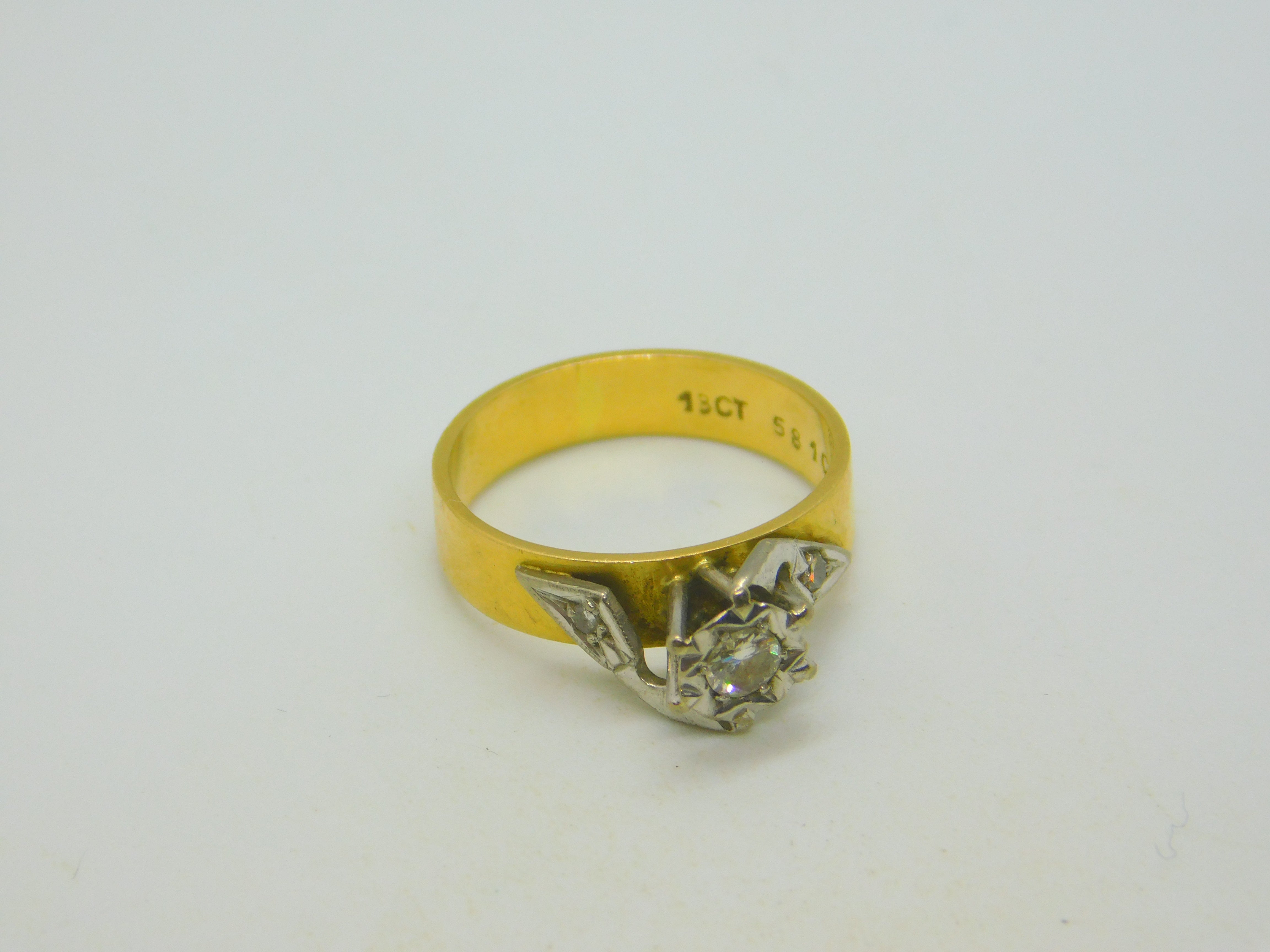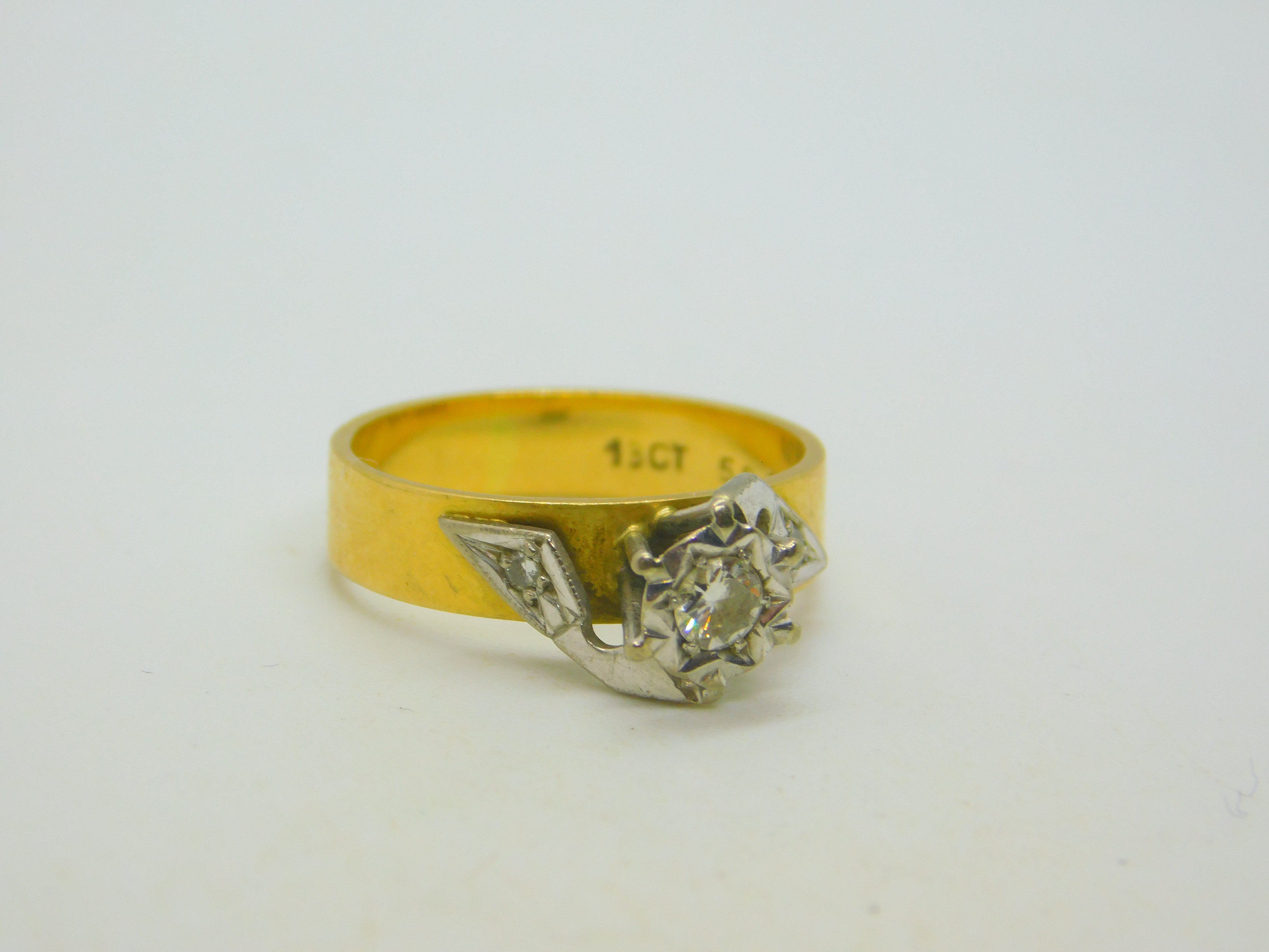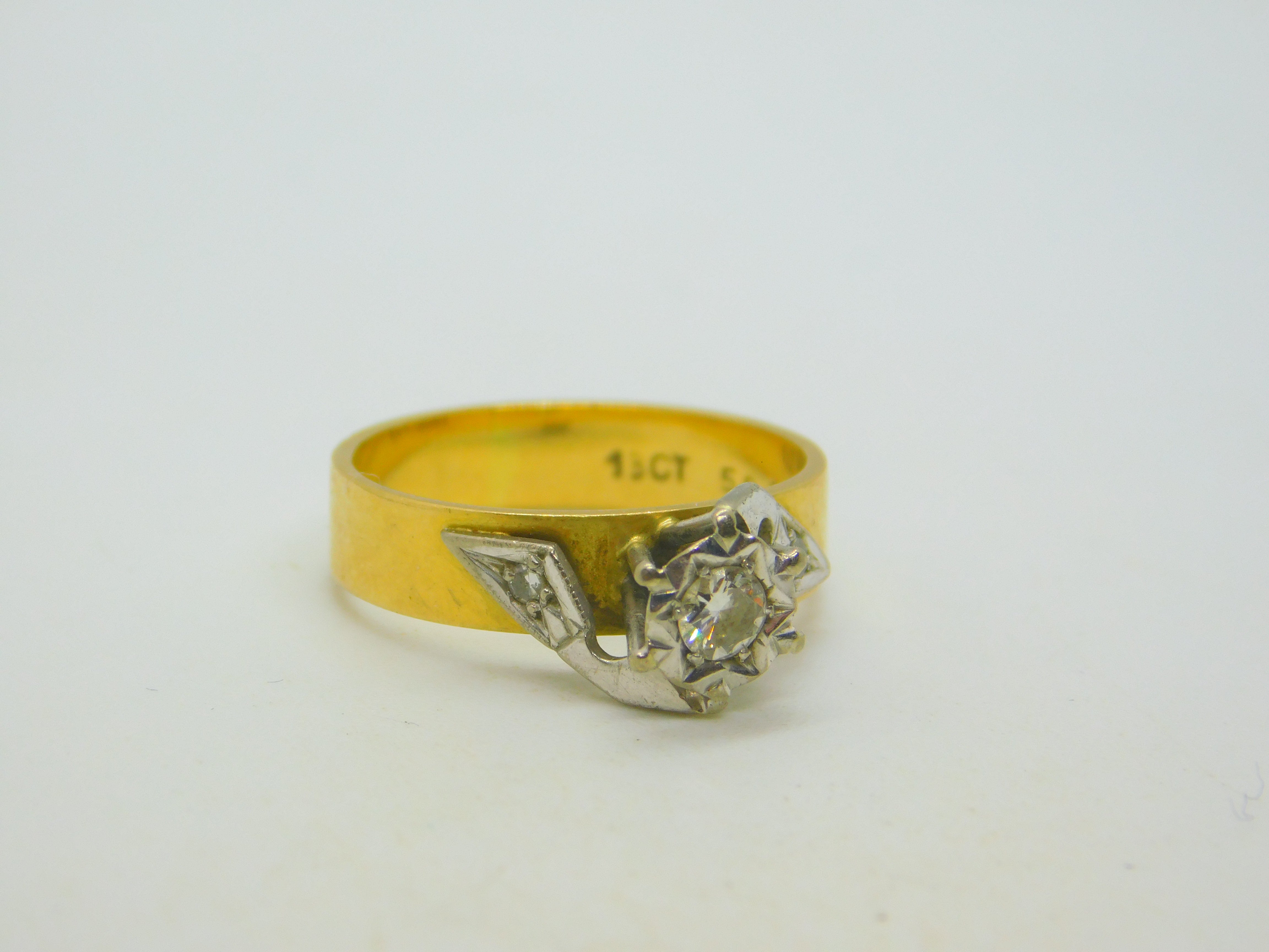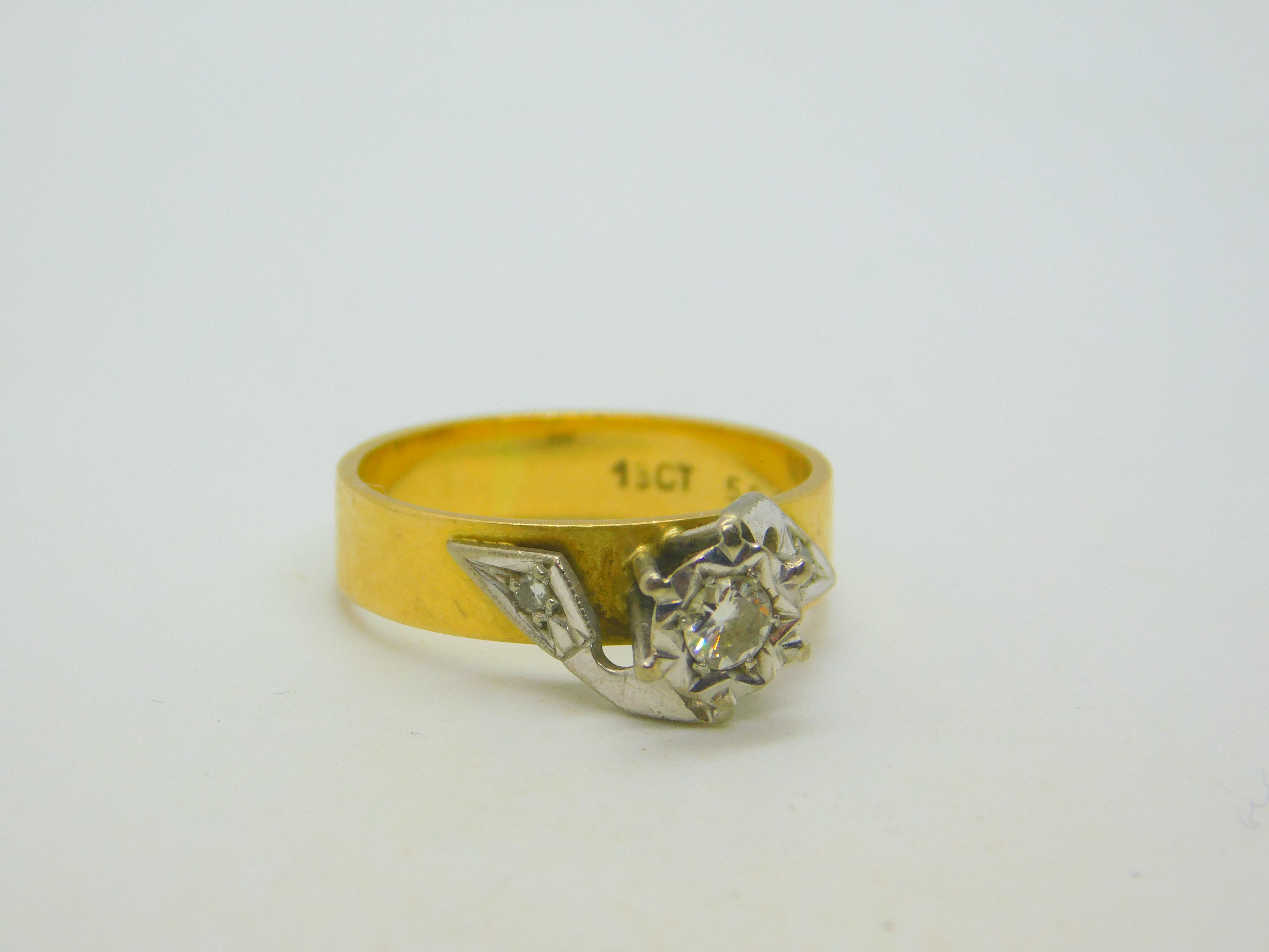18ct Yellow Gold & 0.2ct Diamond Solitaire Dress Ring Antique c1920 Art Deco