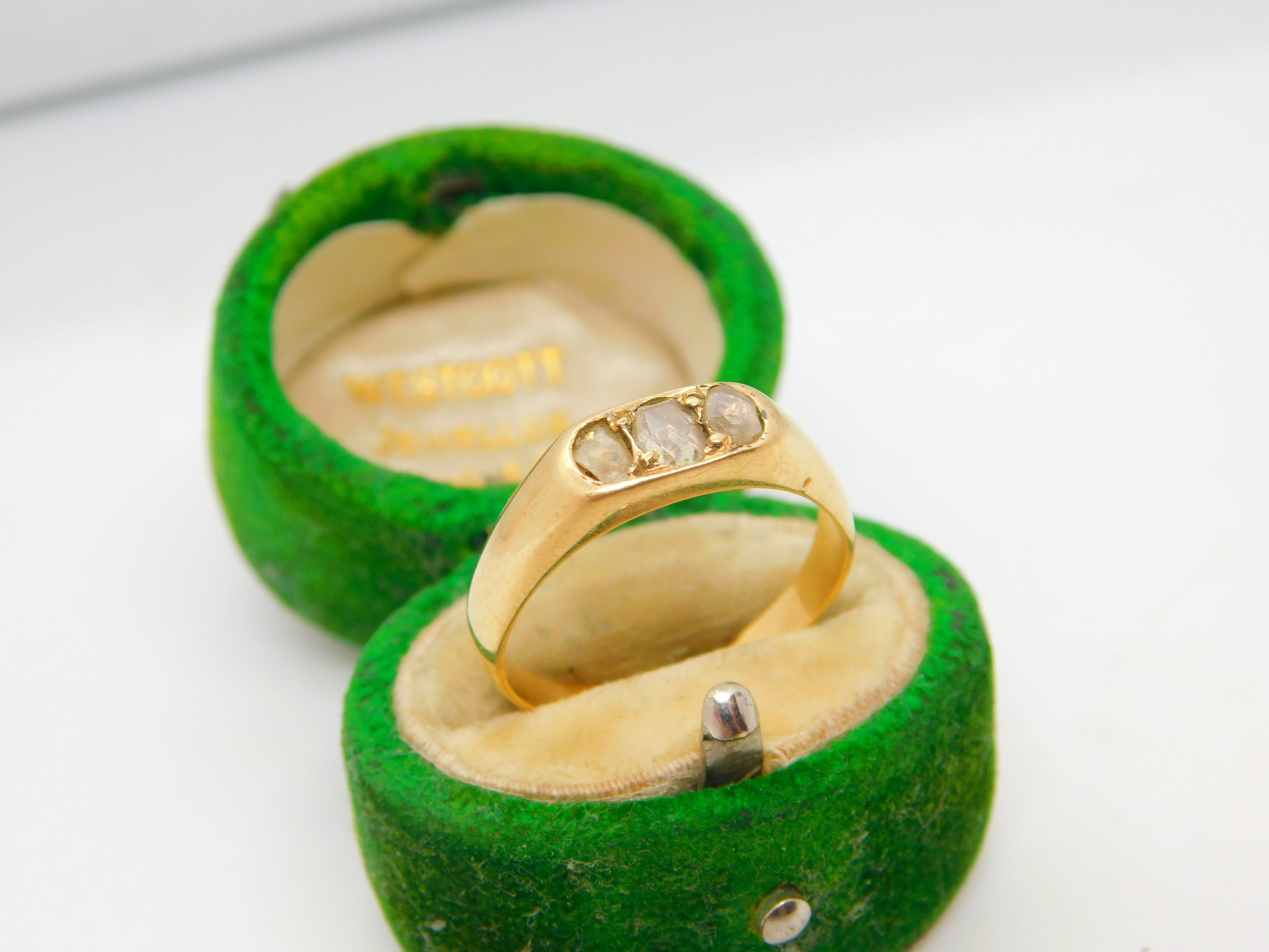 18ct Yellow Gold & 0.35ct Three-Stone Diamond Ring Vintage c1970