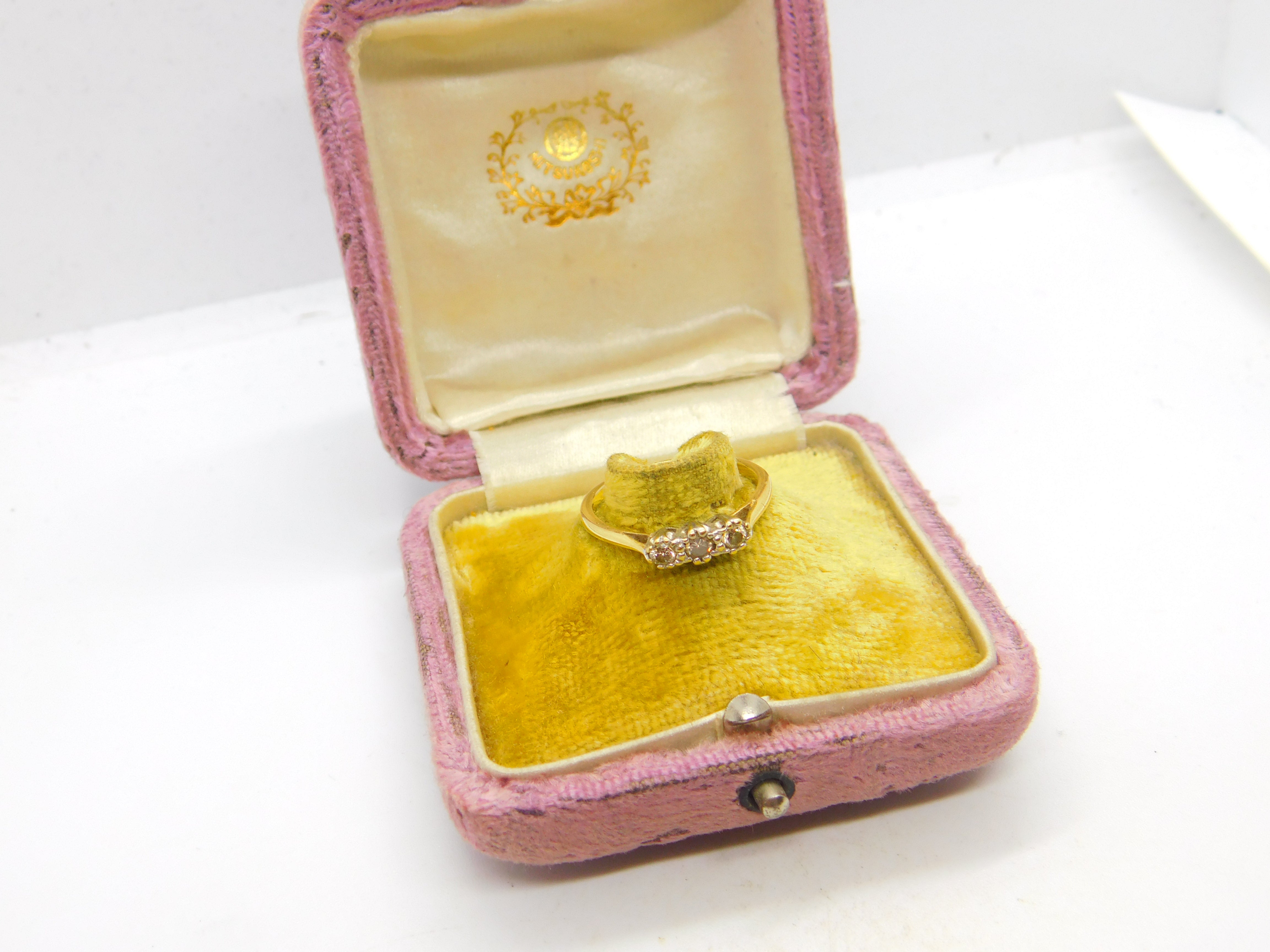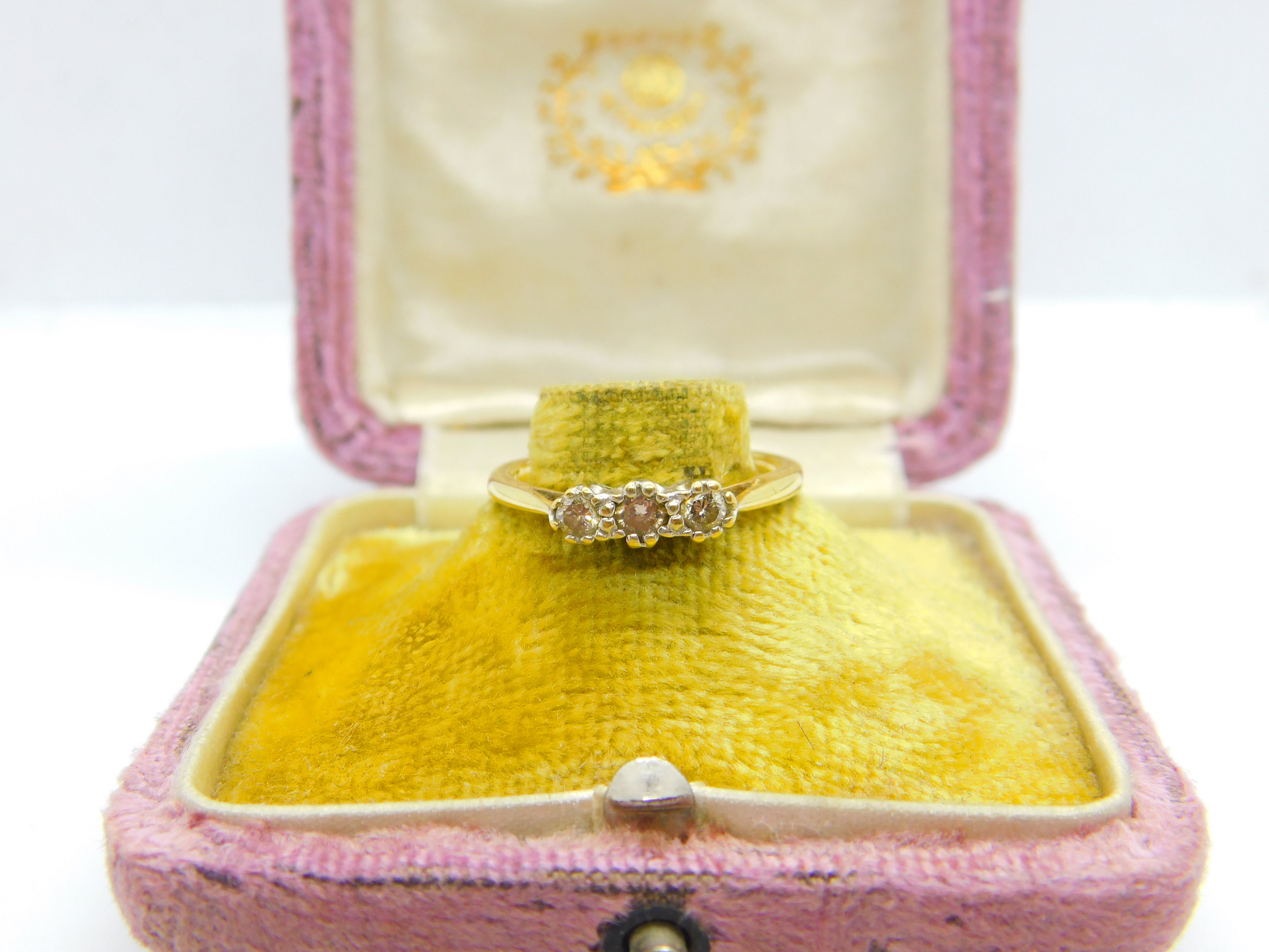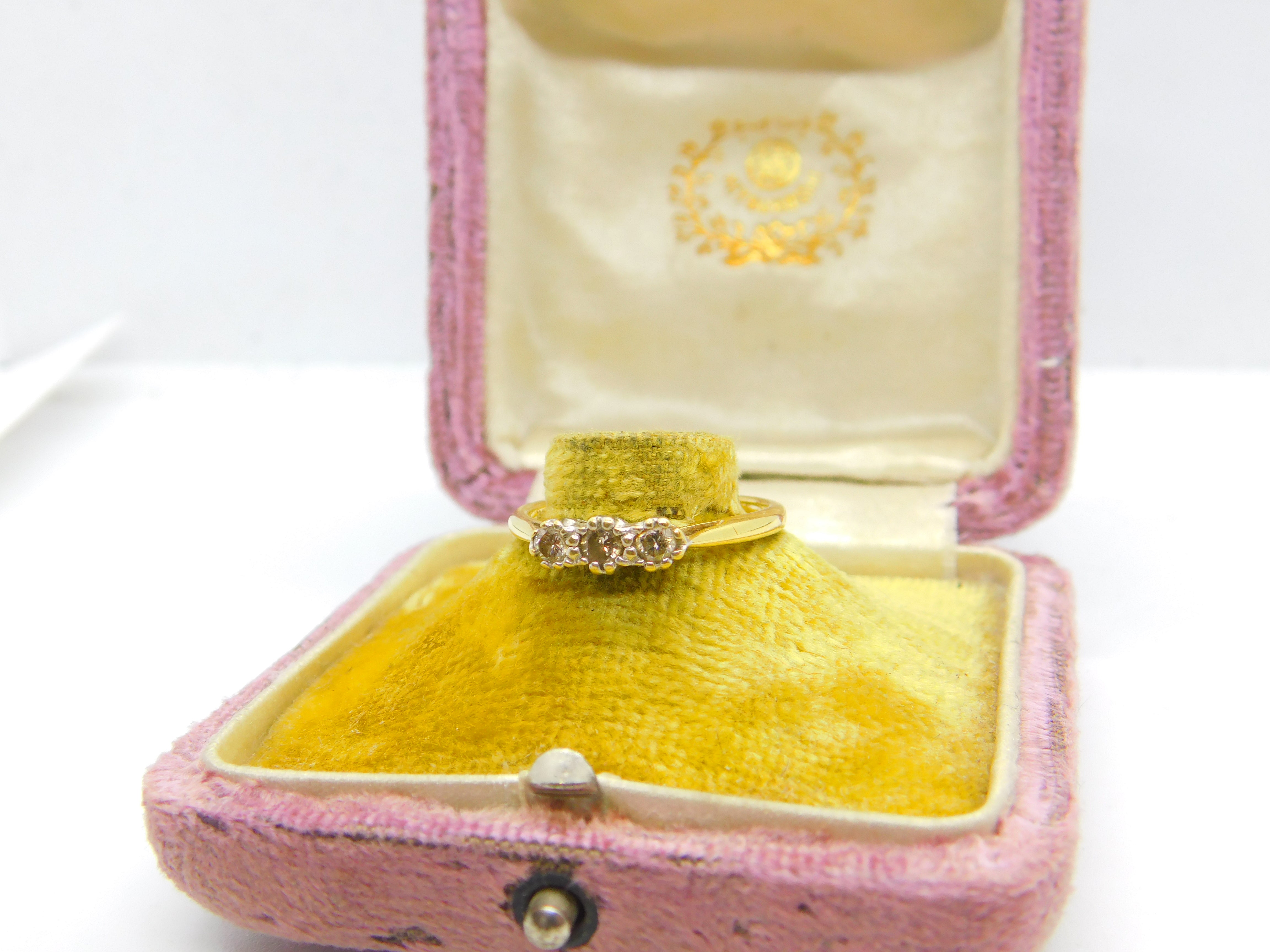 18ct Yellow Gold & 0.3ct Diamond Three Stone Ring Vintage c1970 London