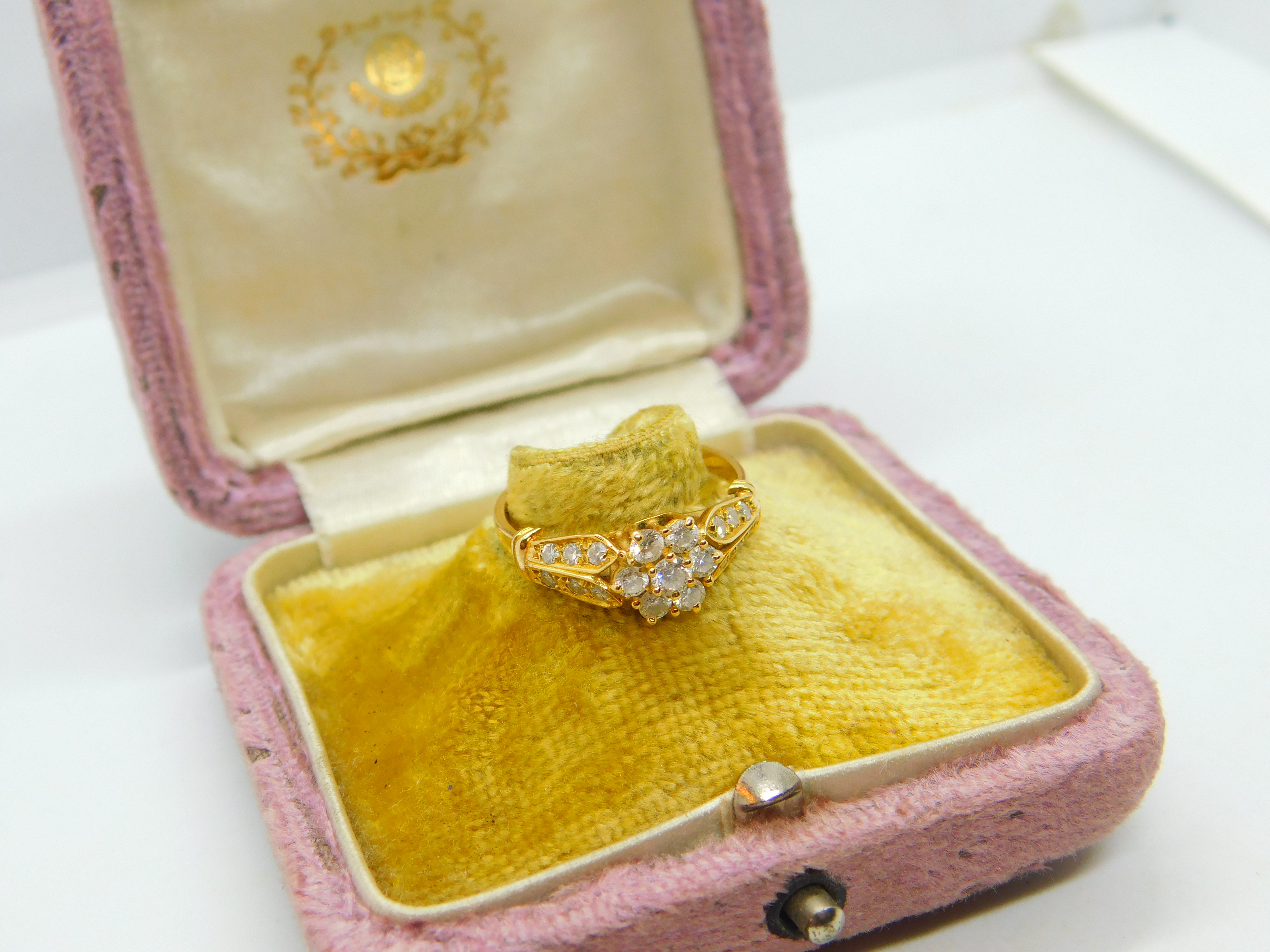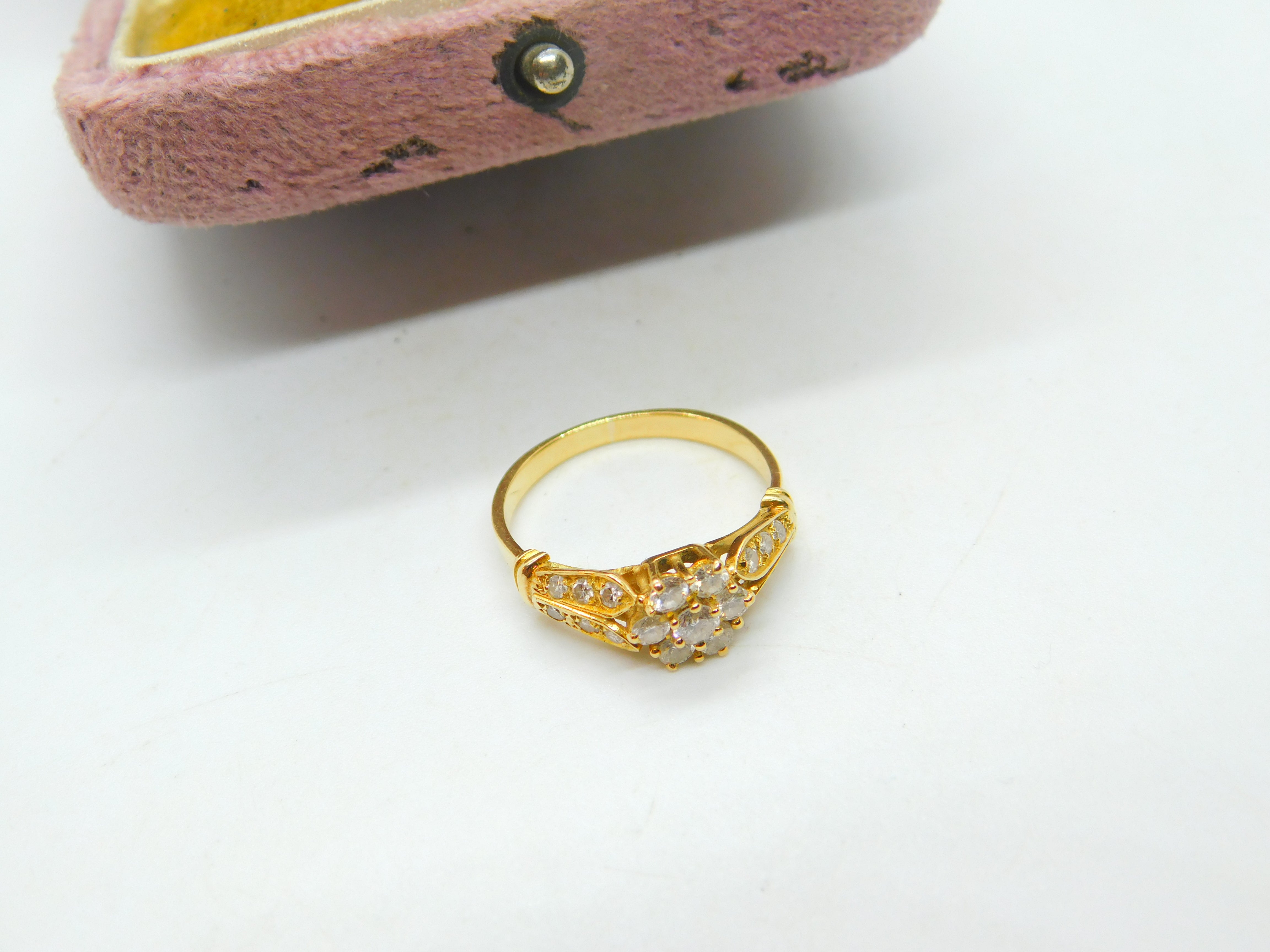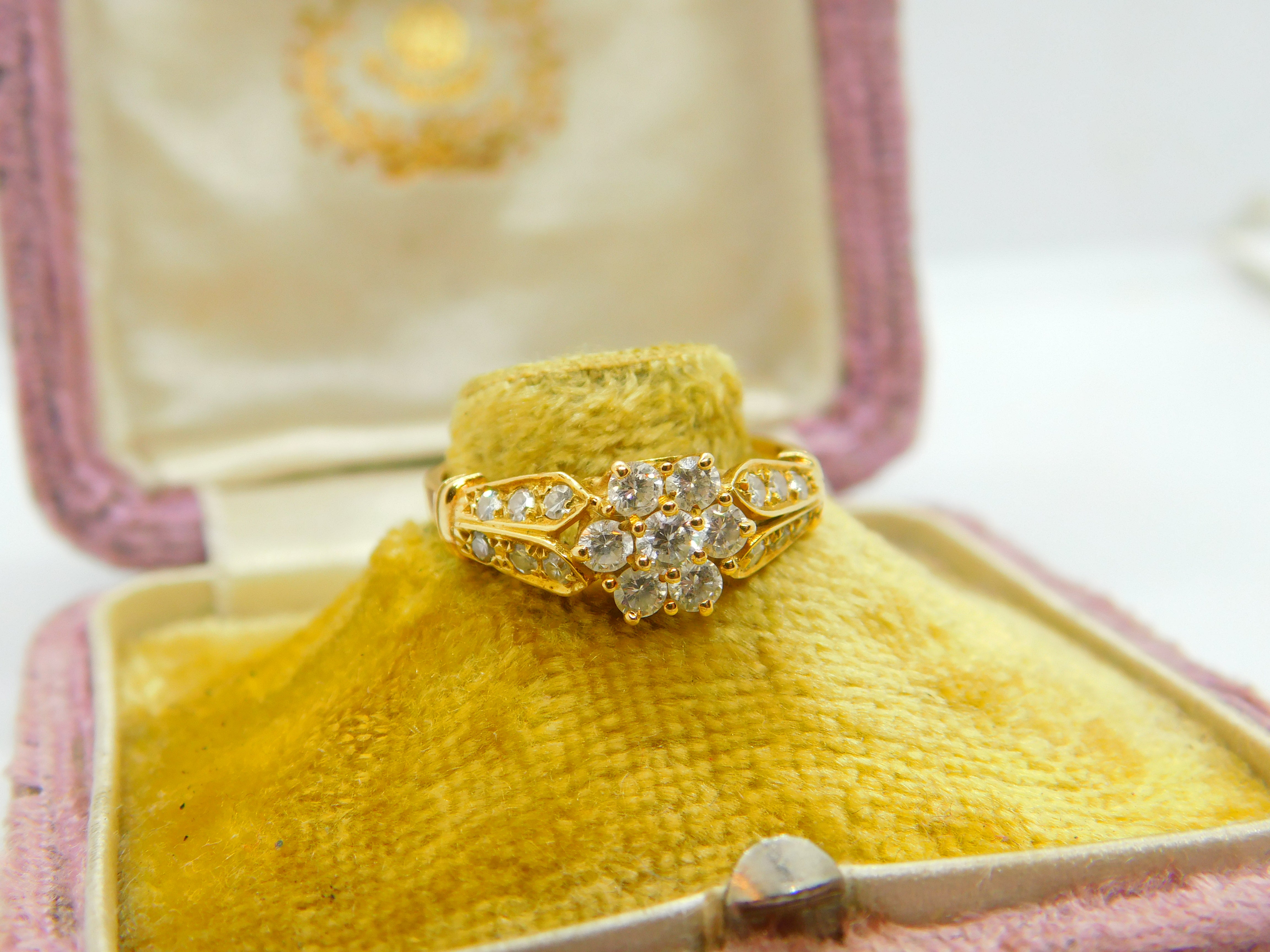18ct Yellow Gold & 0.5ct Diamond Daisy Cluster Ring Vintage c1980 Handmade