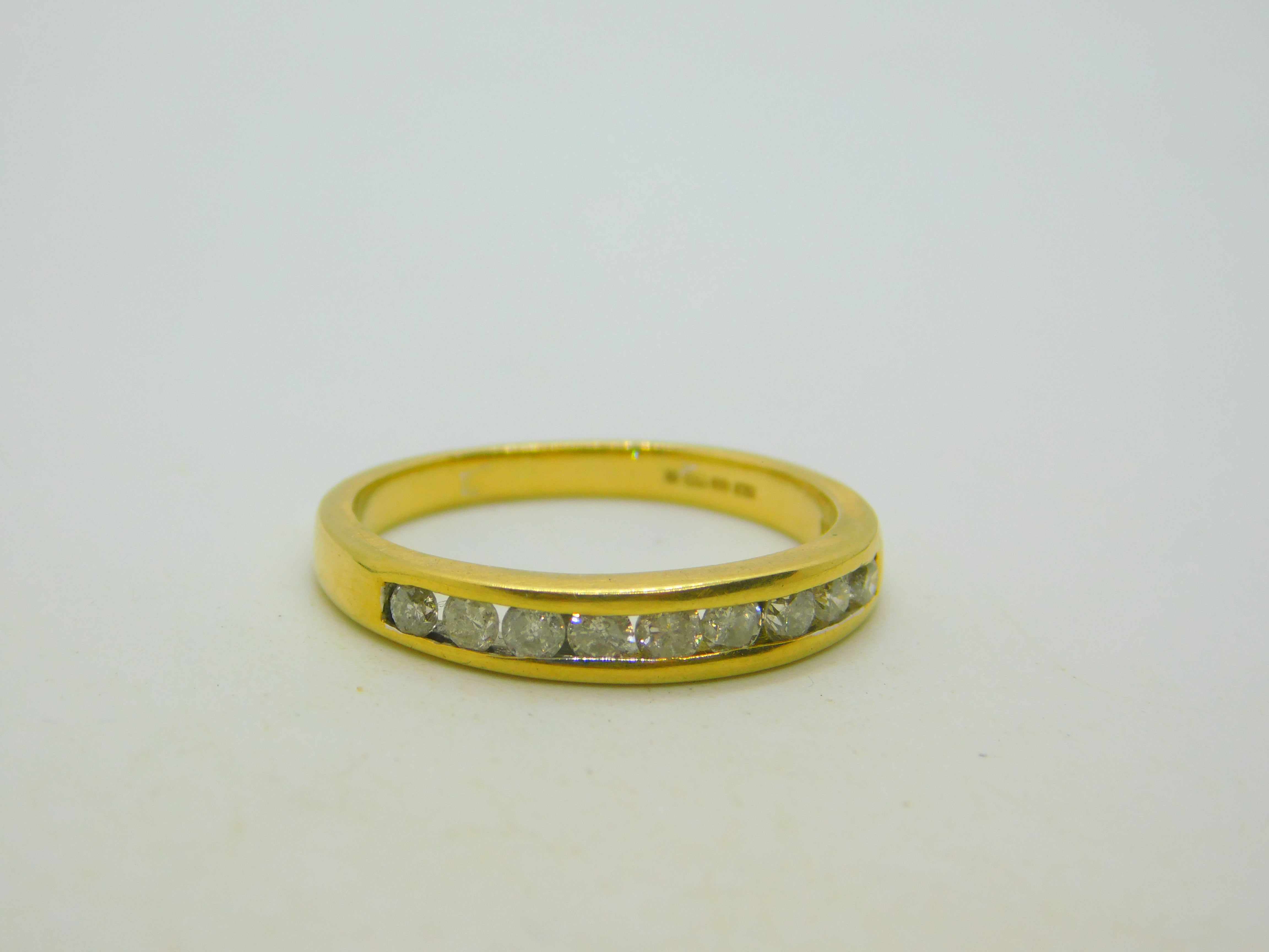 18ct Yellow Gold & 0.5ct Diamond Half-Eternity Ring Vintage c1990 Sheffield