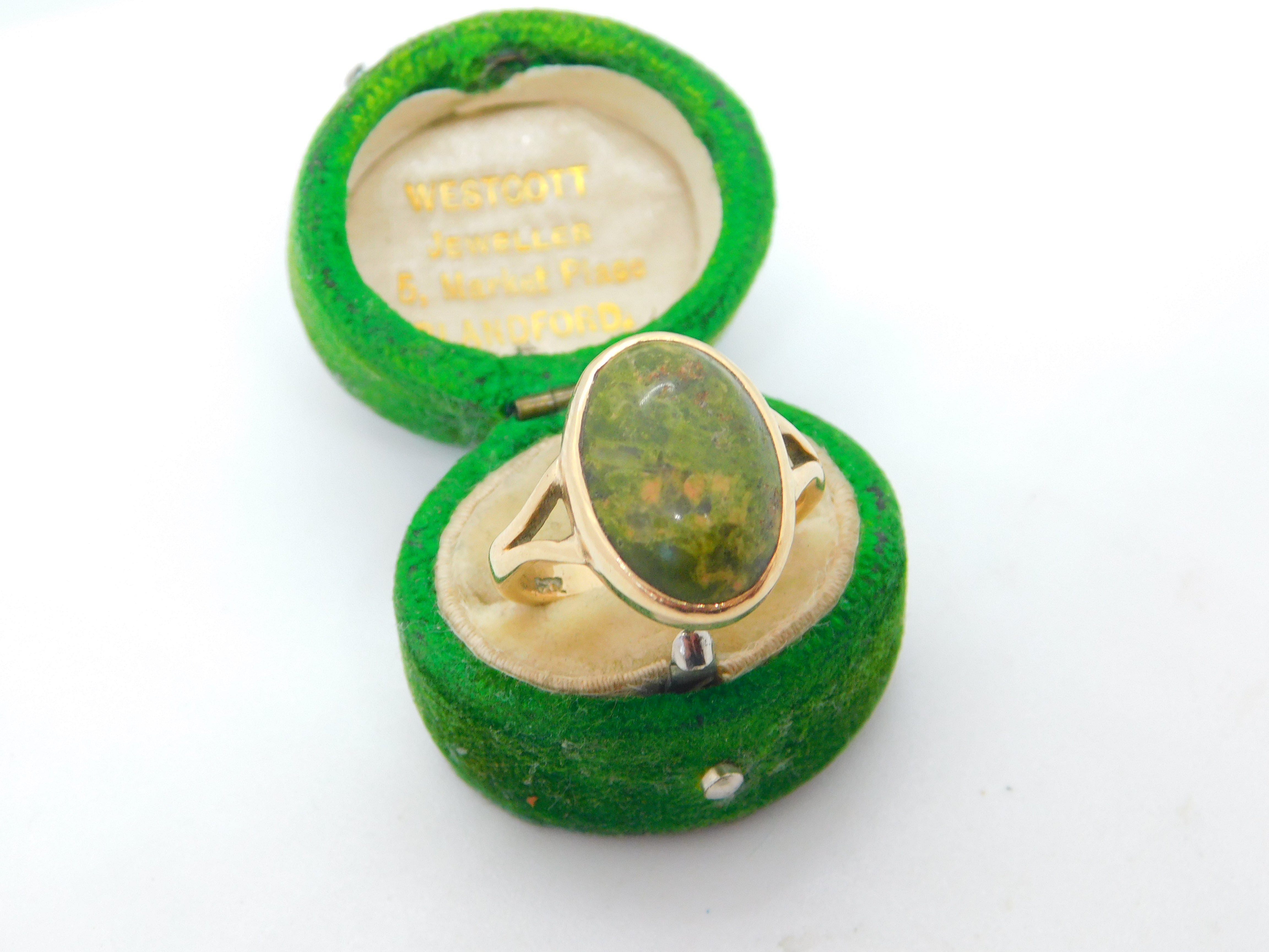 18ct Yellow Gold & Cabochon Unakite Set Signet Ring Vintage c1970
