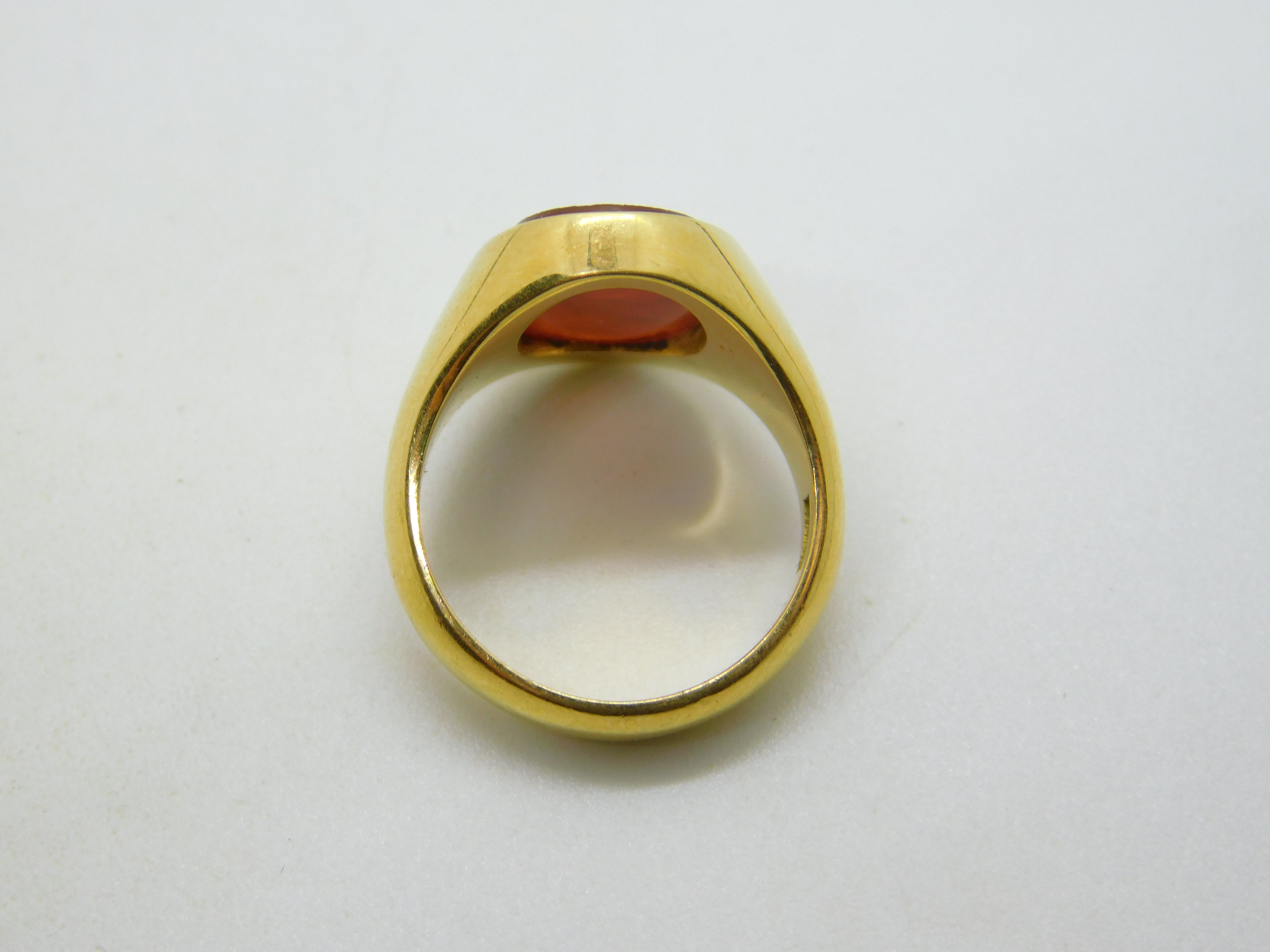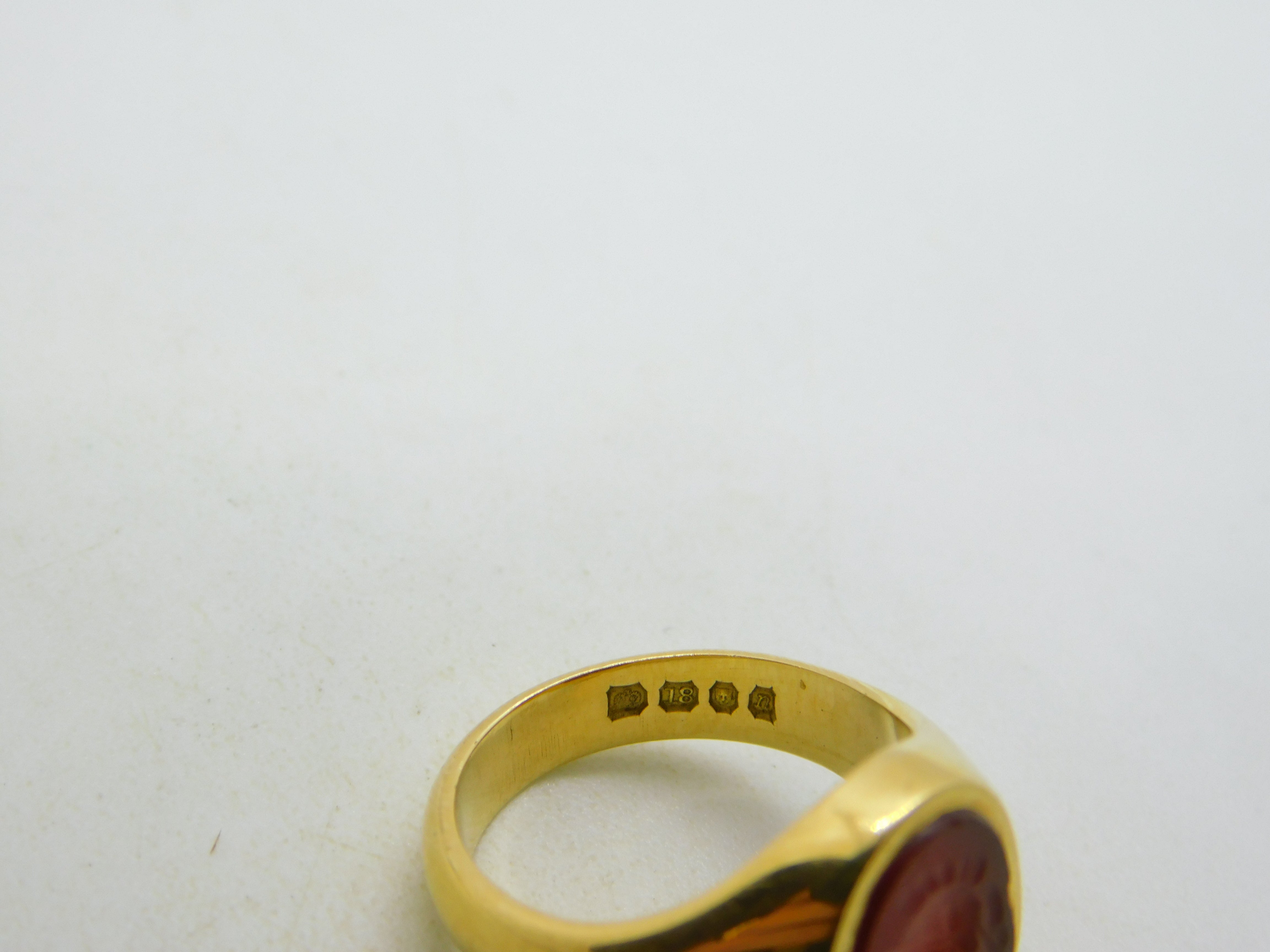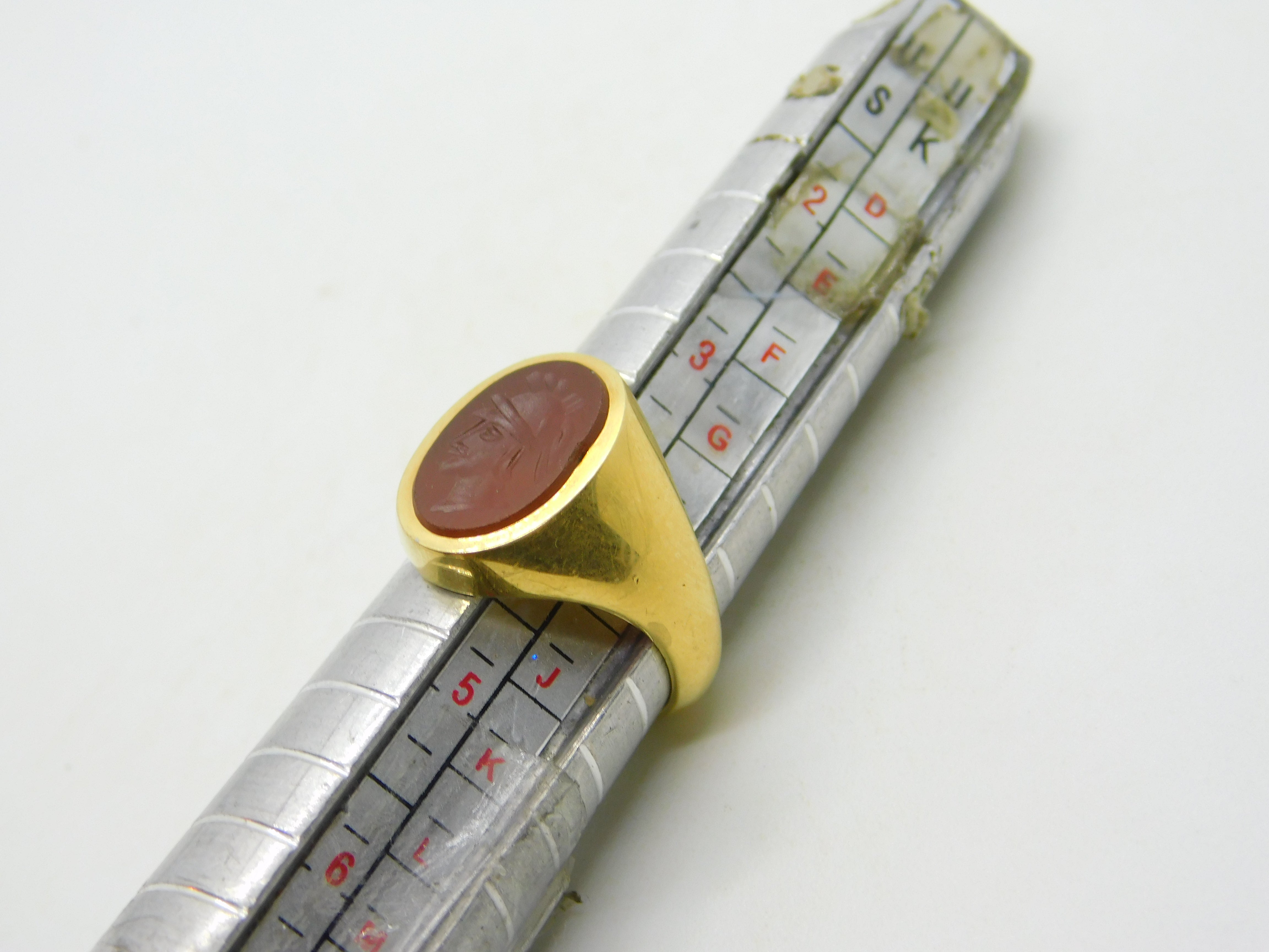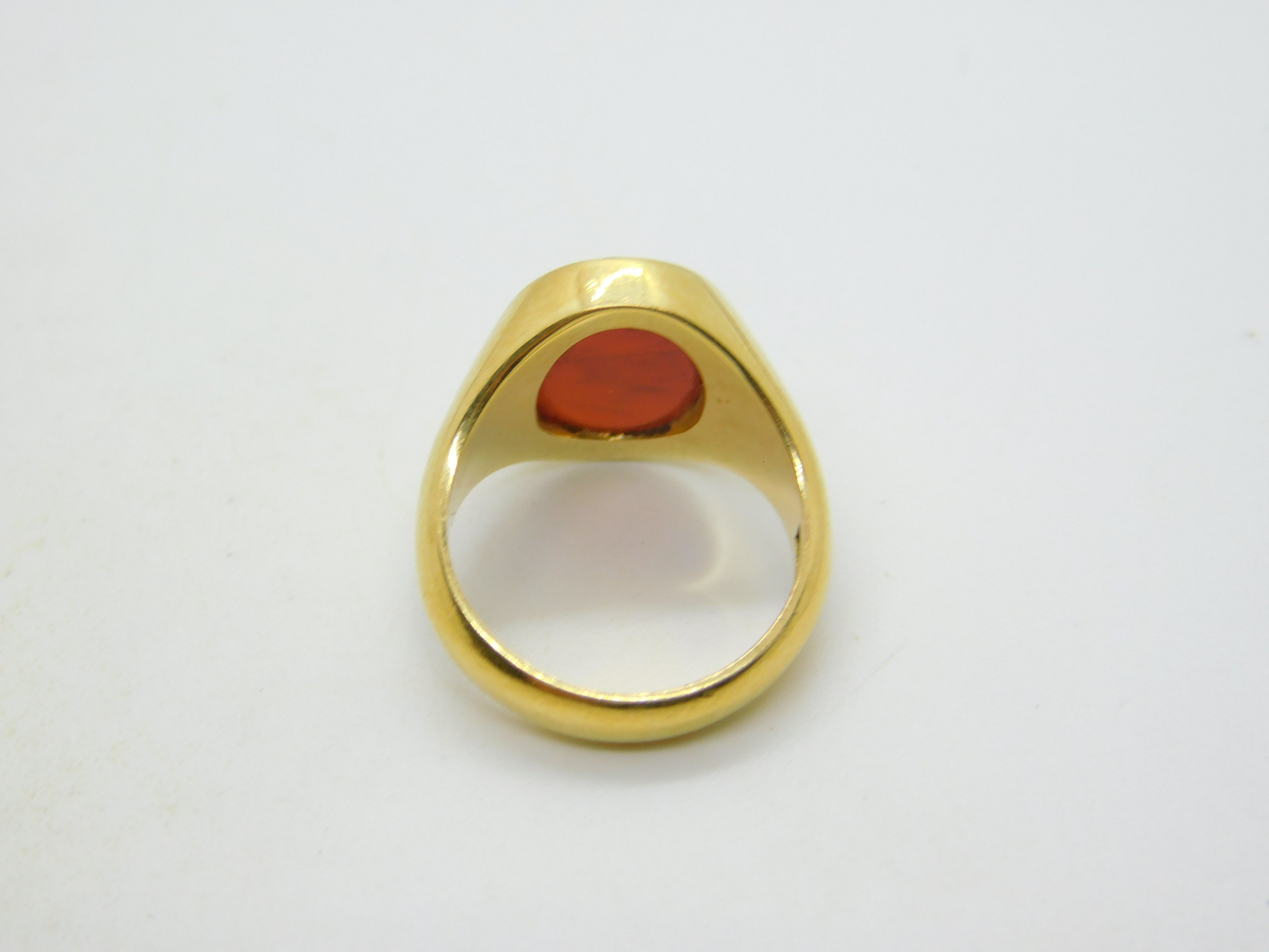 18ct Yellow Gold Carnelian Agate Centurion Intaglio Signet Ring Vintage 1968 London
