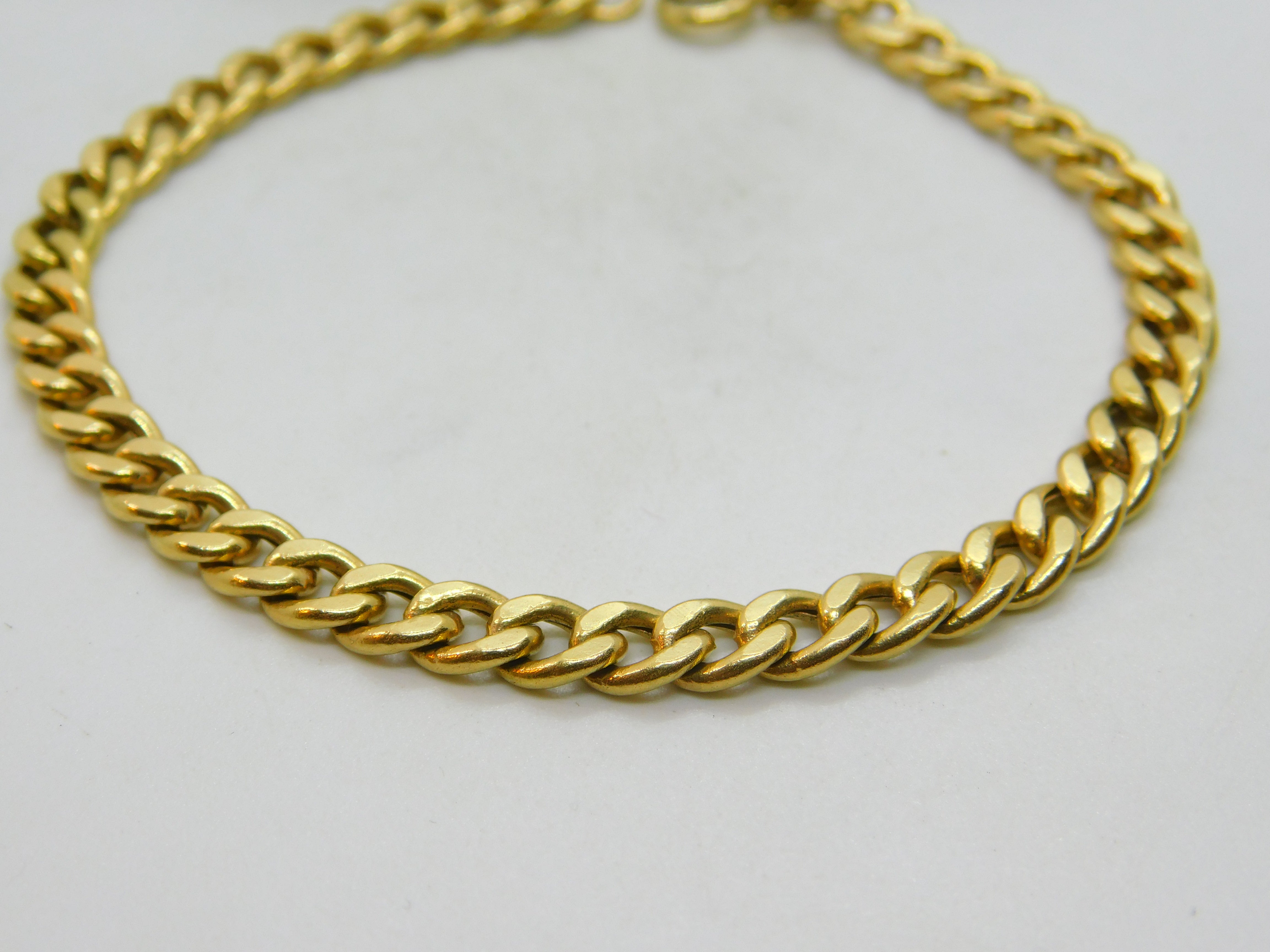 18ct Yellow Gold Curb Link Chain Bracelet Italian Vintage c1990 7.5" Length
