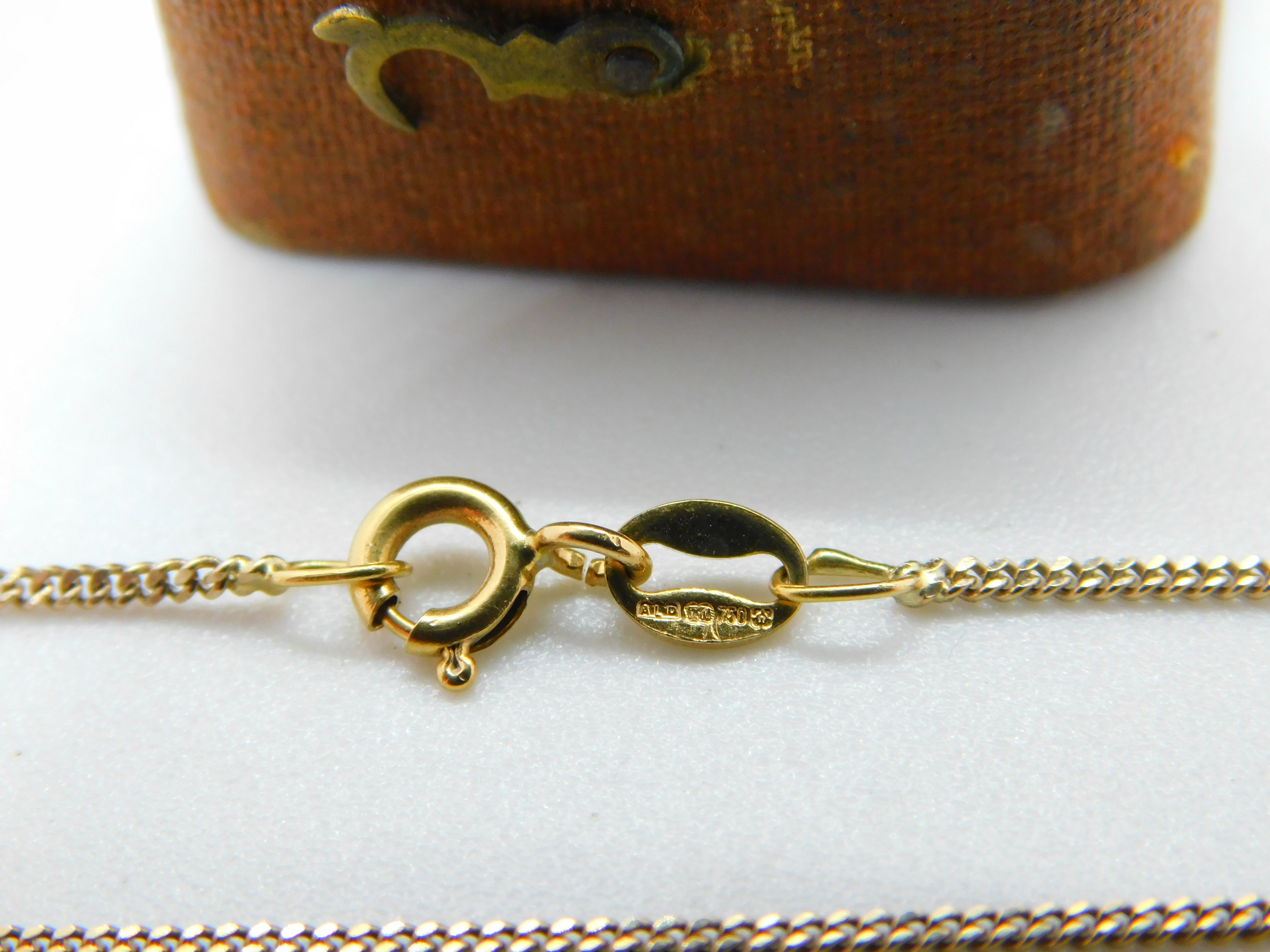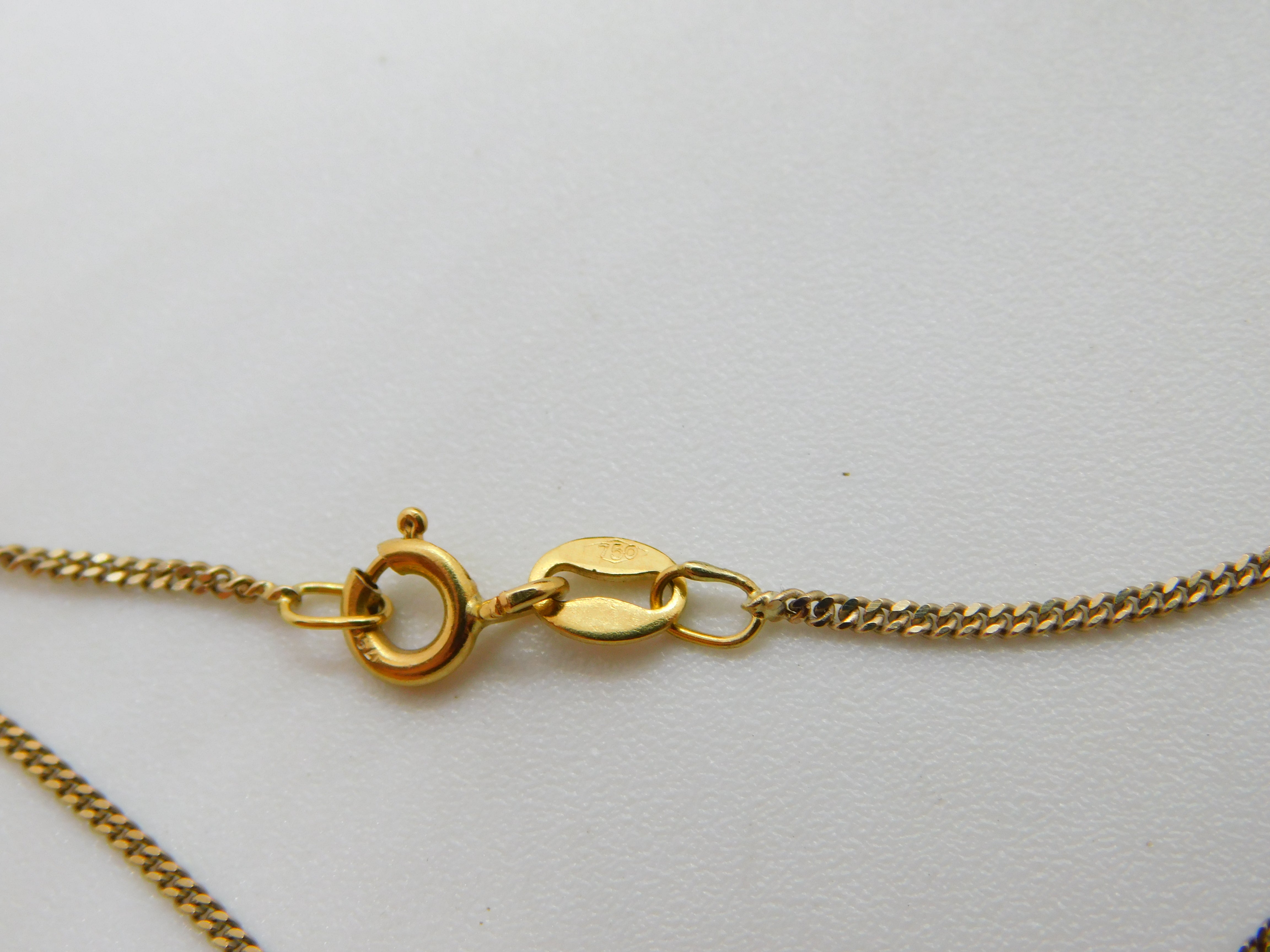 Ideal for hanging pendants or charms from, this is a fabulous vintage 18ct yellow gold chain necklace in the popular fine curb link dating from the 1980's. There is a partial English hallmark to the link by the clasp, London Import assay but there is no date letter. Good secure bolt ring clasp with a good spring. A fantastic vintage 18ct gold chain.