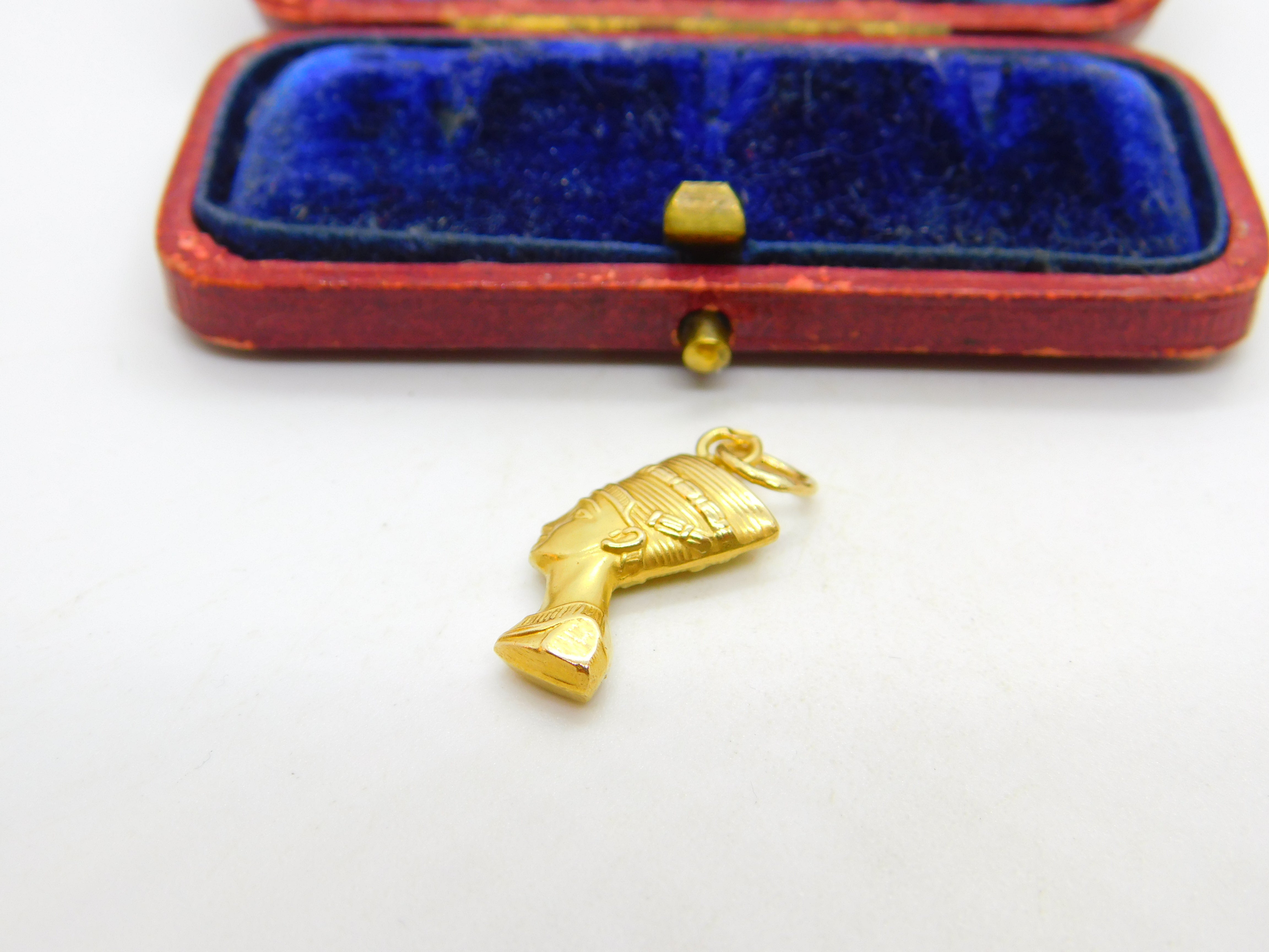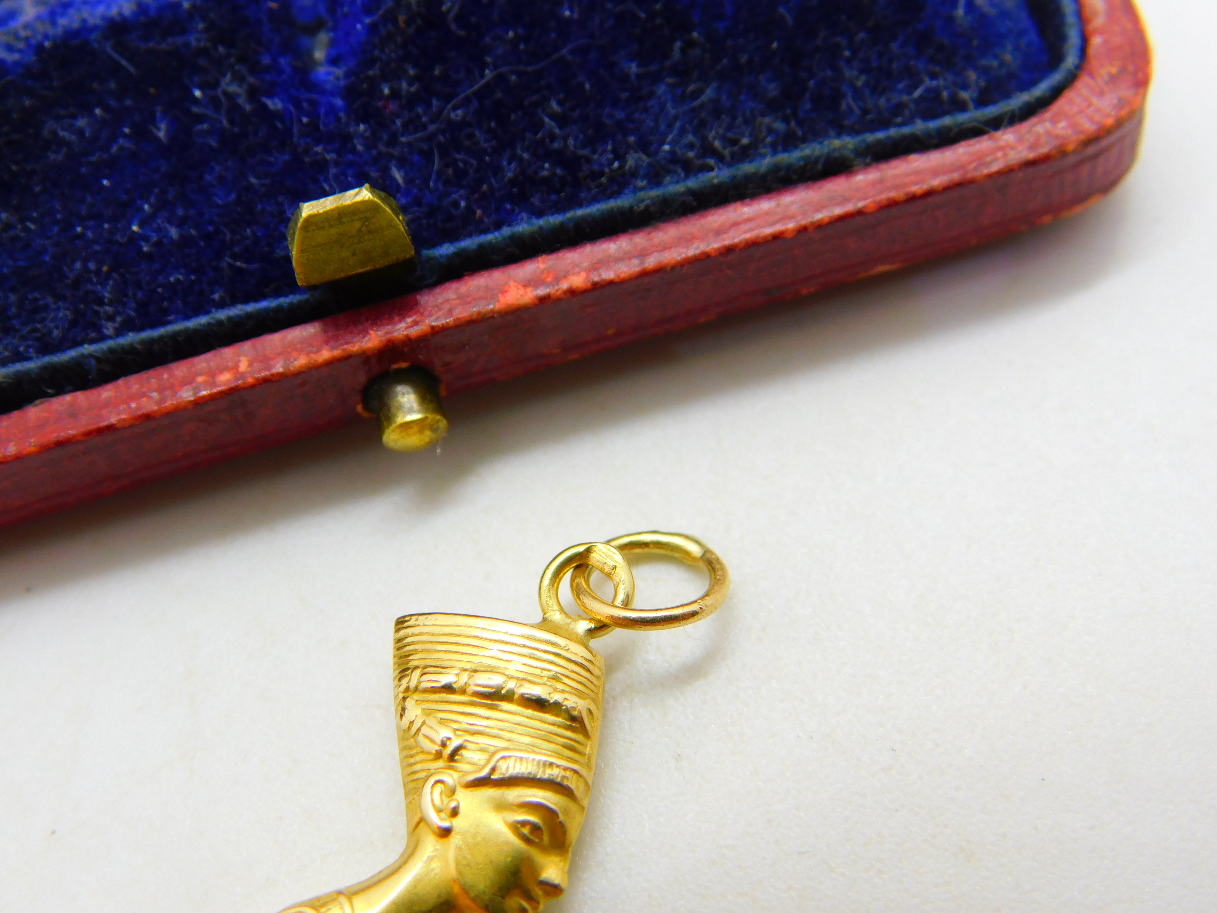 18ct Yellow Gold Egyptian Nefertiti Pharaoh Charm Pendant Vintage c1970