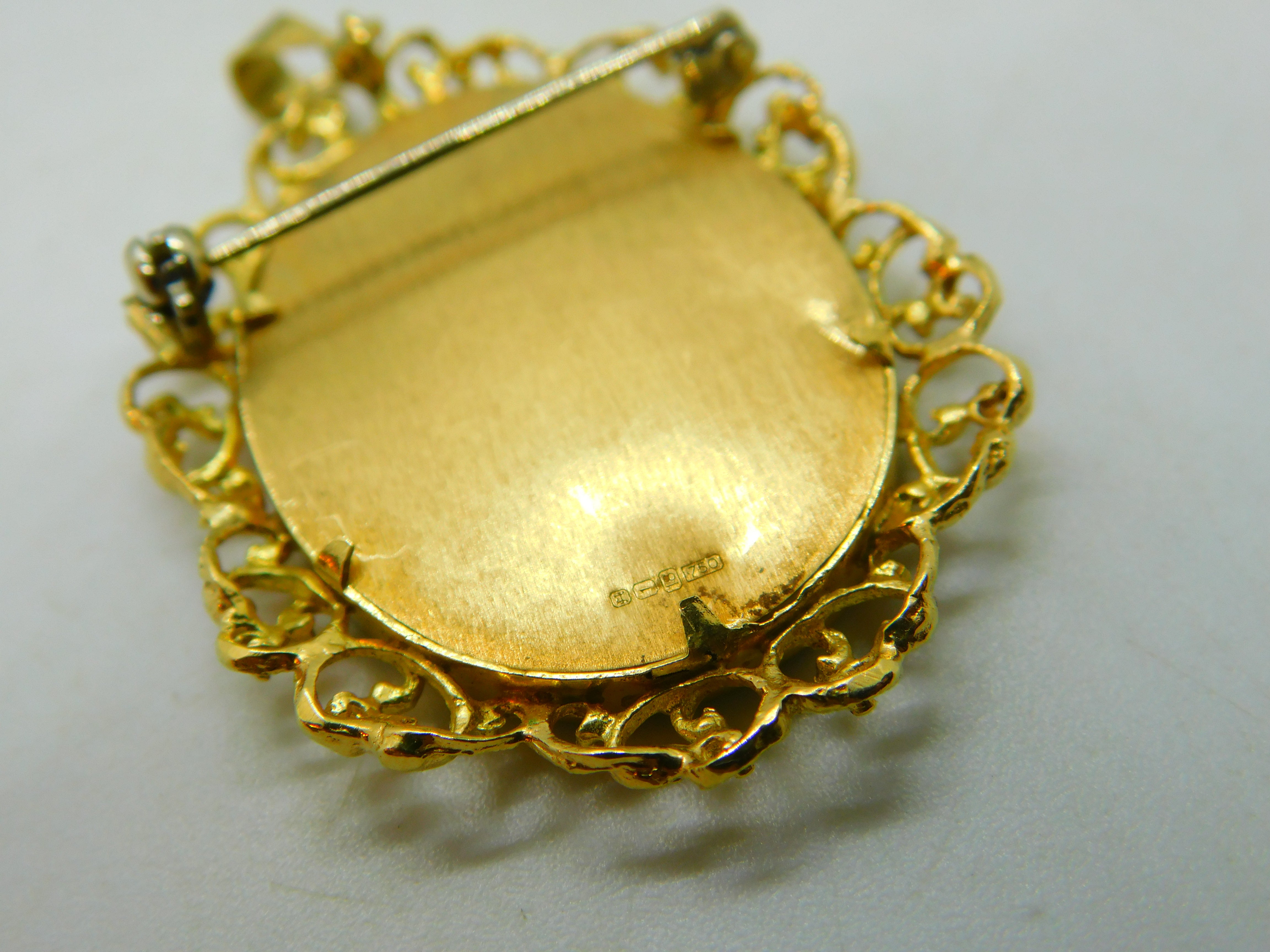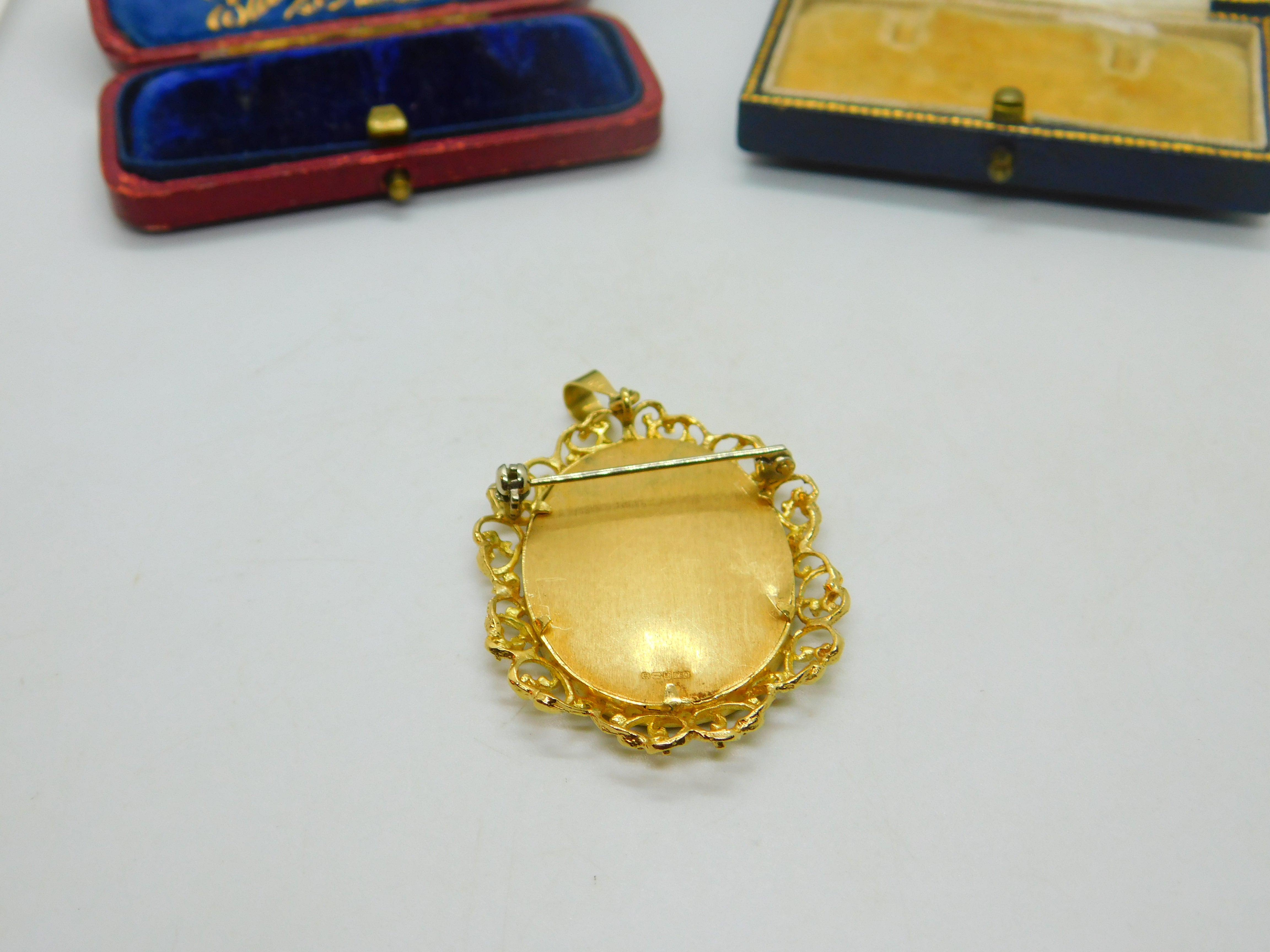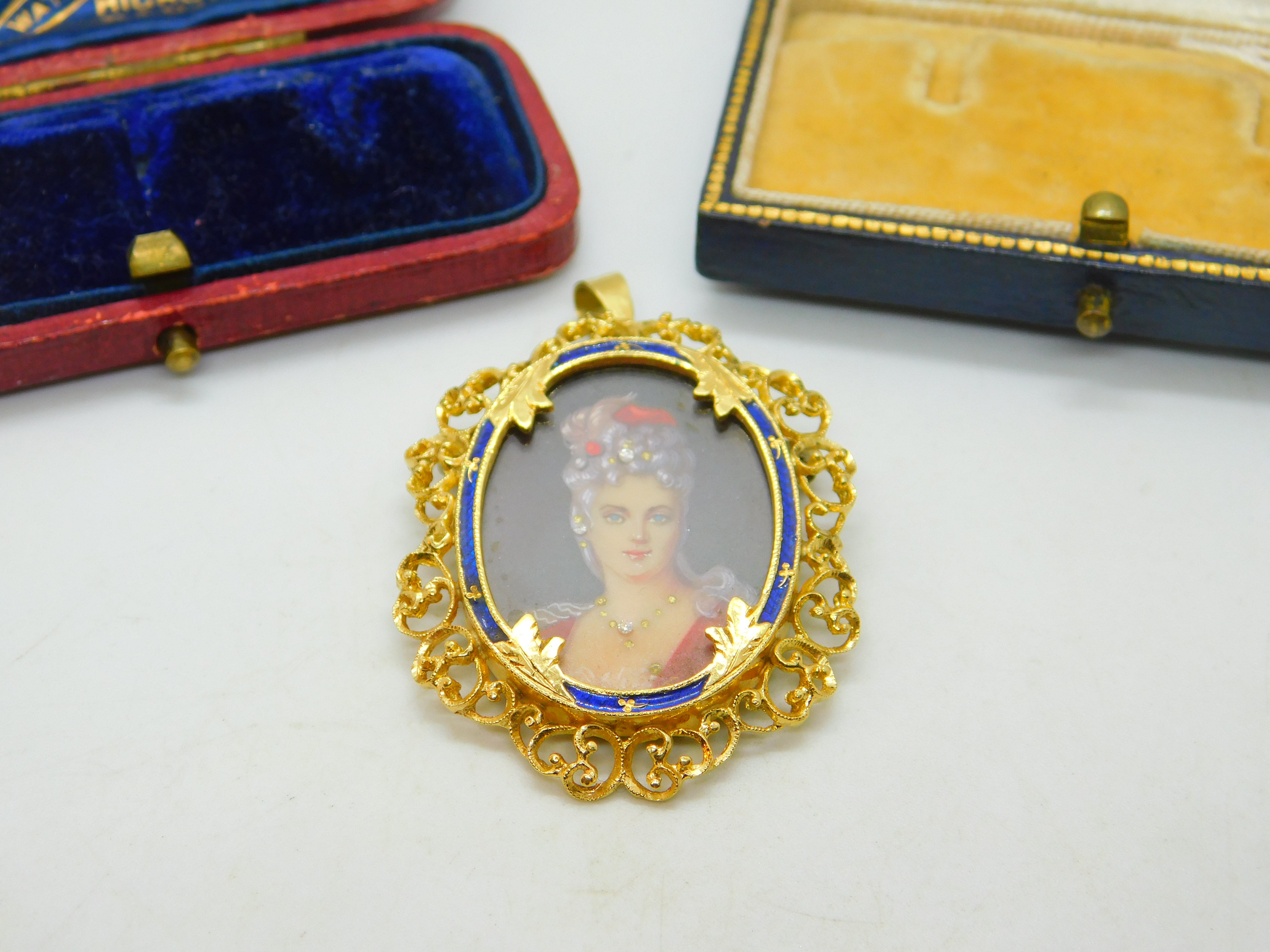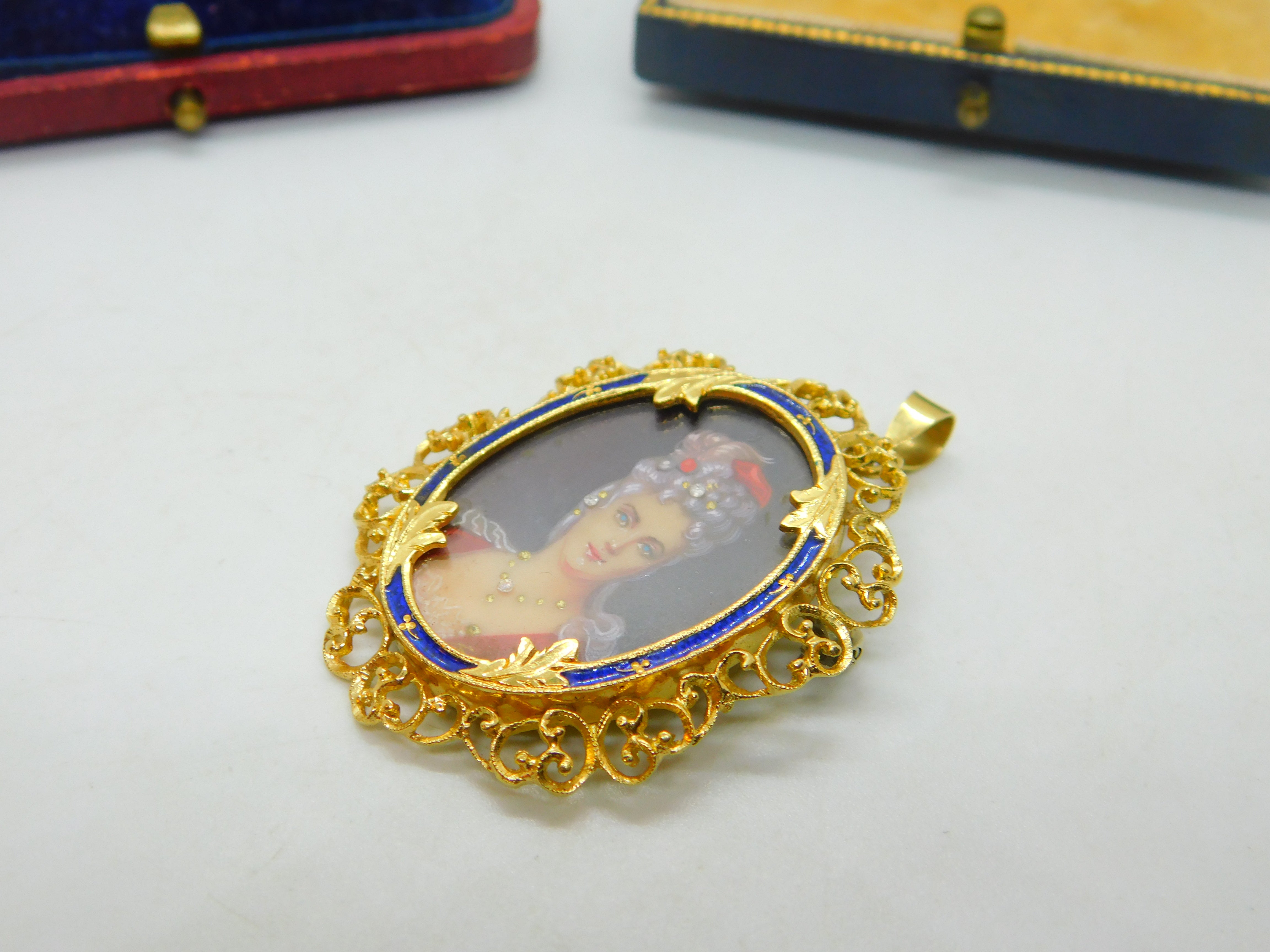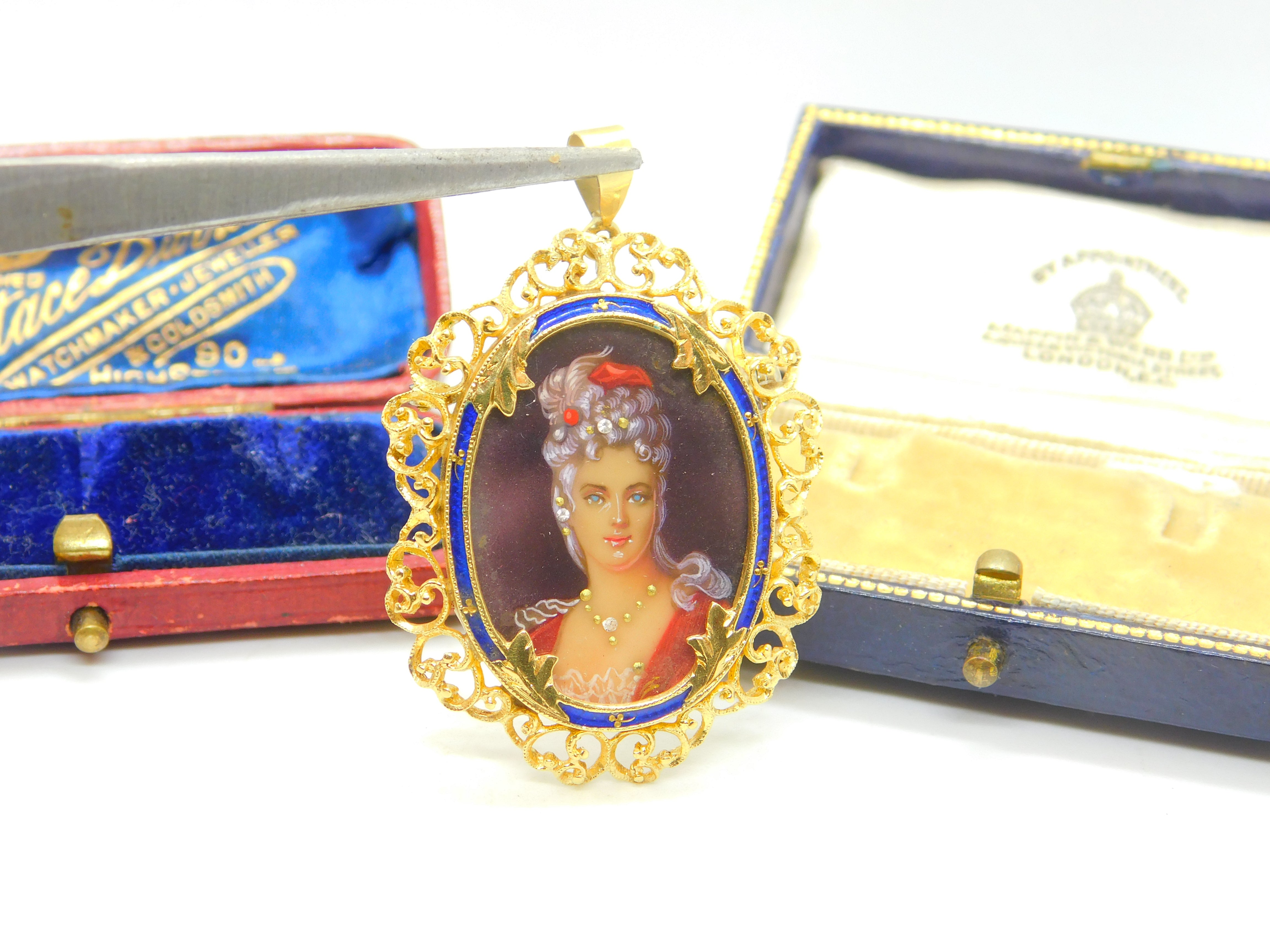 18ct Yellow Gold & Enamel Victorian Revival Portrait Miniature Pendant c1950