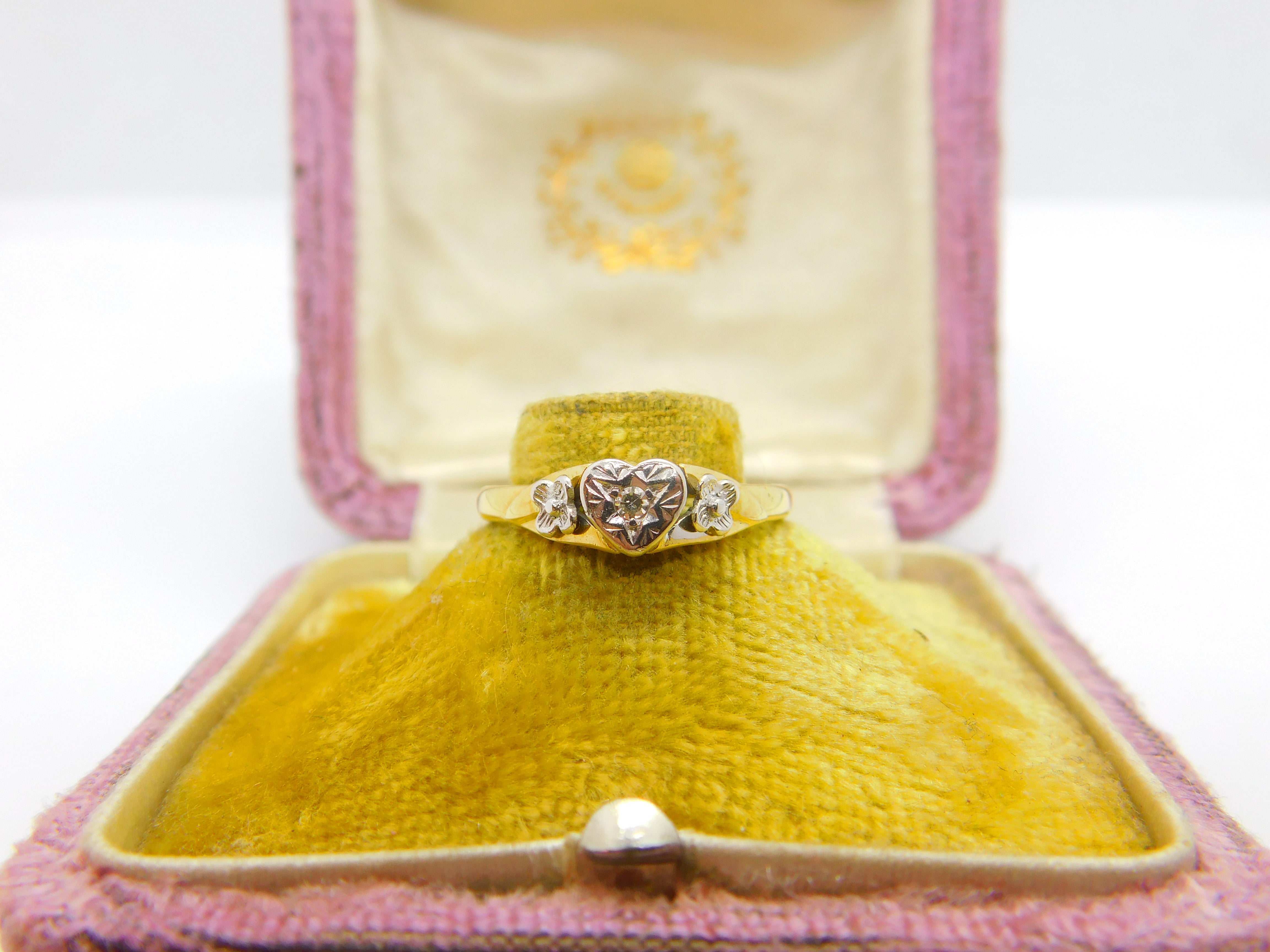 Details: A fantastic and wonderfully designed vintage 18ct yellow gold heart shaped sweetheart ring set with a central diamond hallmarked Birmingham 1971 to the interior band. The diamonds have been tested. This is a wonderful item that would make a perfect gift or addition to any collection. The BOX pictured is for PRESENTATION ONLY and is NOT included in the listings but used to frame the pictures unless specifically stated otherwise.