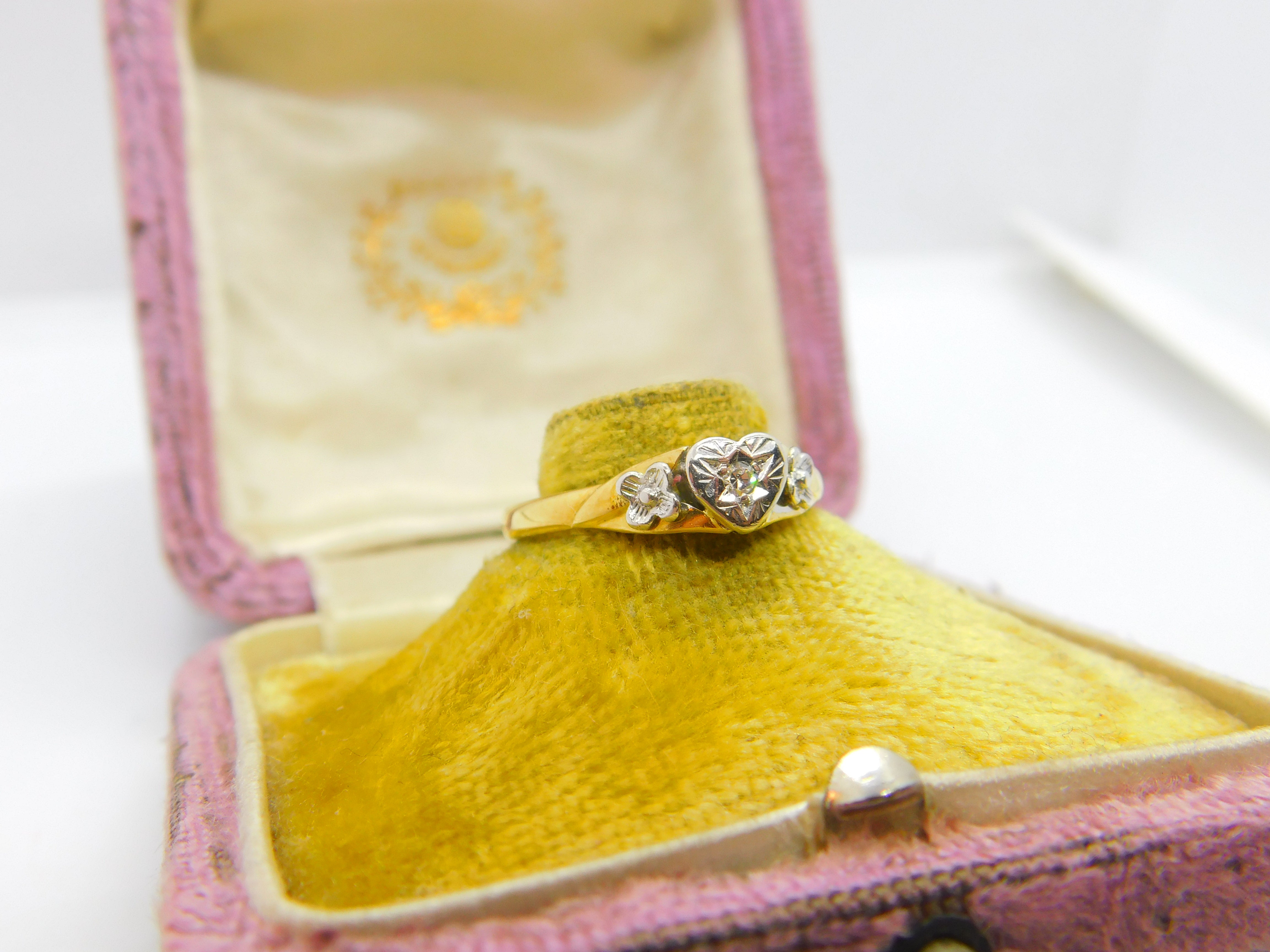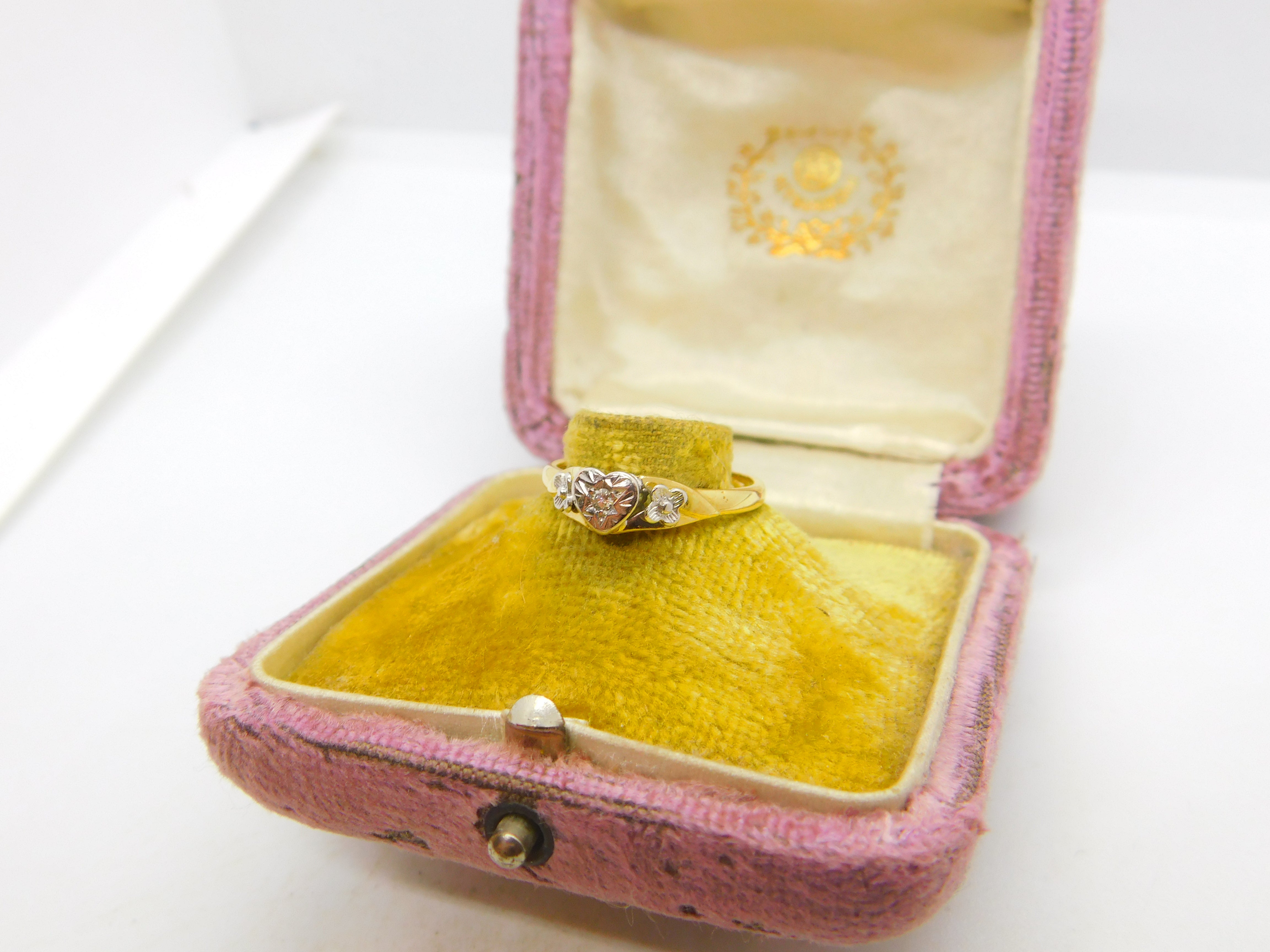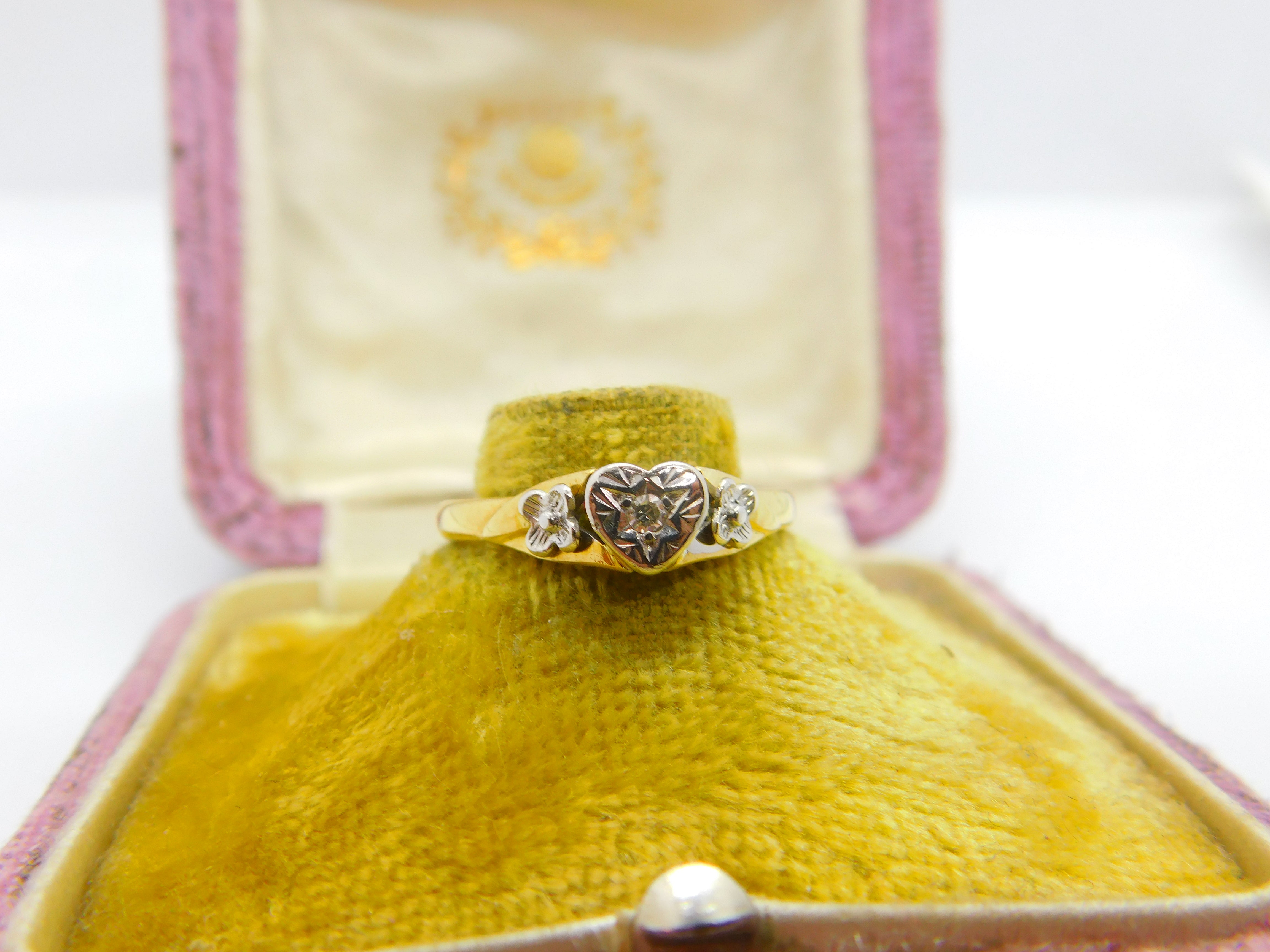 18ct Yellow Gold & Heart Set Diamond Sweetheart Ring 1971 Birmingham