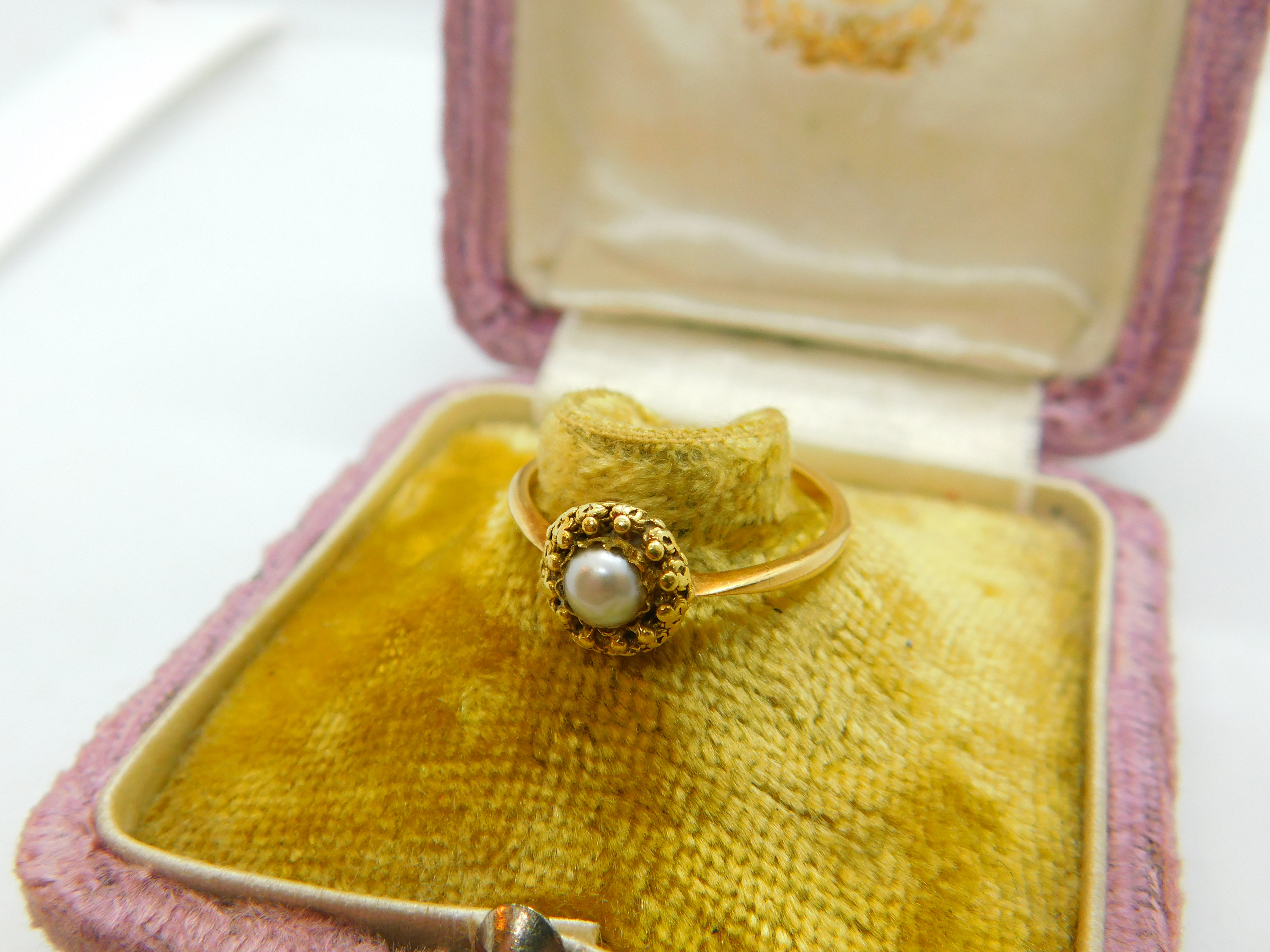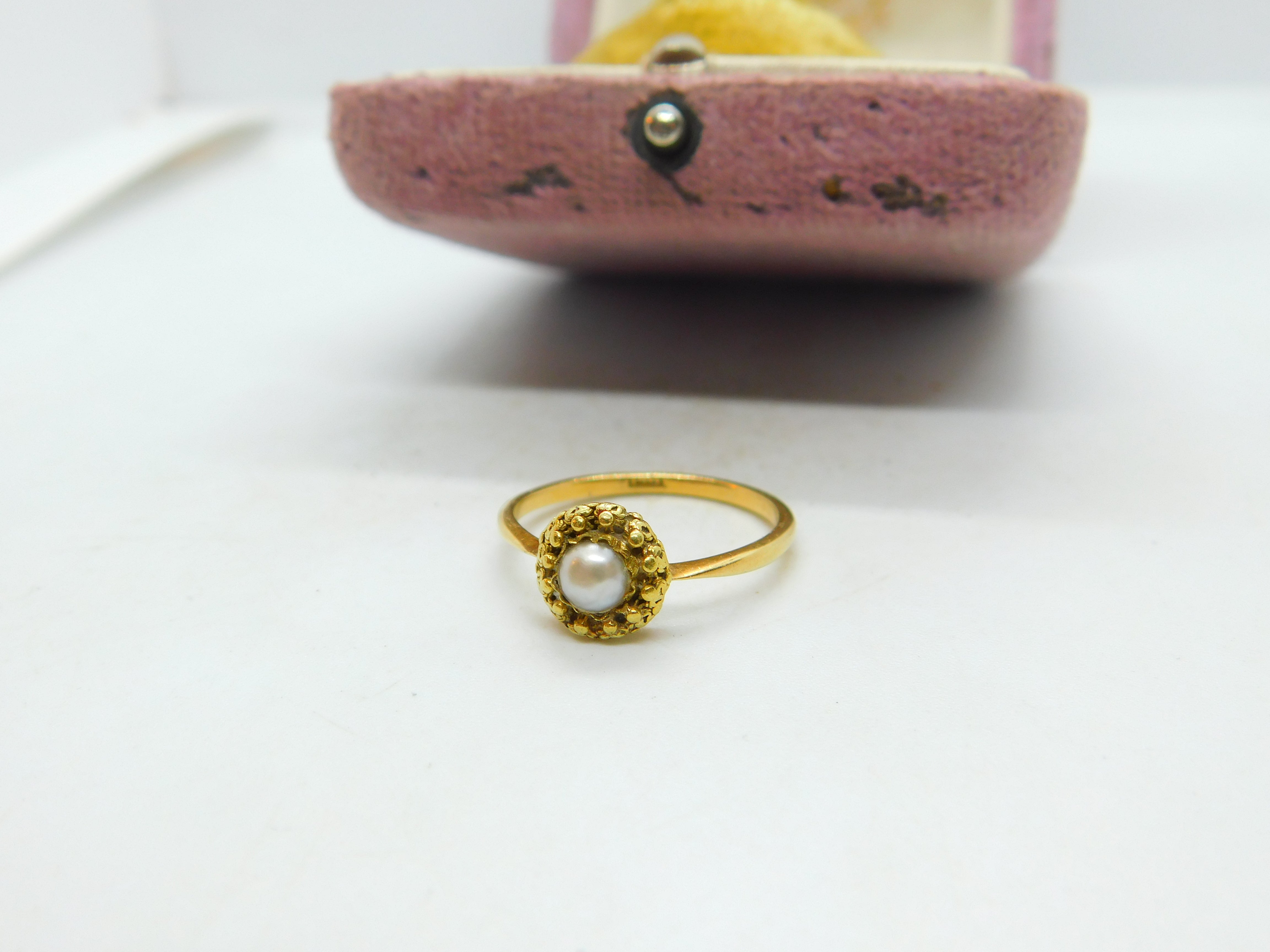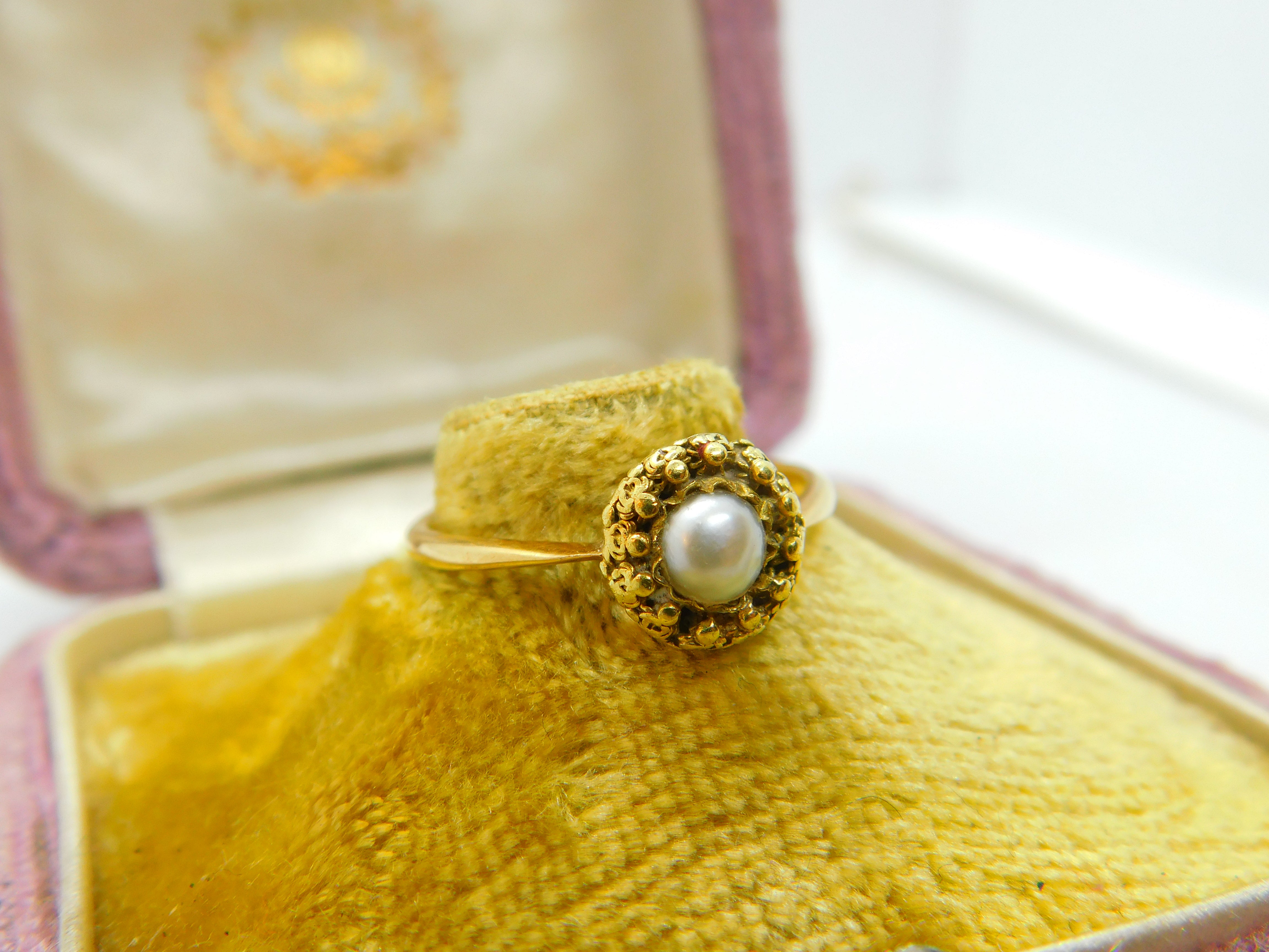 18ct Yellow Gold & Pearl Set Band Ring Antique c1930 Art Deco Size O UK