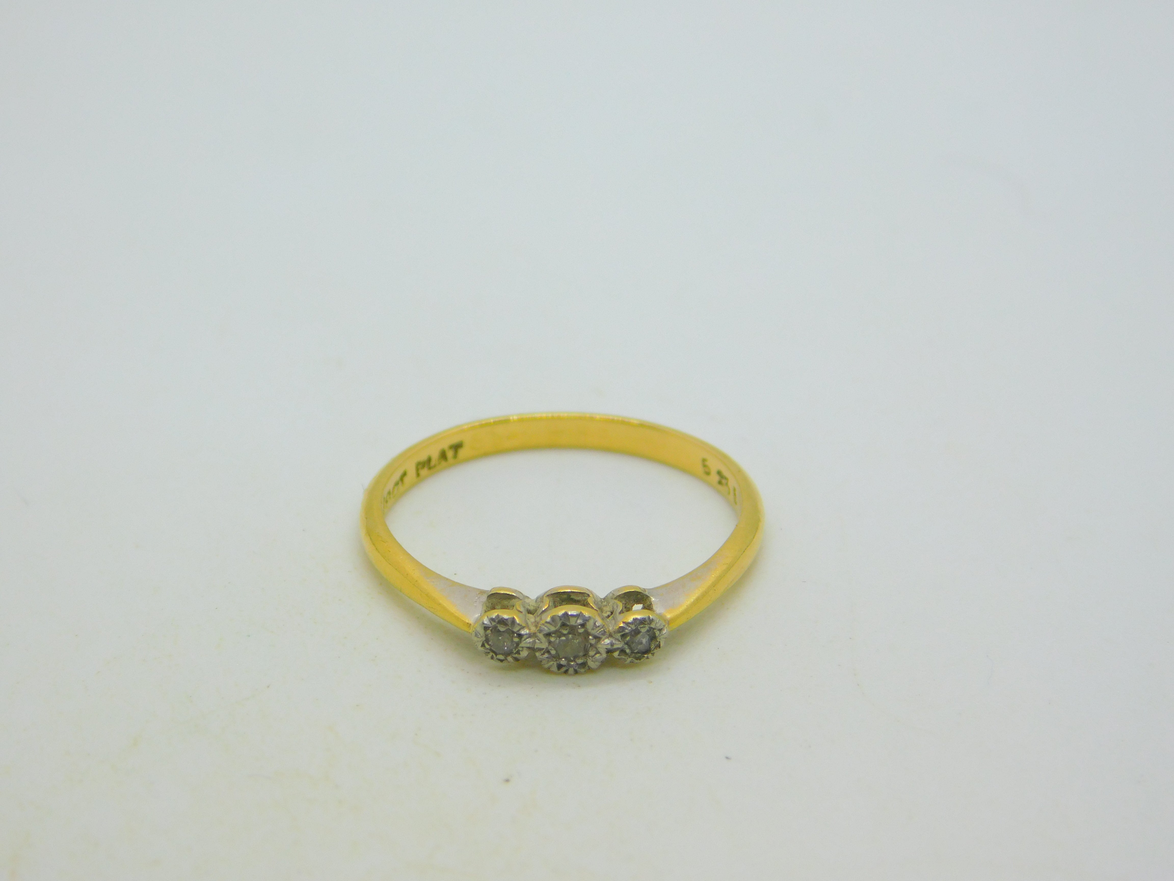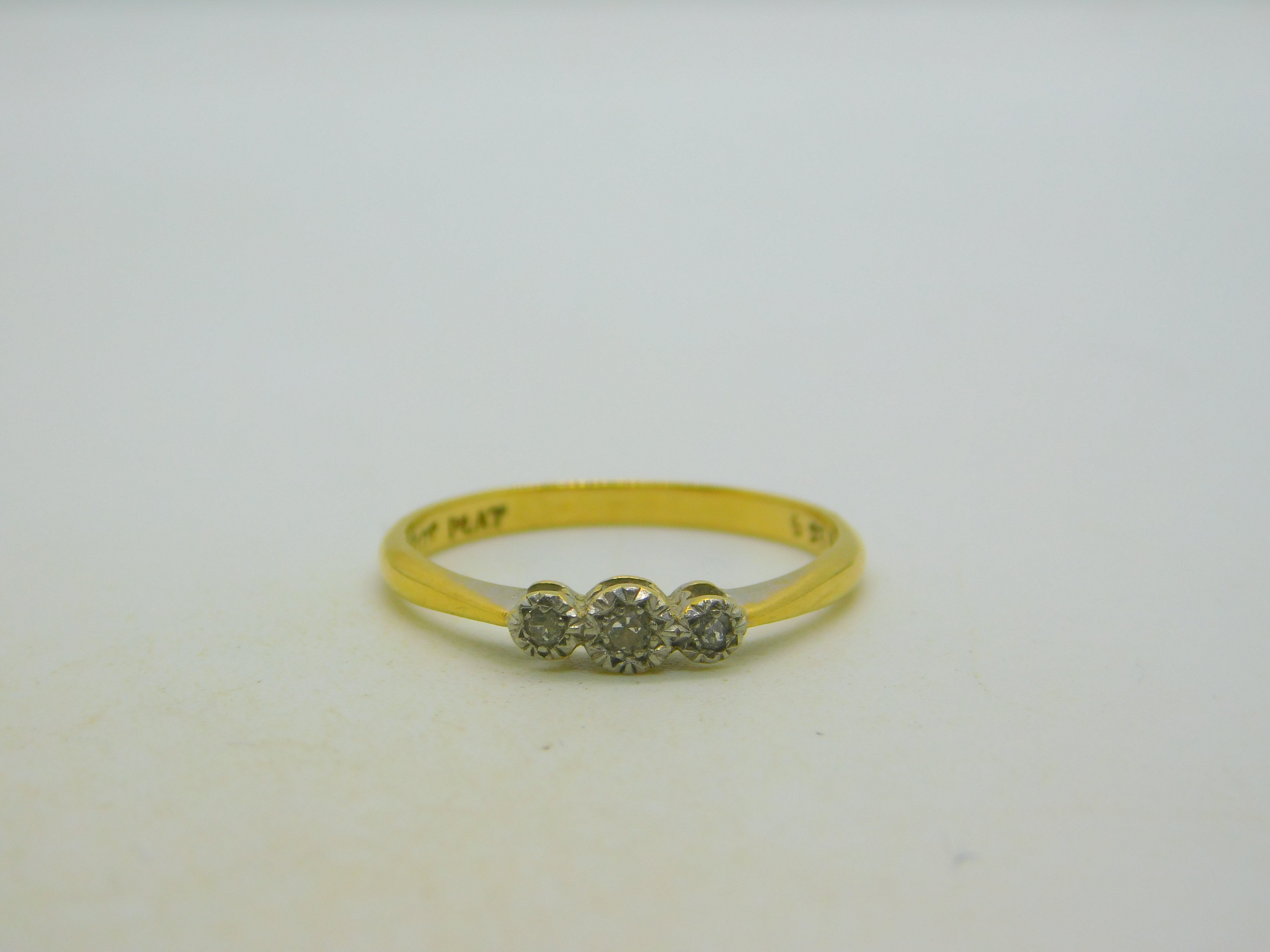 18ct Yellow Gold & Three-Stone Diamond Dress Ring Antique c1920 Art Deco