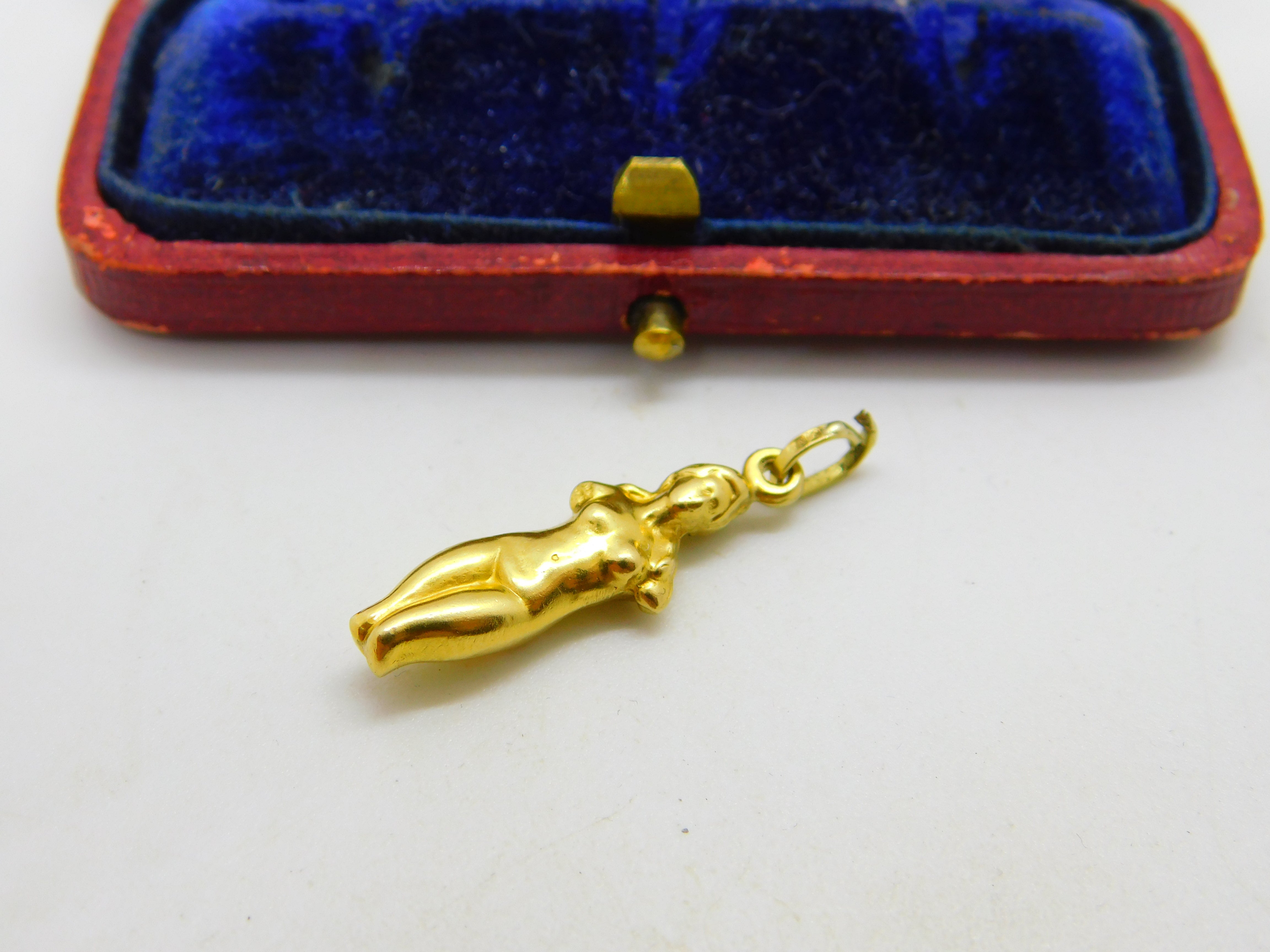 18ct Yellow Gold 'Venus de Milo' Classical Statue Charm Pendant Vintage c1970