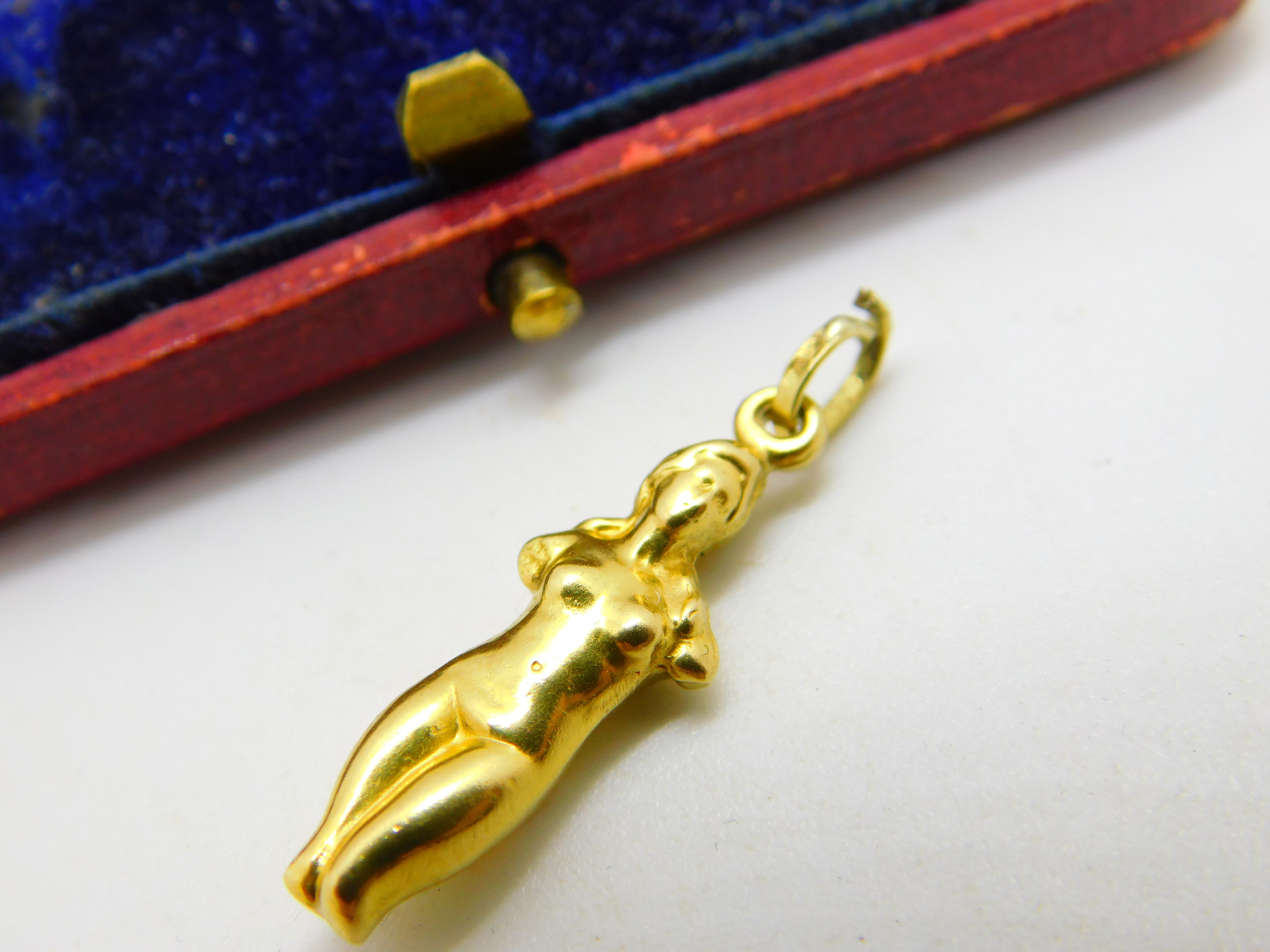 Details: A fantastic and wonderfully designed vintage 18ct yellow gold charm pendant depicting the classical Venus de Milo statue hallmarked to the bale and XRF tested c1970. This is a wonderful item that would make a perfect gift or addition to any collection. The BOX pictured is for PRESENTATION ONLY and is NOT included in the listings but used to frame the pictures unless specifically stated otherwise.