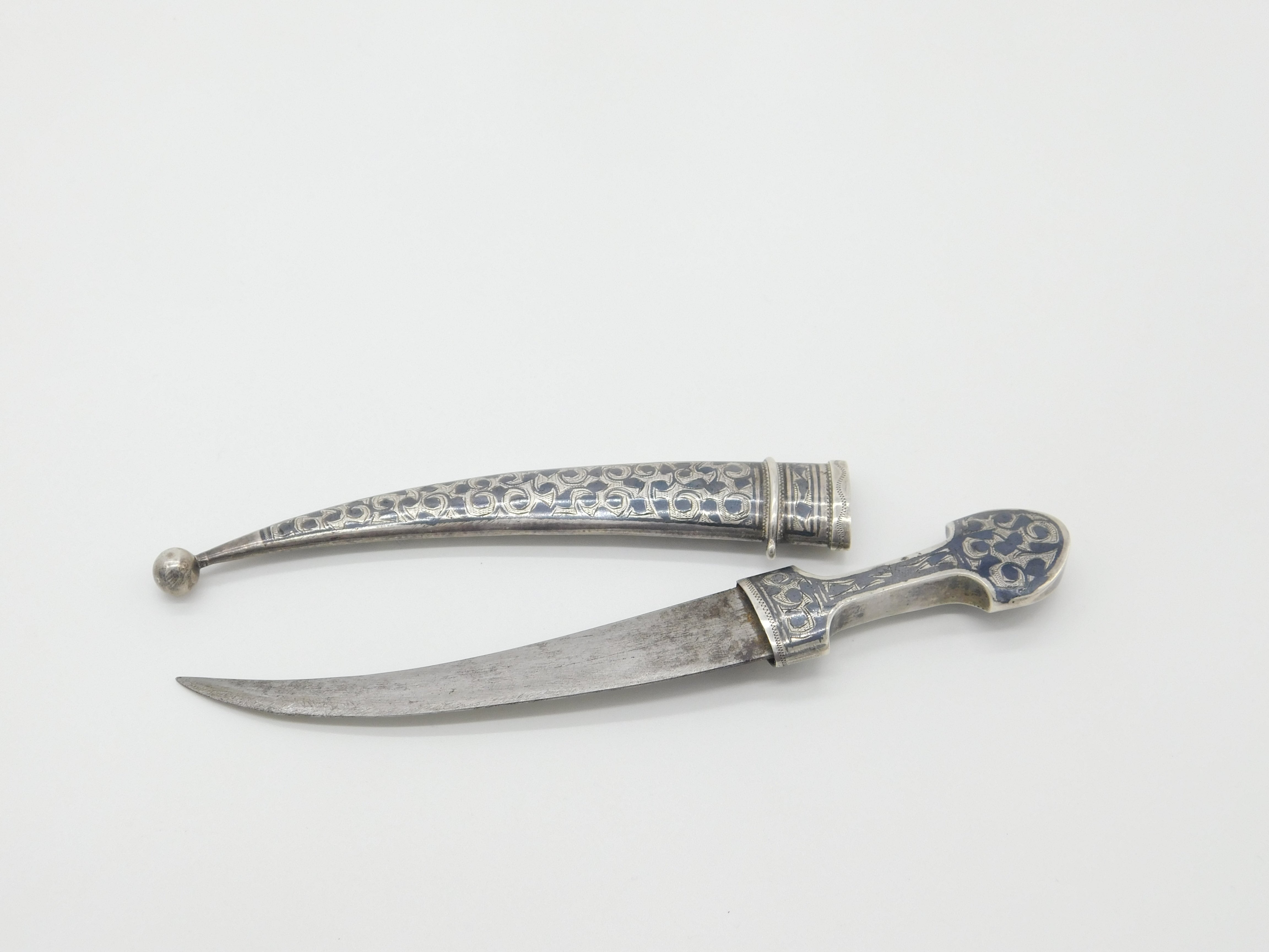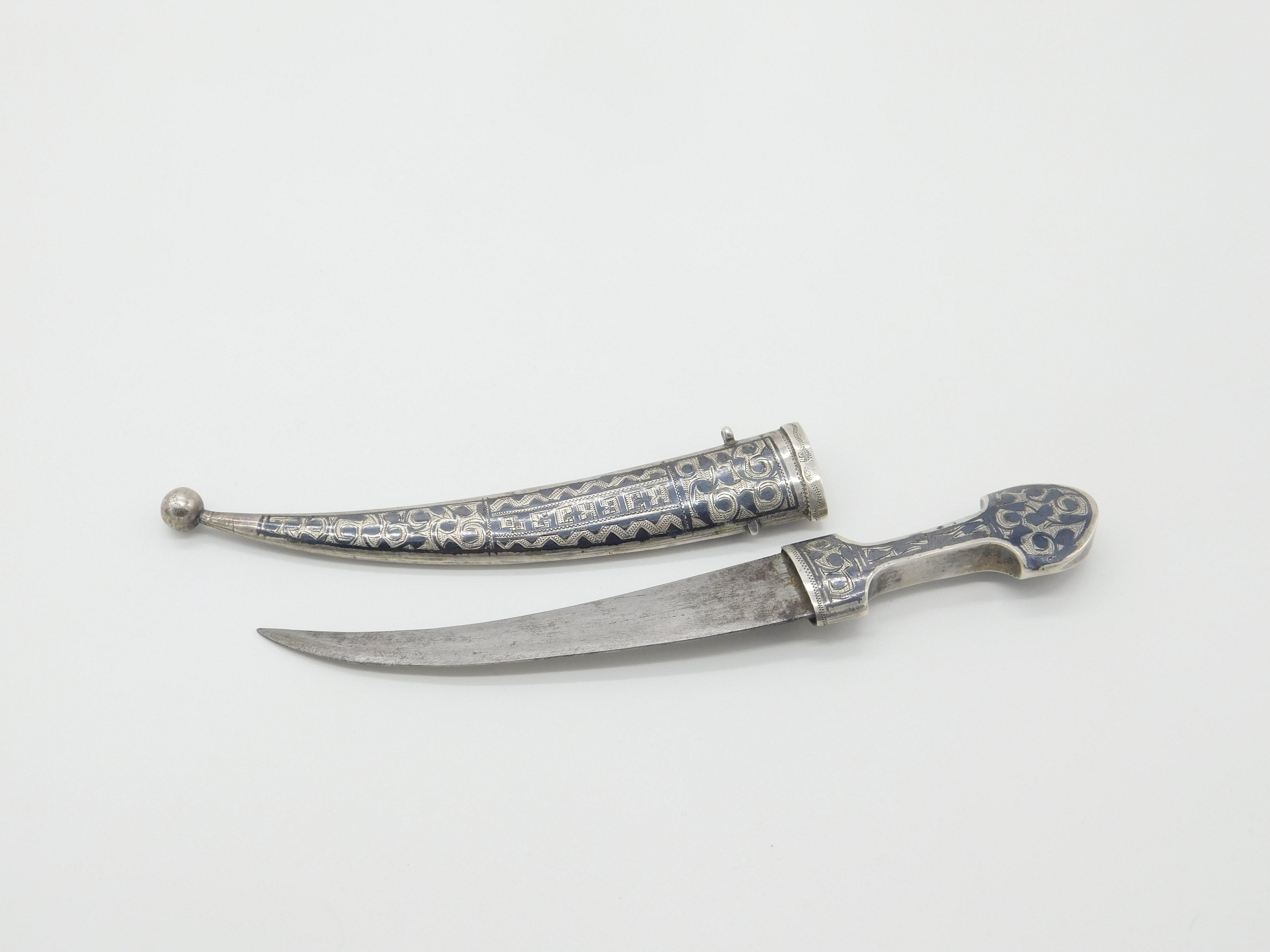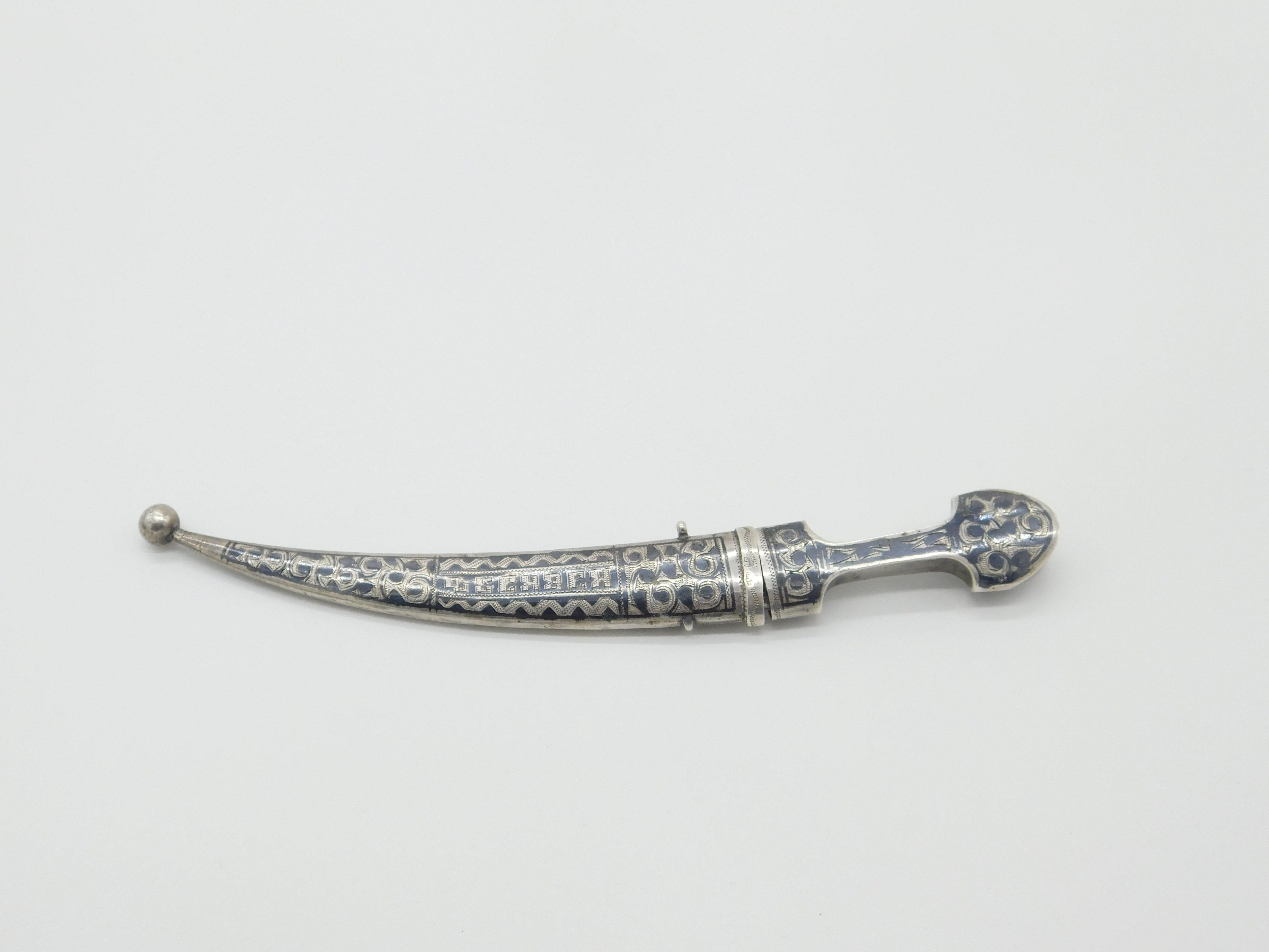 Russian .875 Silver & Niello Enamel Dagger Antique c1890 Victorian Kokoshnik Marks