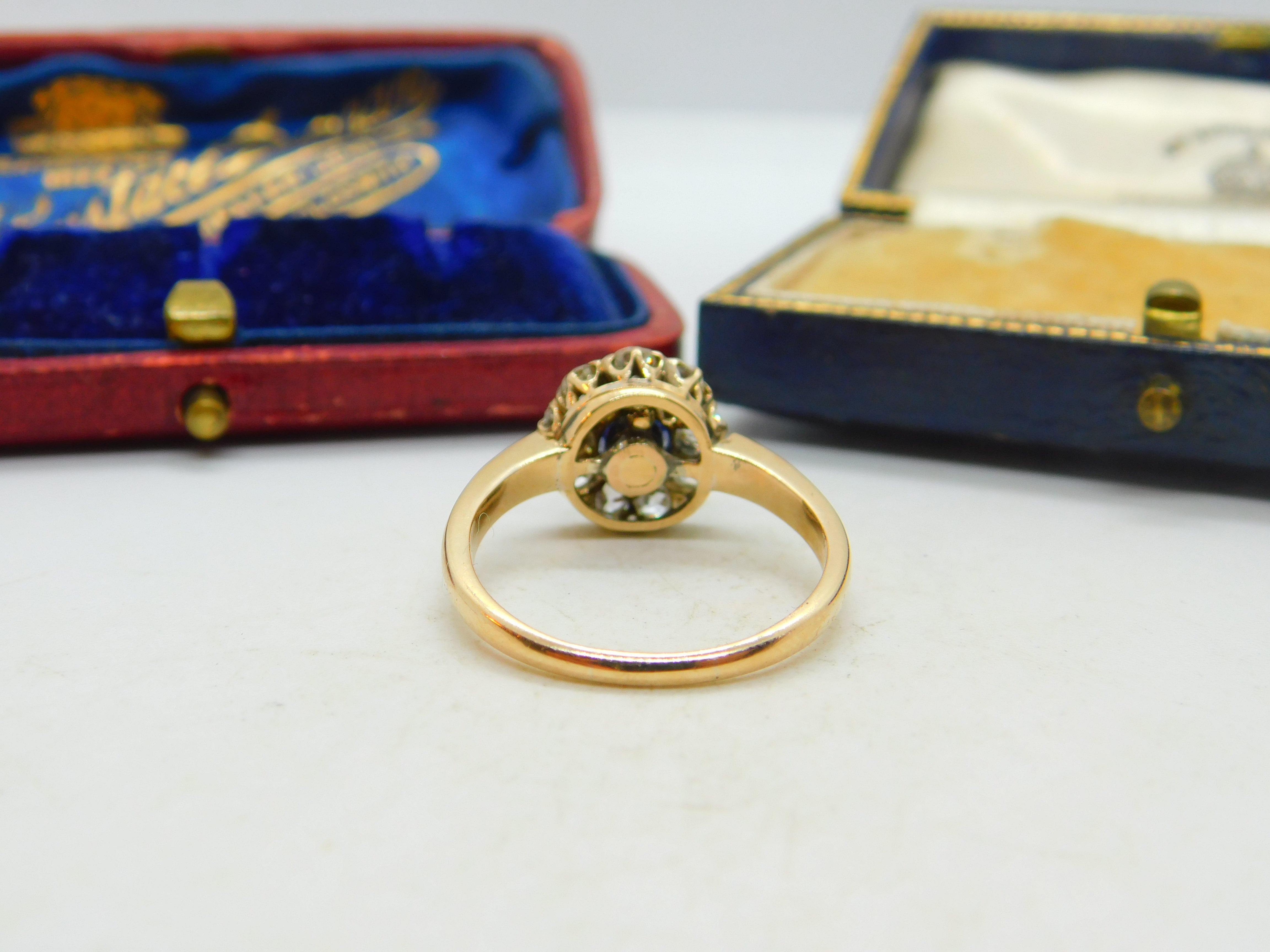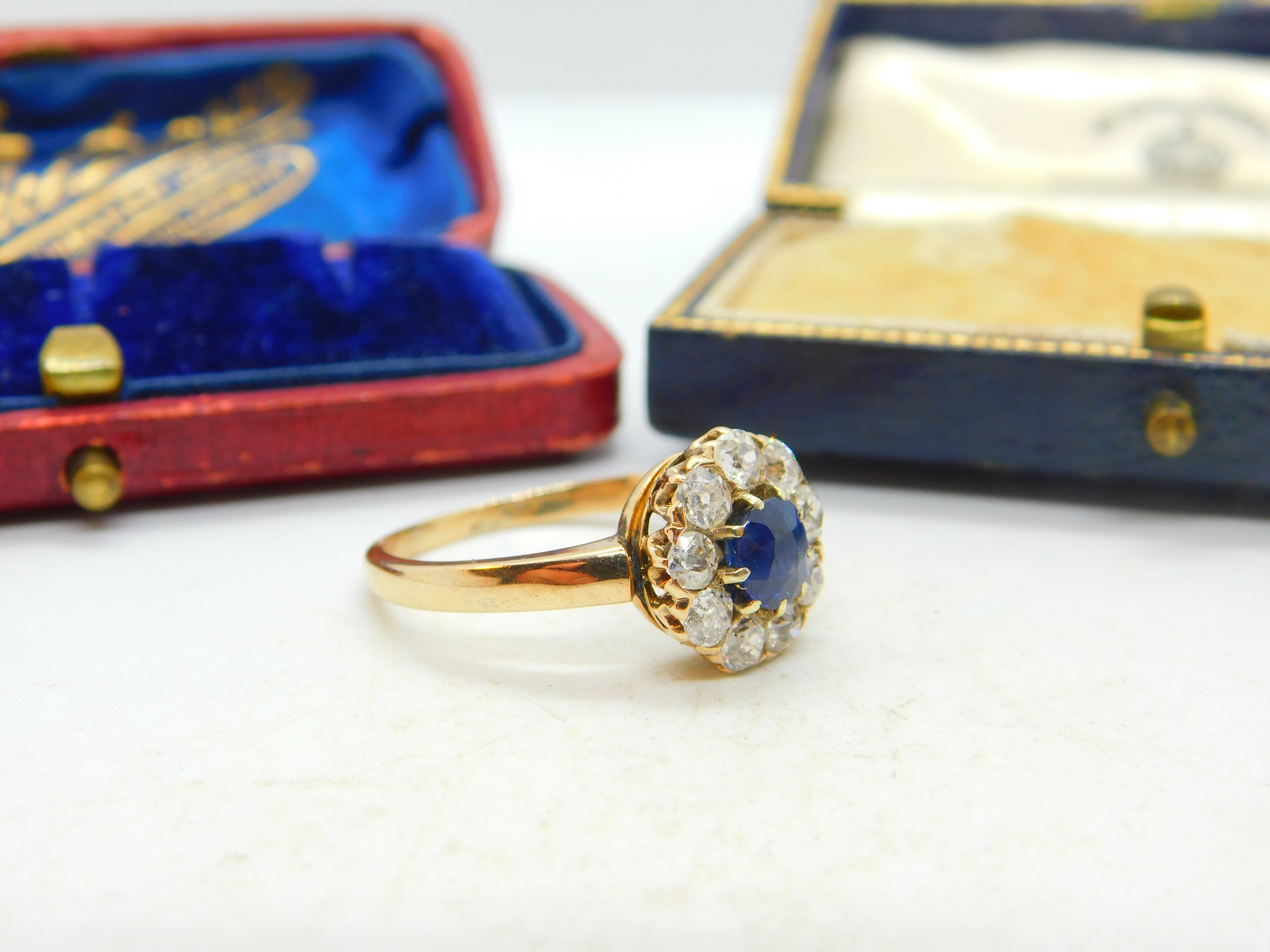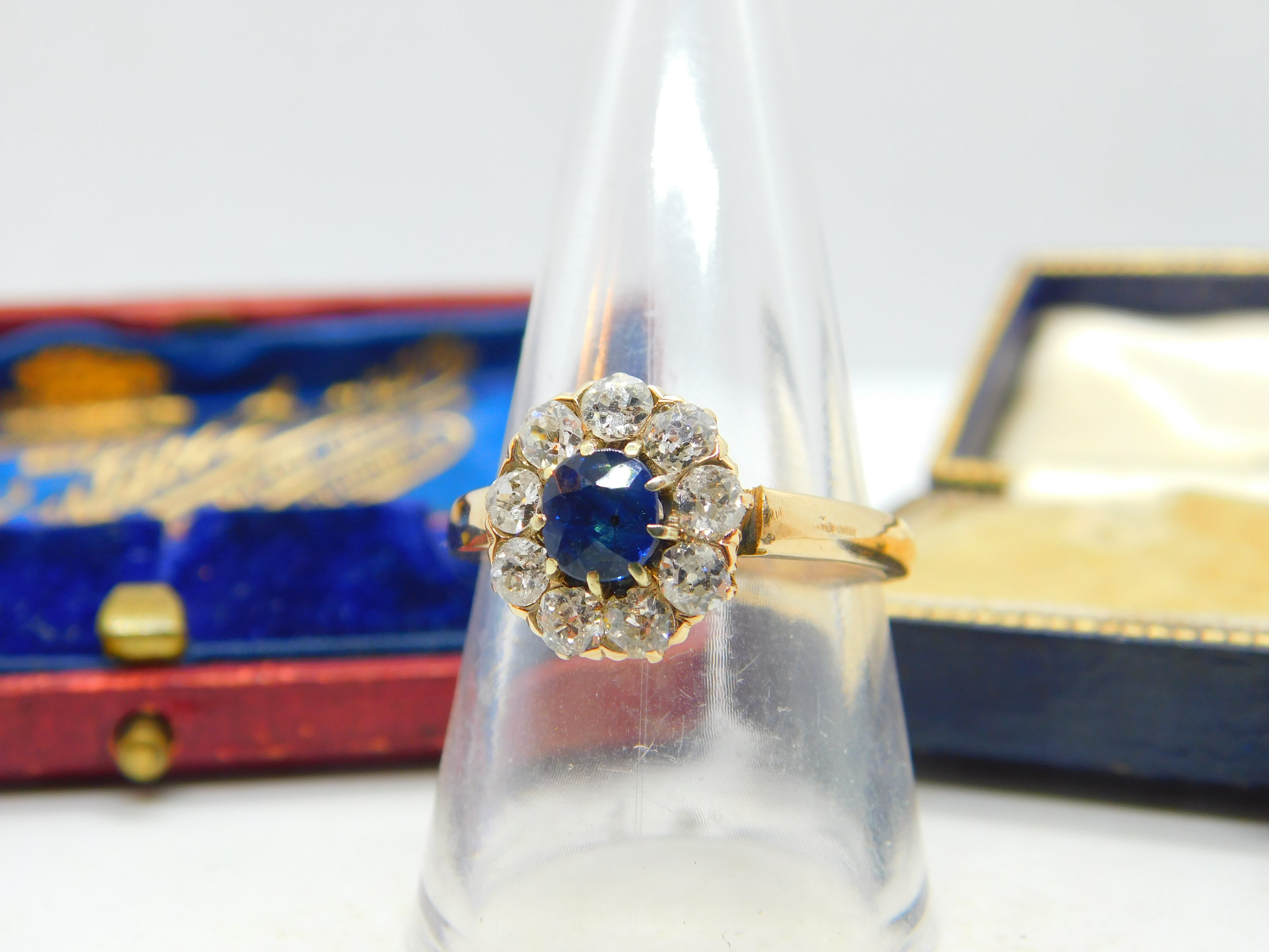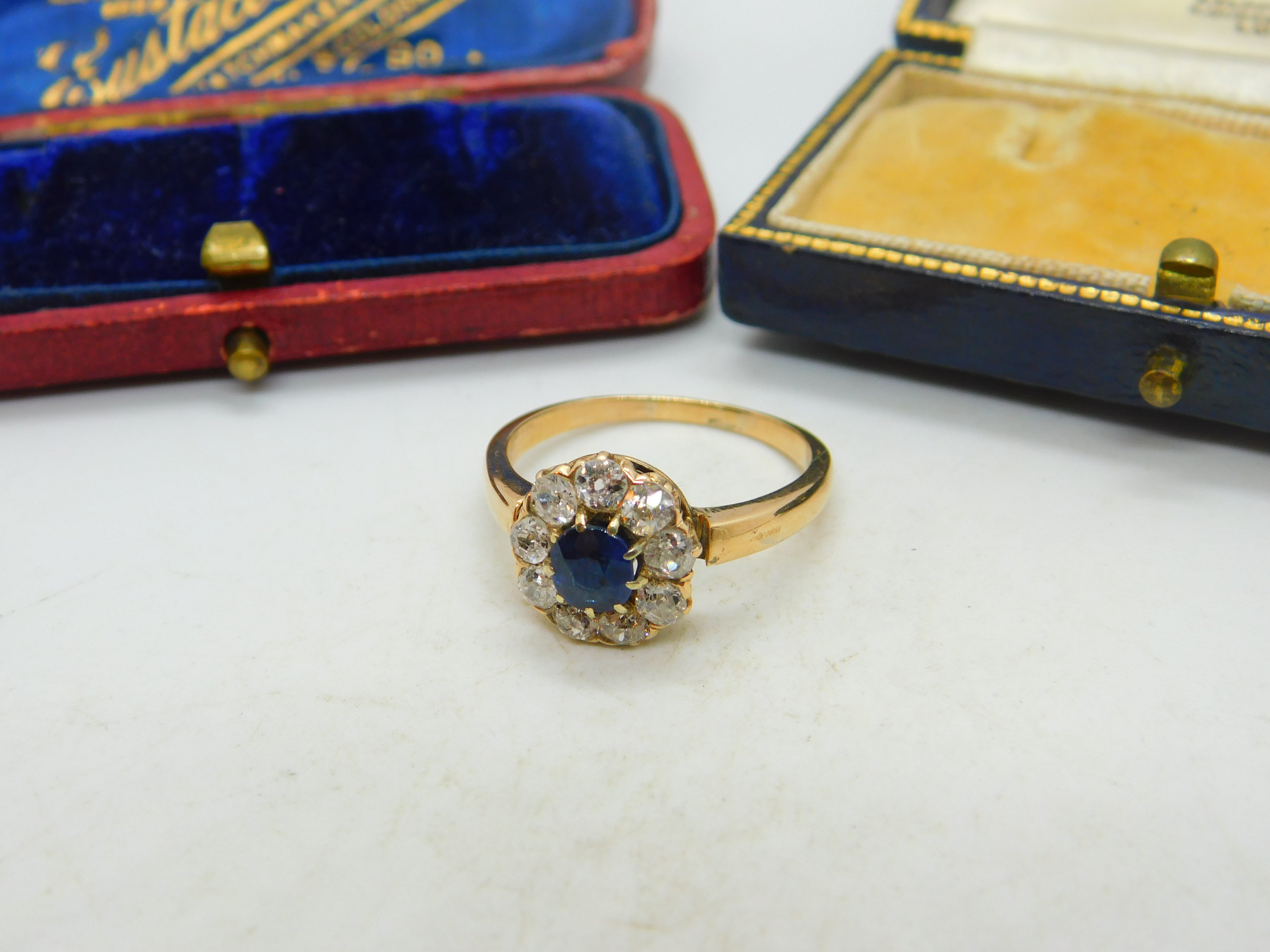 Sapphire and 2ct Diamond 14ct Yellow Gold Cluster Ring Vintage Art Deco c1920