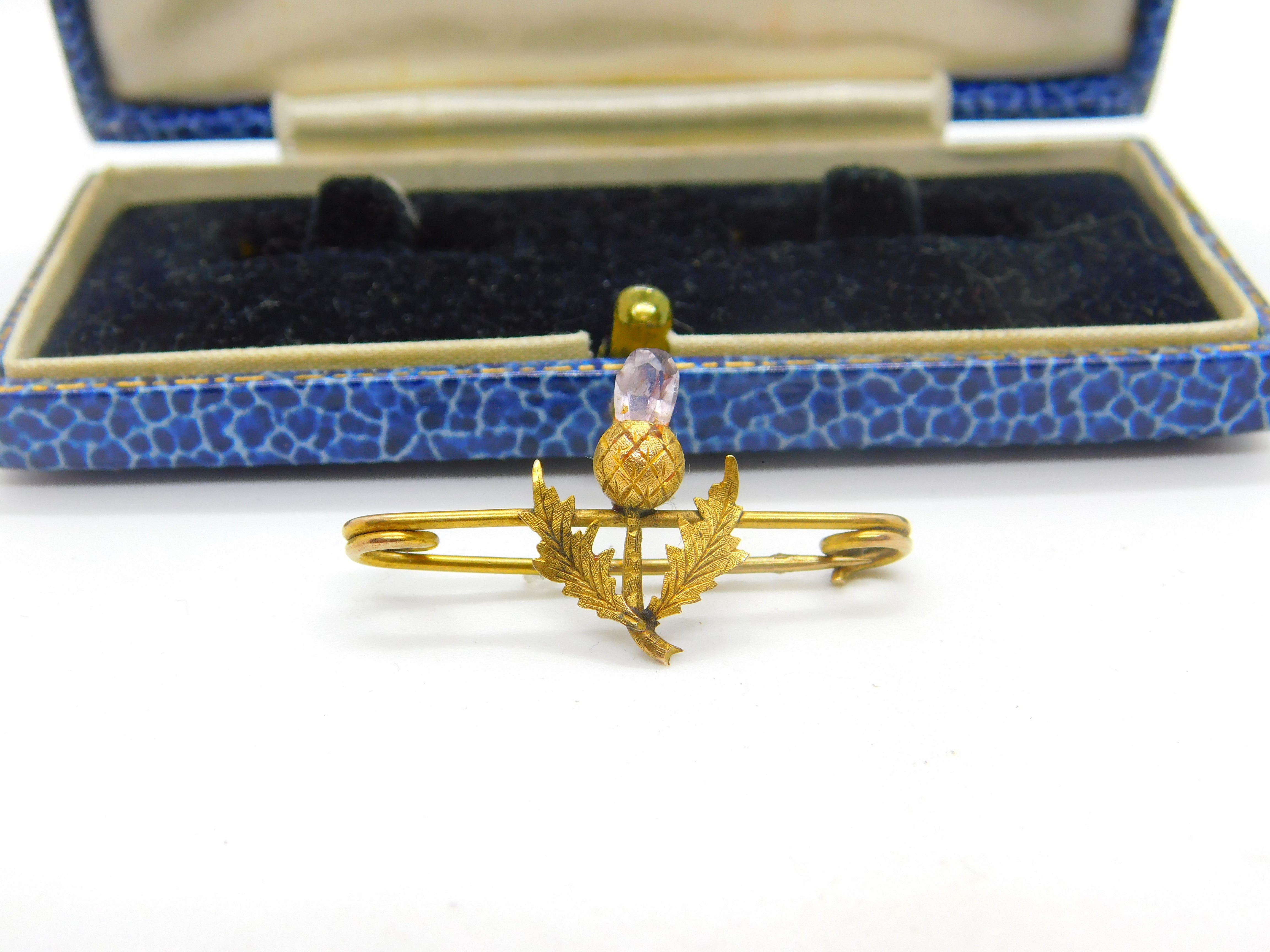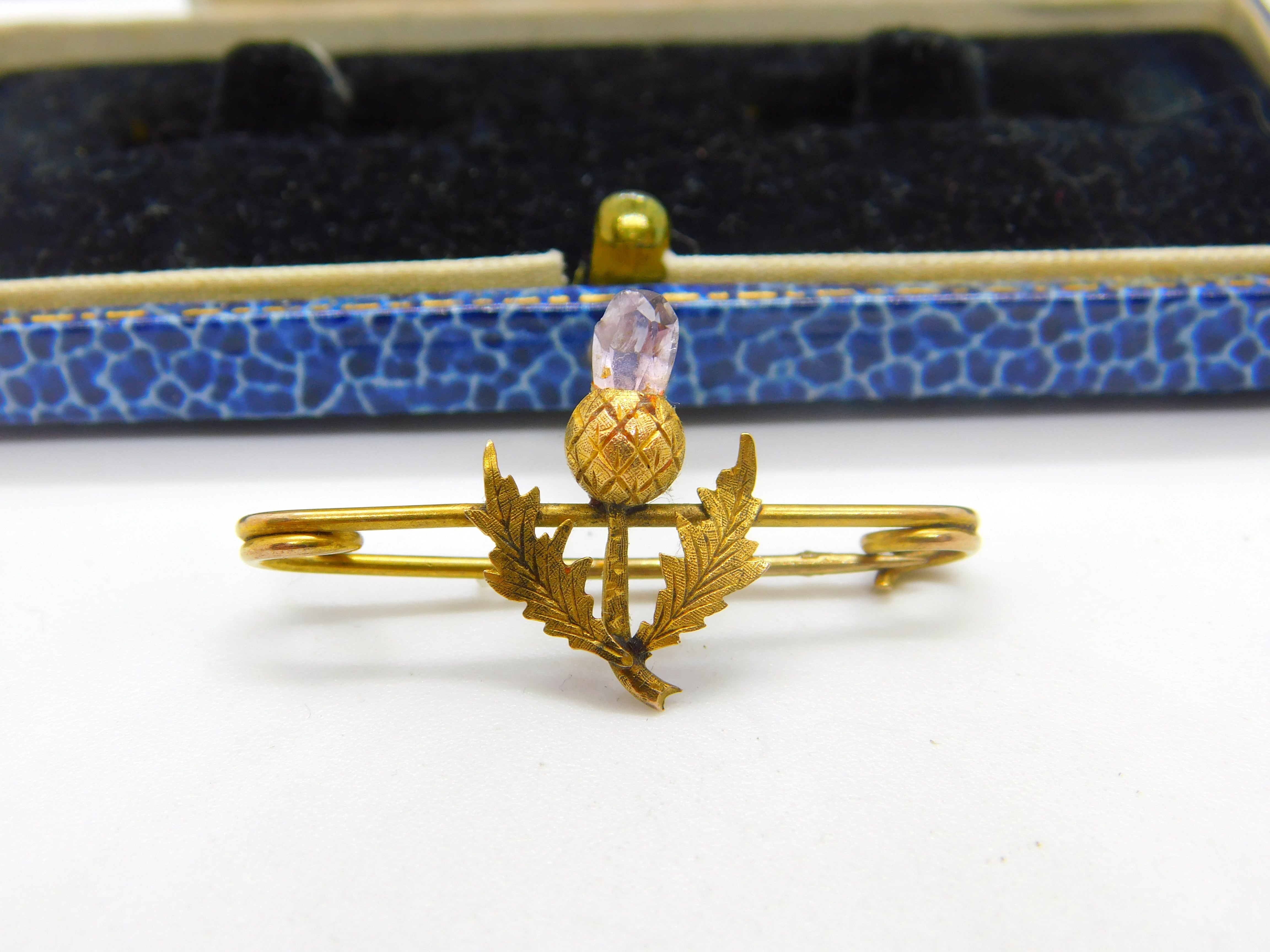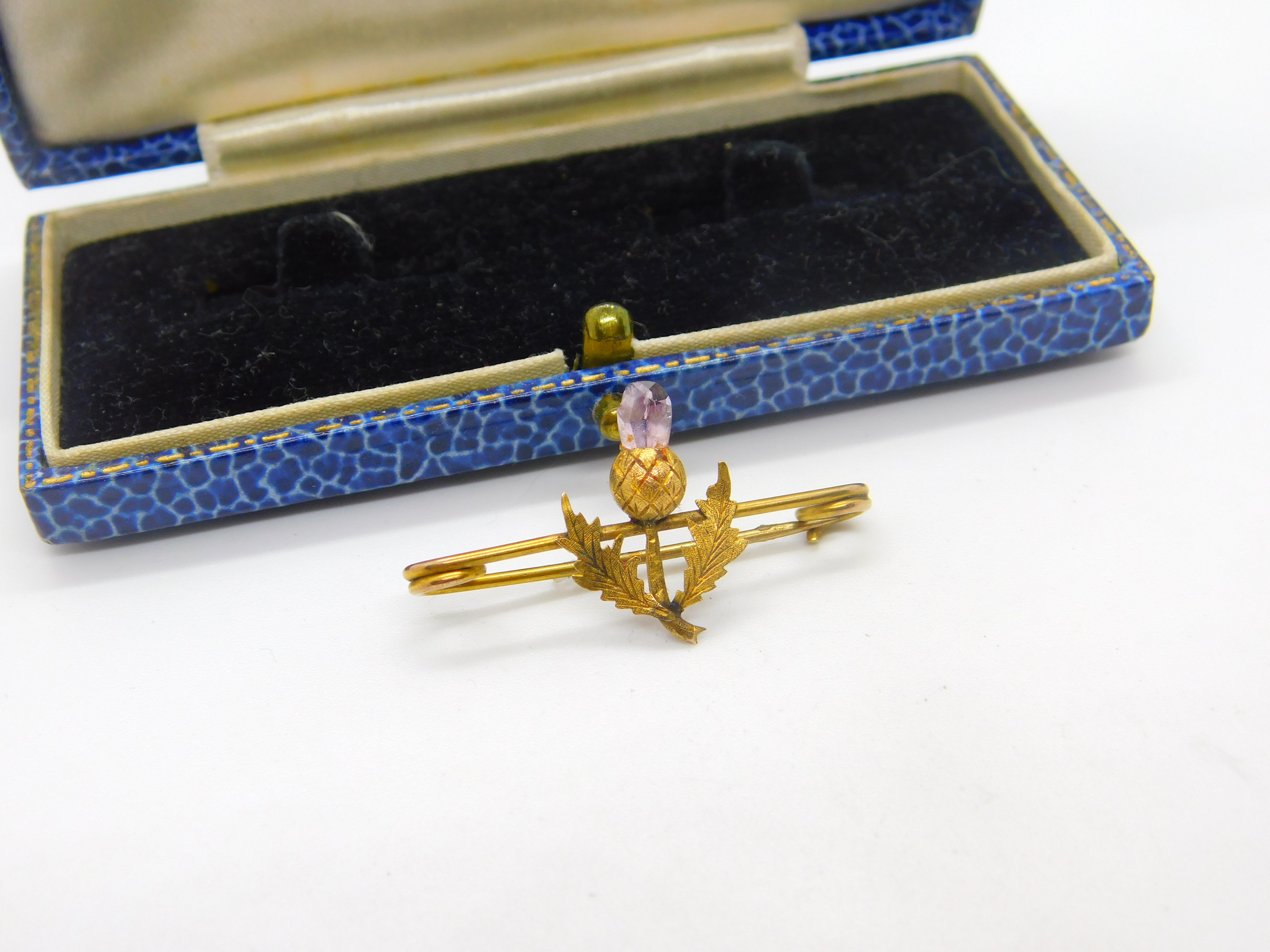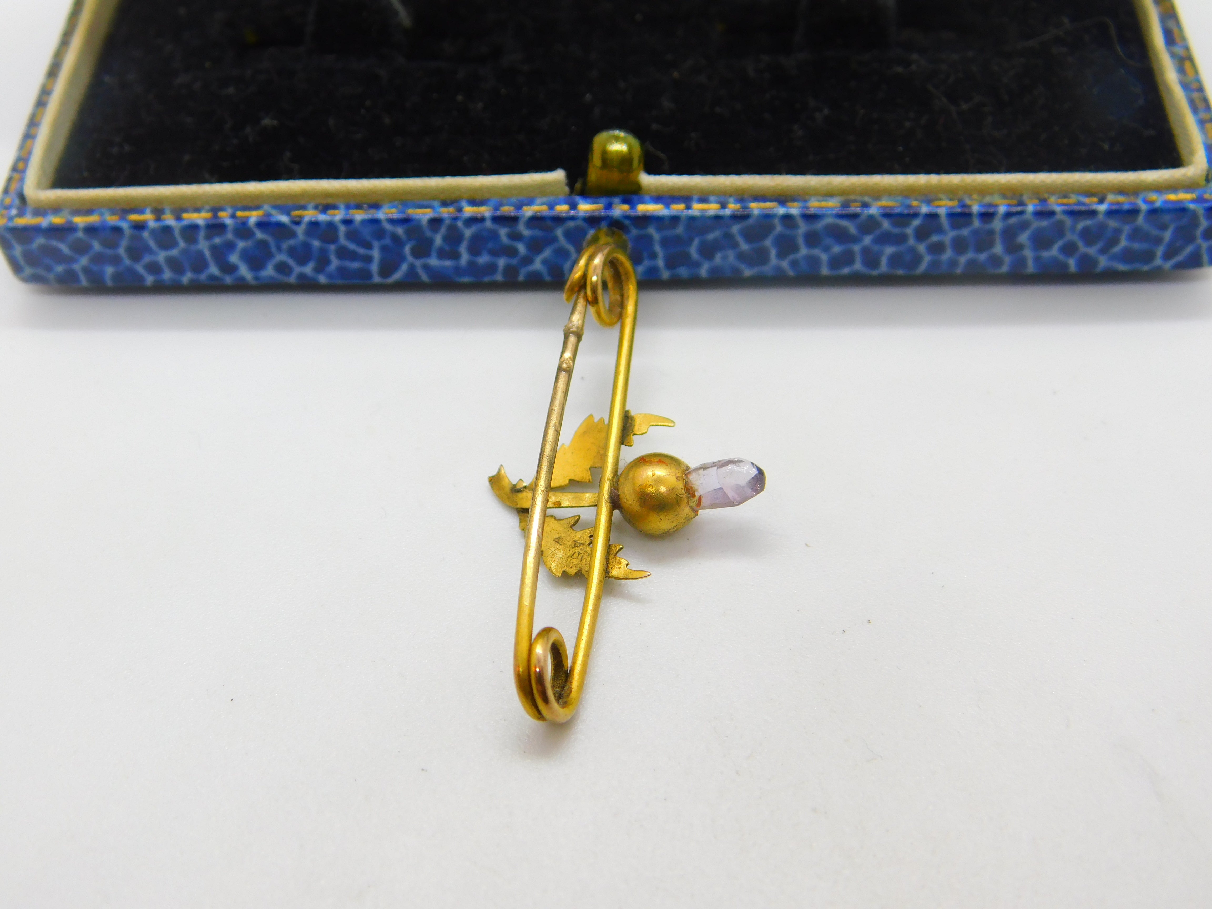 Scottish Victorian 15ct Yellow Gold & Amethyst Thistle Sweetheart Brooch Antique