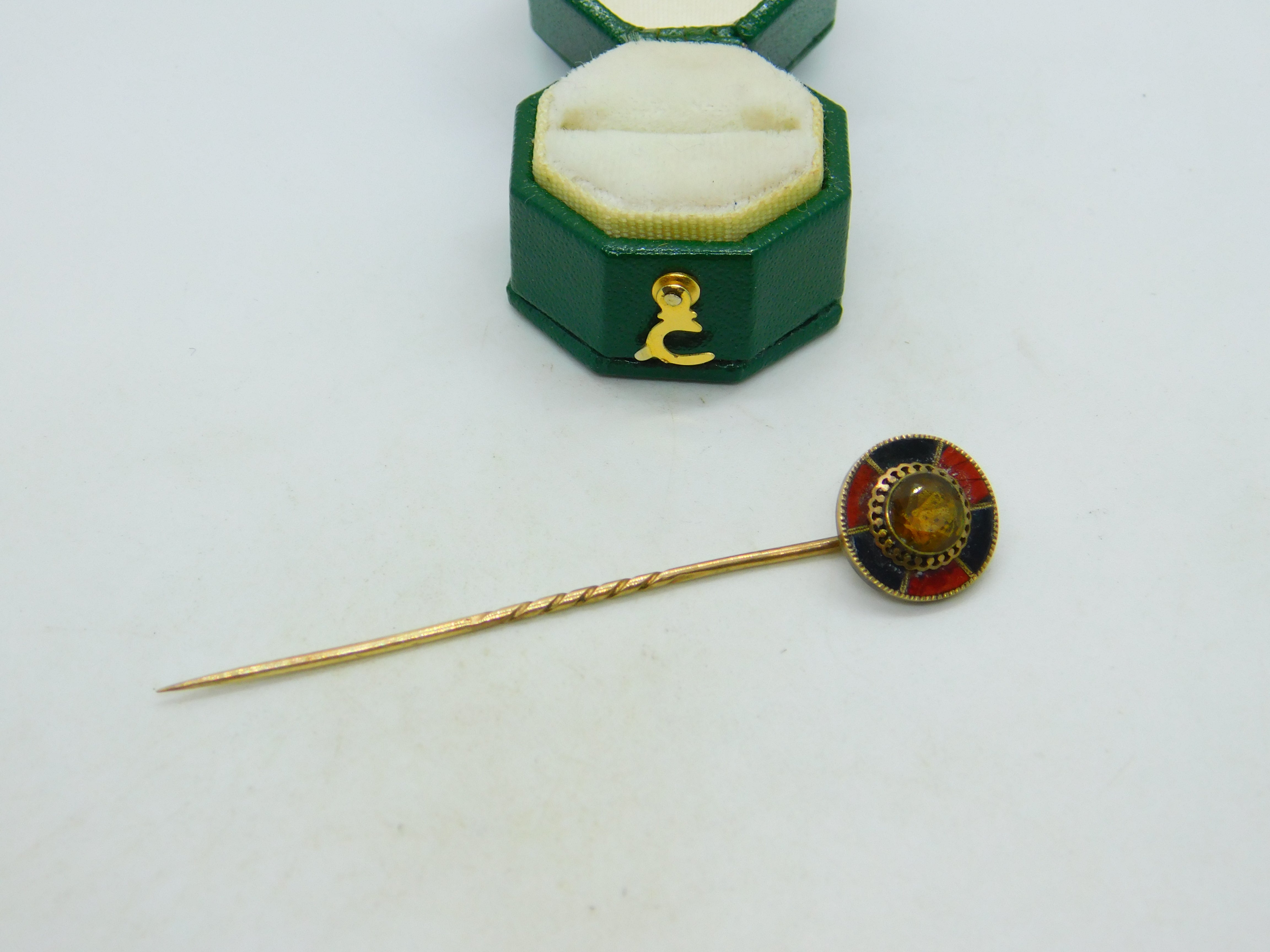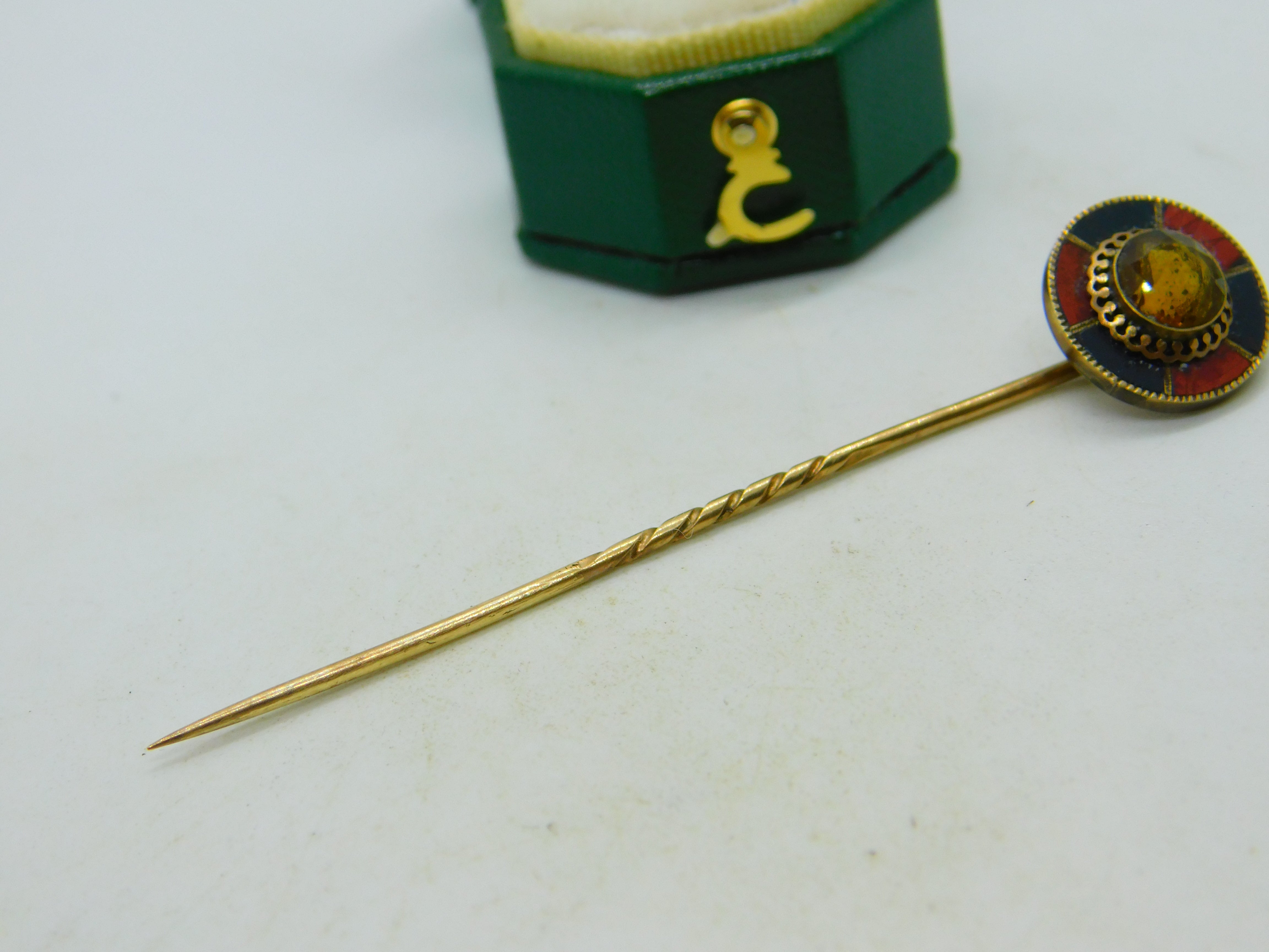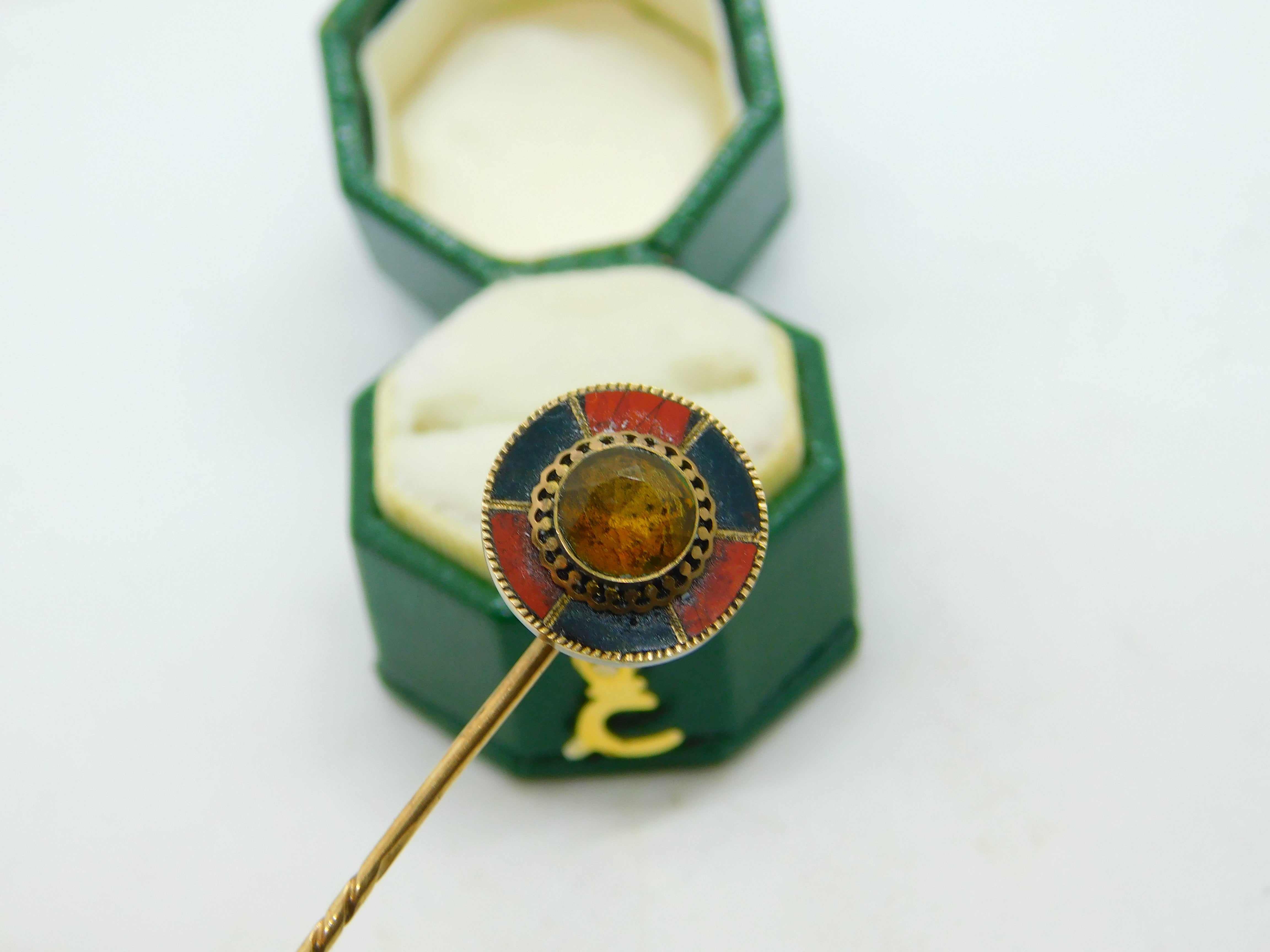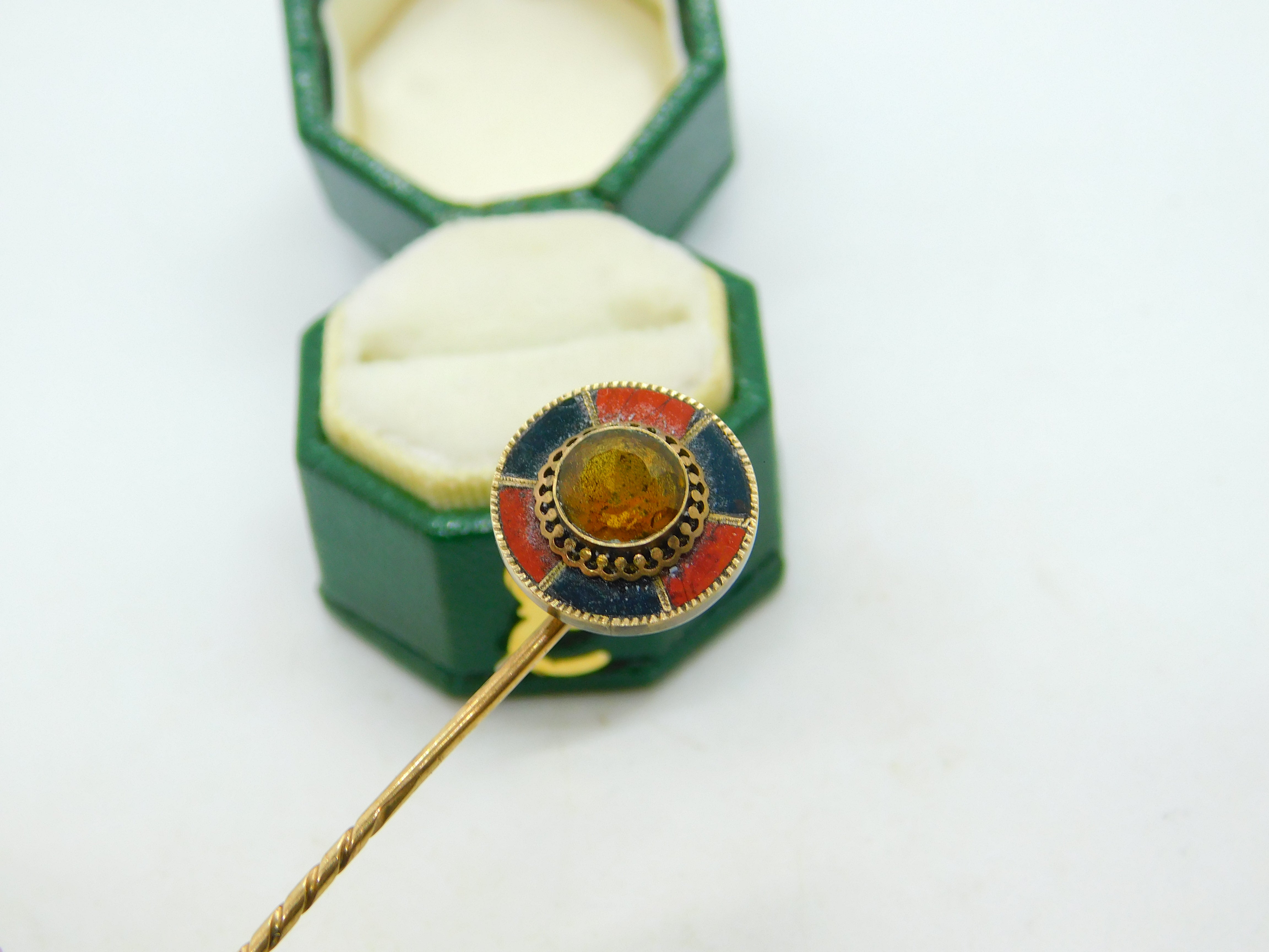 Scottish Victorian 9ct Gold, Bloodstone, Agate & Citrine Stick Pin Antique c1880