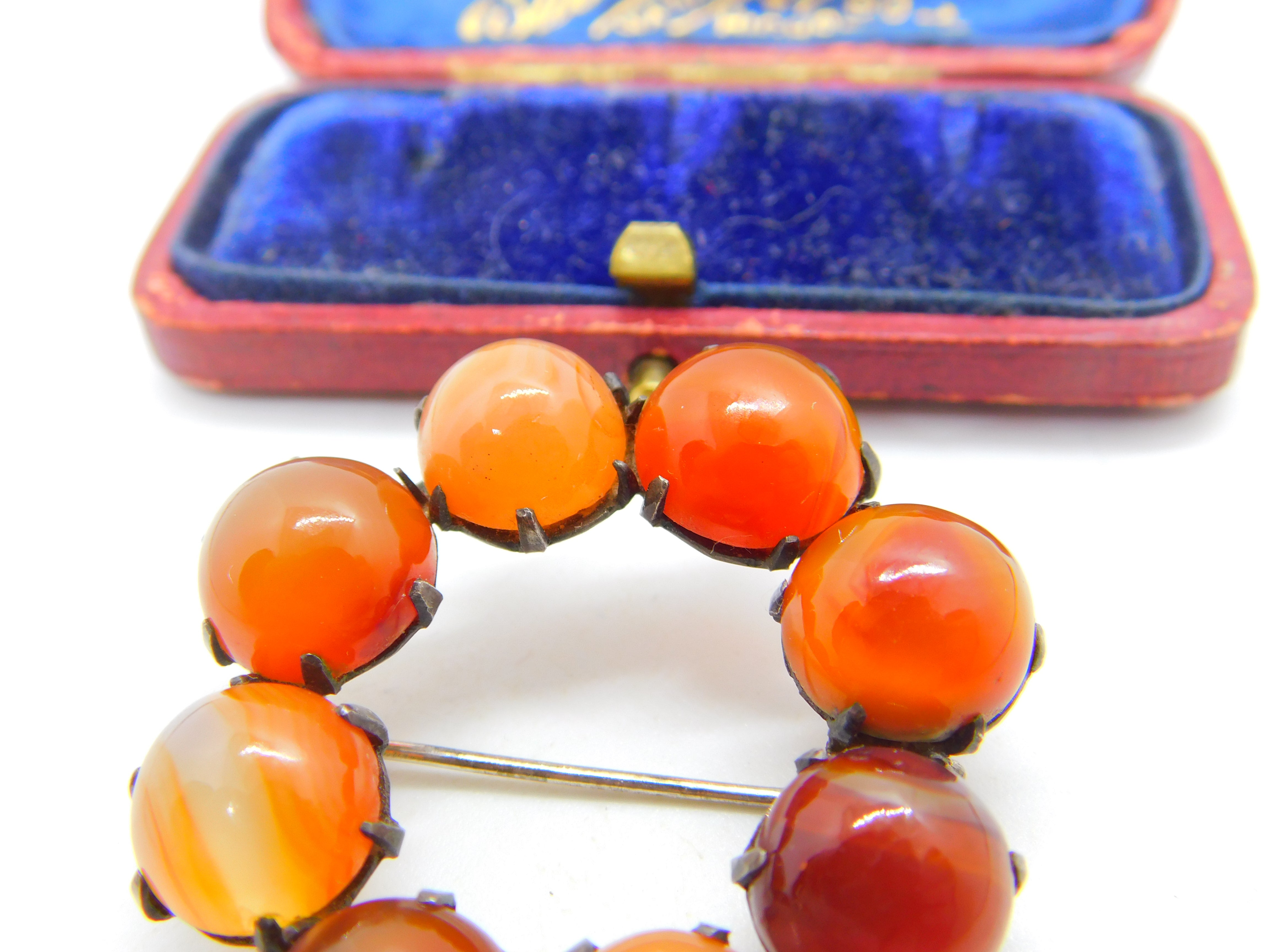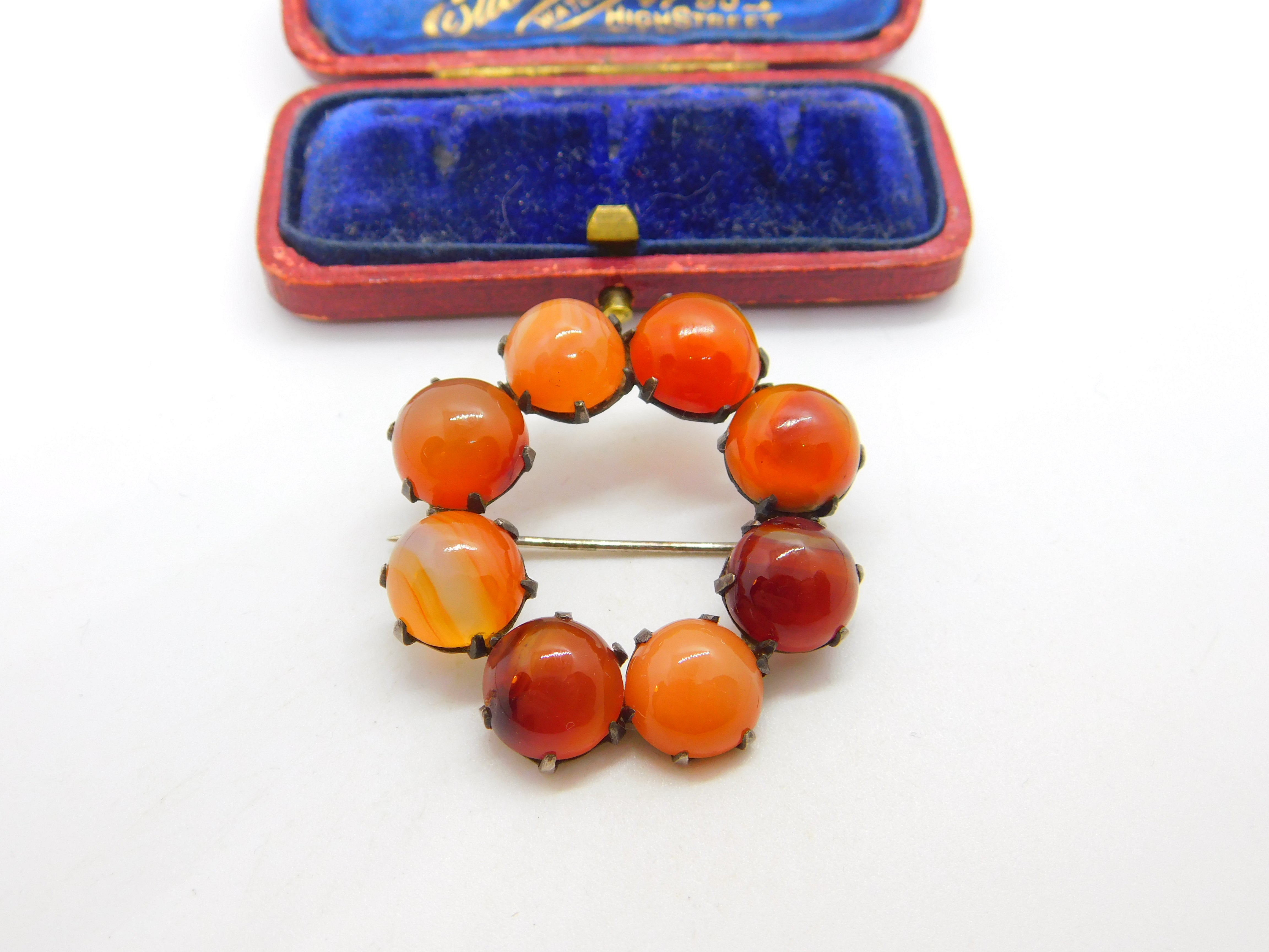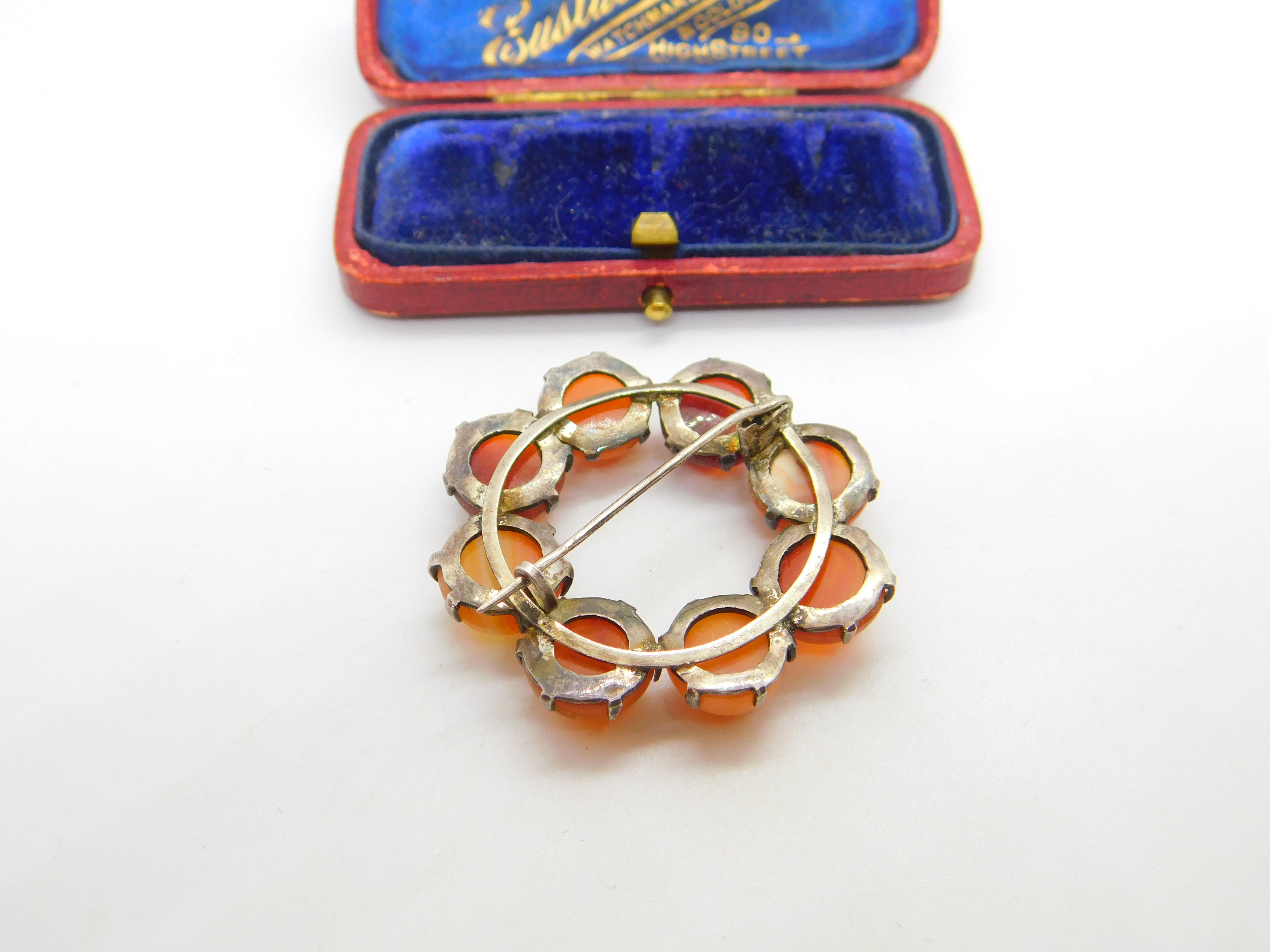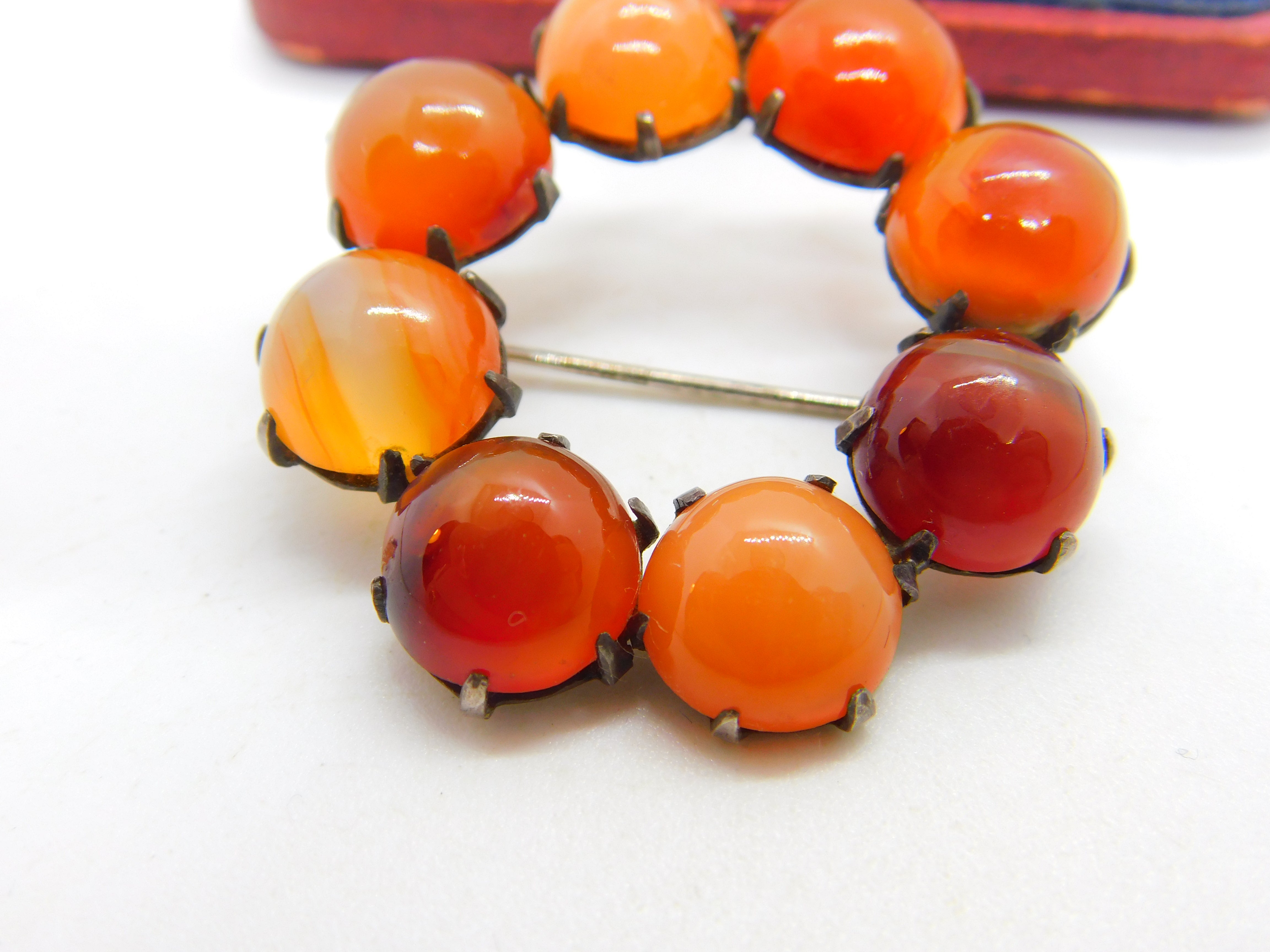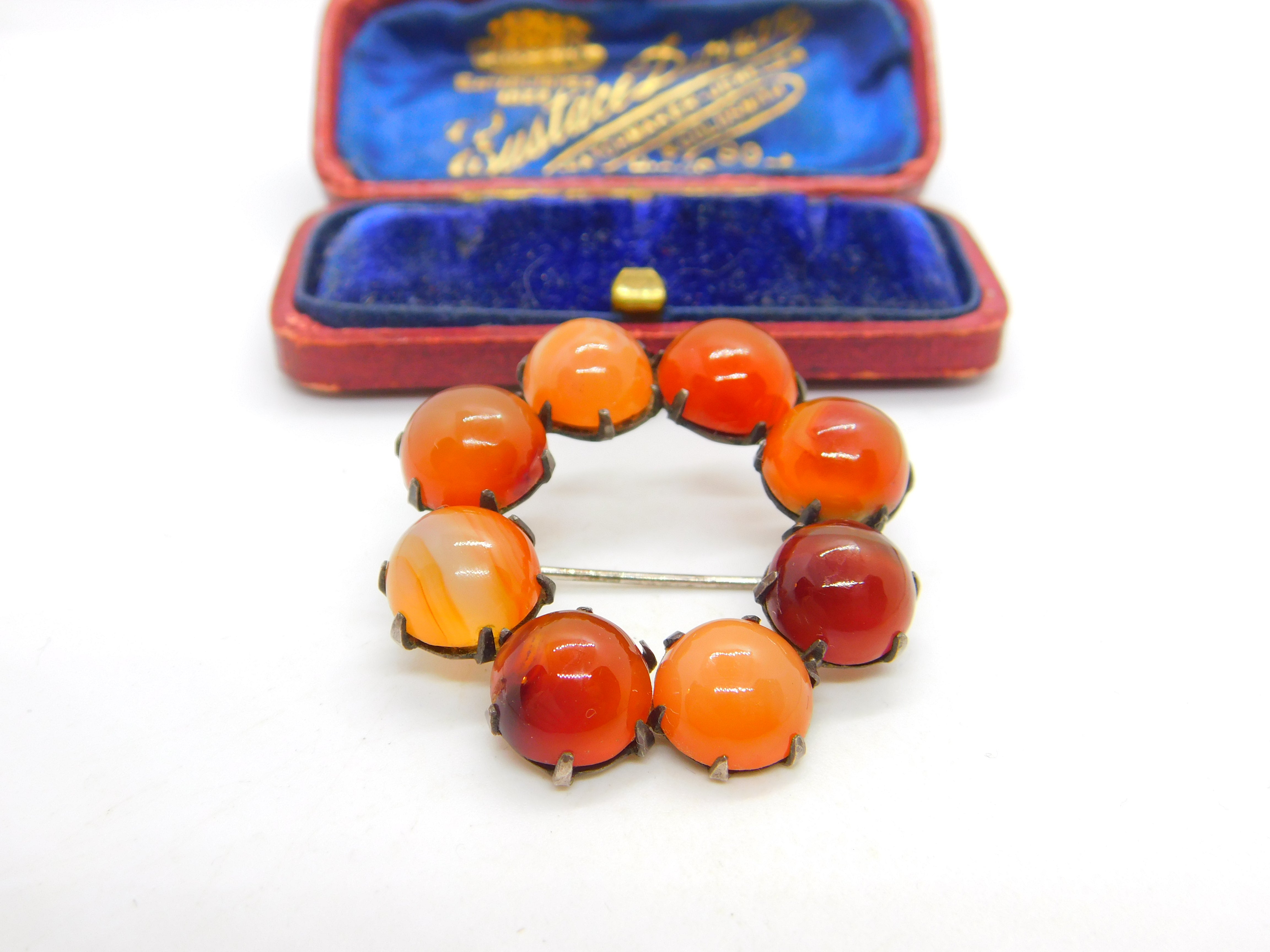 Scottish Victorian Sterling Silver Cabochon Red Agate Brooch c1860 Antique