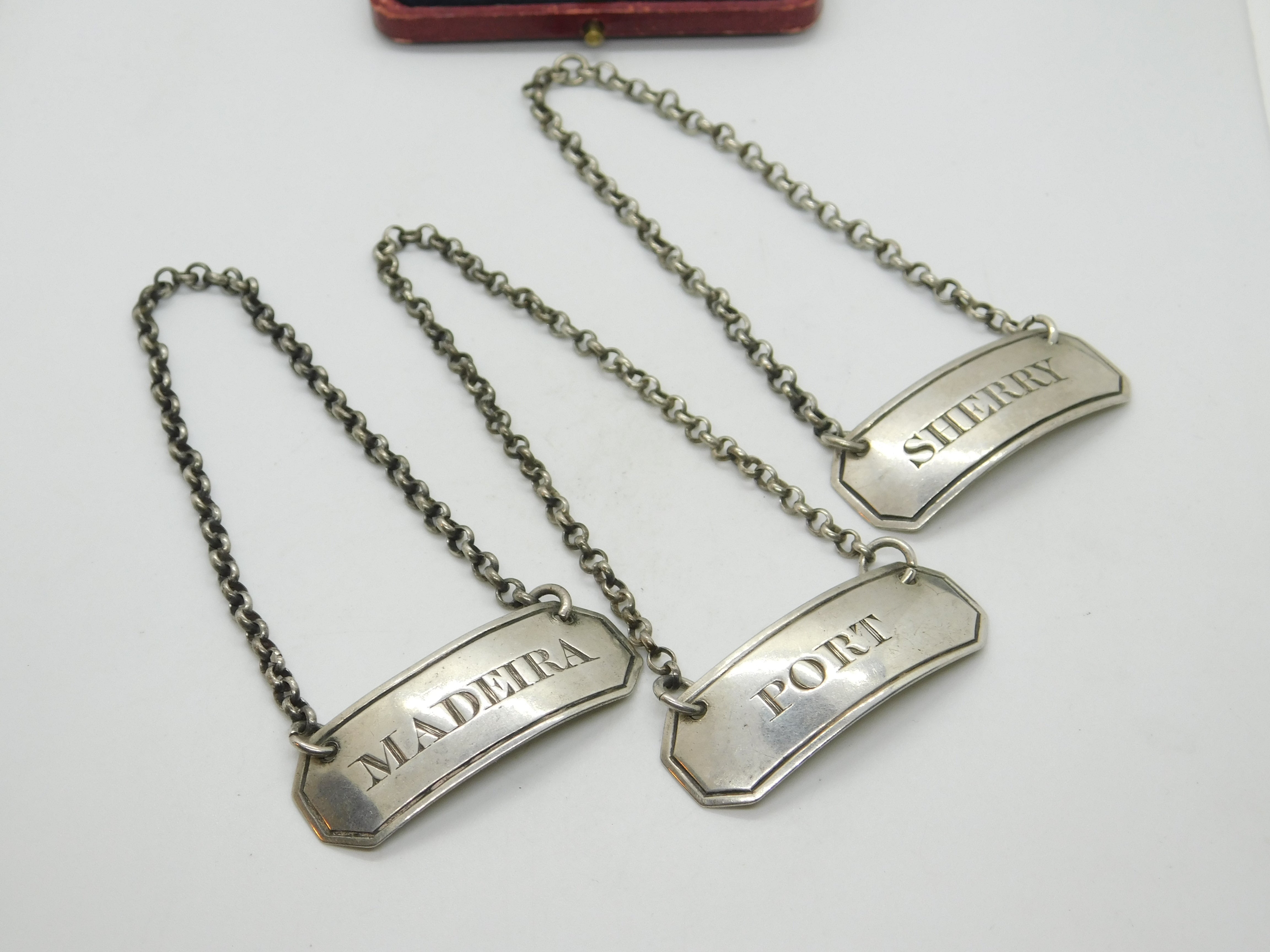 Set of 3 Georgian Sterling Silver 'Madeira, Port, Sherry' Decanter Labels 1807