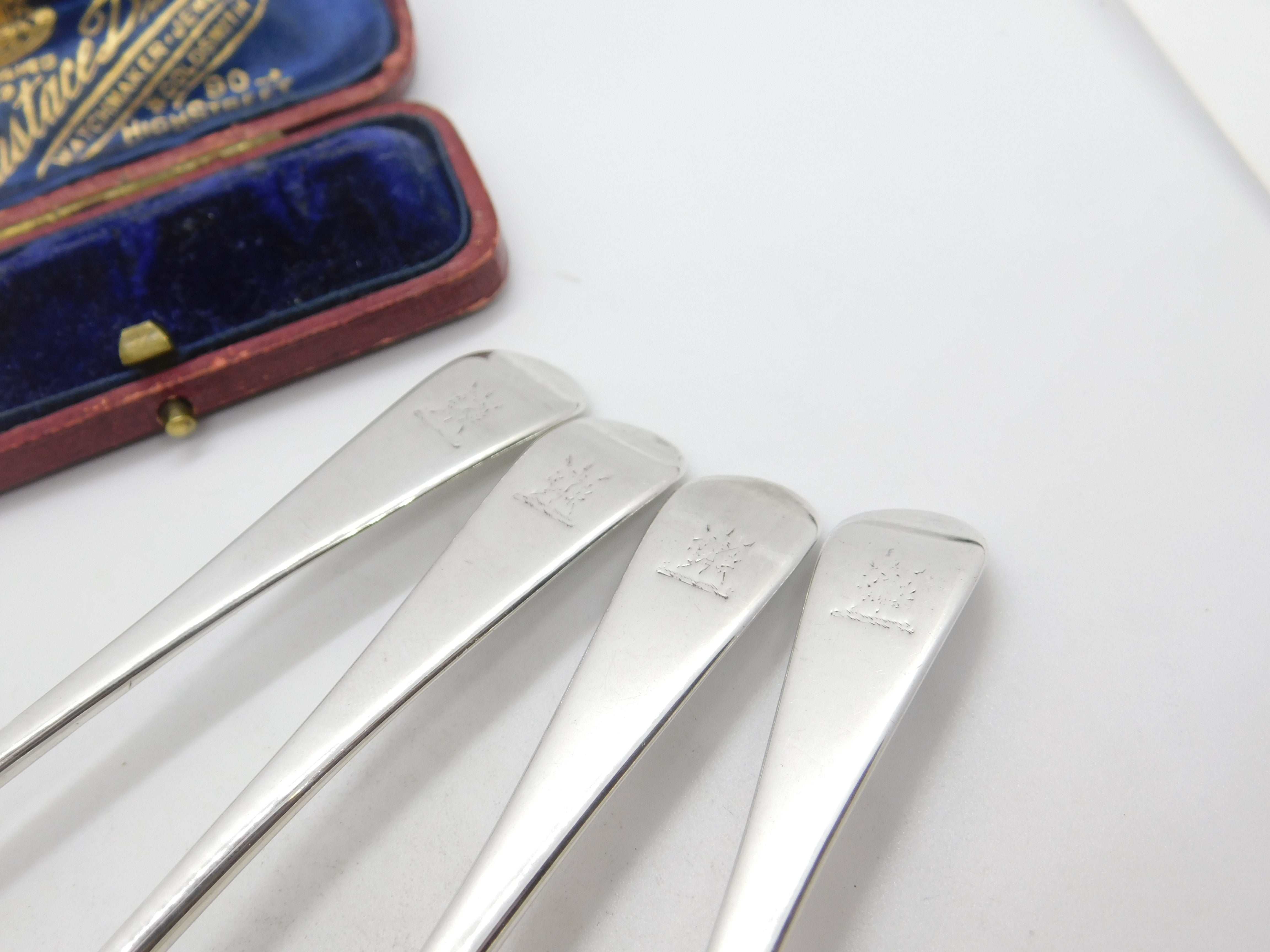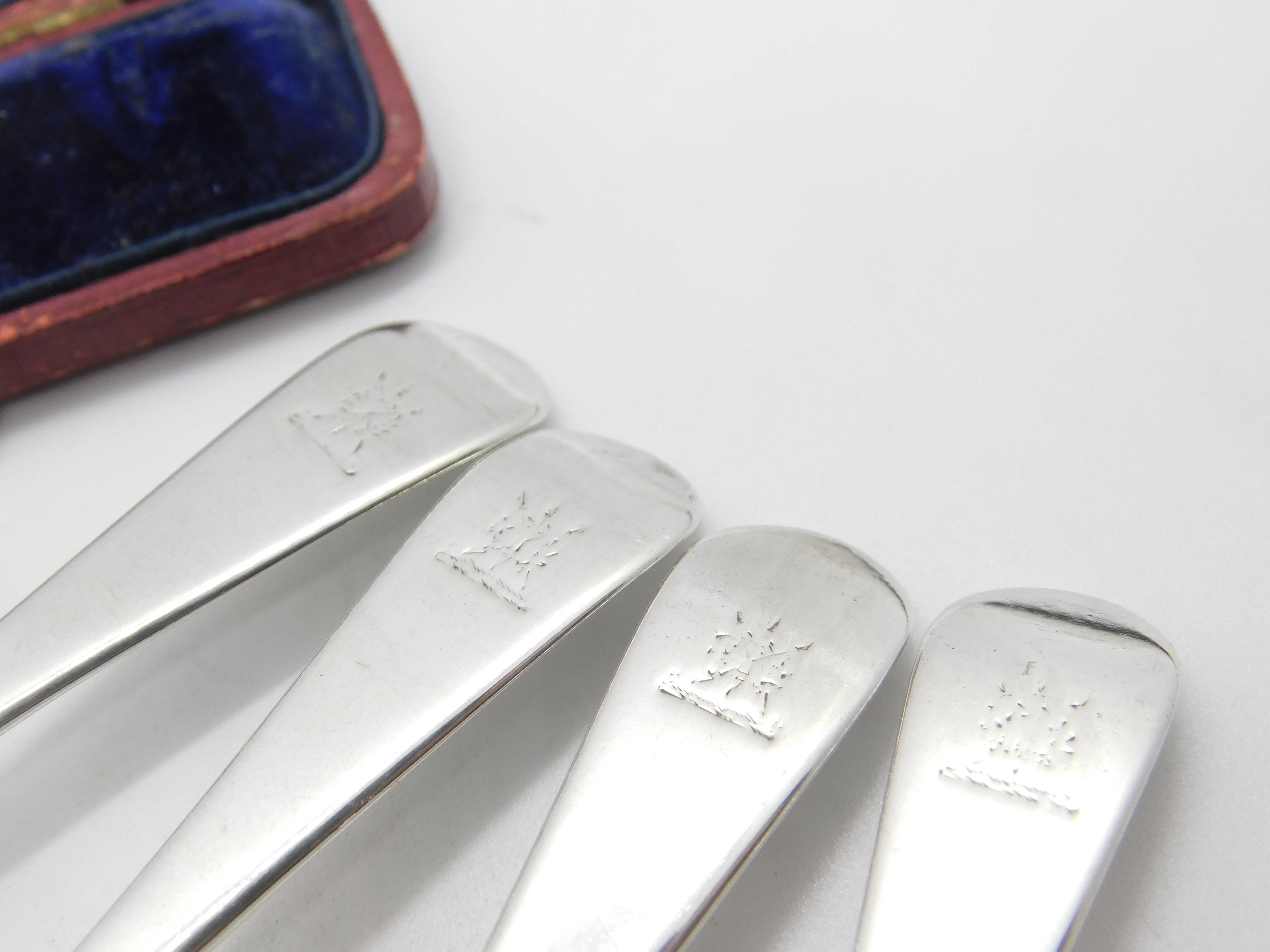 Set of 4 Georgian Sterling Silver Flaming Spear Crest Spoons 1823 London Antique