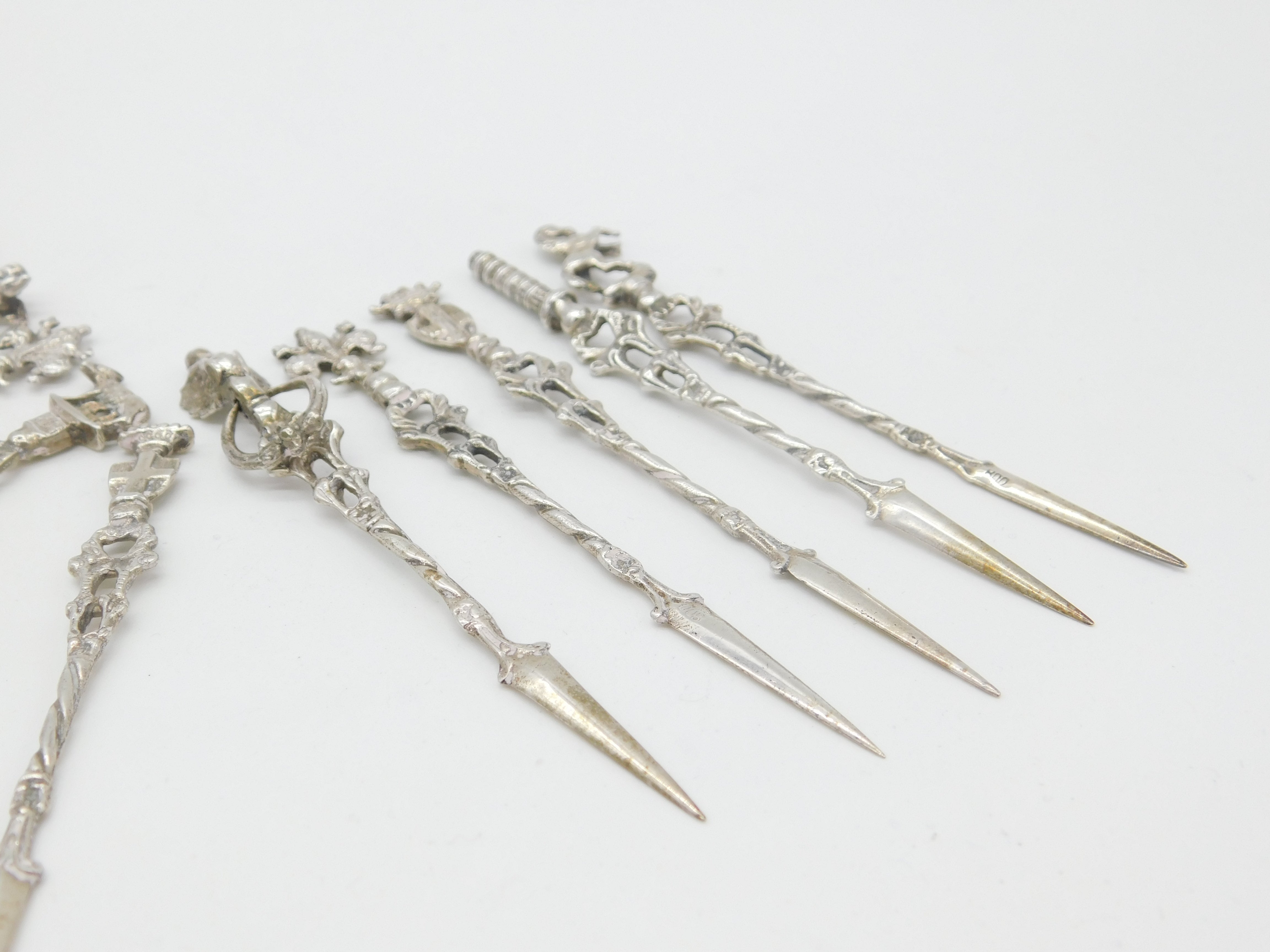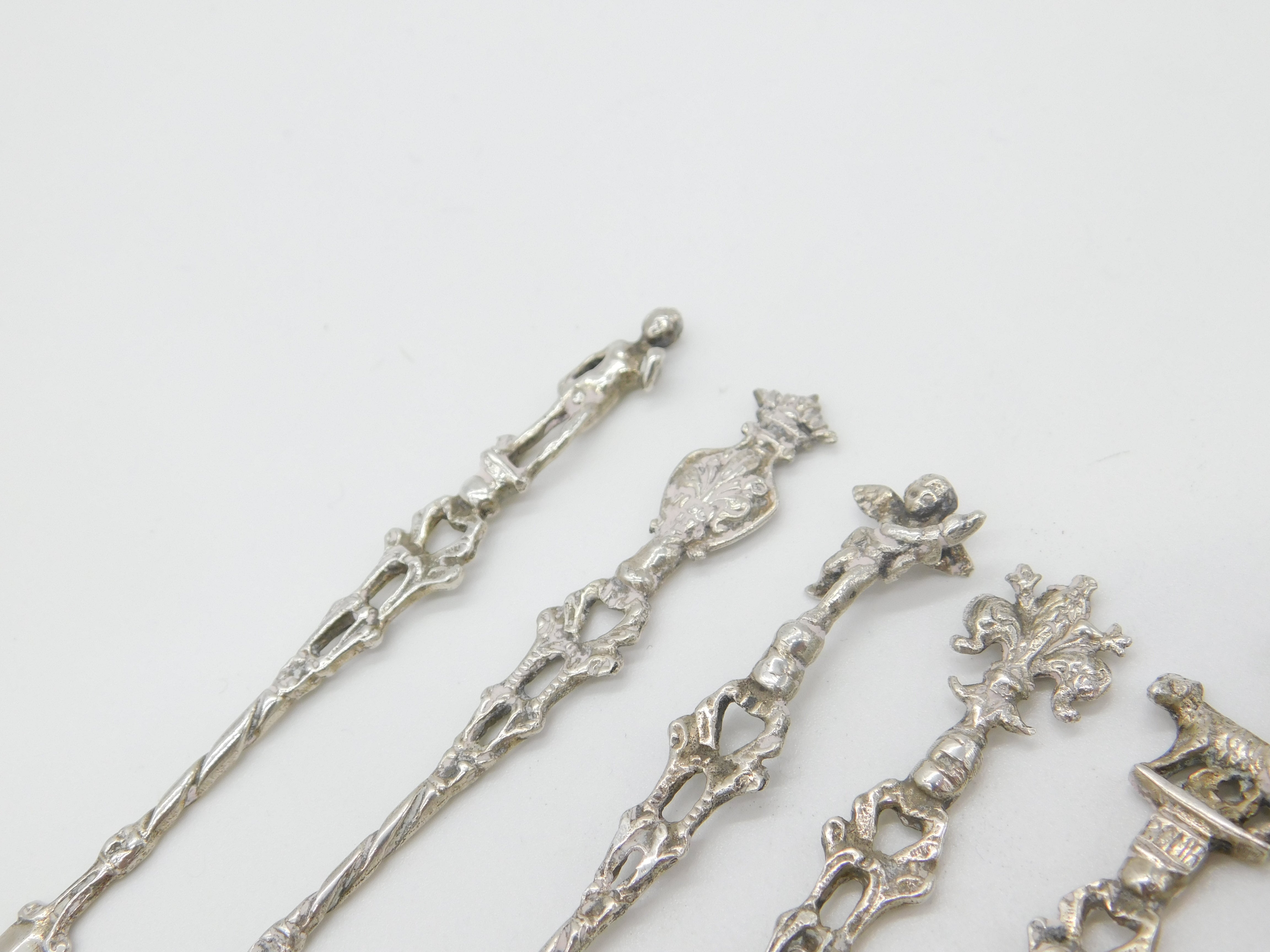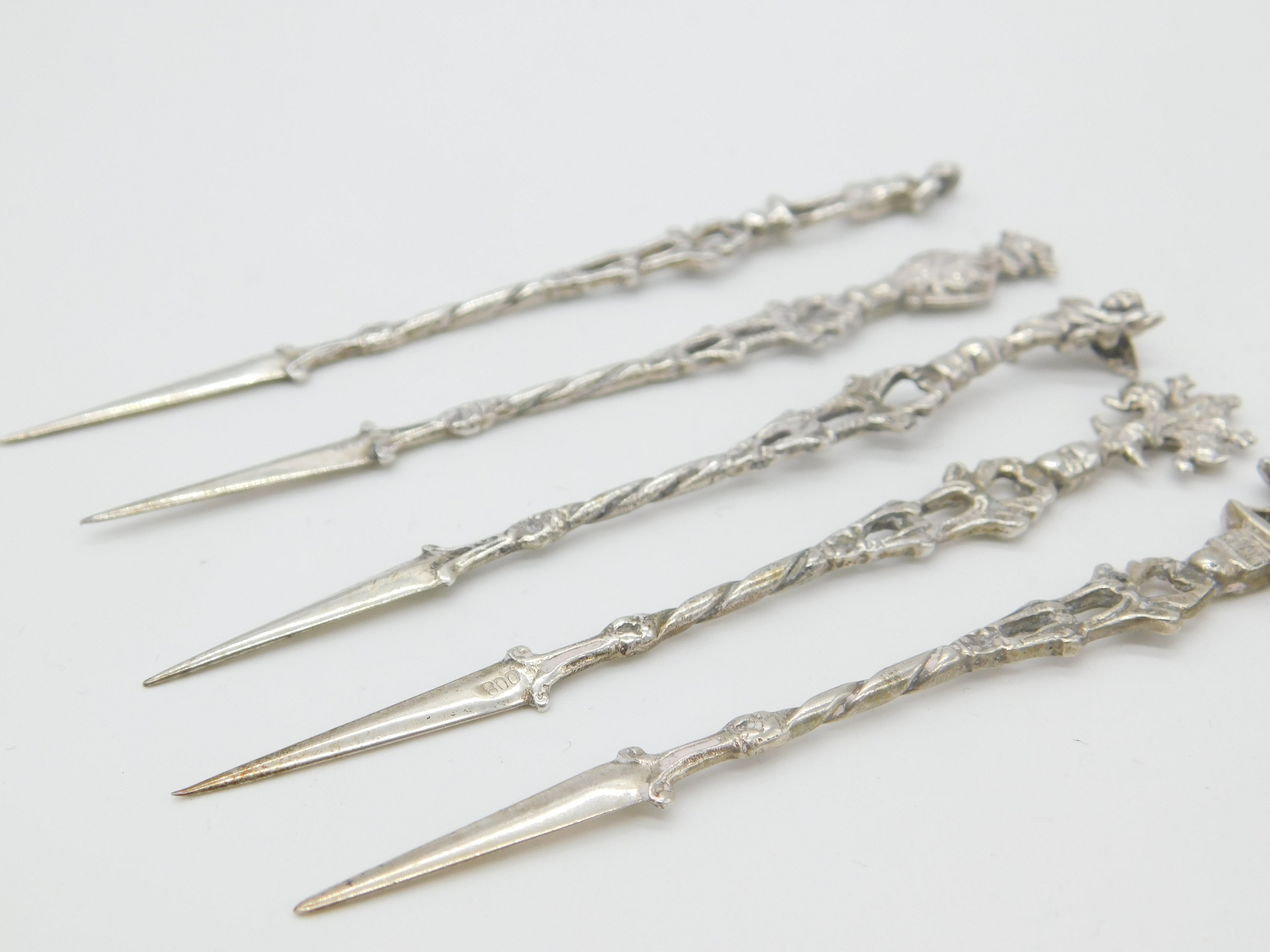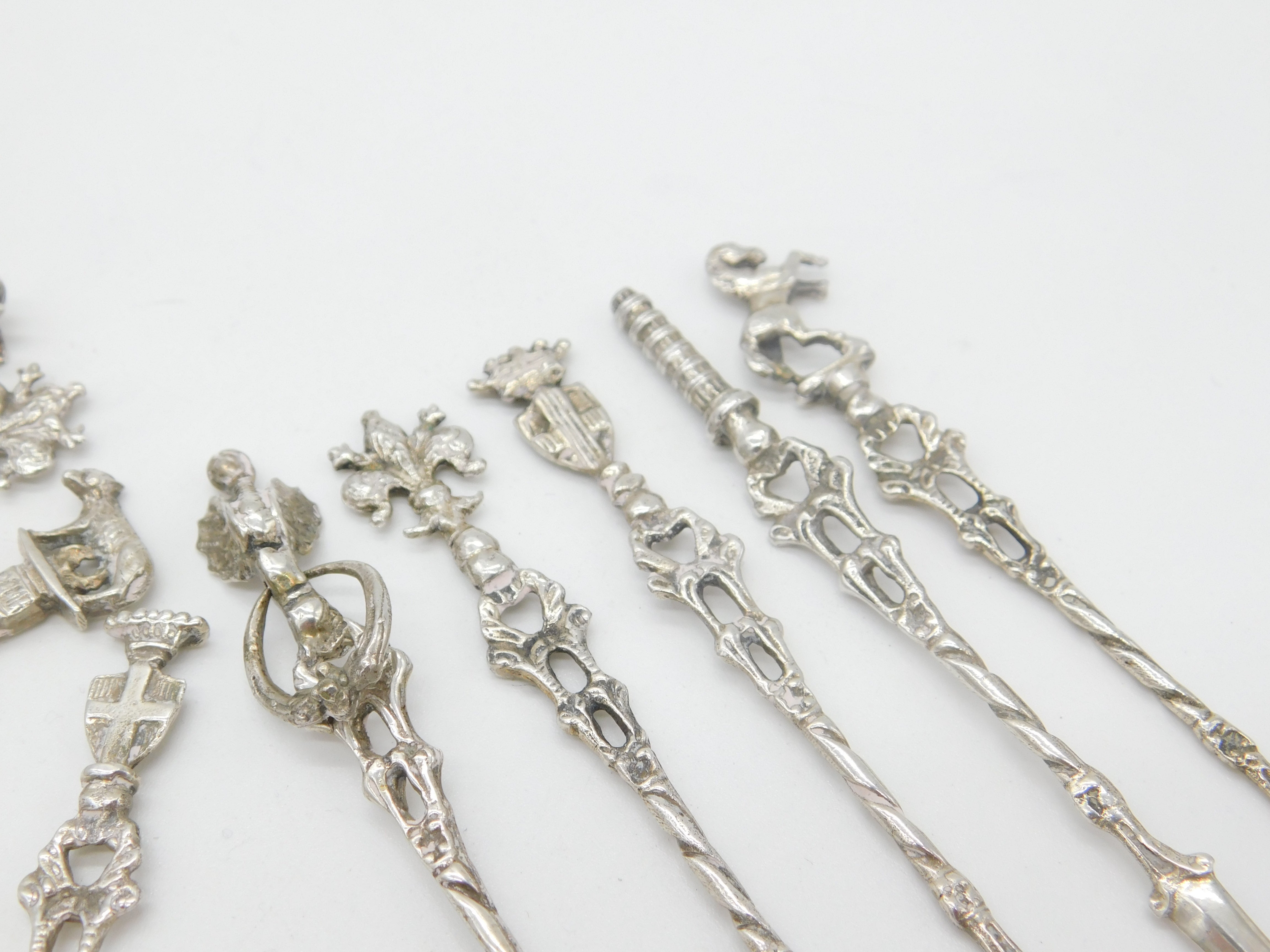 Set of Eleven .800 Silver Italian Souvenir Terminal Cocktail Sticks Vintage 1960