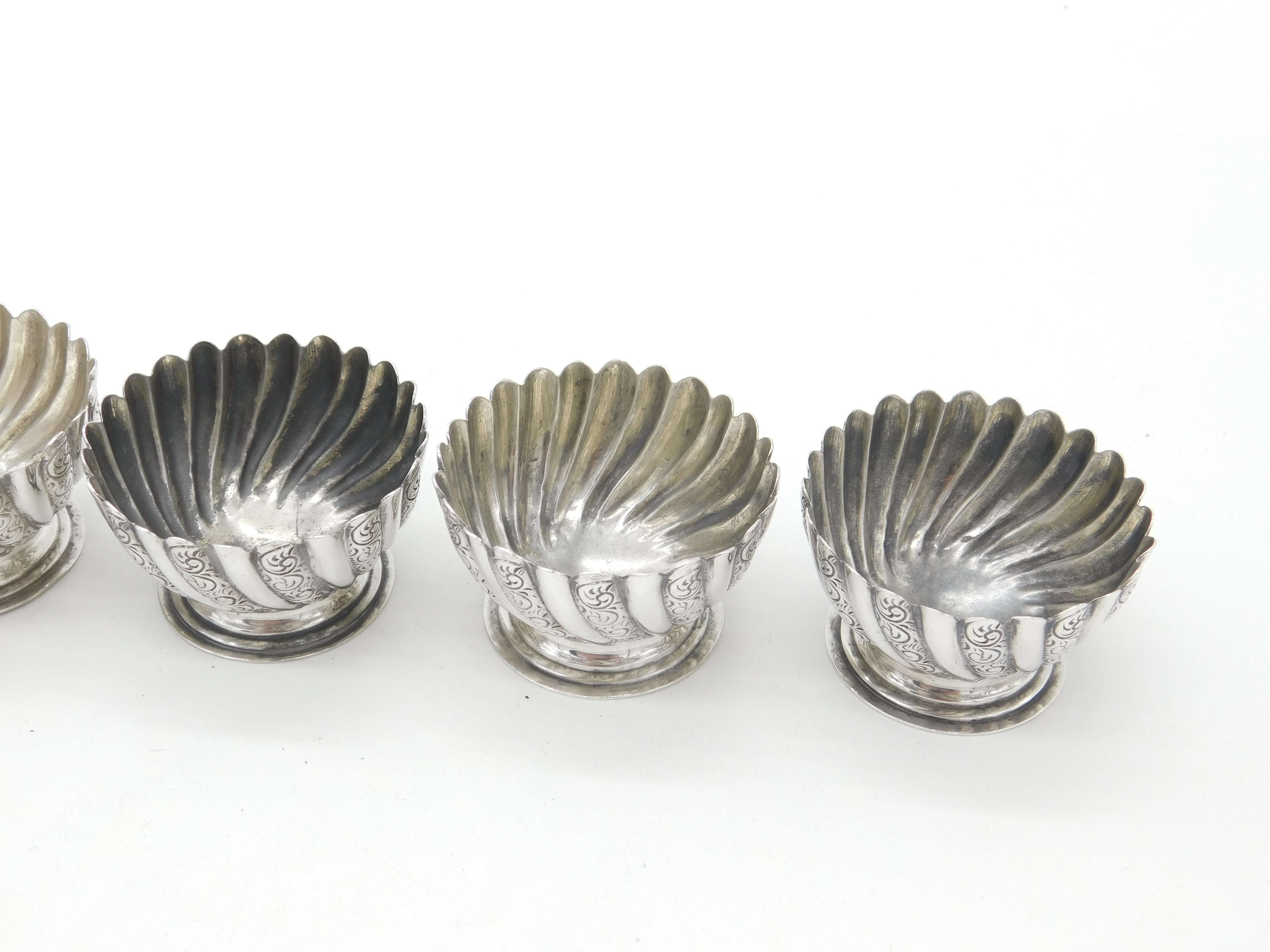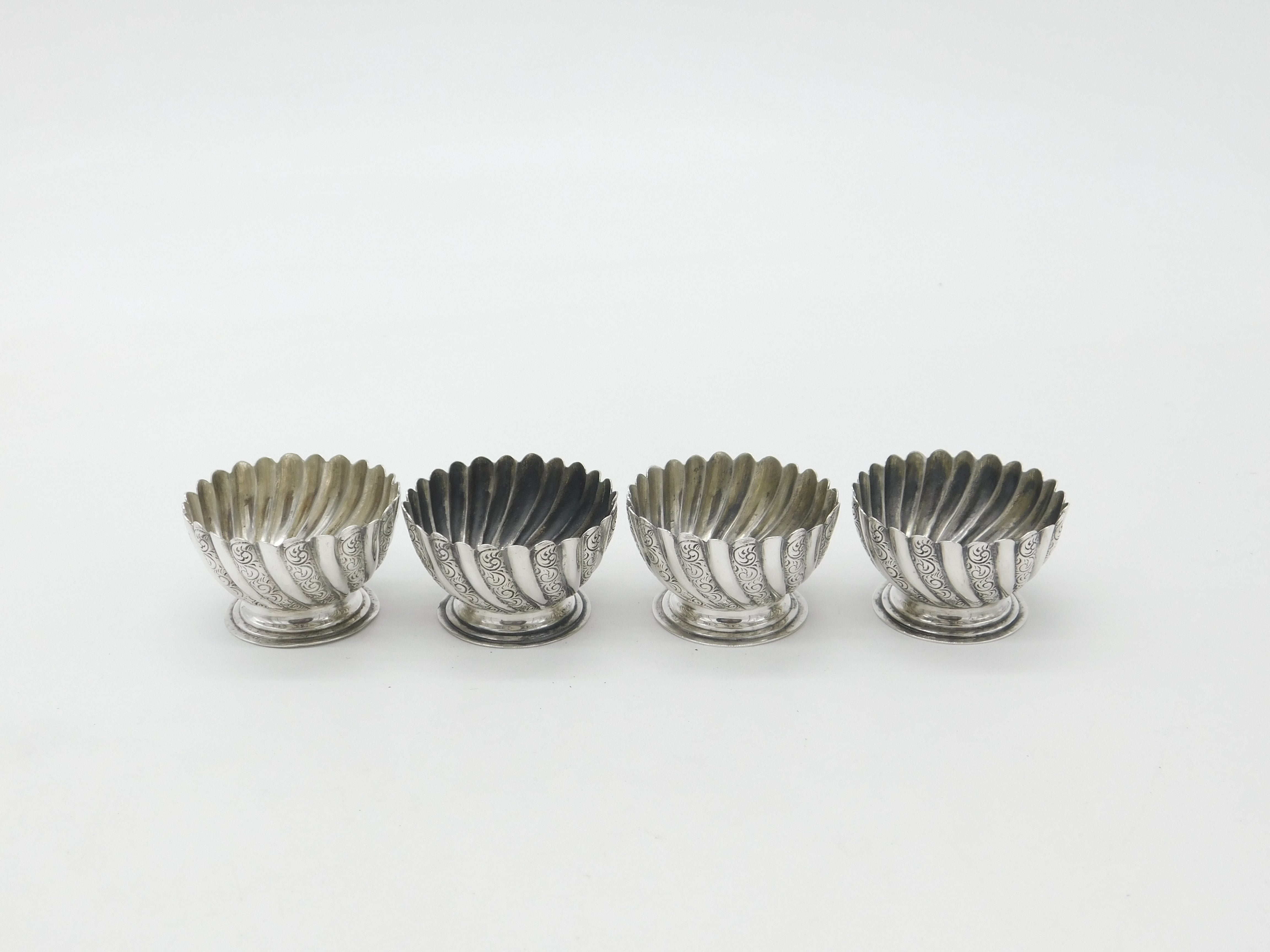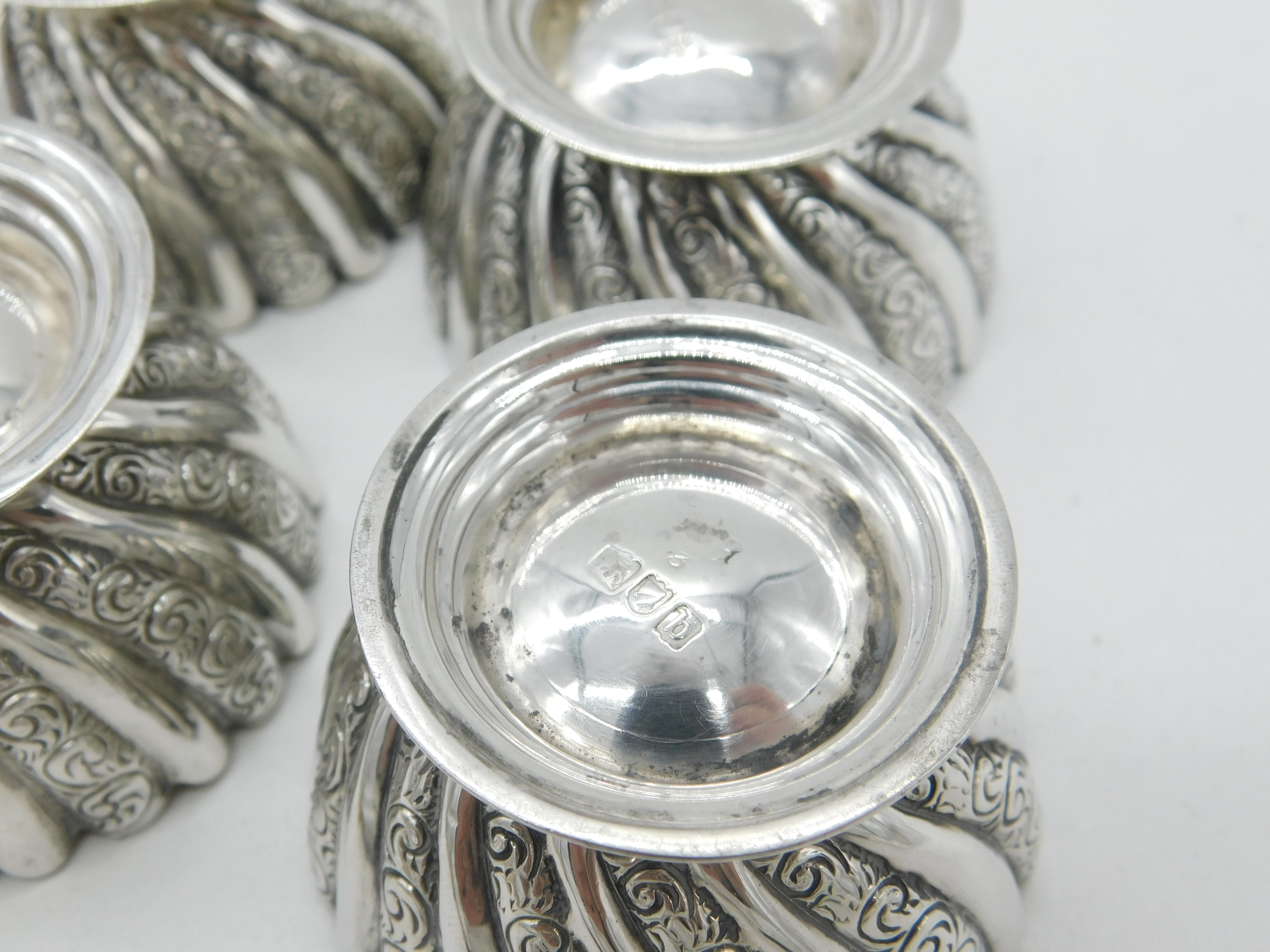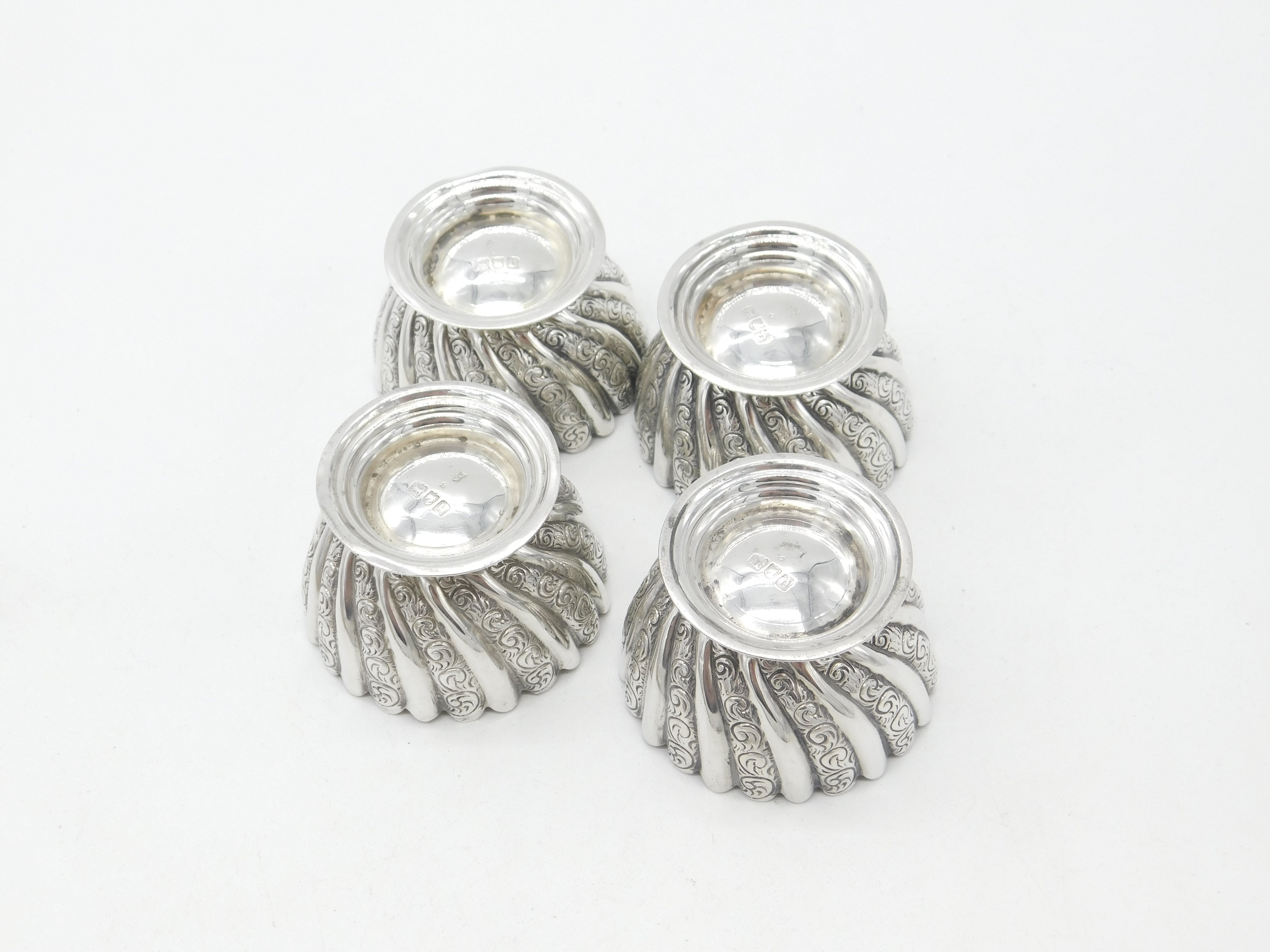 Set of Four Sterling Silver Swirl Pattern Salt Cellars 1897 London Victorian