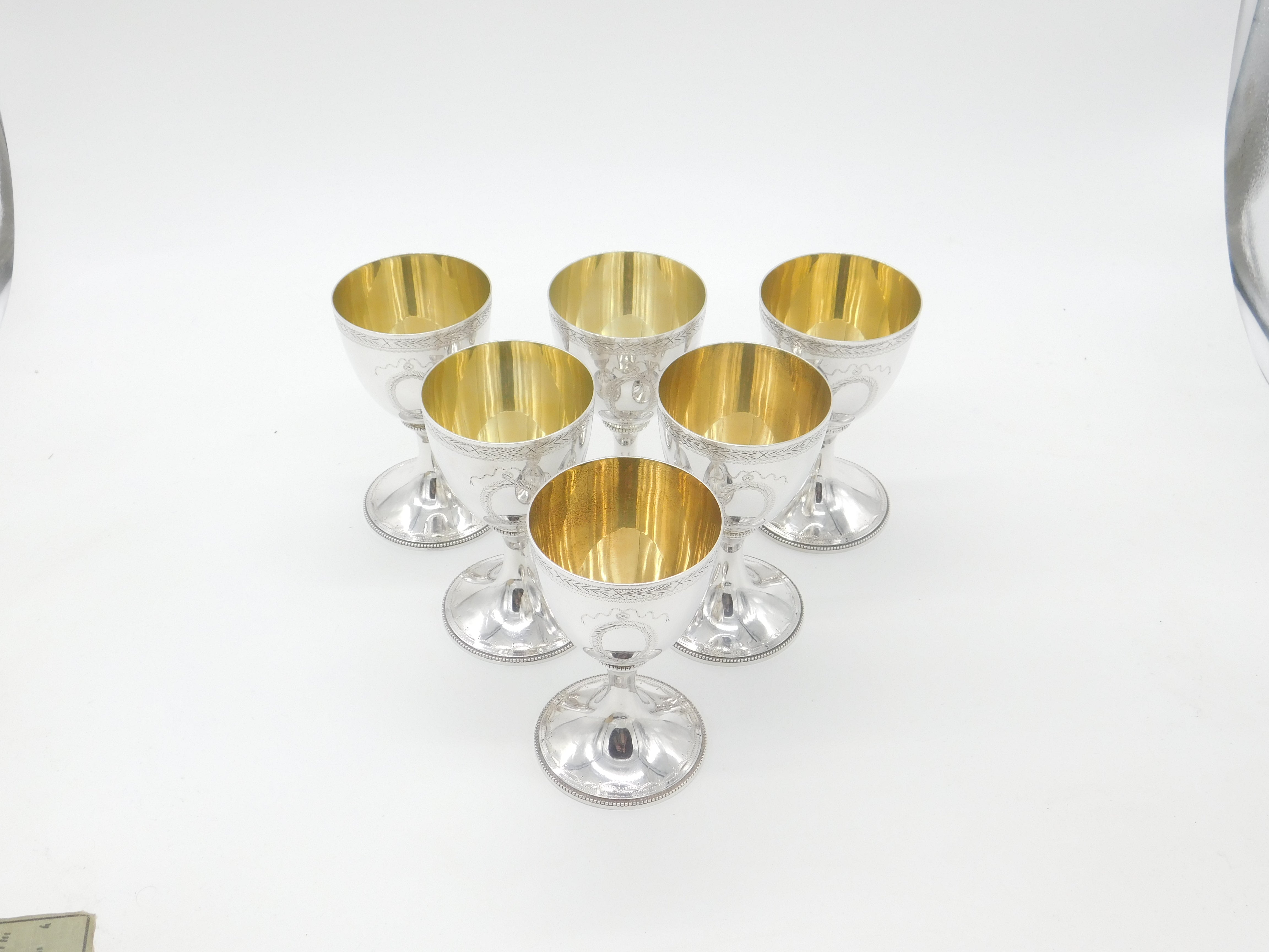 Set of Six Sterling Silver Goblet Chalices Gilded London 1968 Vintage CJ Vander
