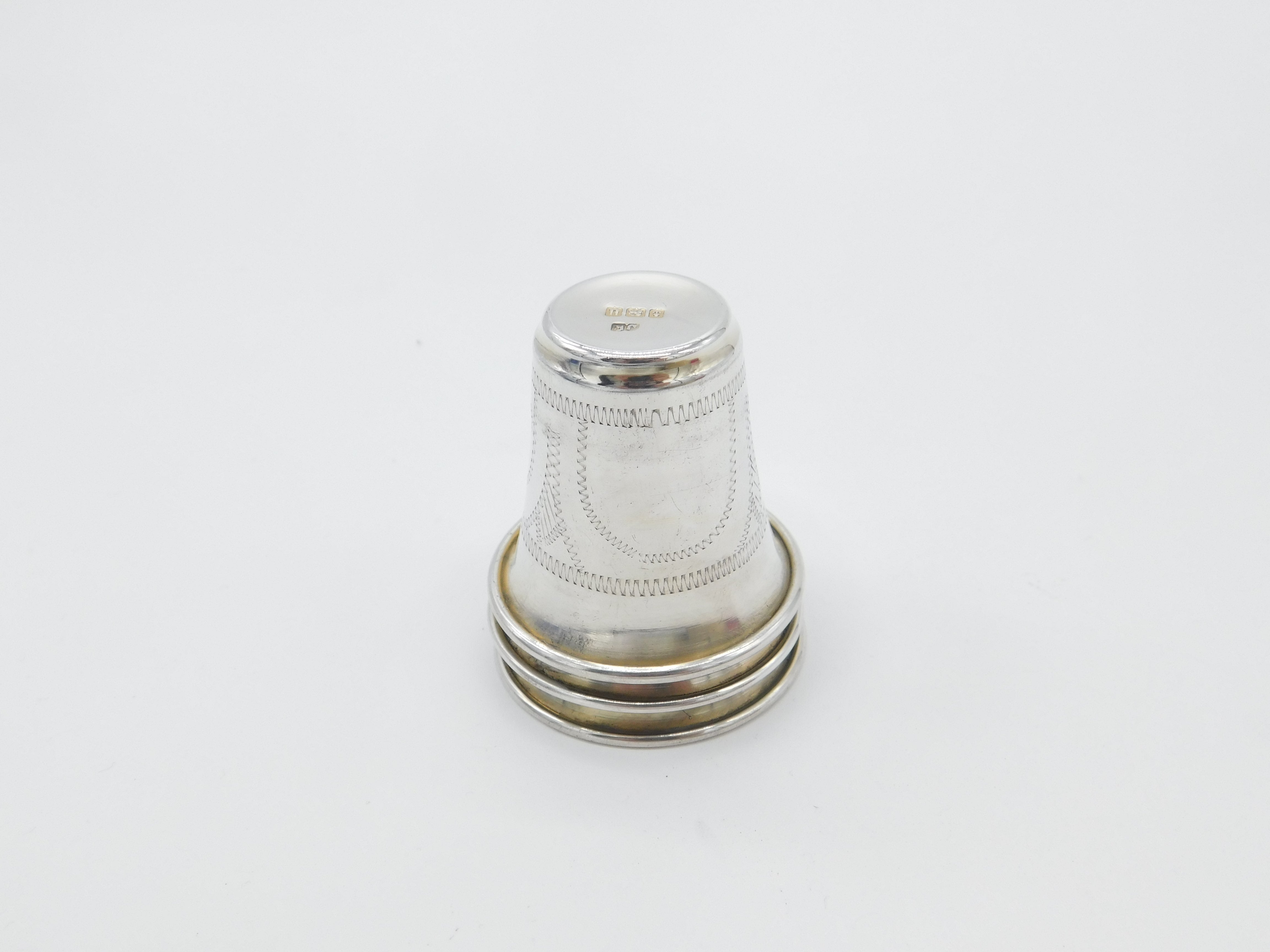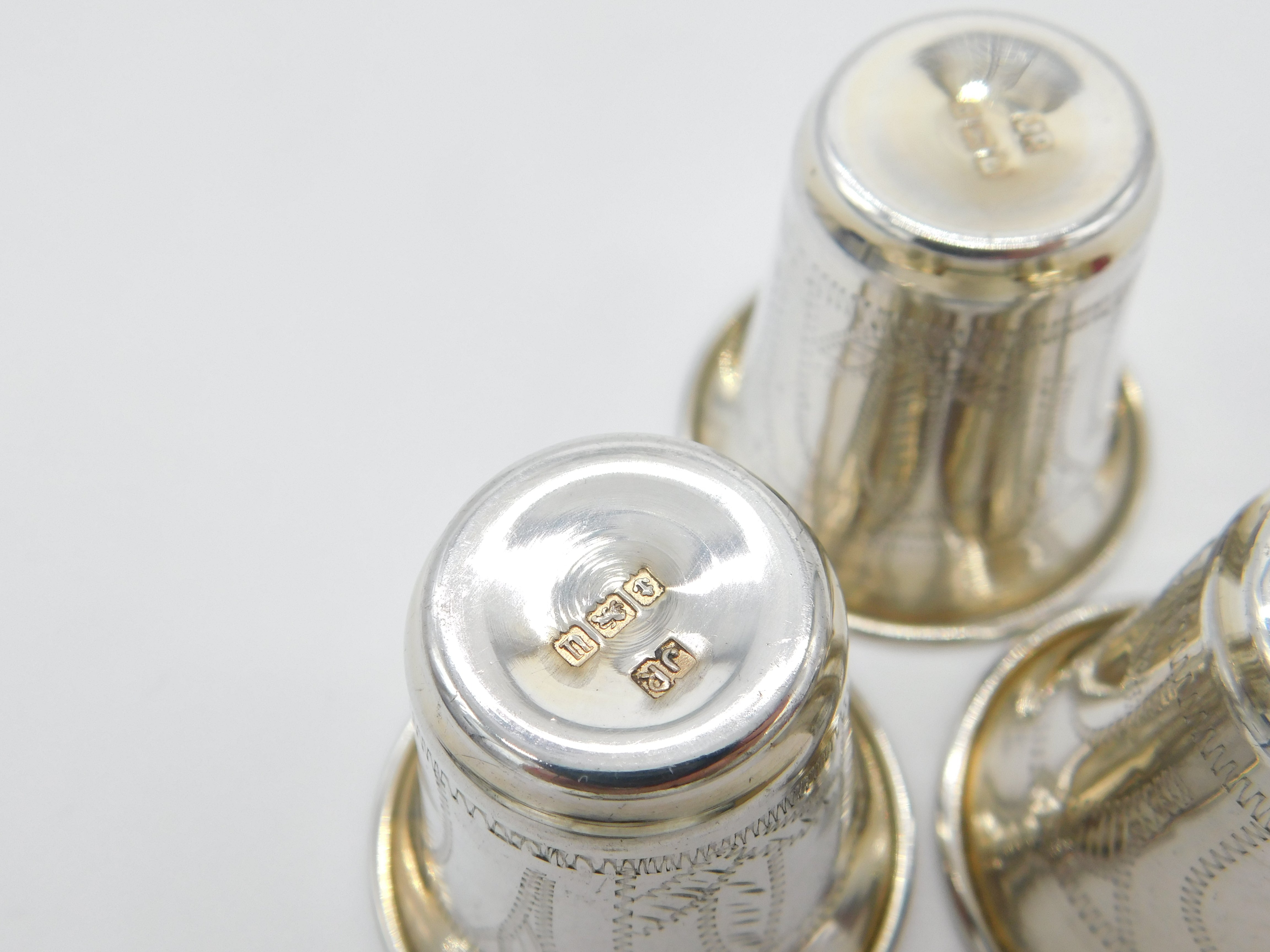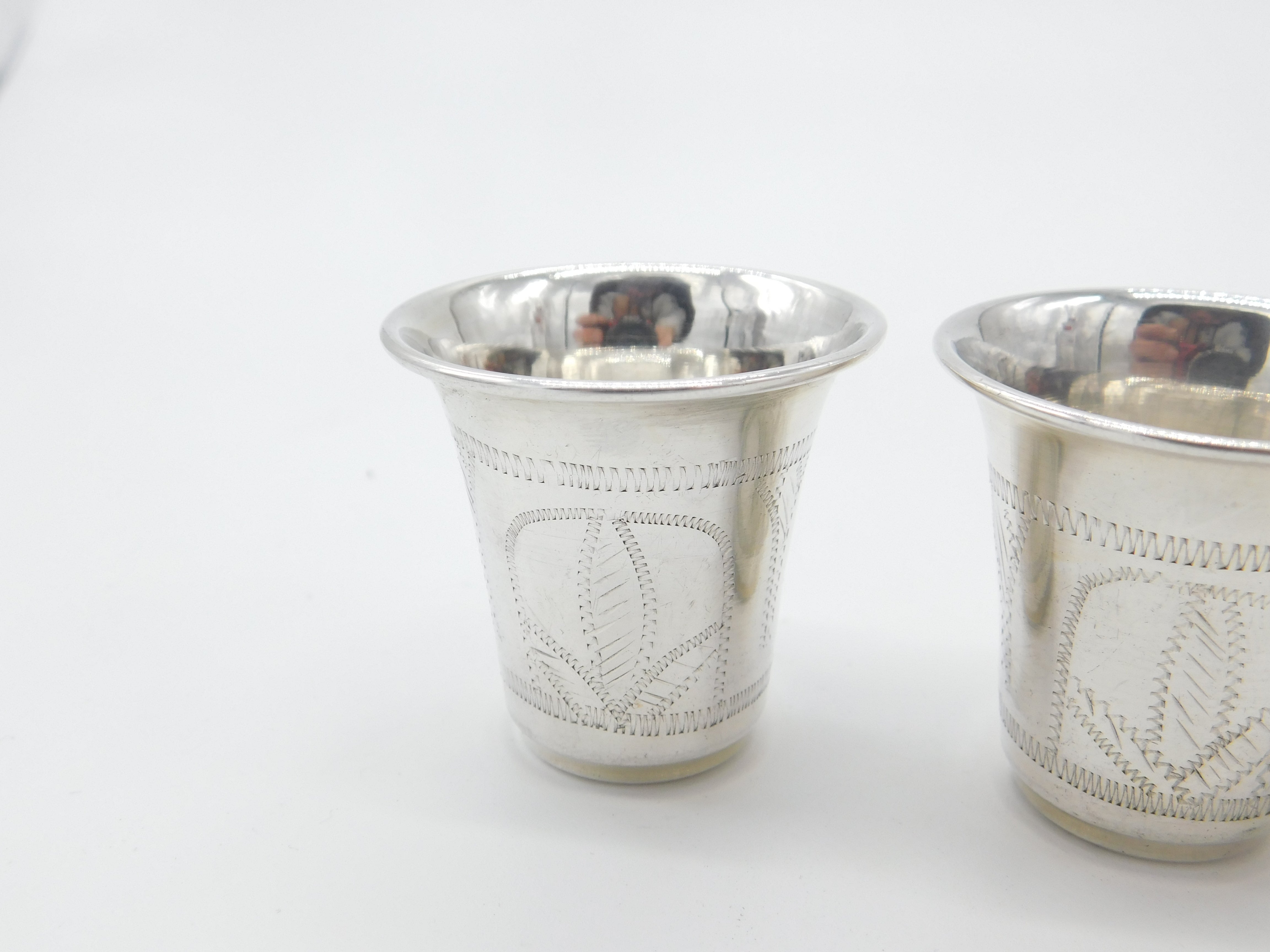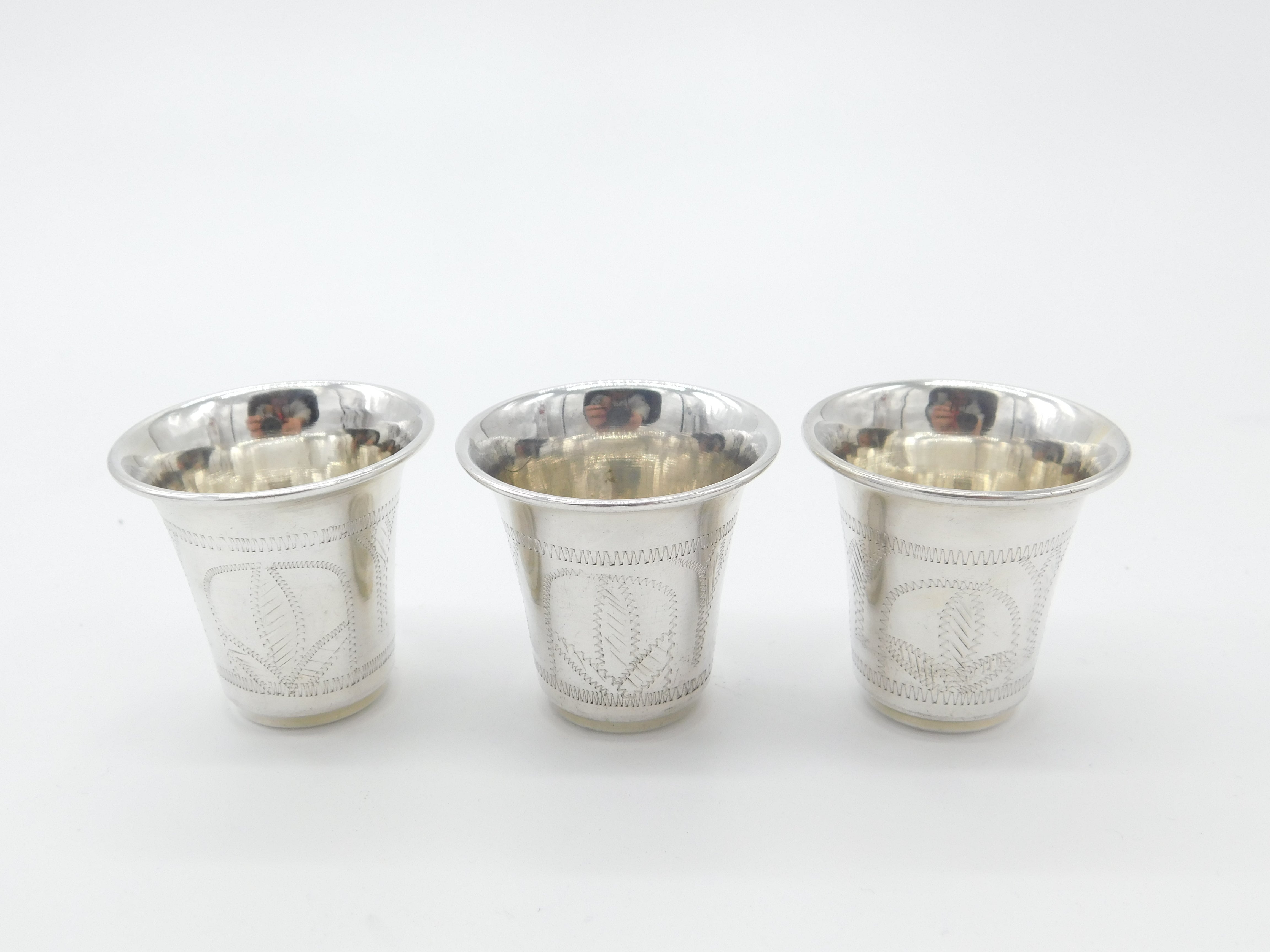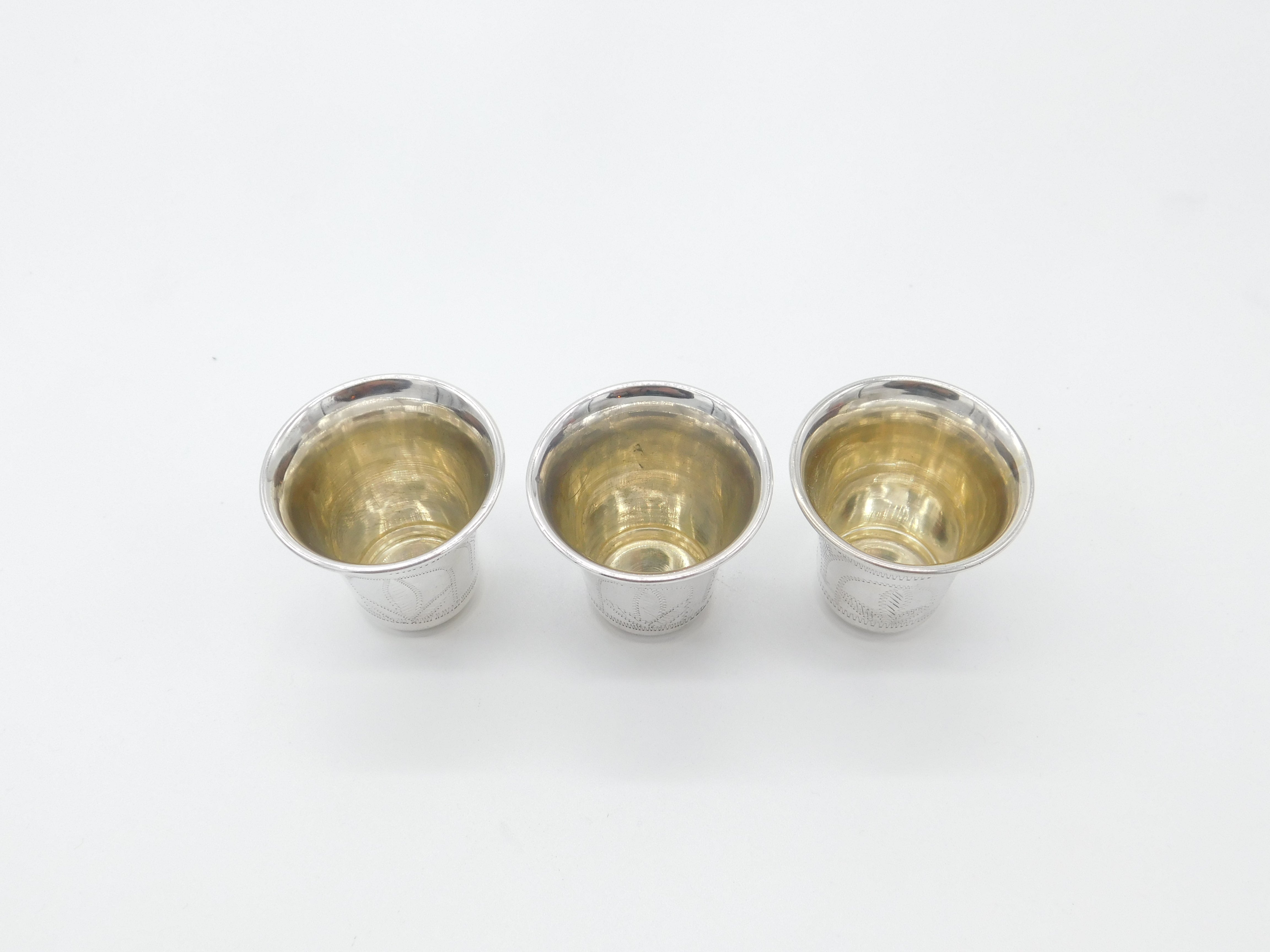Set Of Three Sterling Silver Floral Etched Shot Cups Antique 1919 Art Deco