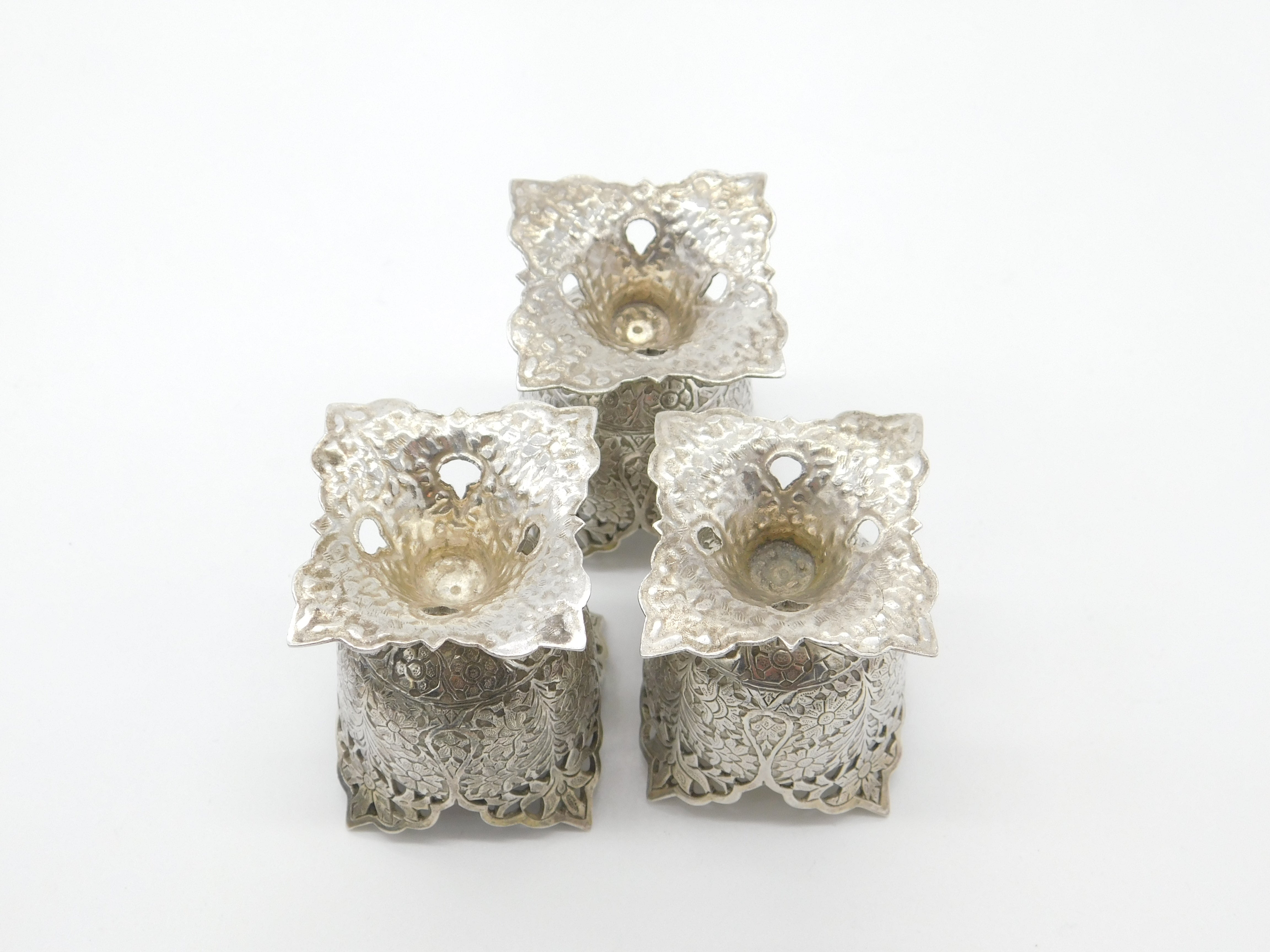 Set Of Three Victorian Sterling Silver Anglo-Indian Egg Cups Antique c1900