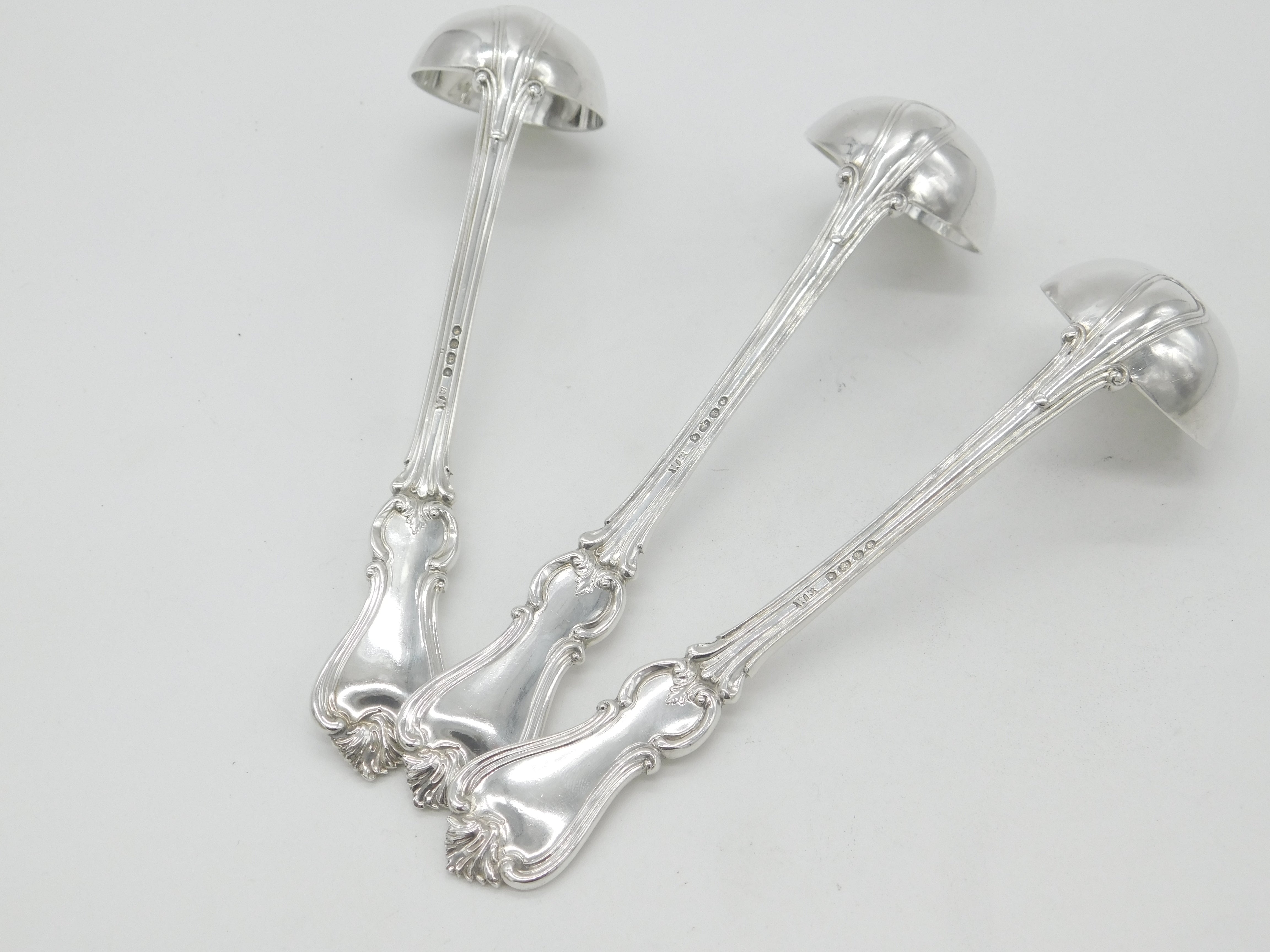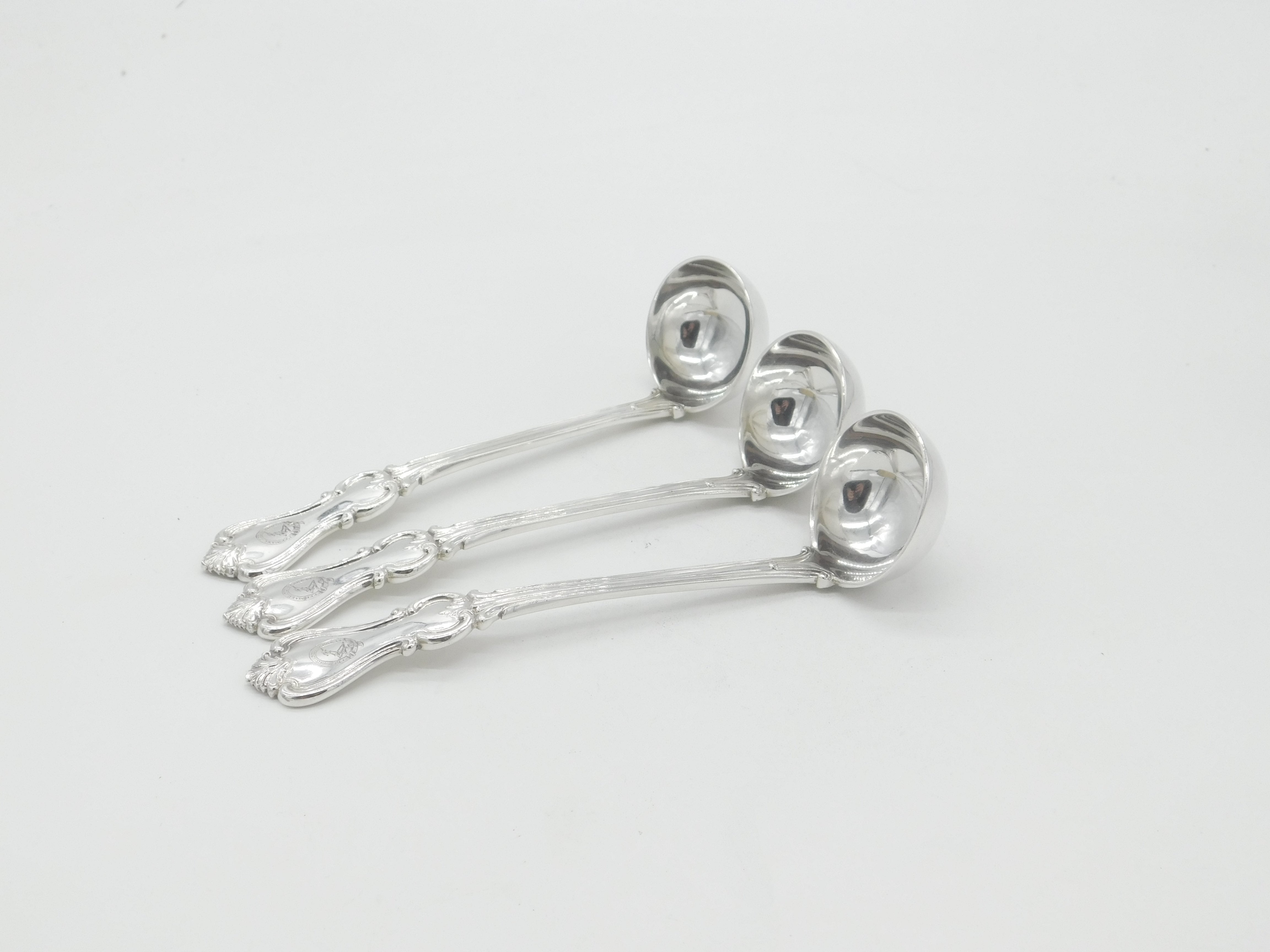 Details: A fantastic and wonderfully designed set of three antique Victorian sterling silver floral pattern soup ladled with lovely detailing hallmarked London 1842 by William Eley. This is a wonderful item that would make a perfect gift or addition to any collection. The BOX pictured is for PRESENTATION ONLY and is NOT included in the listings but used to frame the pictures unless specifically stated otherwise.