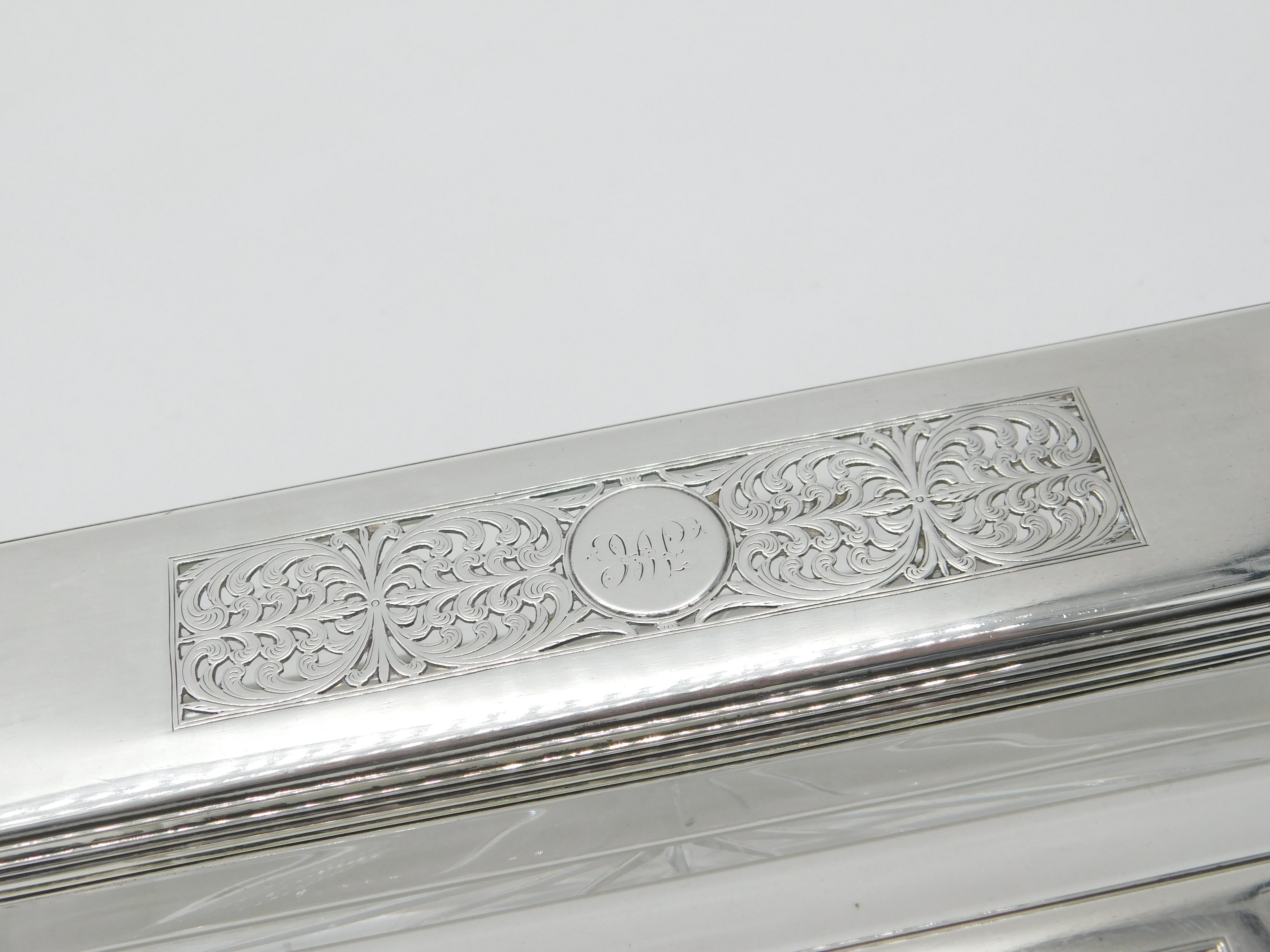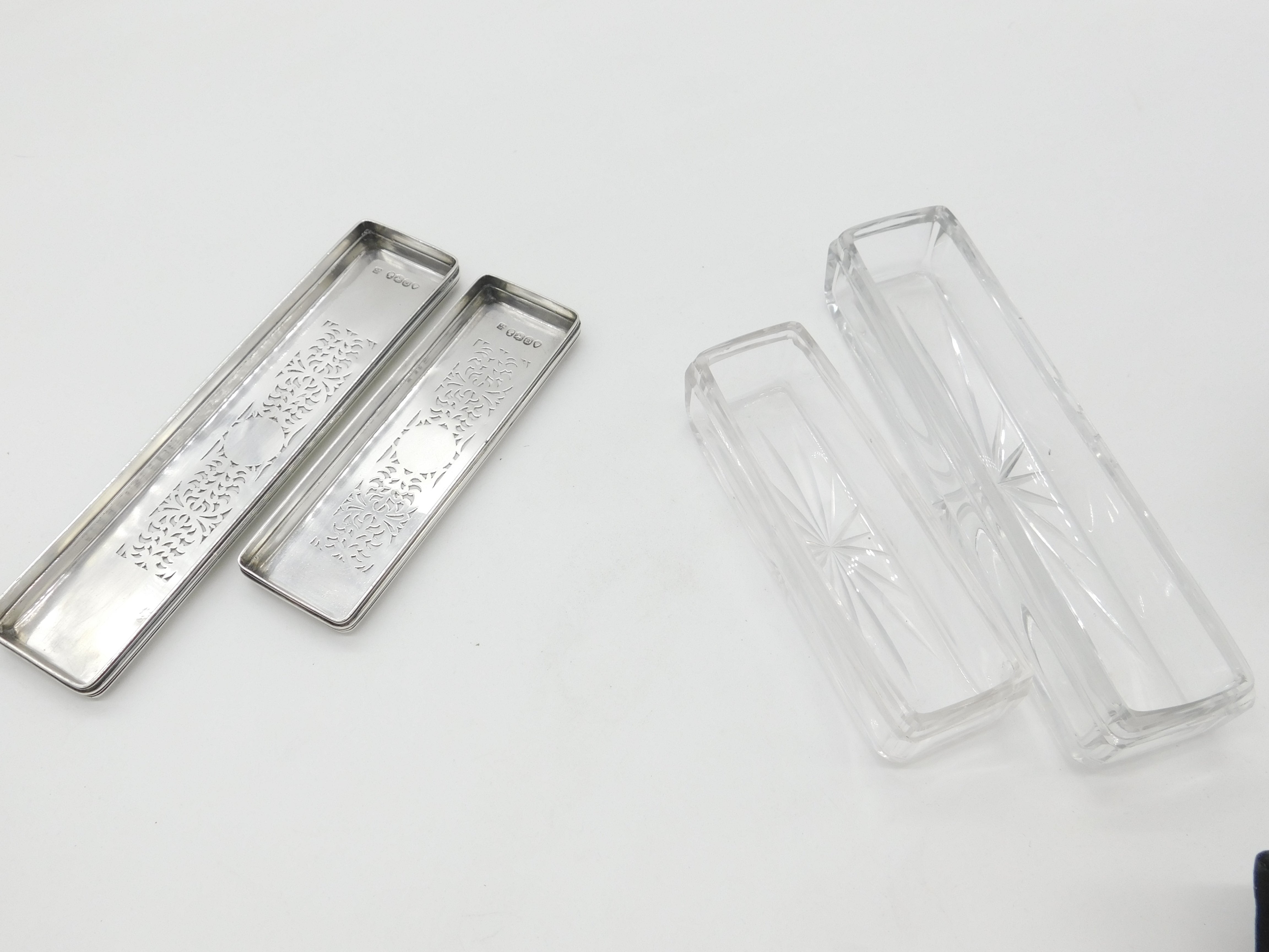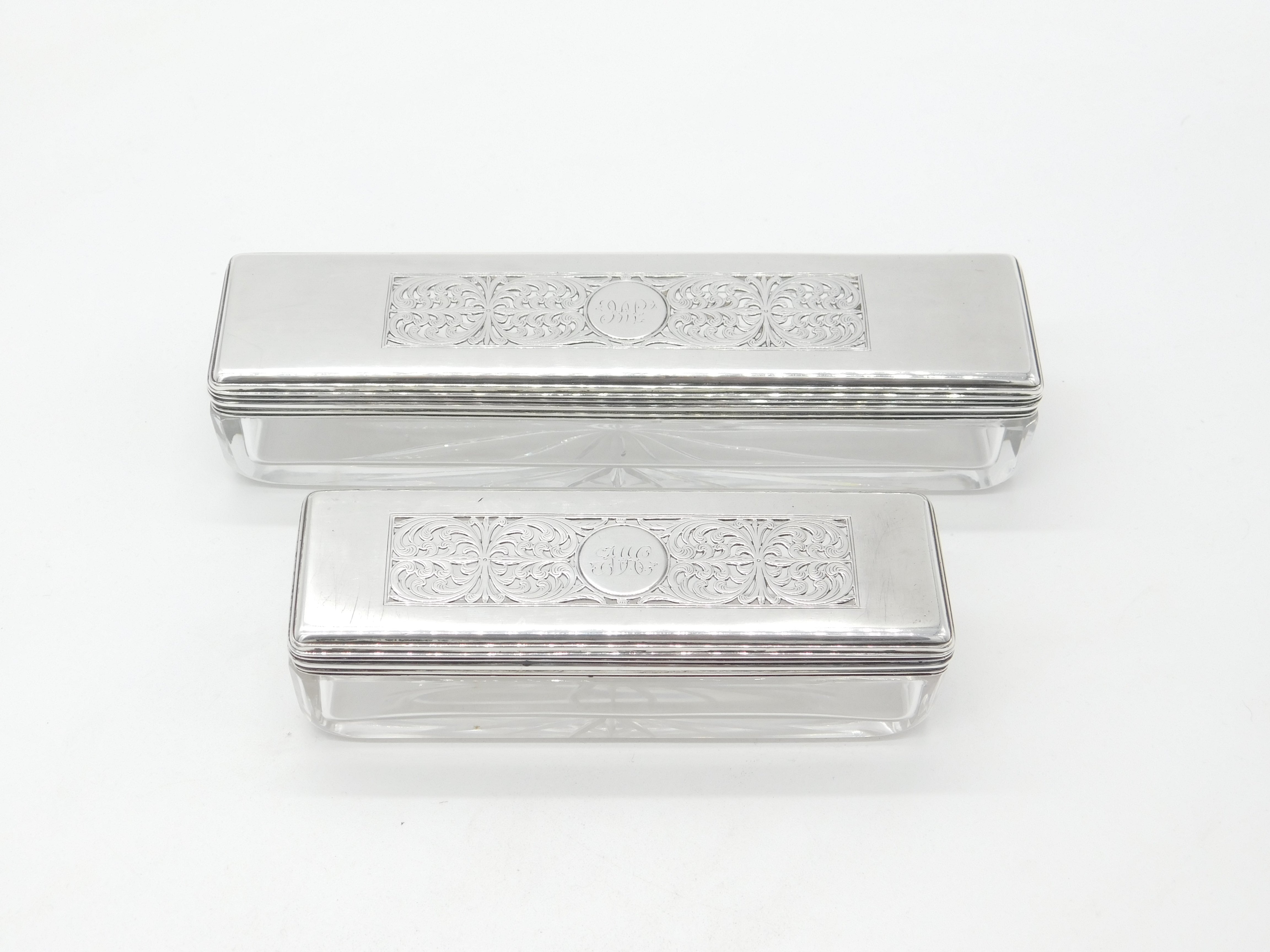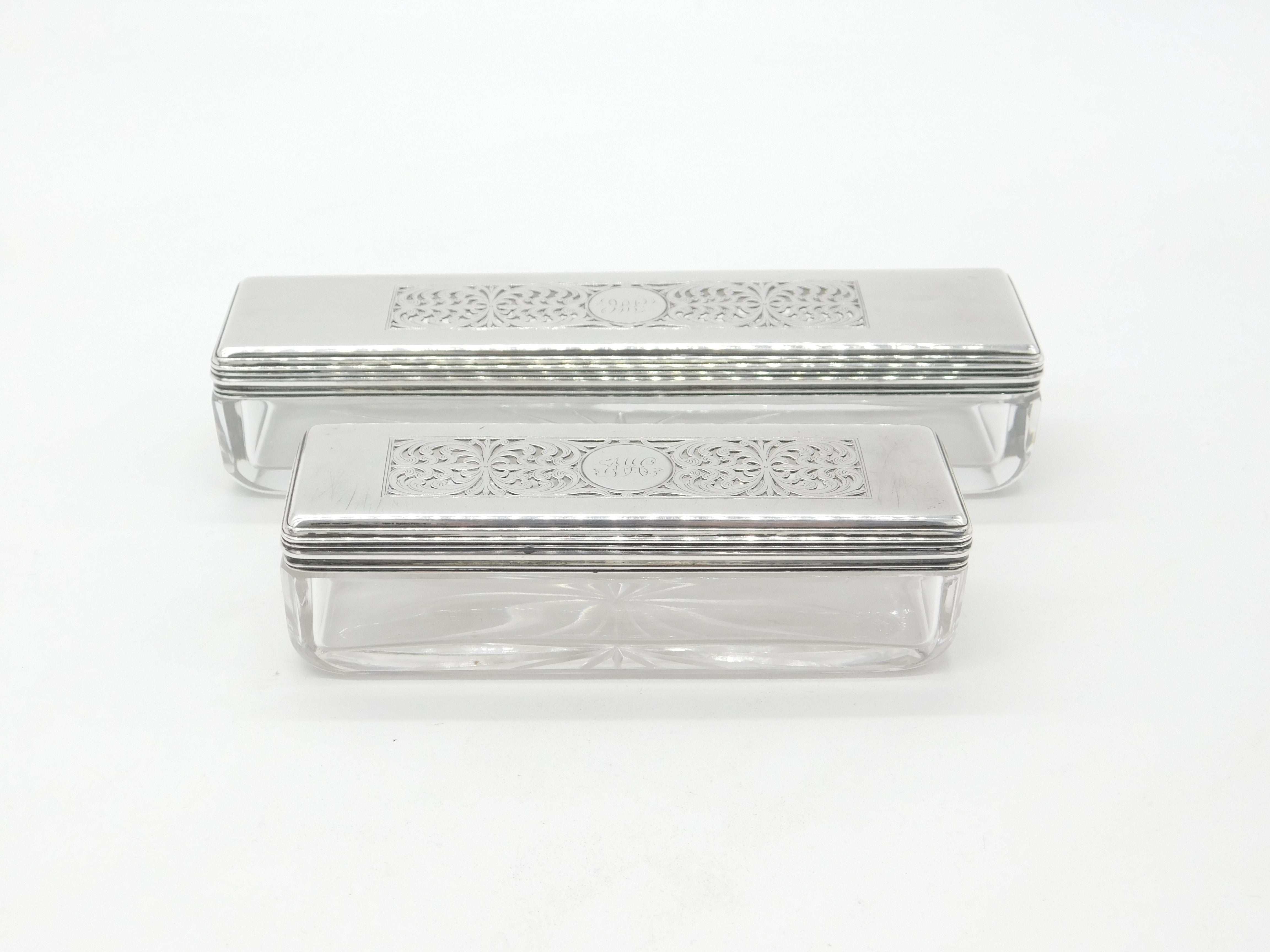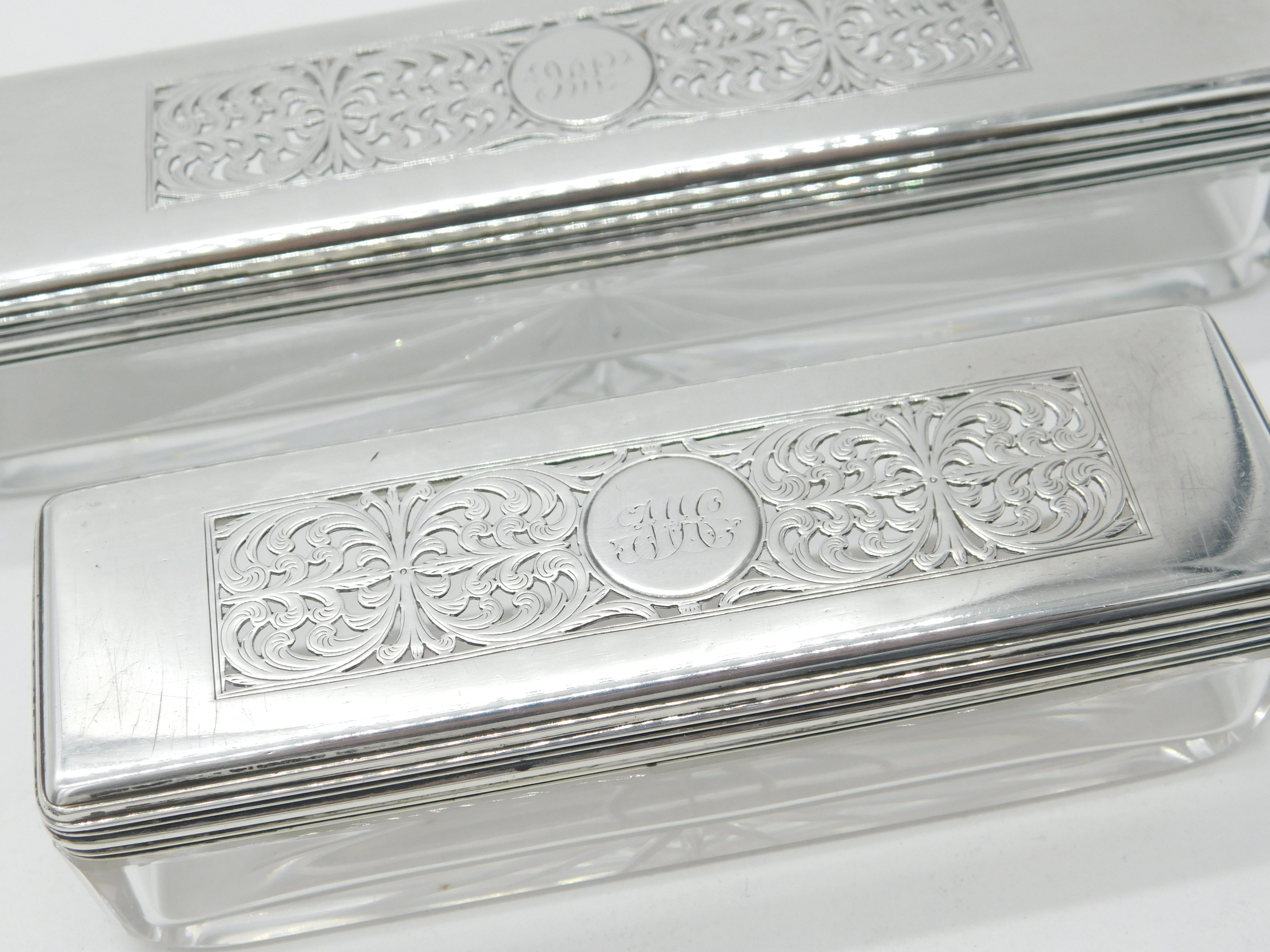 Set of Victorian Sterling Silver & Glass Floral Trinket Boxes 1839 London Antique