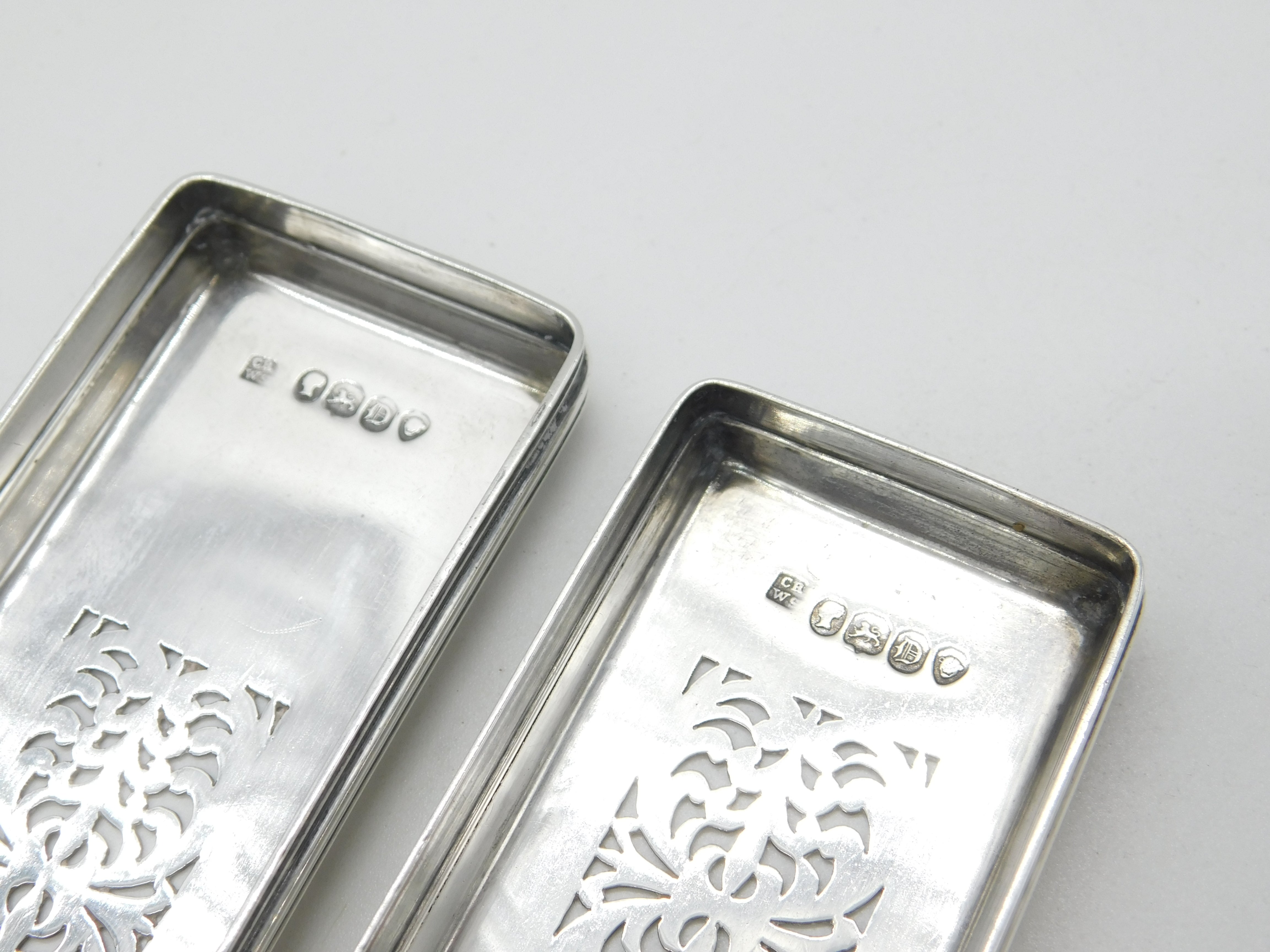 Details: A fantastic and wonderfully designed pair of antique Victorian sterling silver moulded glass trinket box with lovely pierced details to the top hallmarked London, 1839 by Charles Rawlings & William Summers. This is a wonderful item that would make a perfect gift or addition to any collection. The BOX pictured is for PRESENTATION ONLY and is NOT included in the listings but used to frame the pictures unless specifically stated otherwise.