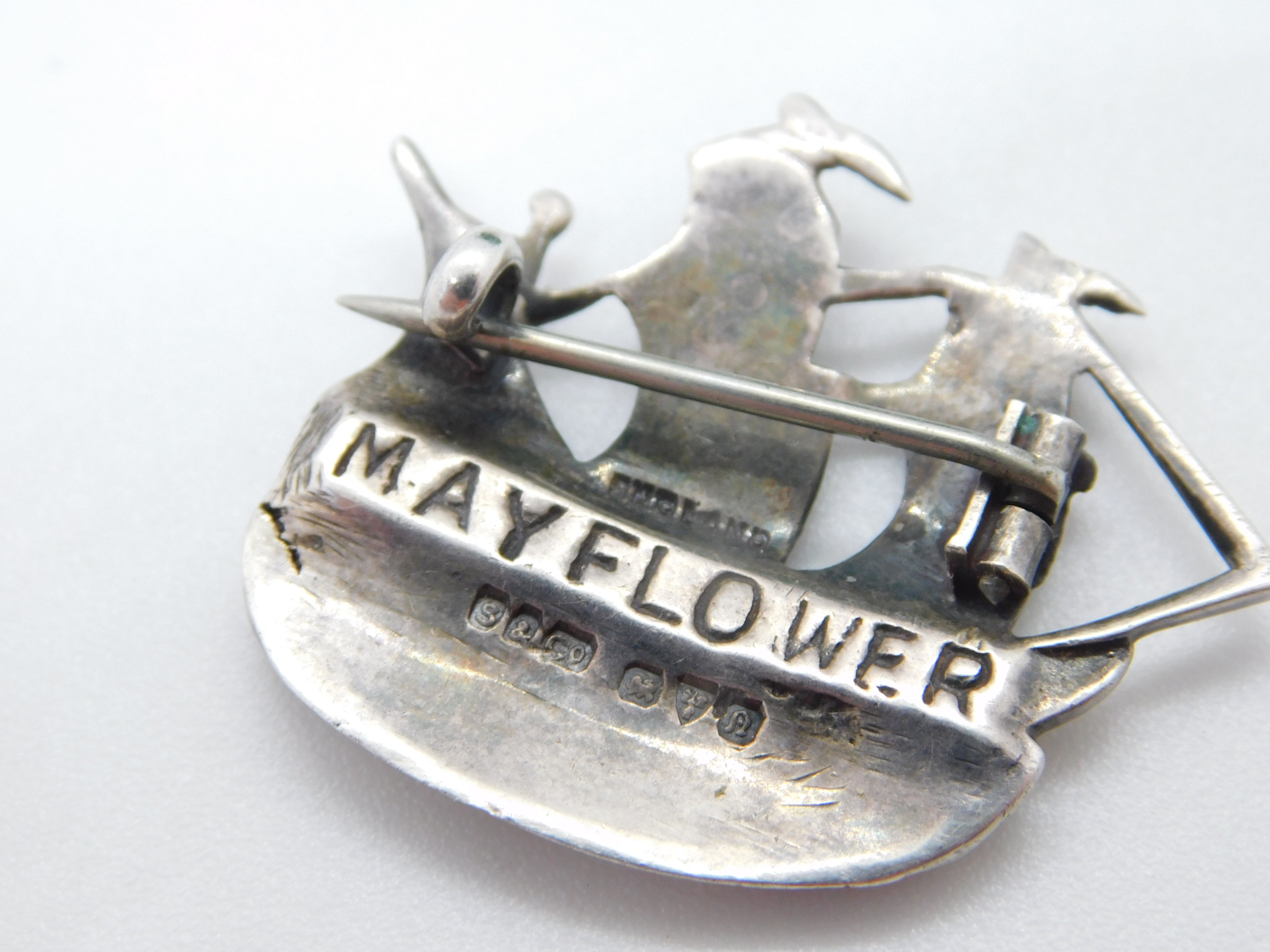 Shipton & Co. Sterling Silver Mayflower Ship Brooch 1938 Chester Antique Deco