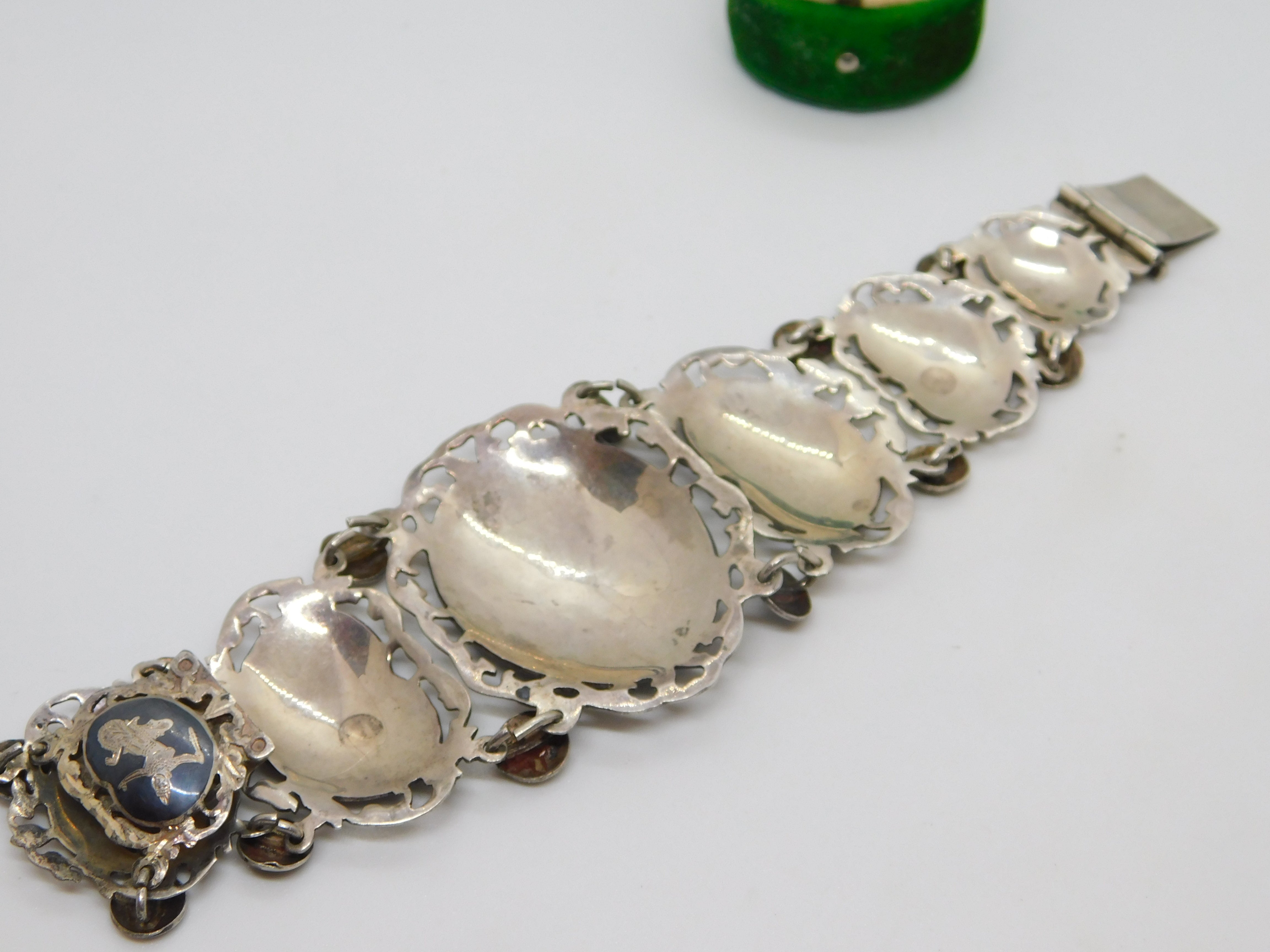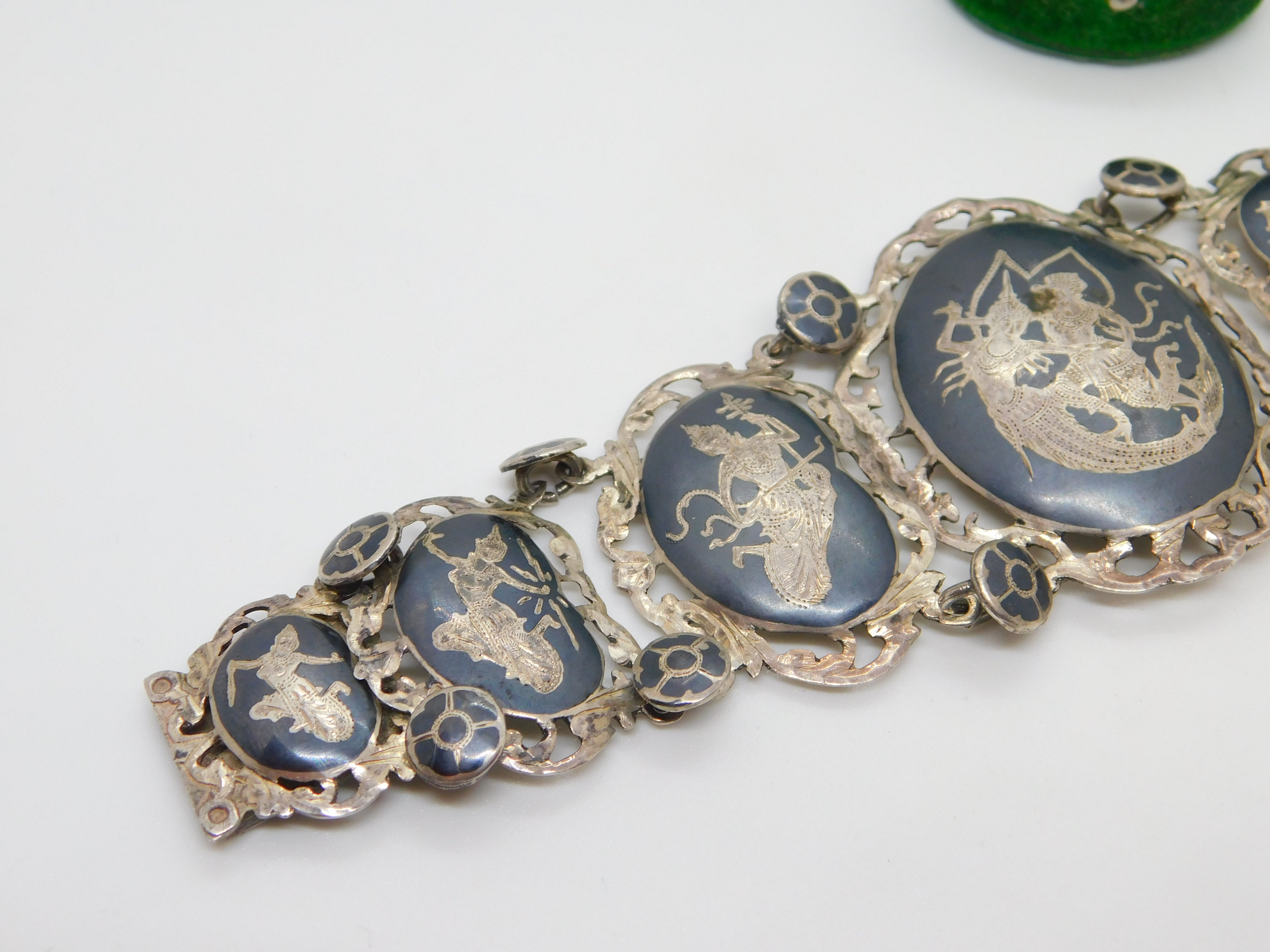 Siam Sterling Silver Niello Enamel Graduating Godess Bracelet Antique c1920